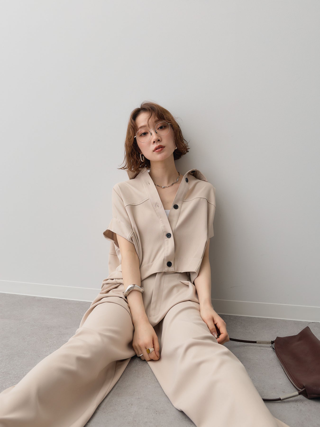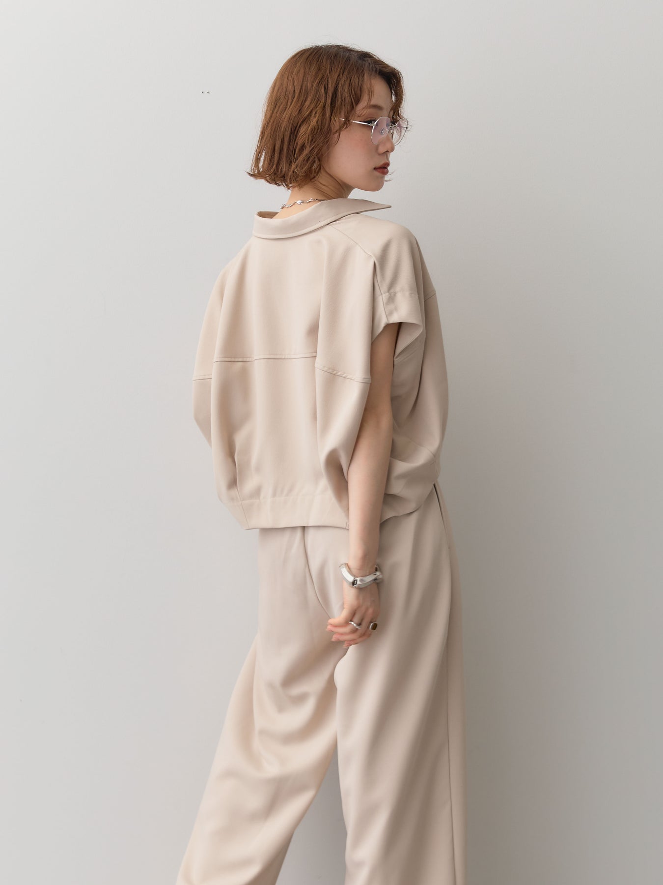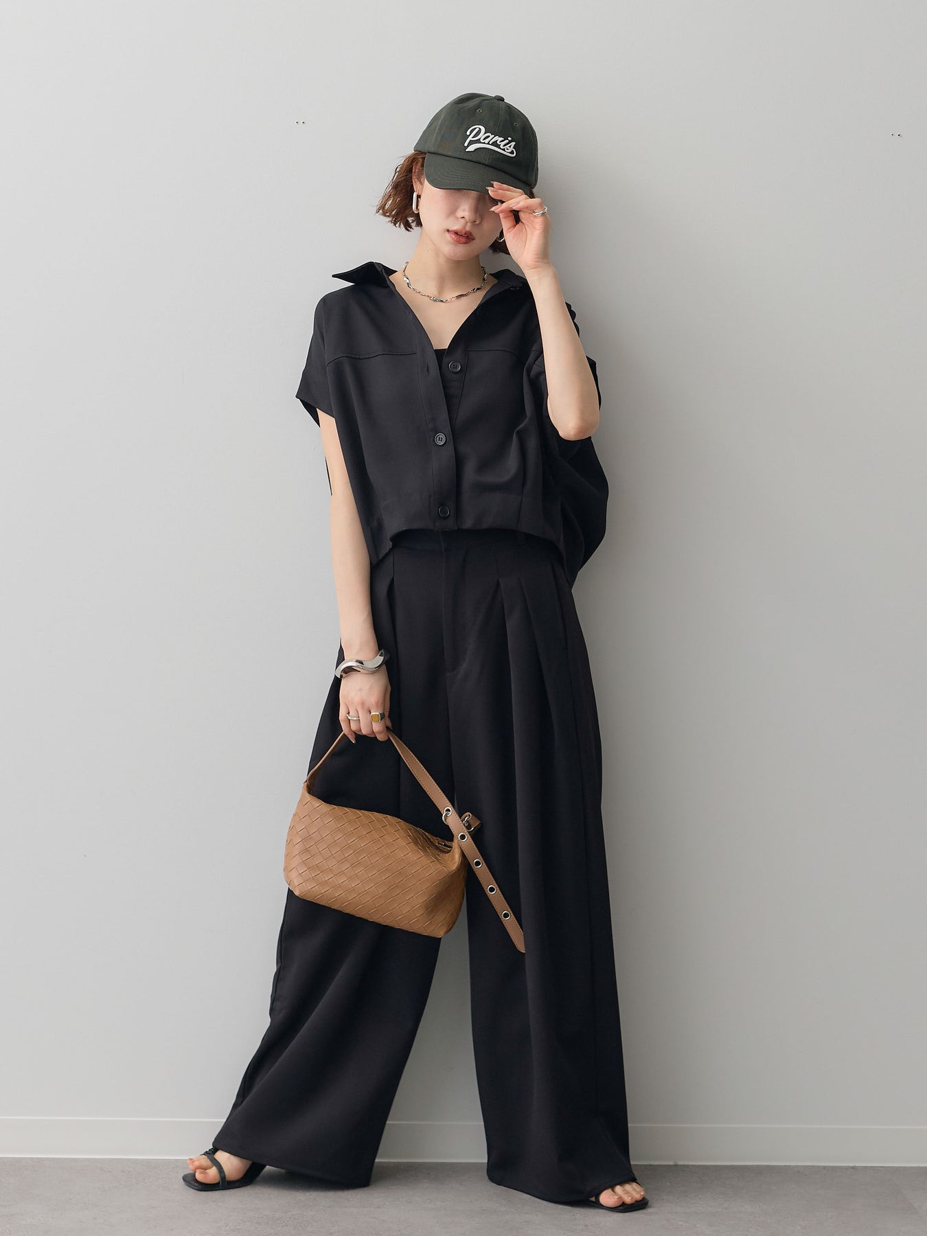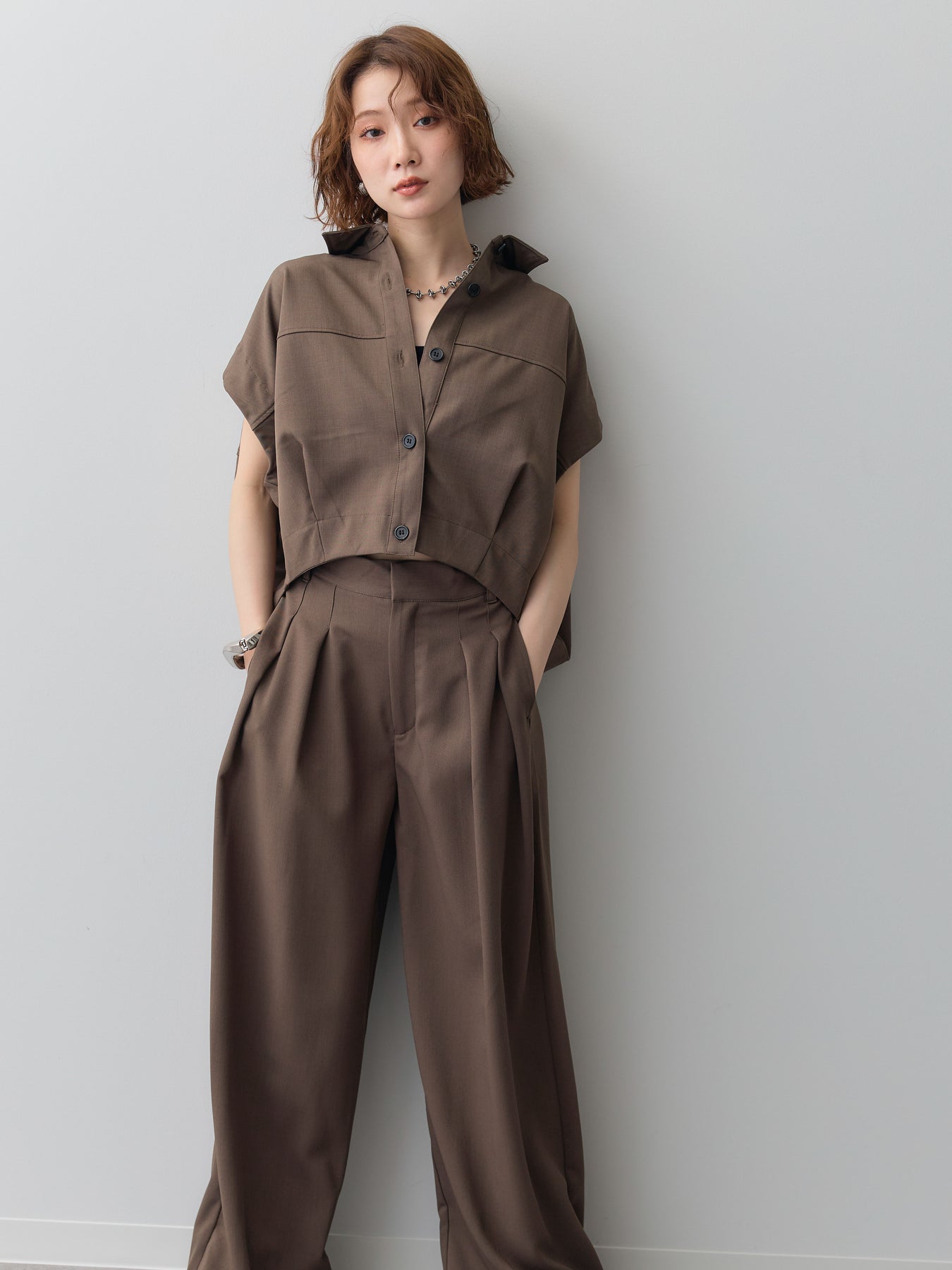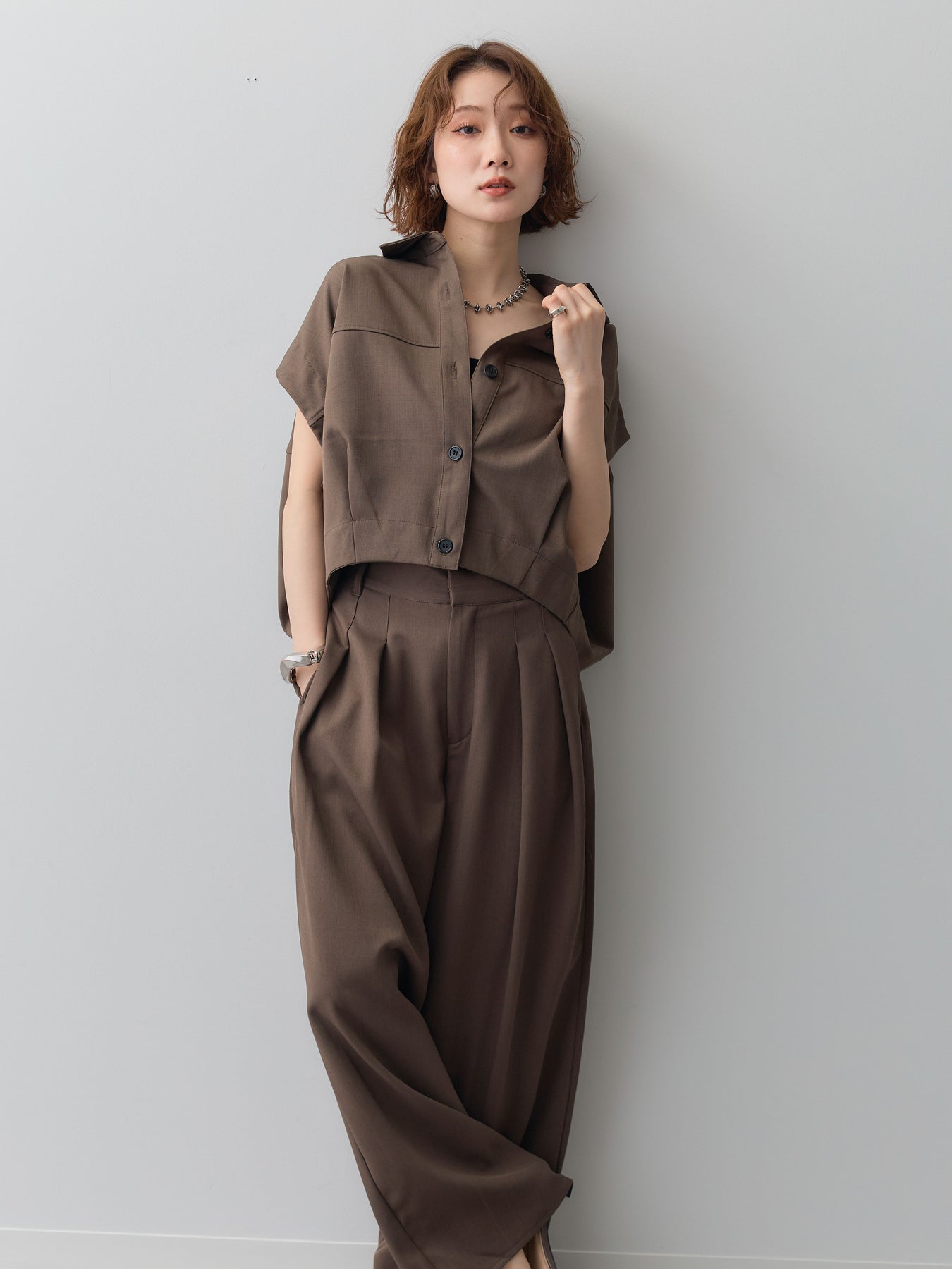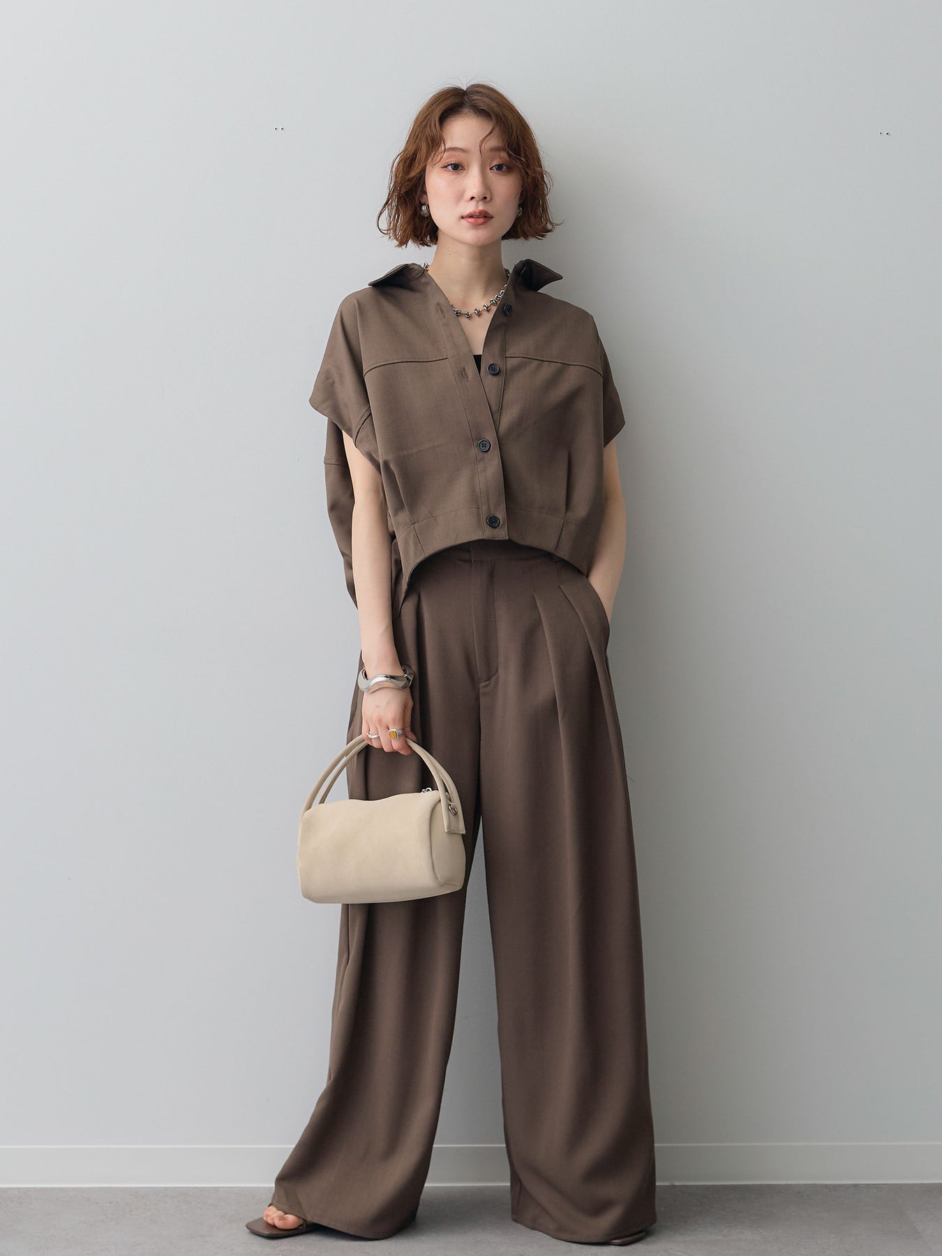 【套裝】縐綢燈籠無袖襯衫 + 縐綢闊腿褲(兩件套)