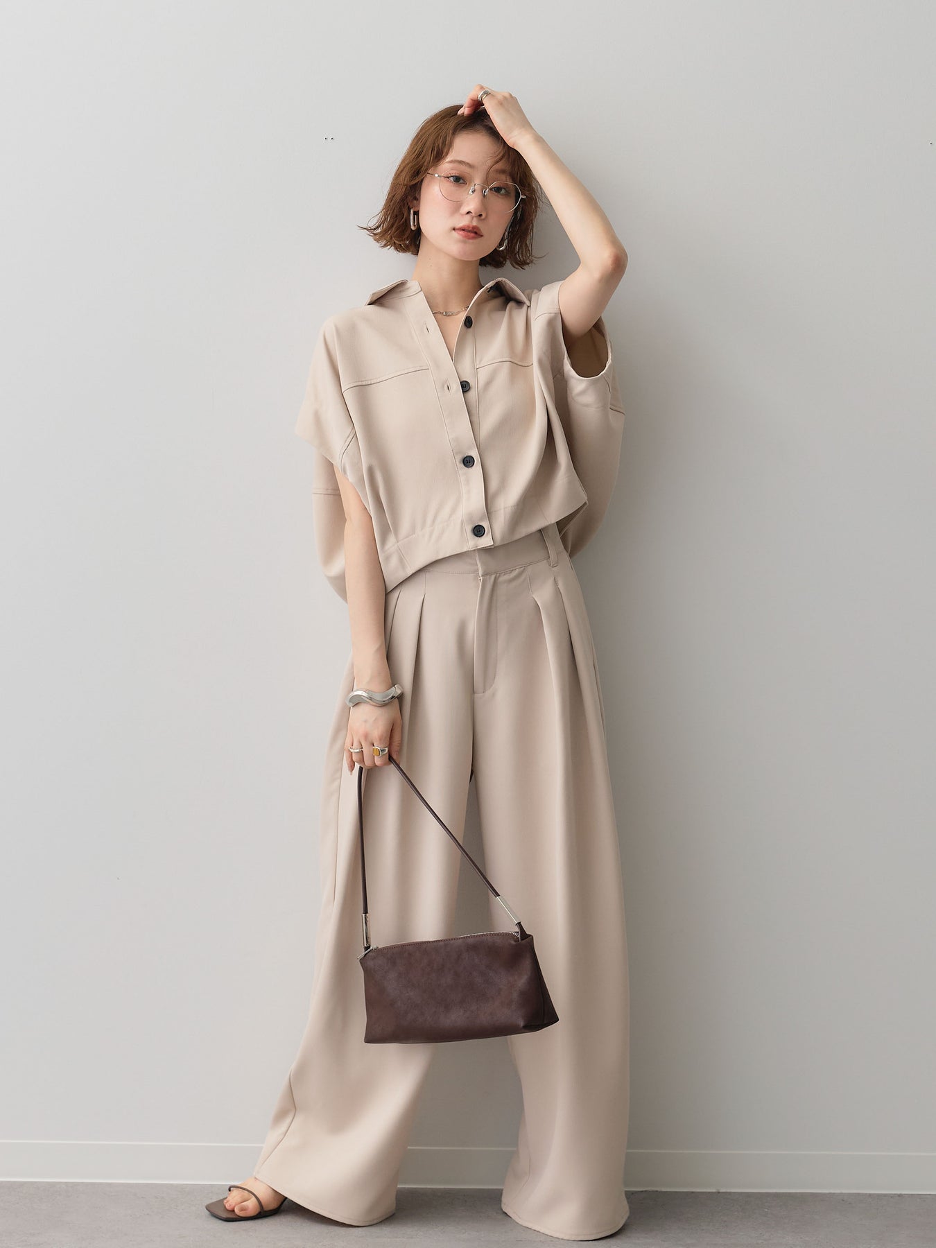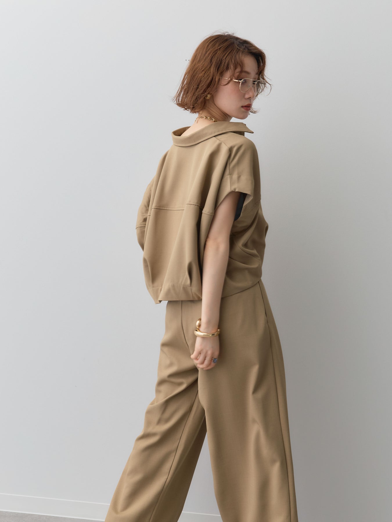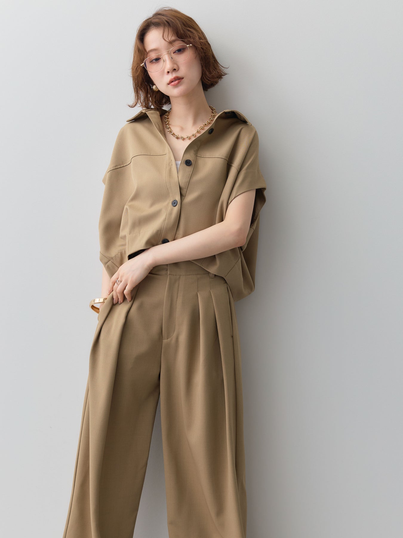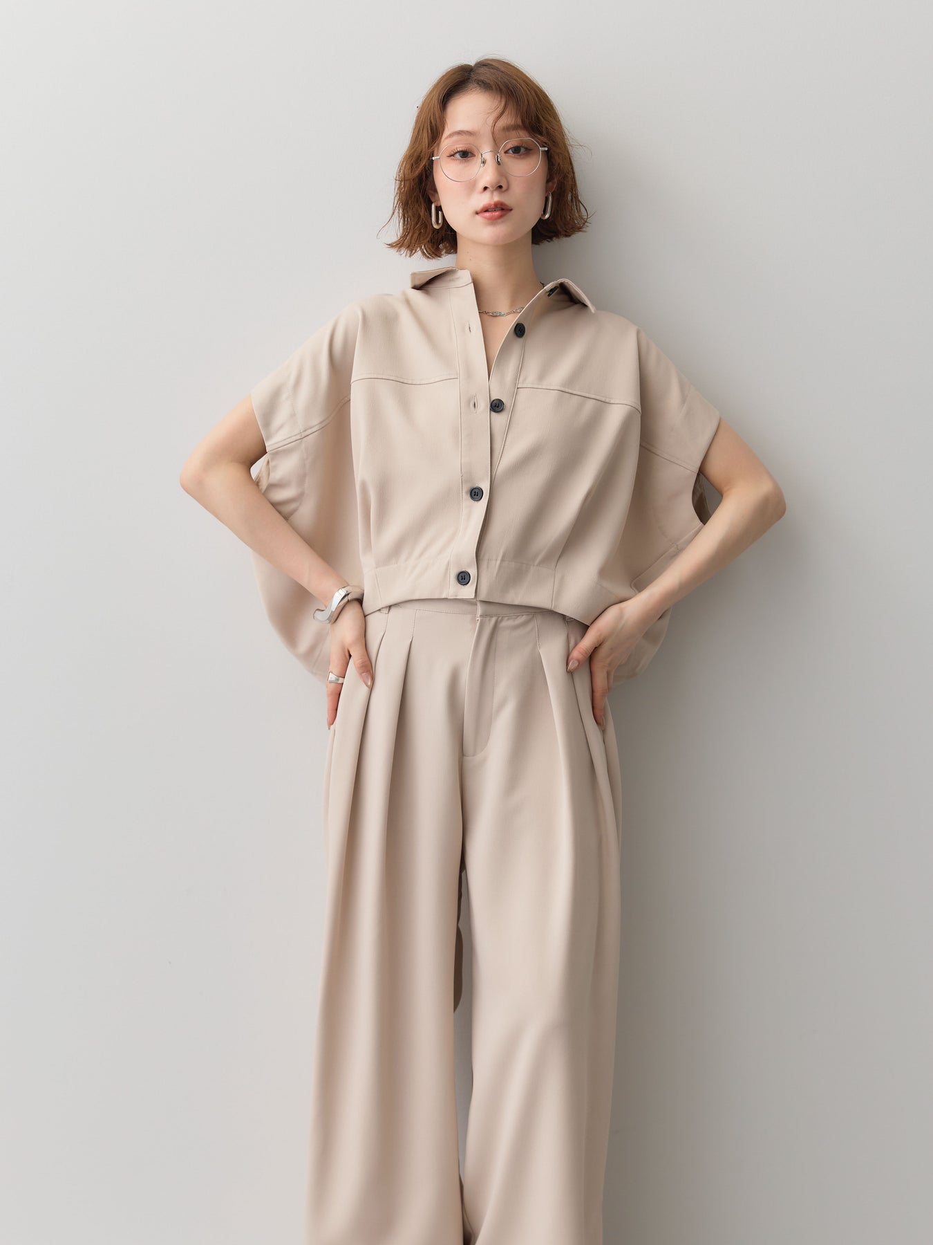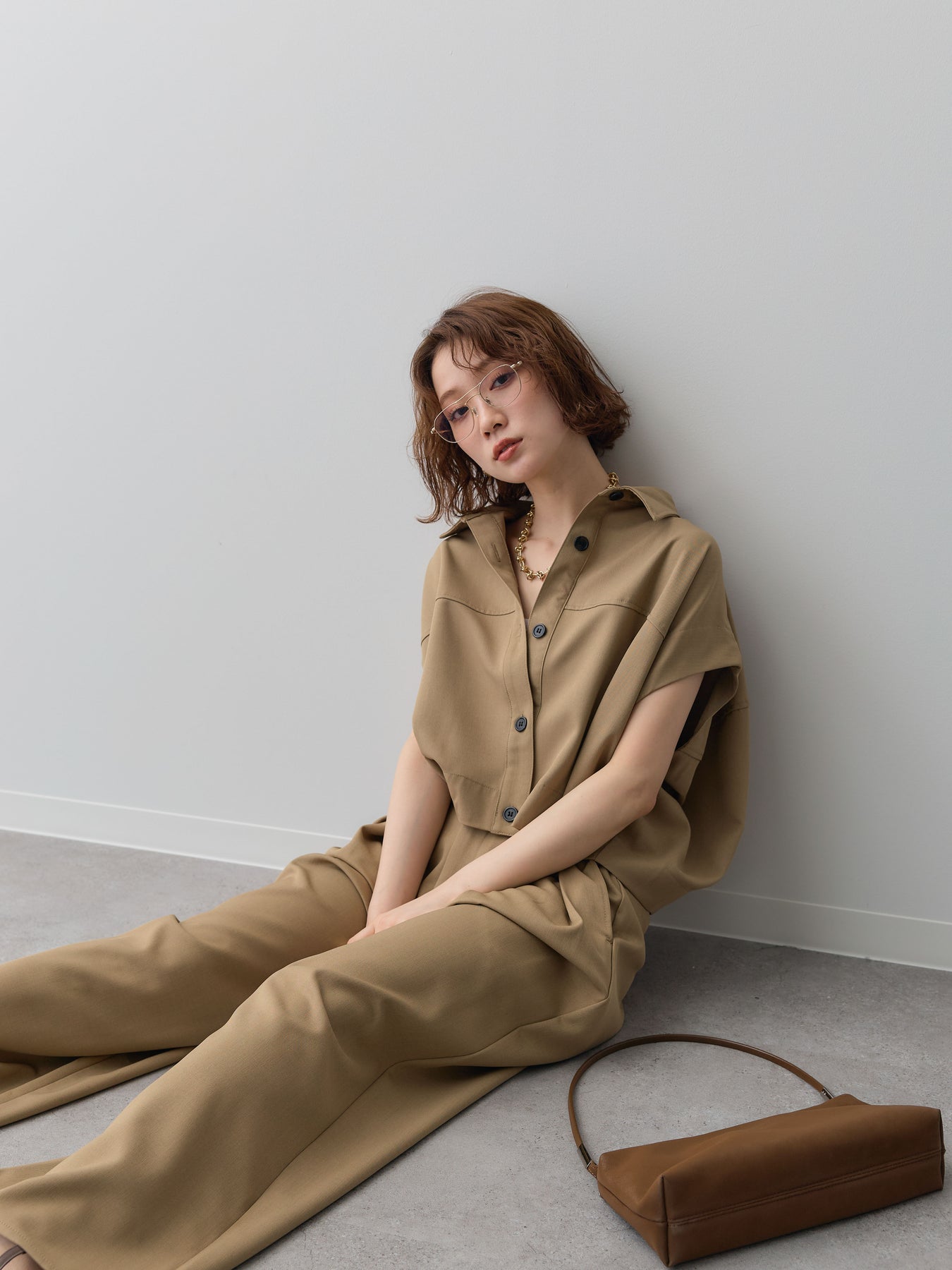 【套裝】縐綢燈籠無袖襯衫 + 縐綢闊腿褲(兩件套)