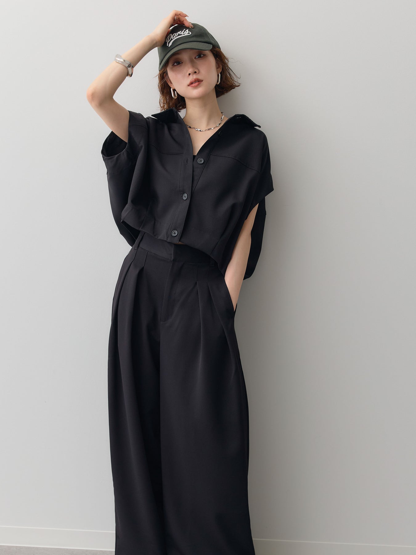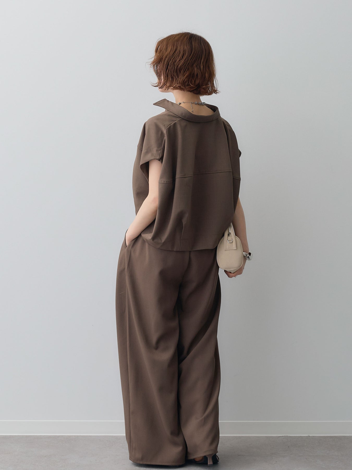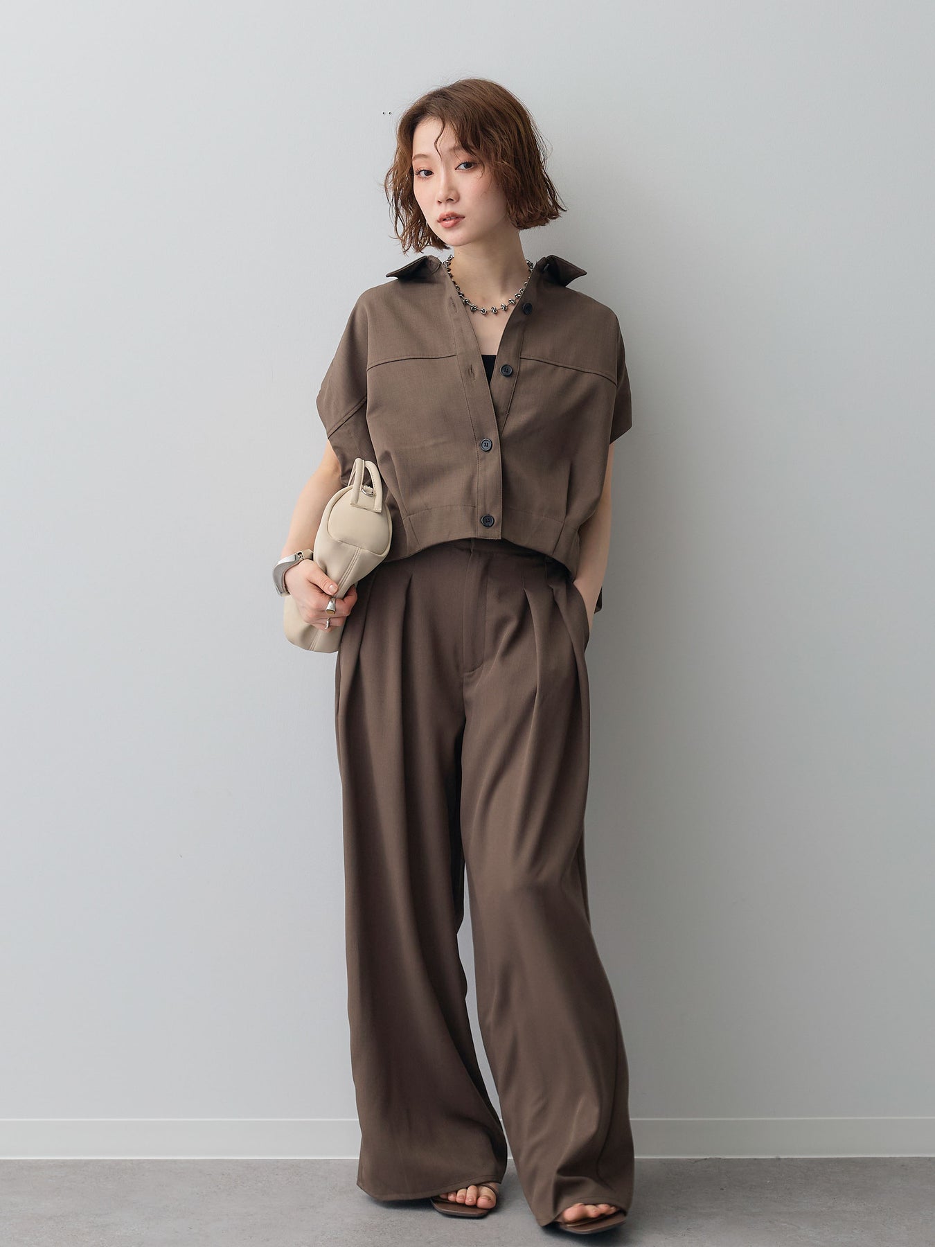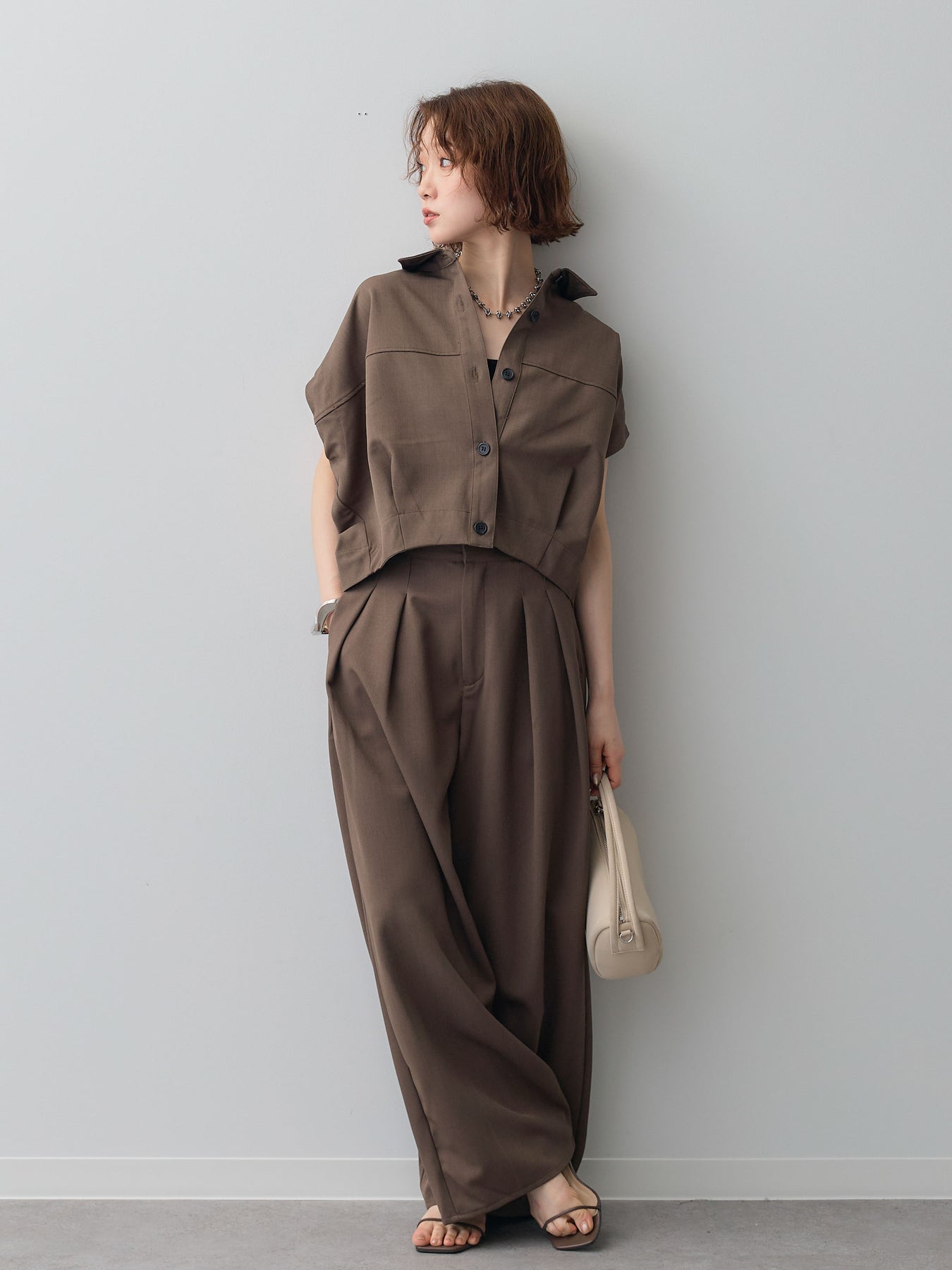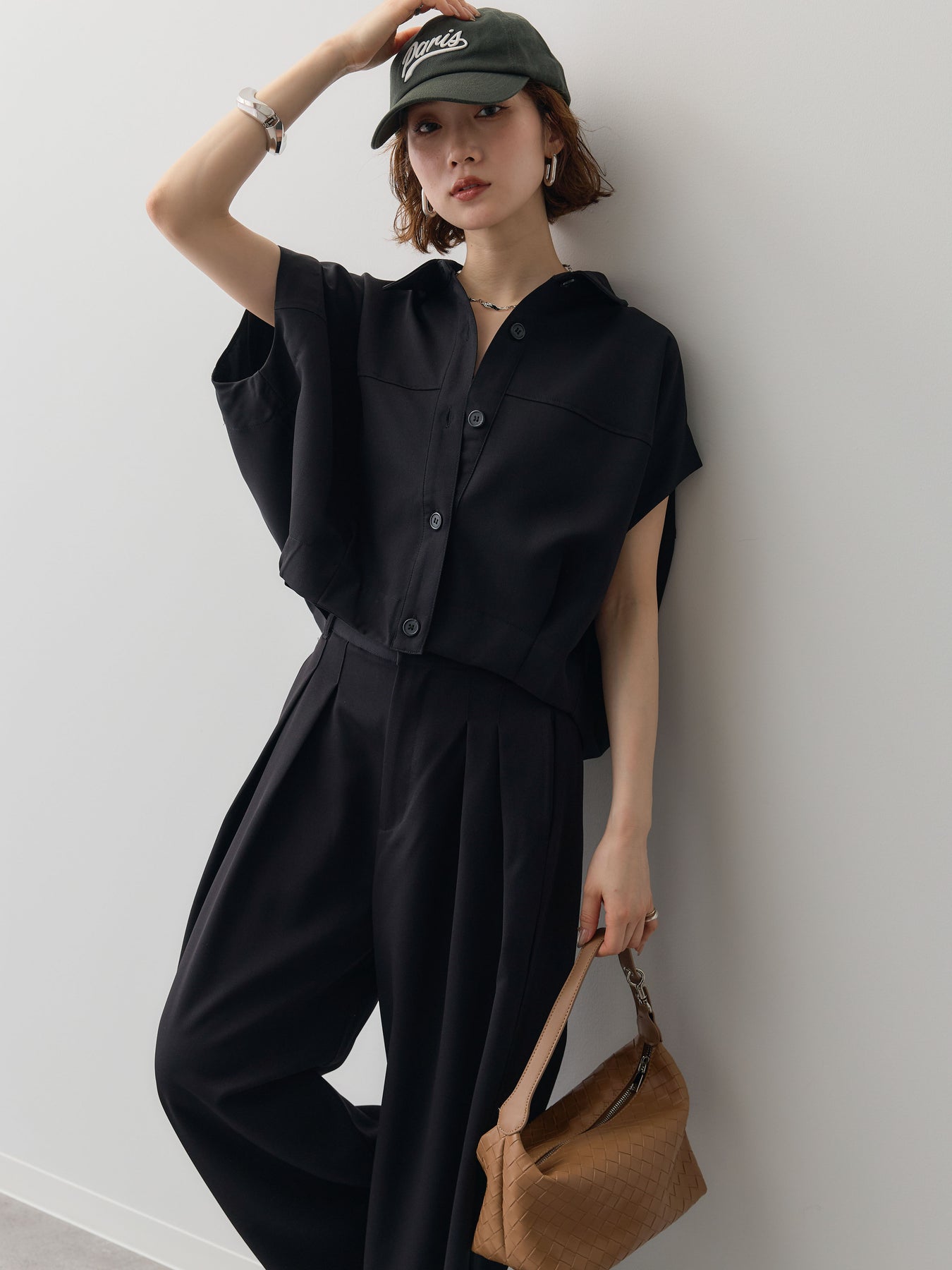 【套裝】縐綢燈籠無袖襯衫 + 縐綢闊腿褲(兩件套)