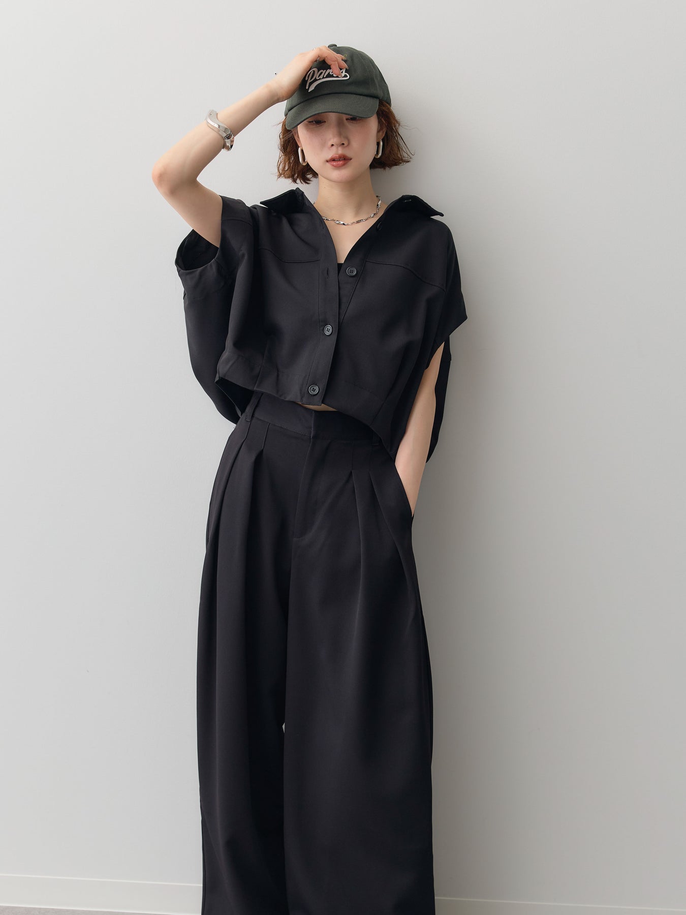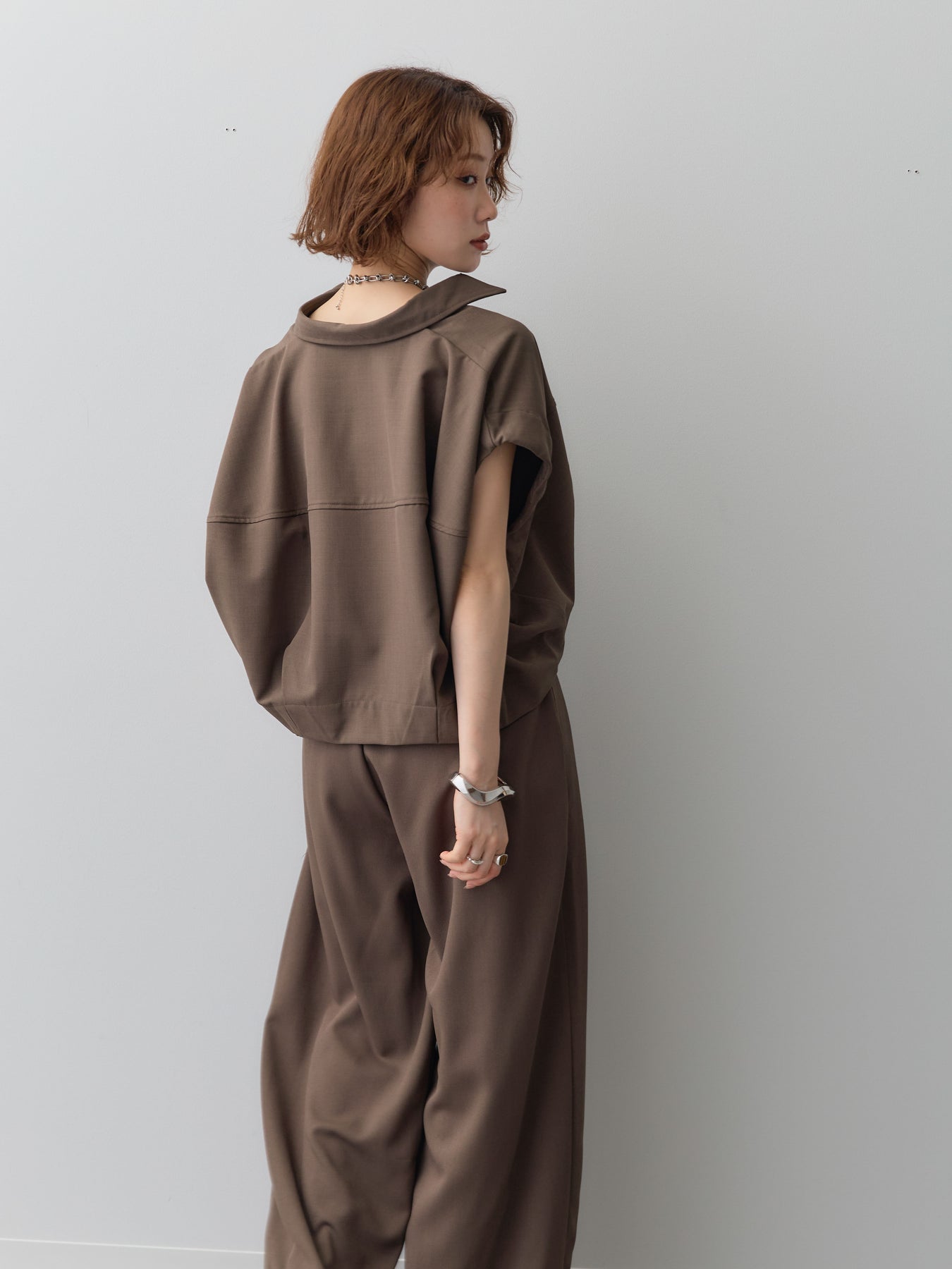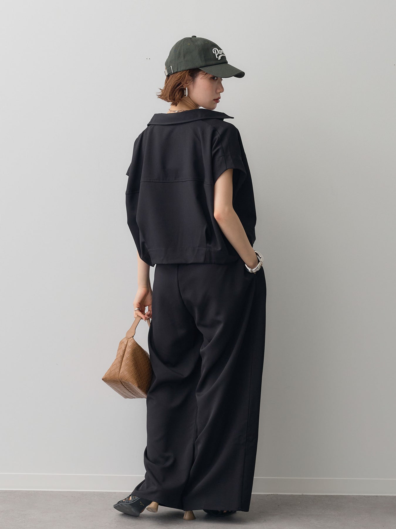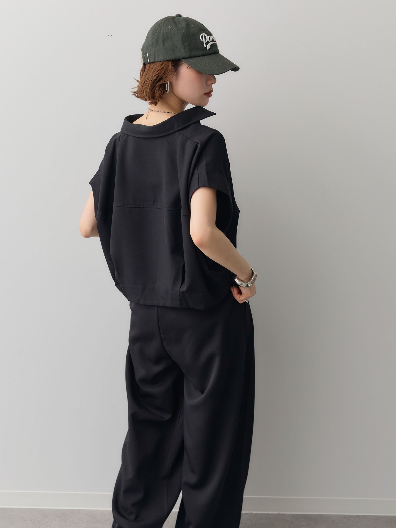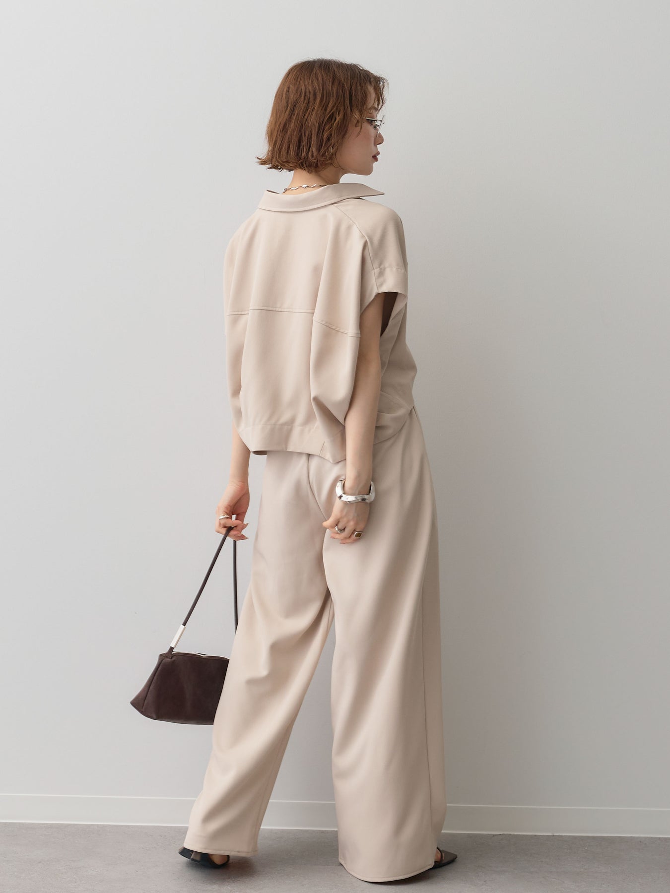 【套裝】縐綢燈籠無袖襯衫 + 縐綢闊腿褲(兩件套)