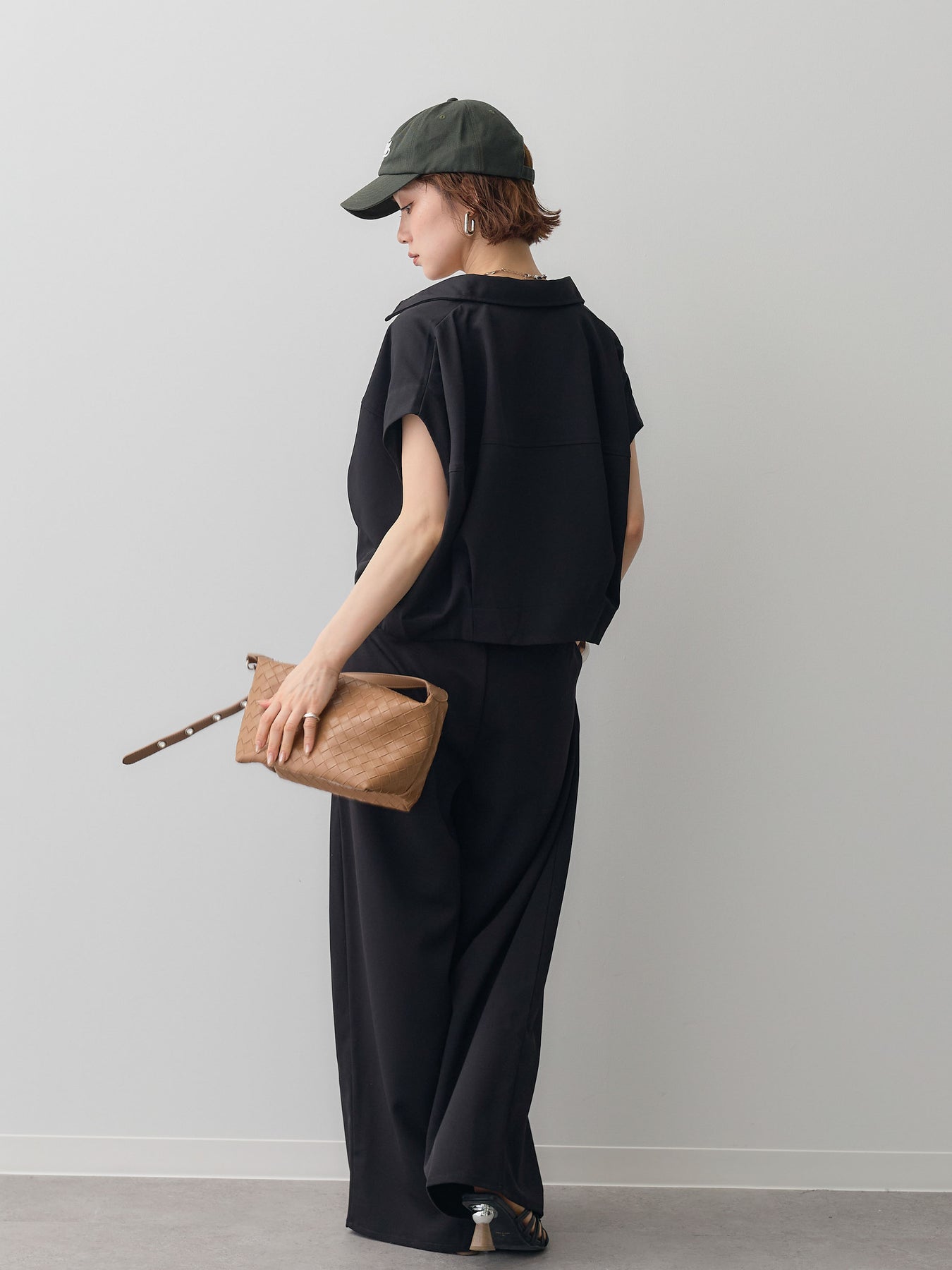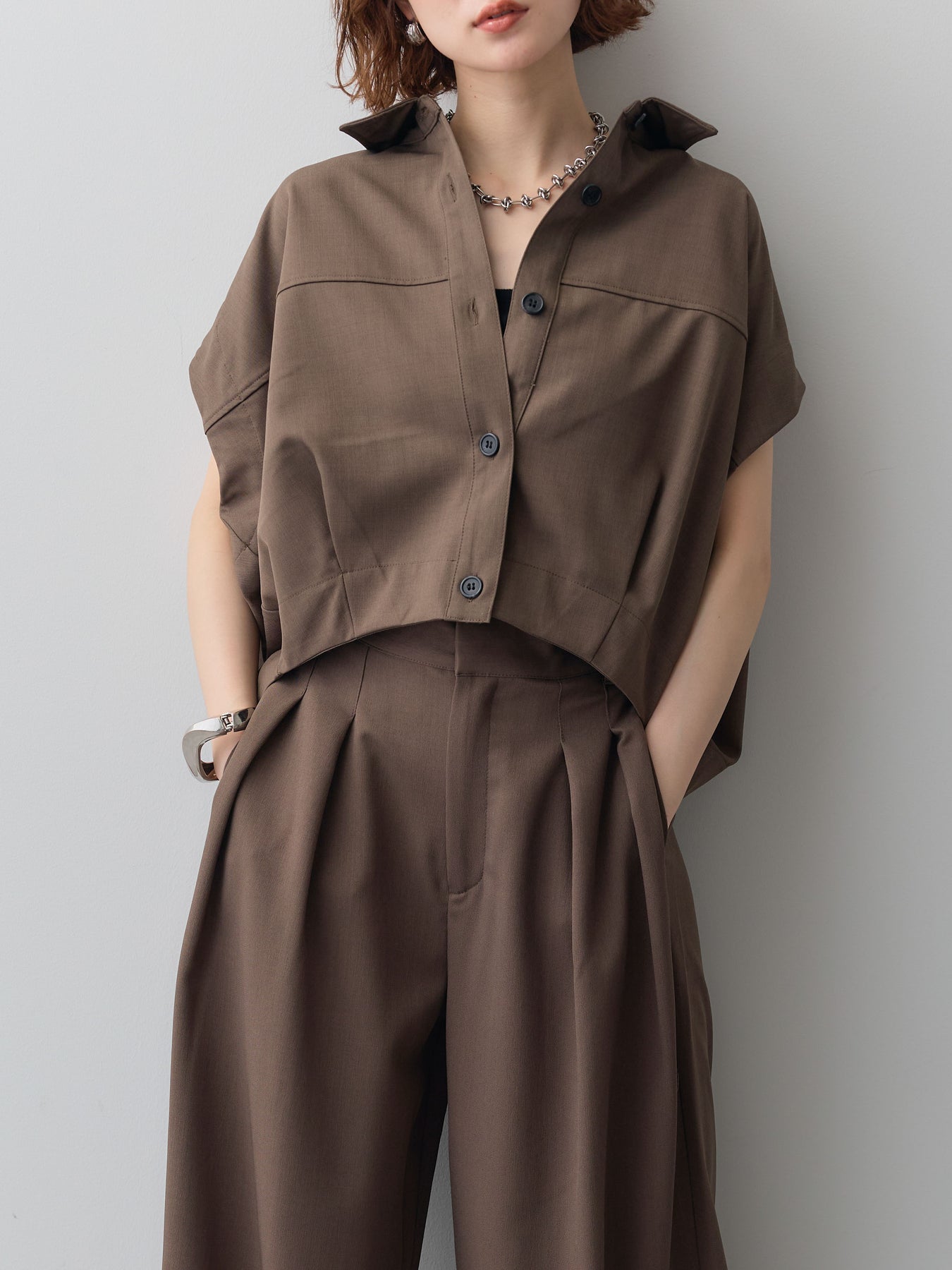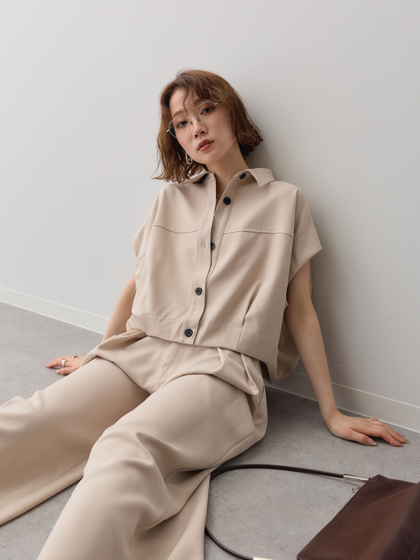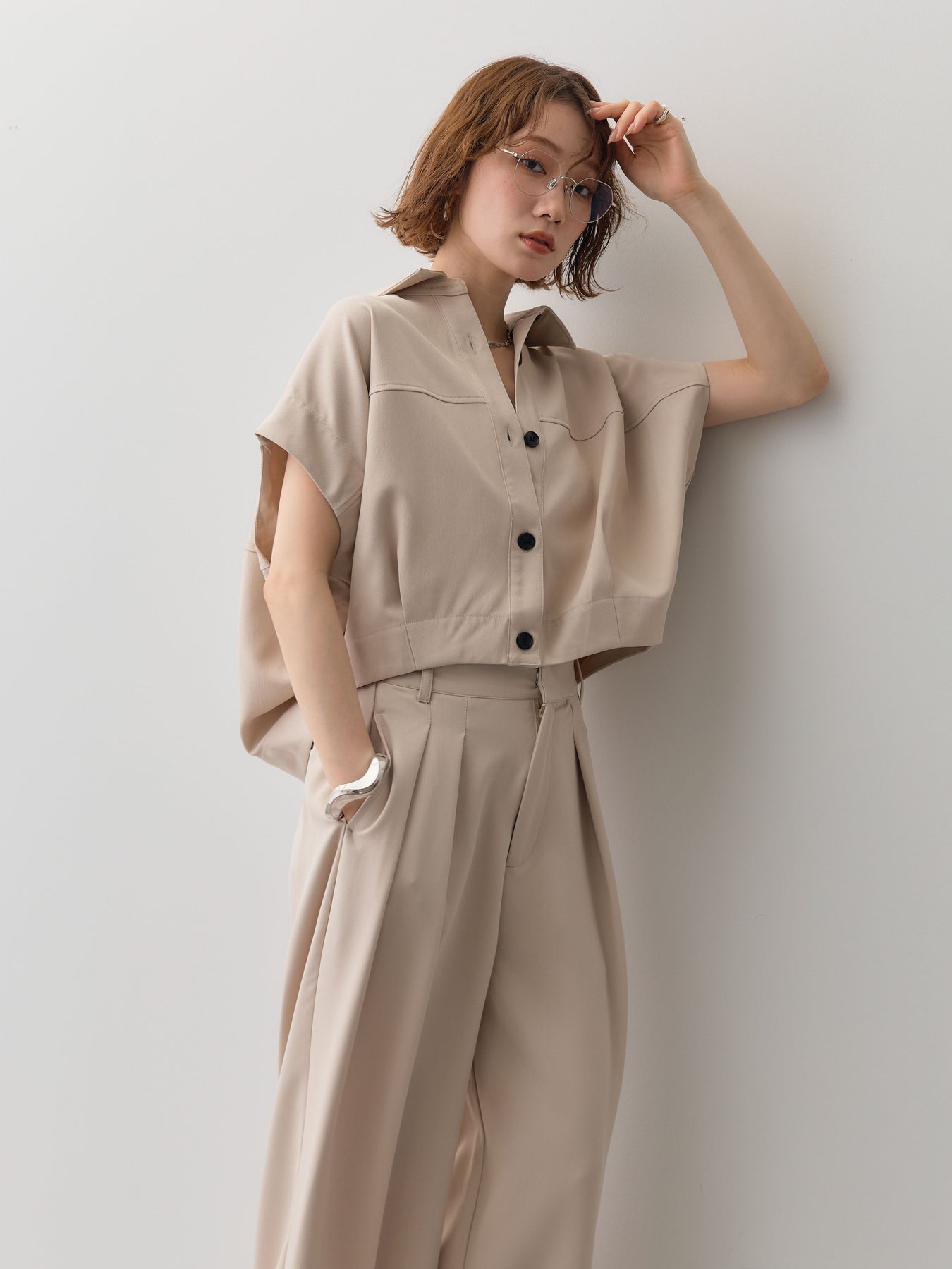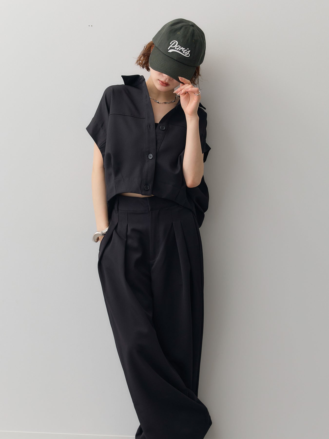 【套裝】縐綢燈籠無袖襯衫 + 縐綢闊腿褲(兩件套)