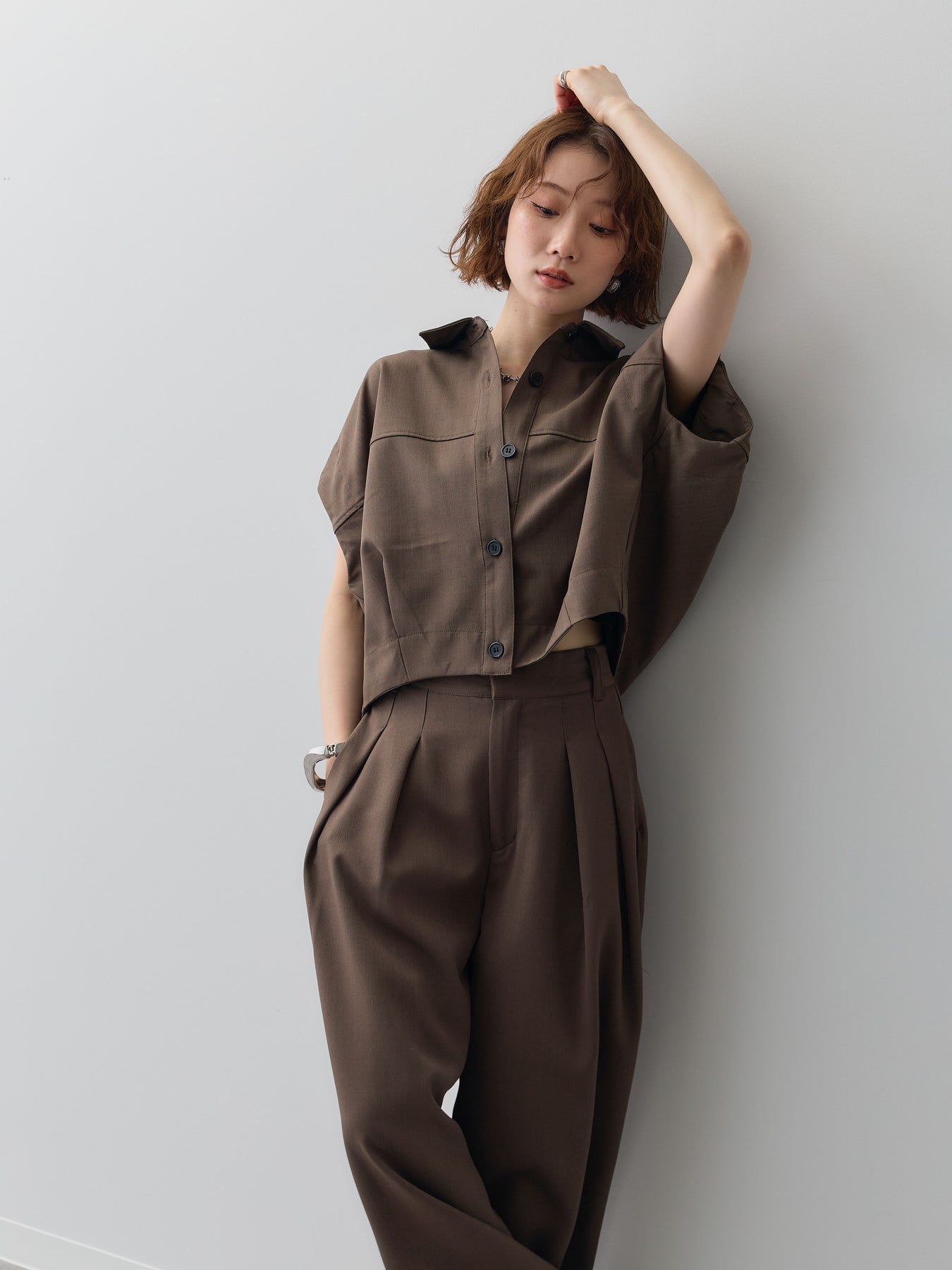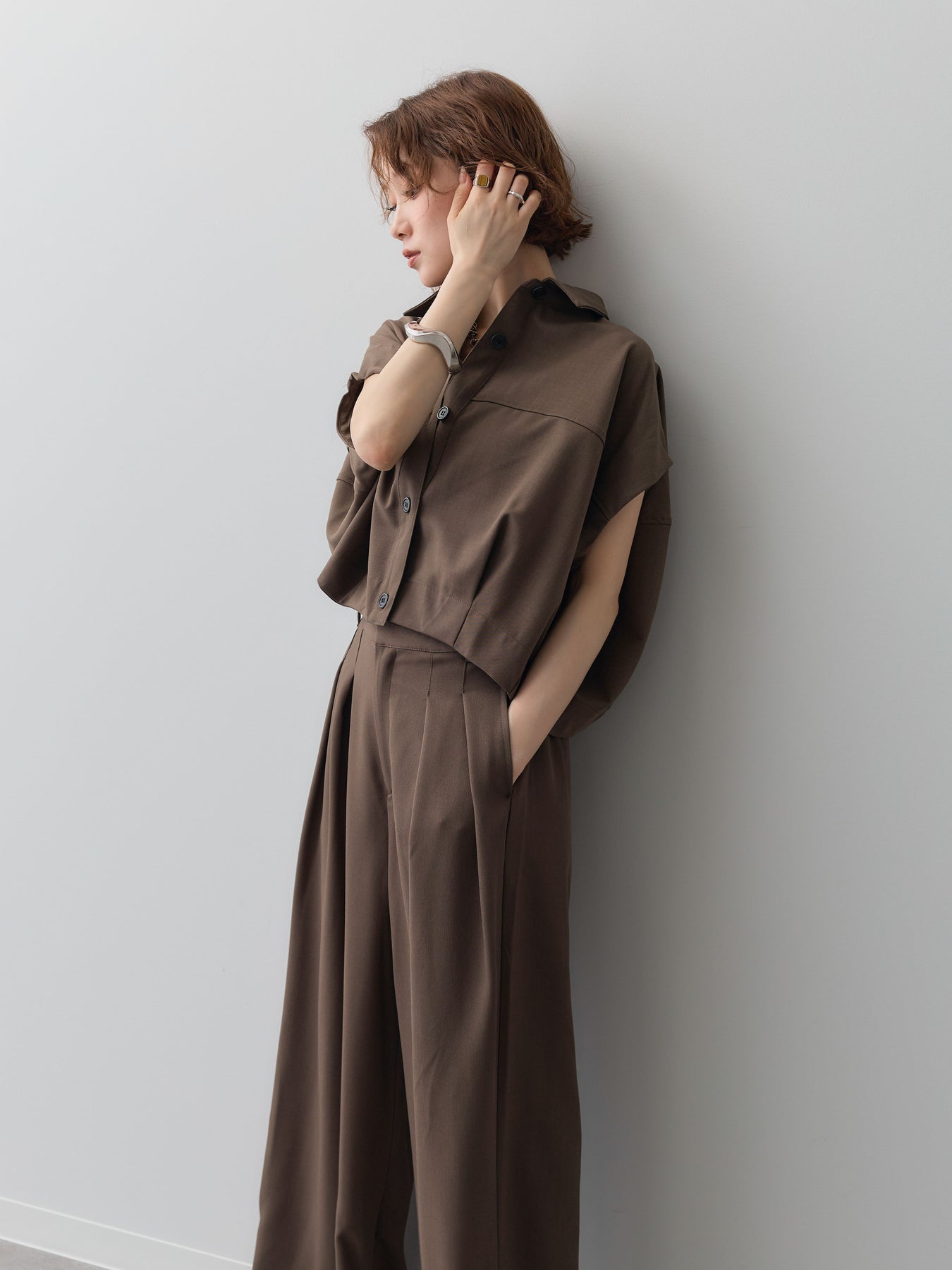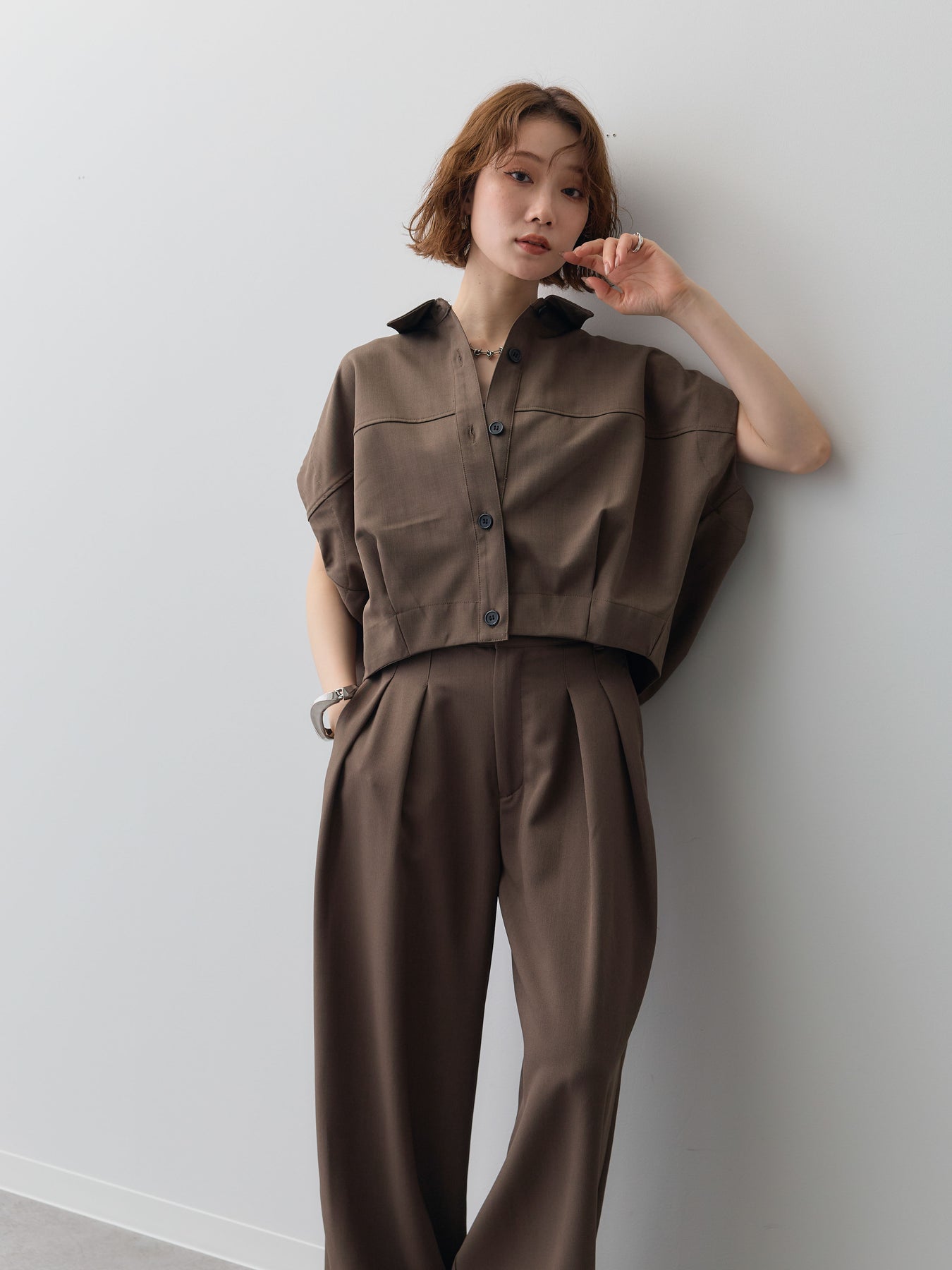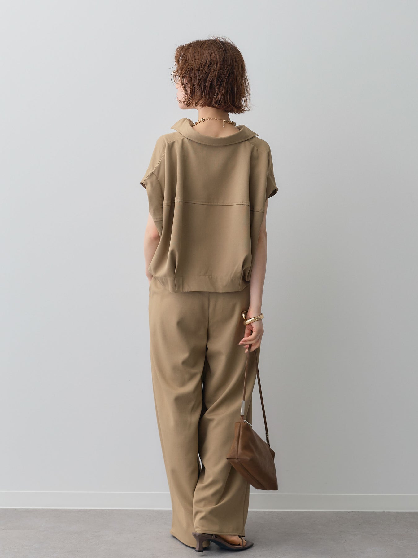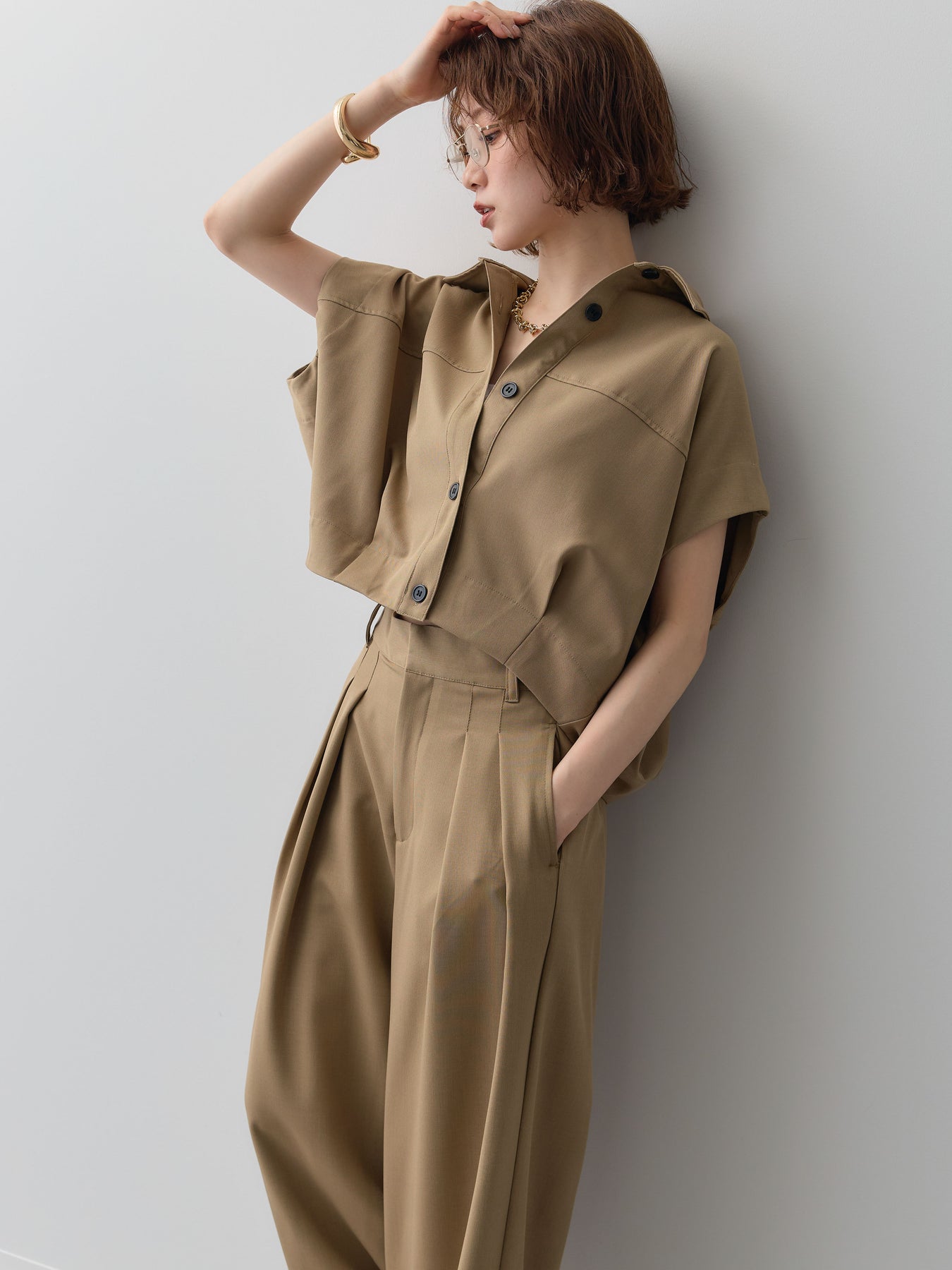 【套裝】縐綢燈籠無袖襯衫 + 縐綢闊腿褲(兩件套)