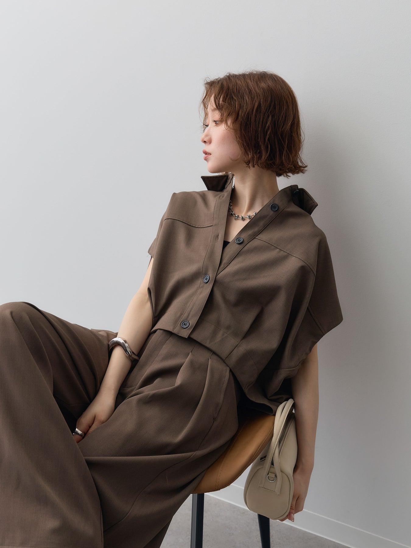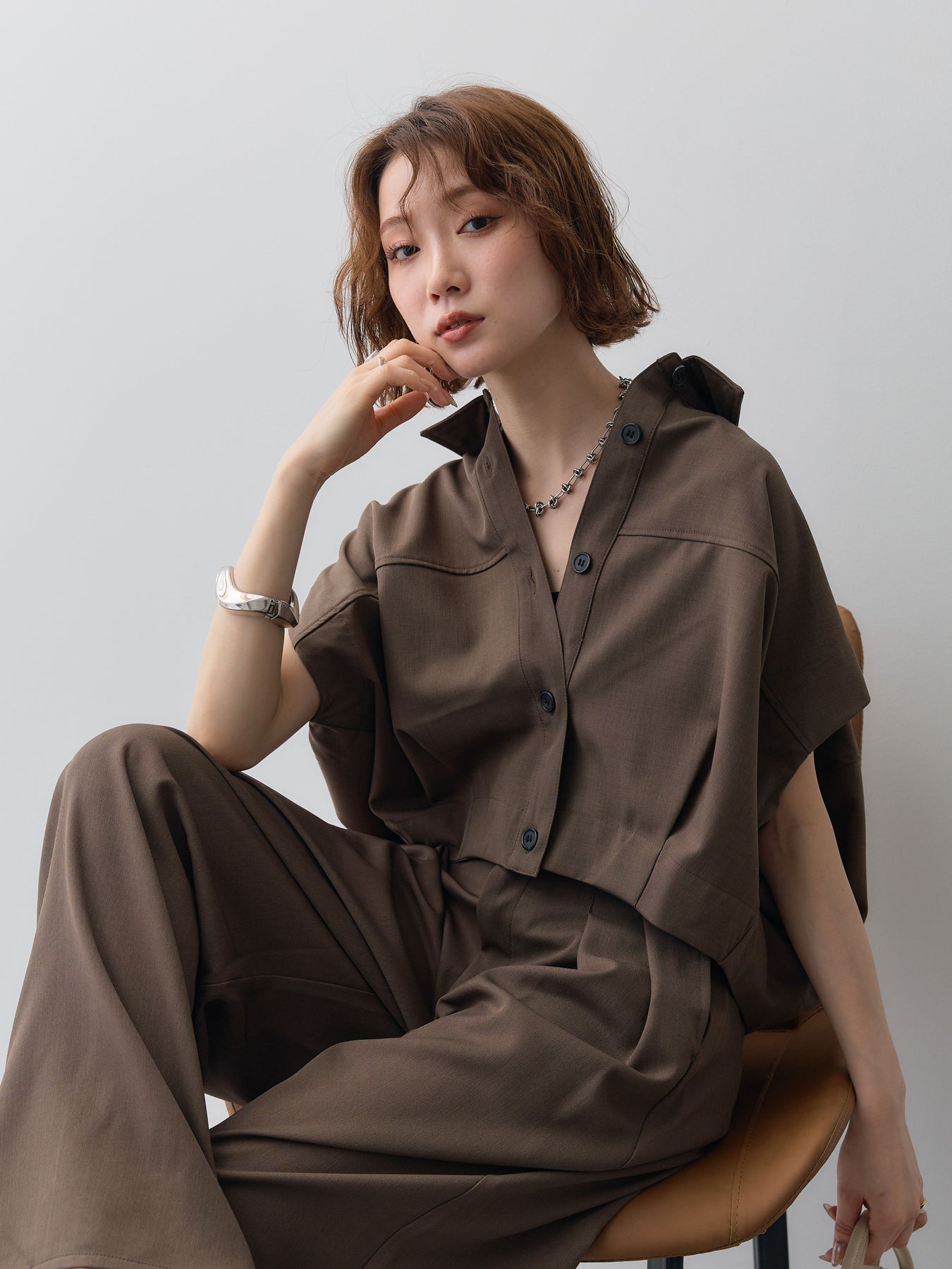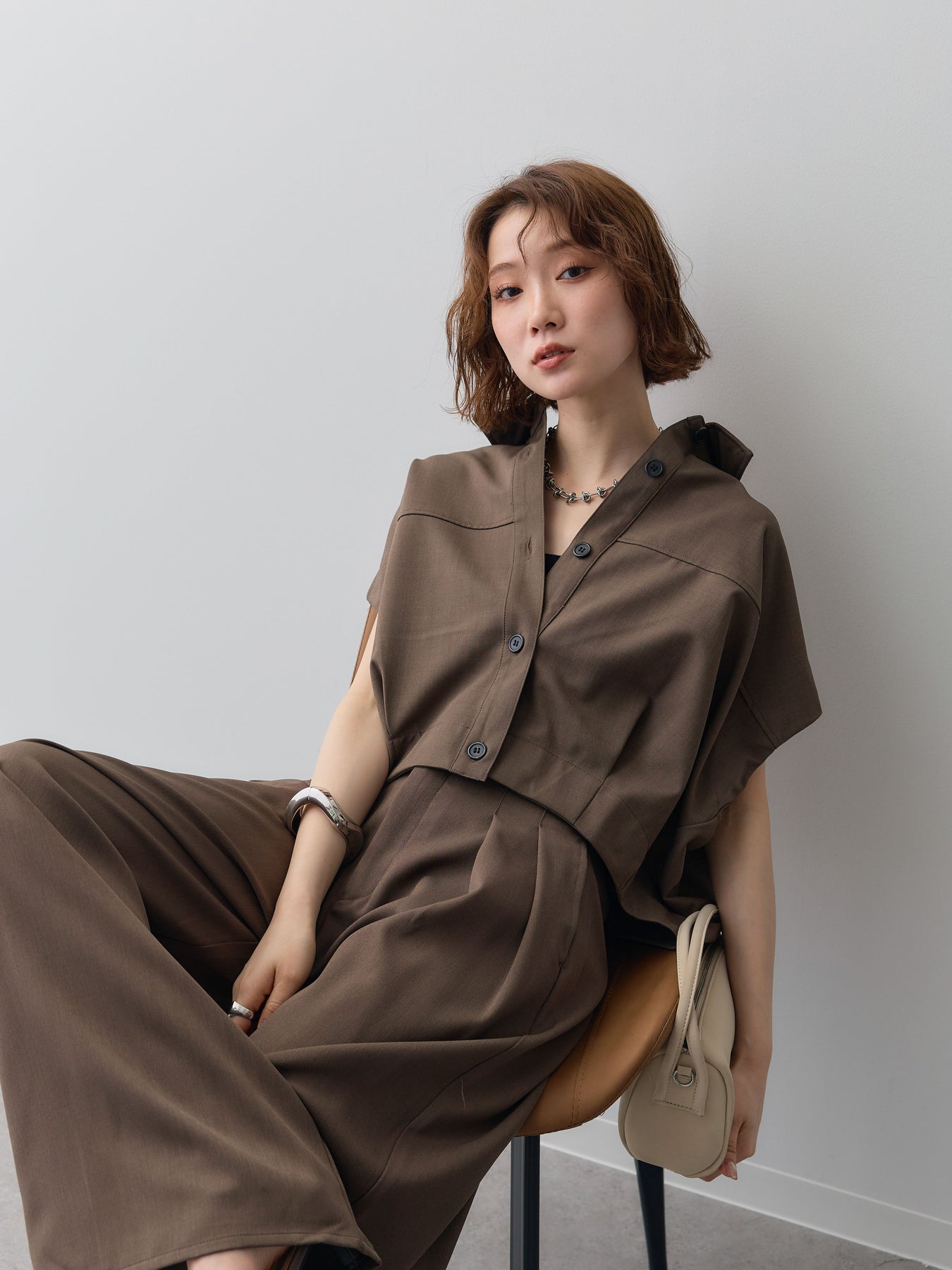 這款無袖襯衫擁有令人印象深刻的圓潤燈籠輪廓。縐綢布料柔軟的質地和獨特的垂墜感營造出輕盈優雅的氣質。立體的版型與修身的長度完美平衡,使其成為簡約卻不失亮點的單品。前襟扣環設計,既可作為上衣,也可作為輕薄外套,拓展您的穿搭選擇。它易於搭配各種下裝,從牛仔褲到正裝褲,輕鬆融入您的日常衣櫥。 *請注意,除下裝和吊帶背心(內衣)外,其他商品均不包含內衣。