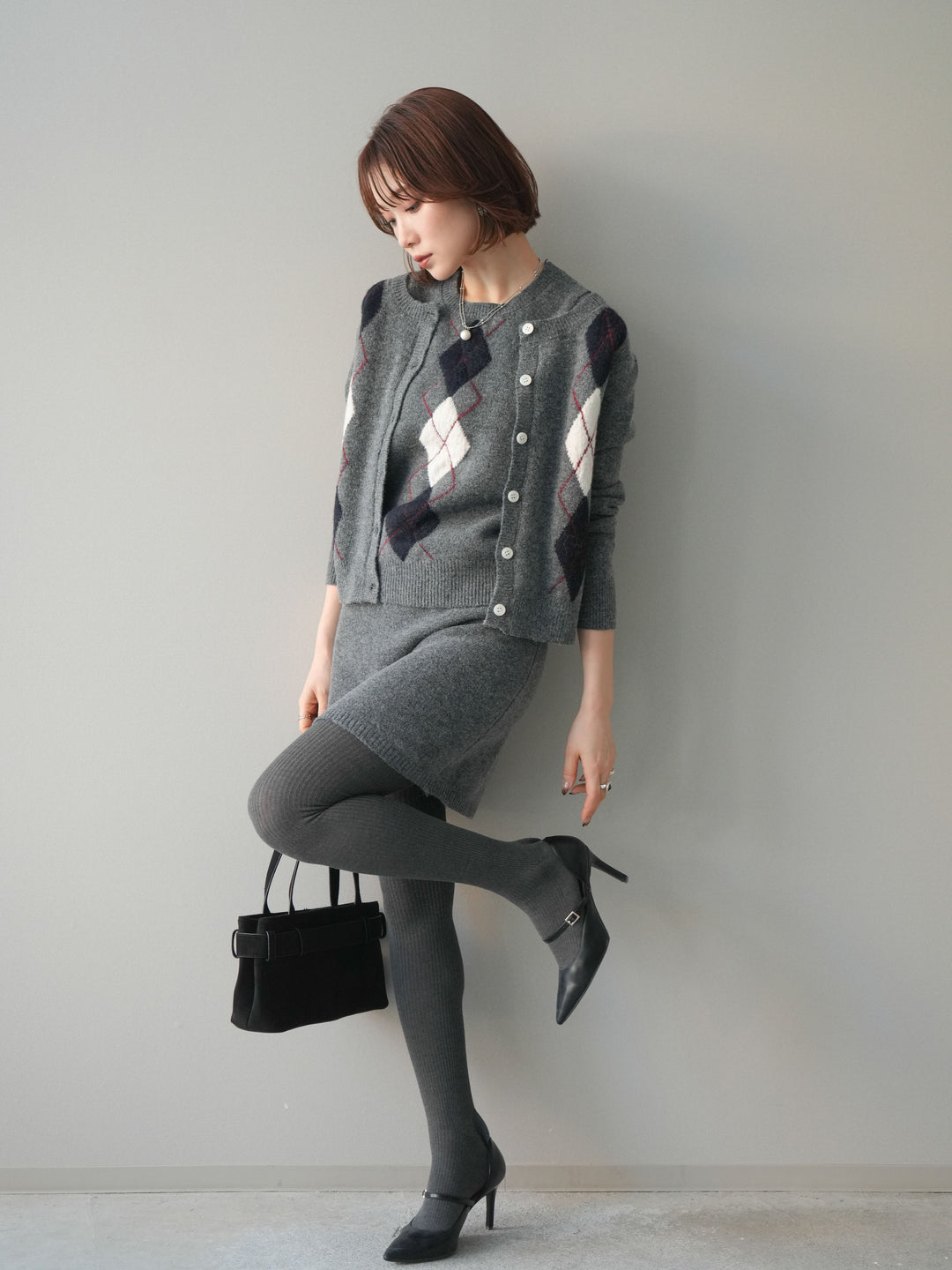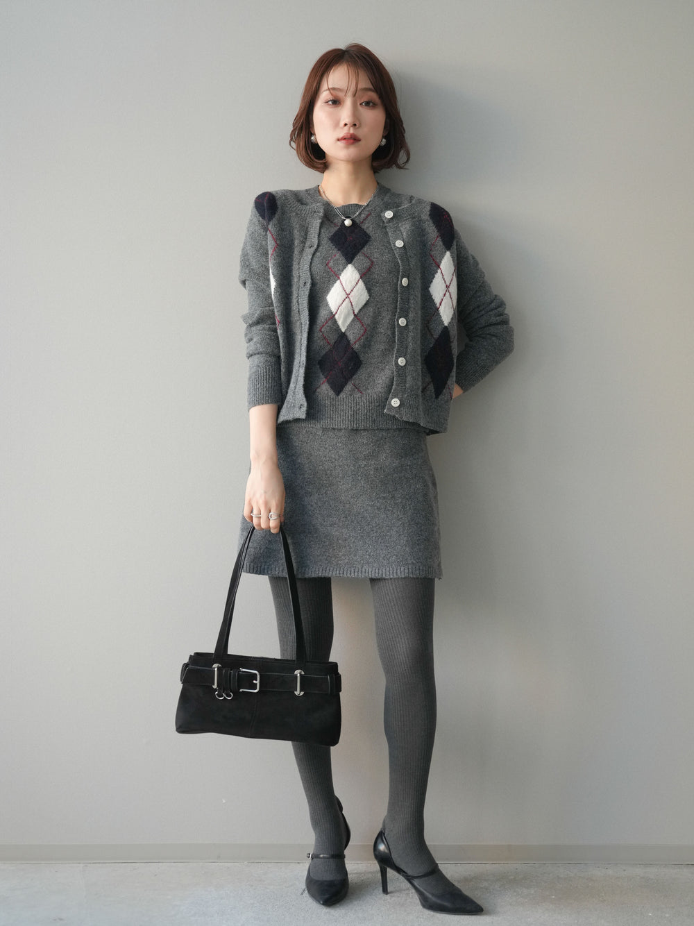 [SET]アーガイル柄ニットプルオーバー&ミニスカート