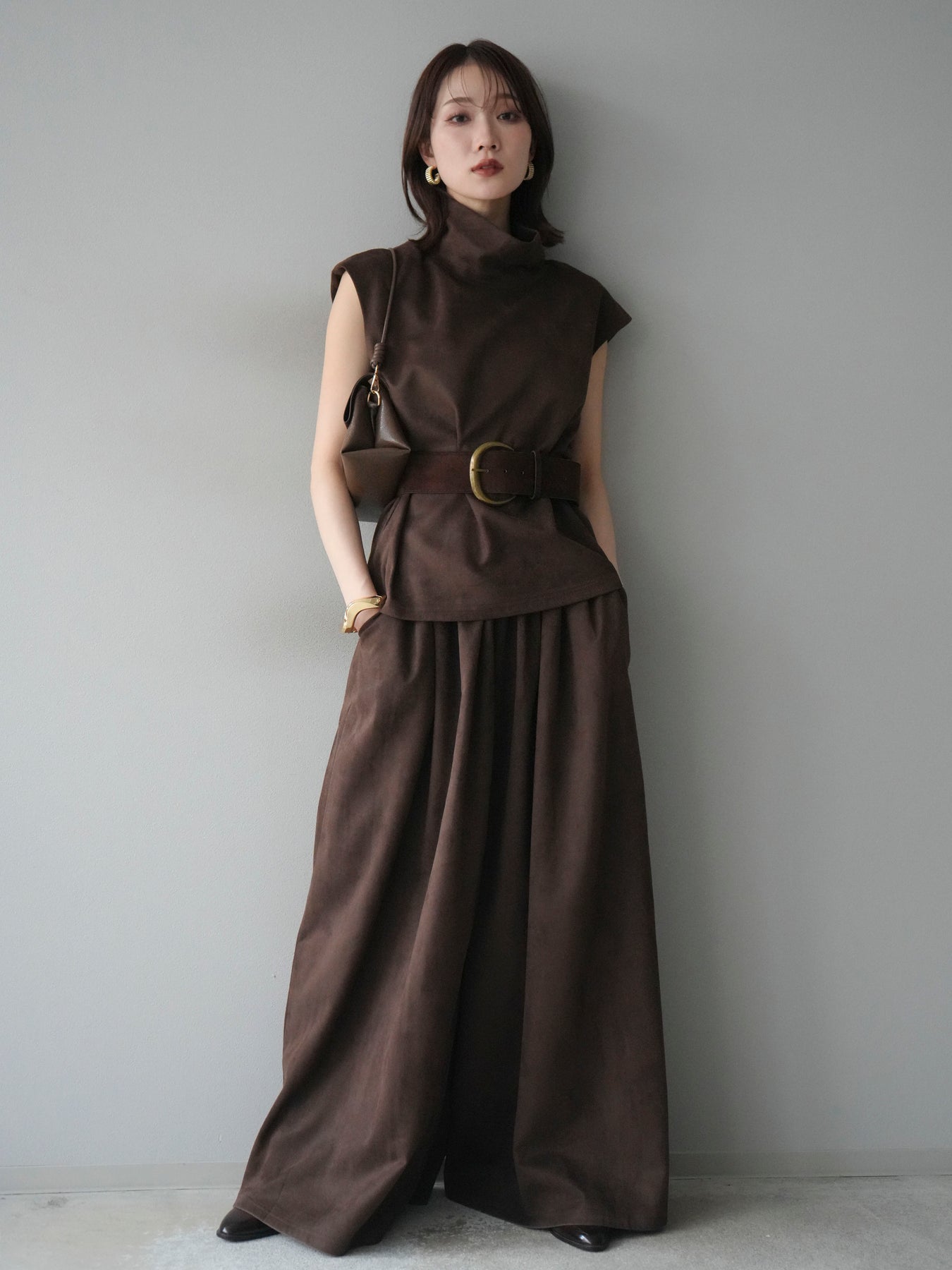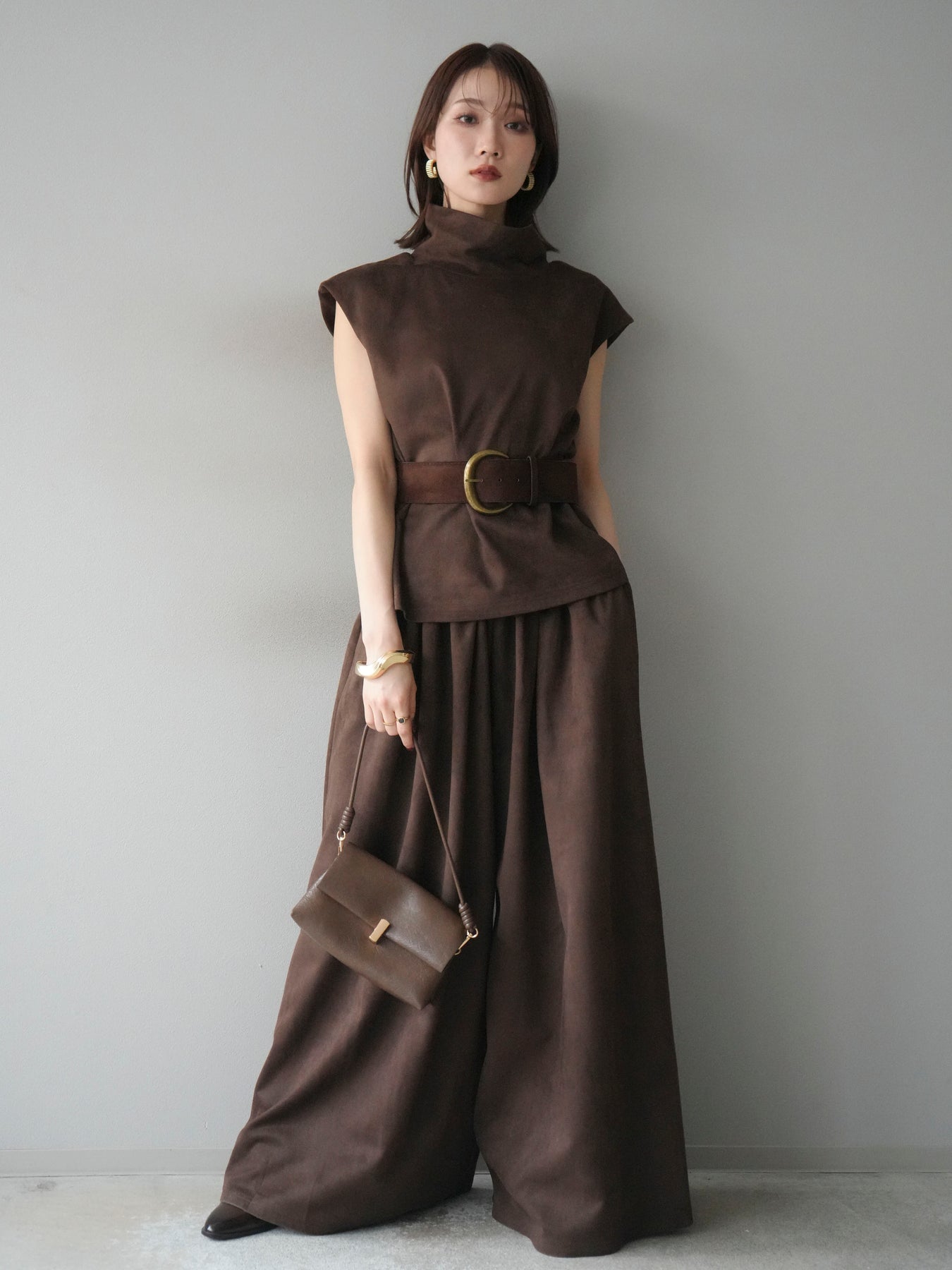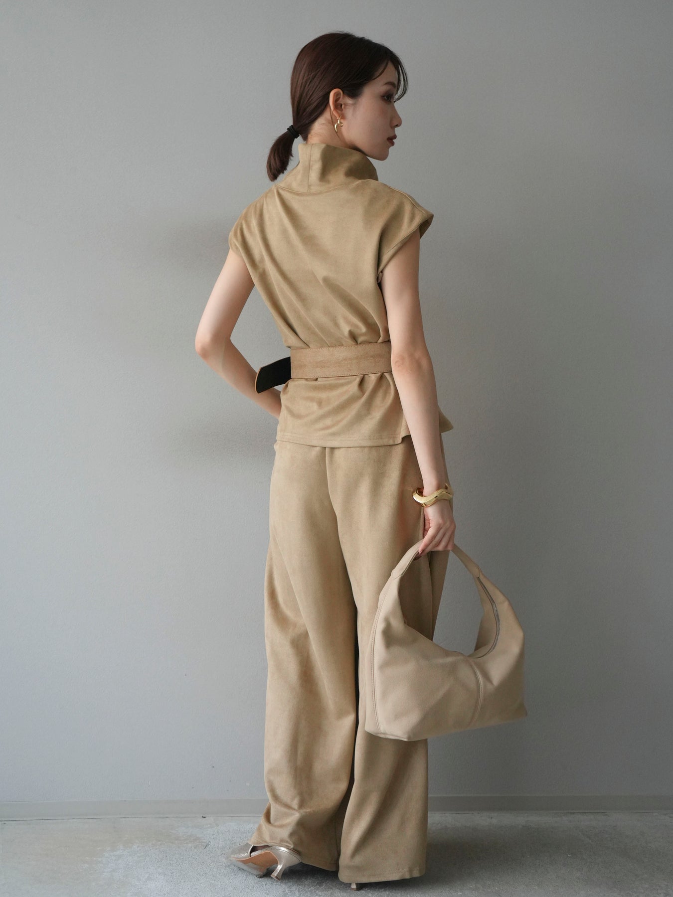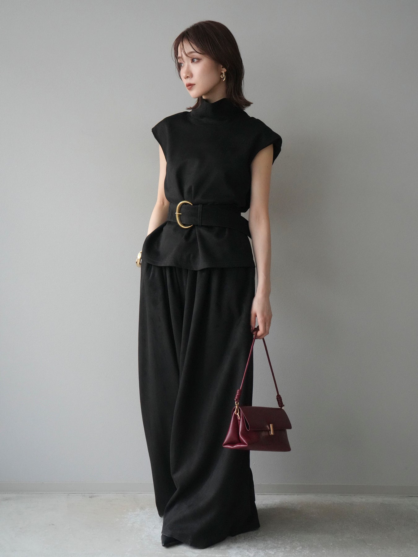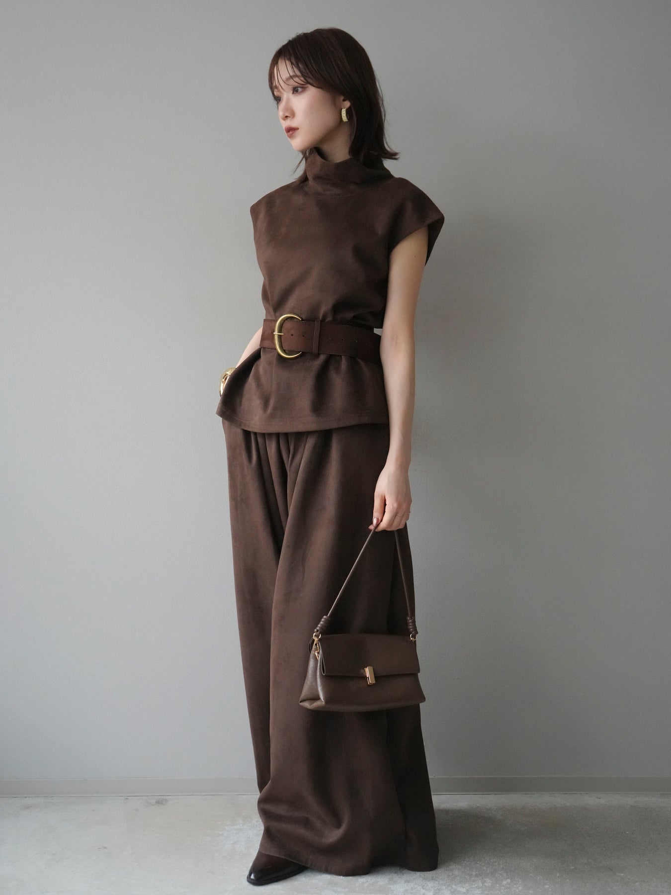 [SET]ベルト付スエードハイネックプルオーバー&ワイドパンツSET UP