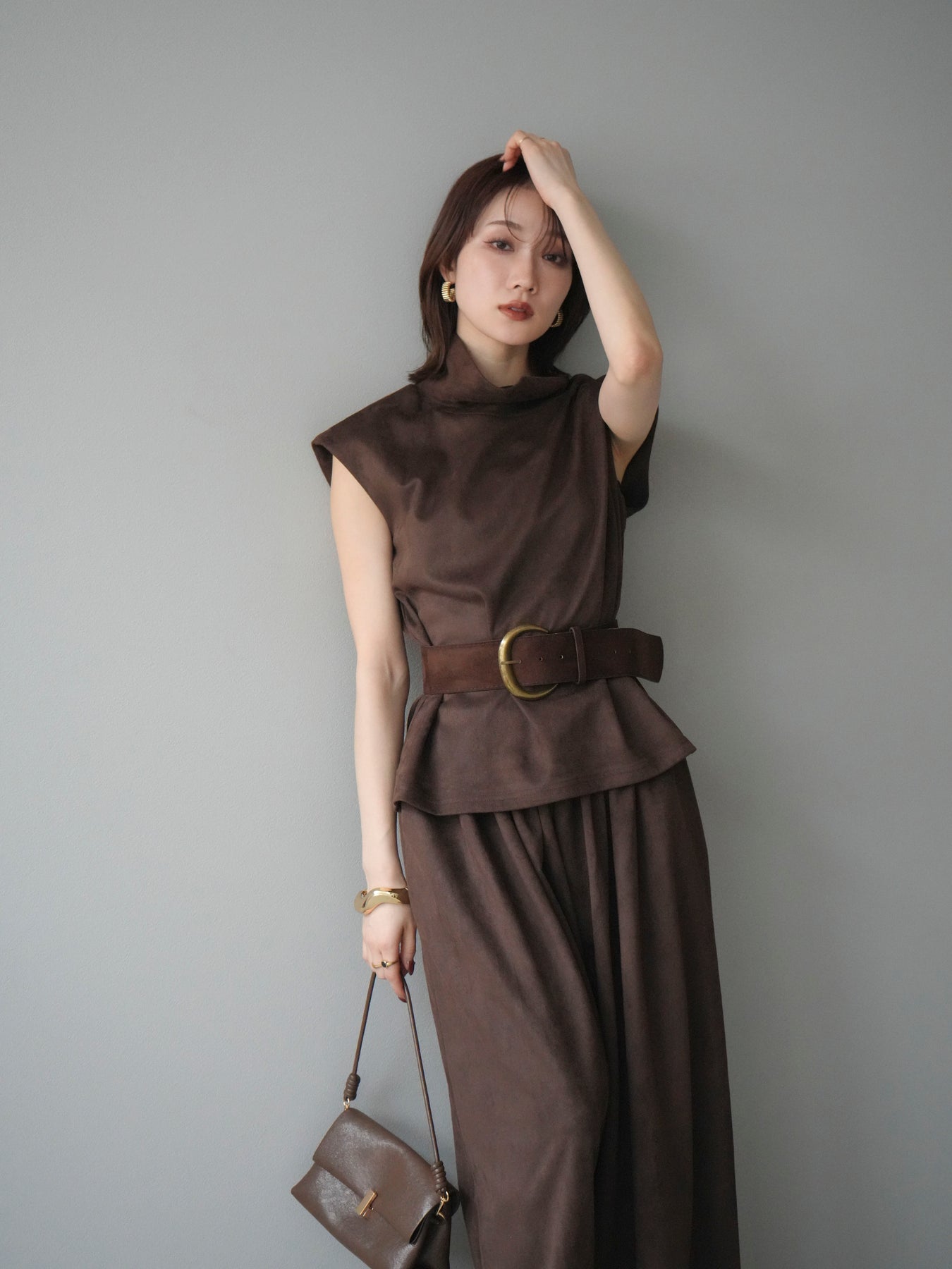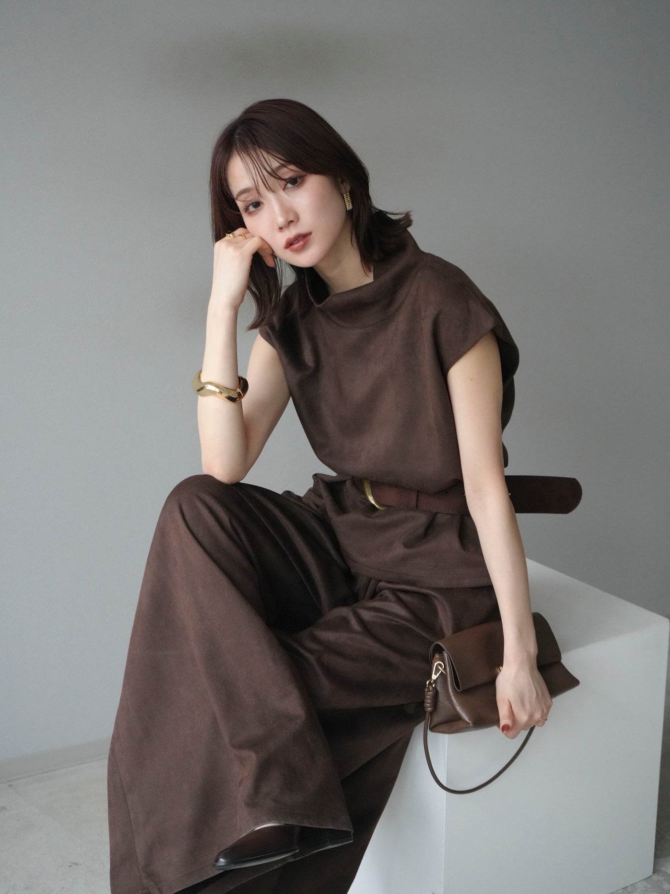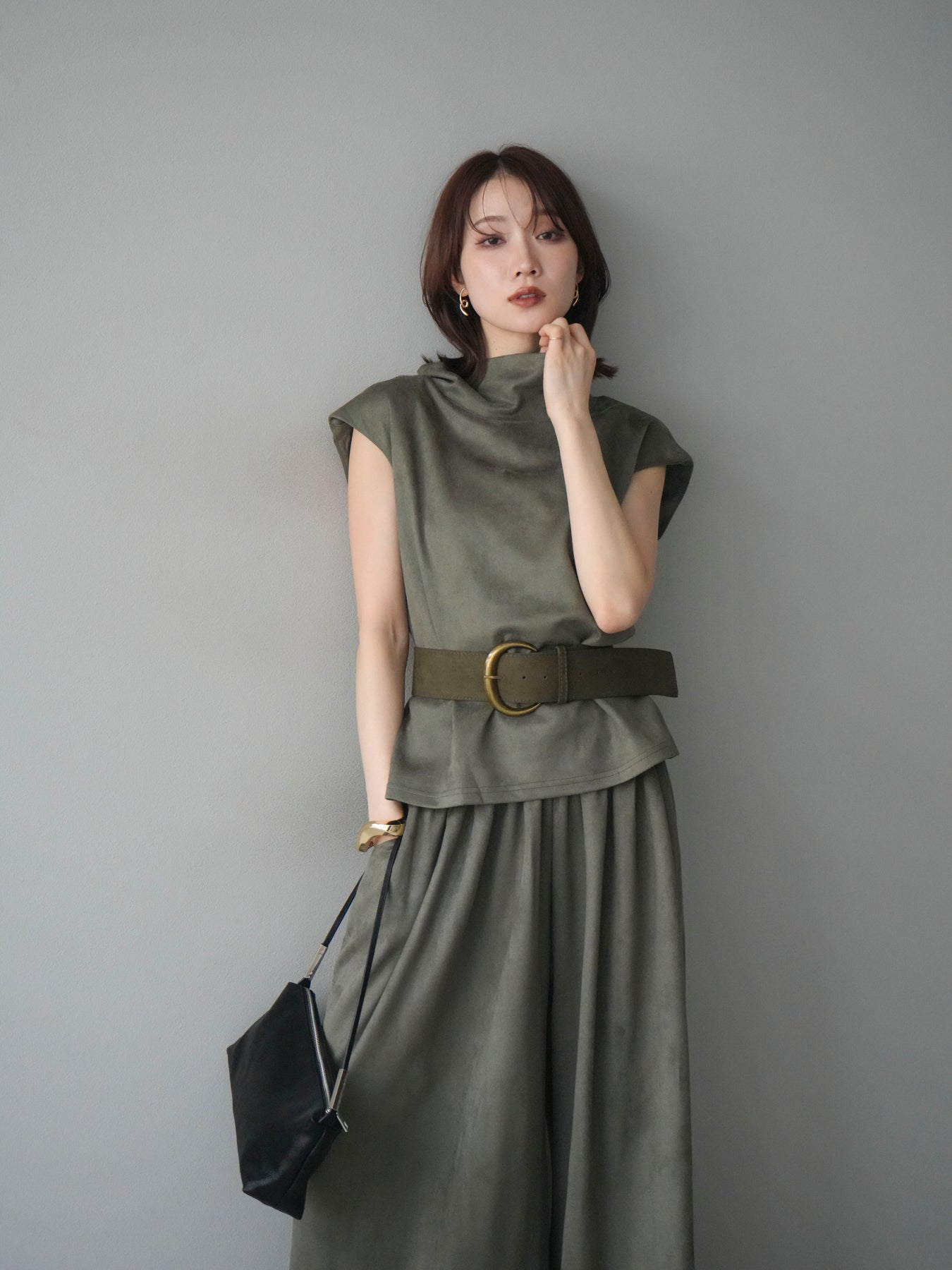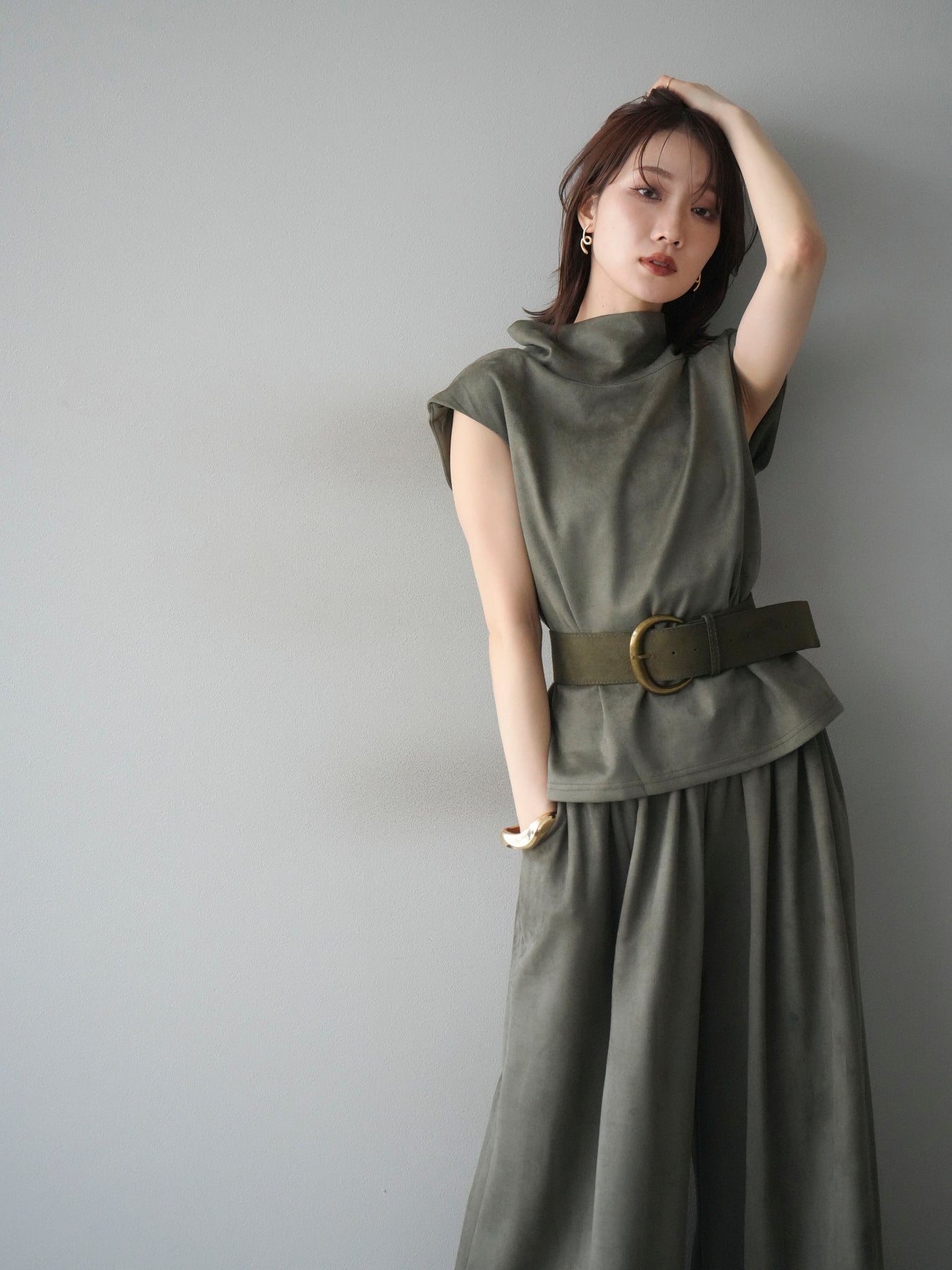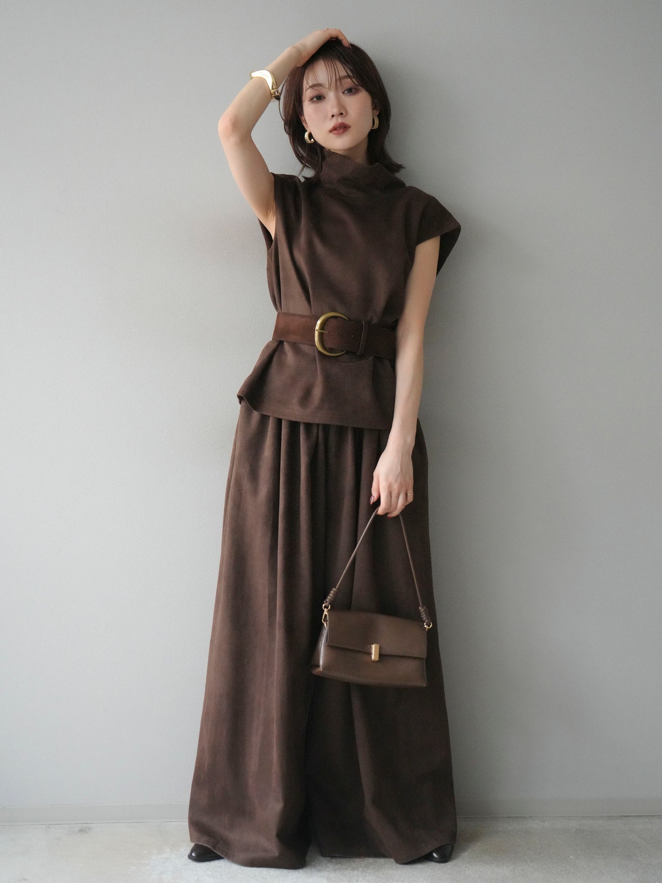 [SET]ベルト付スエードハイネックプルオーバー&ワイドパンツSET UP