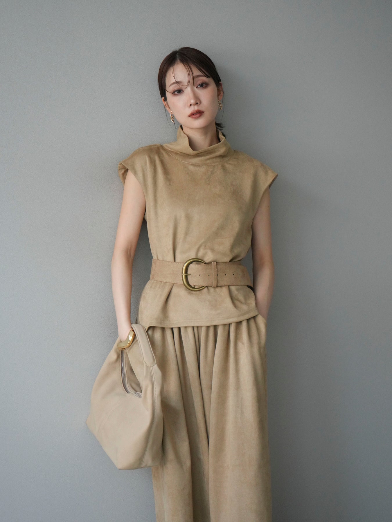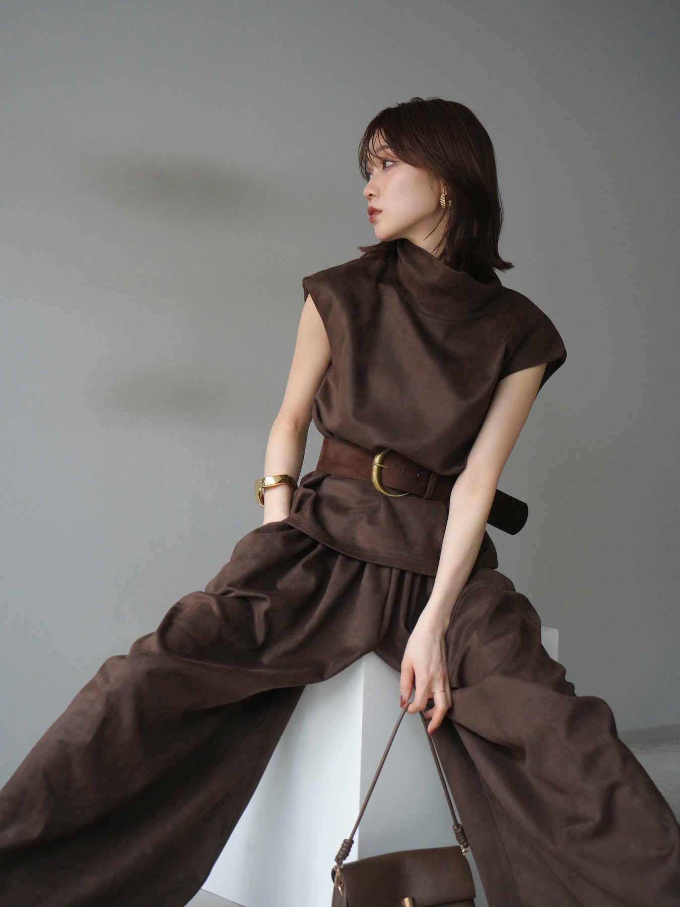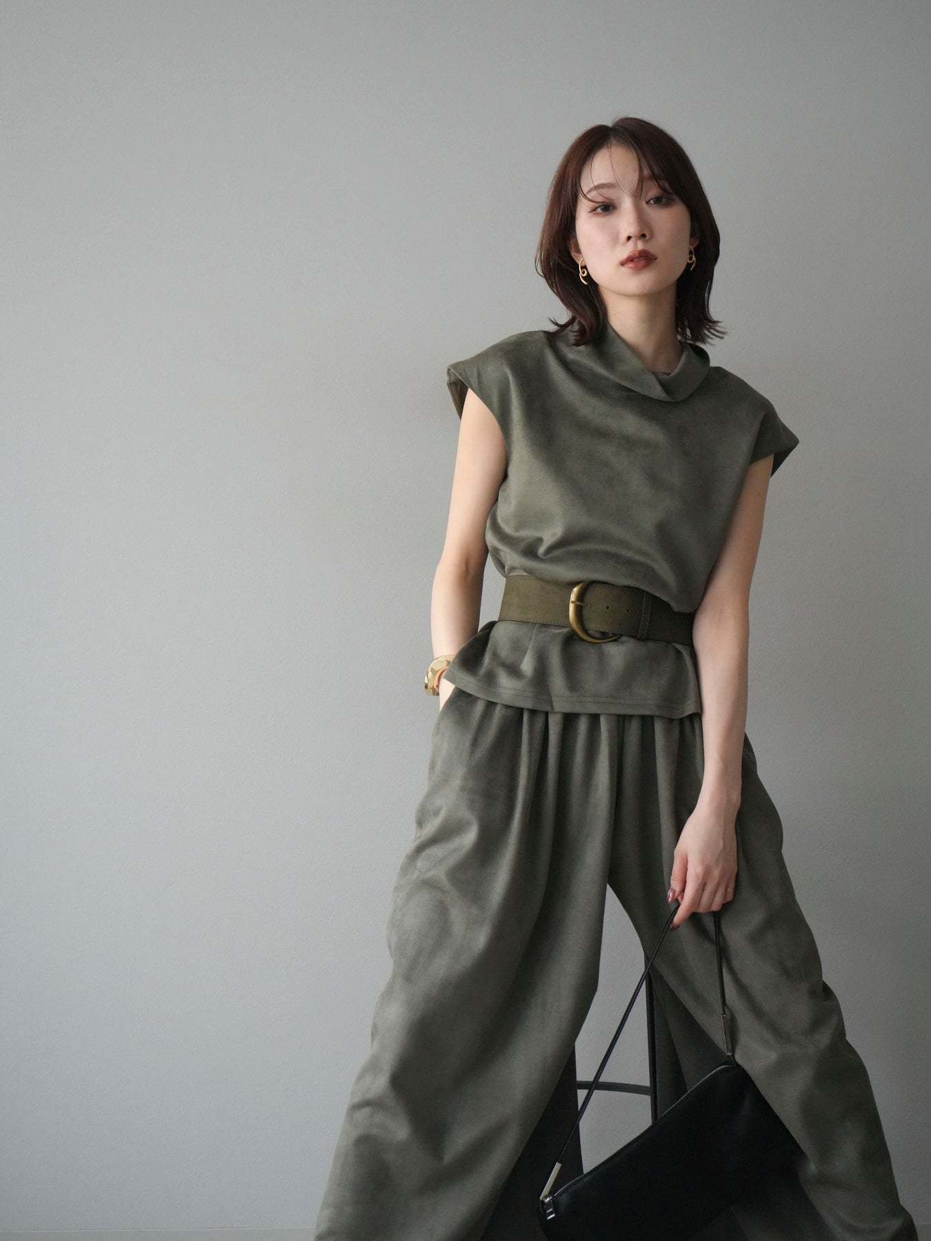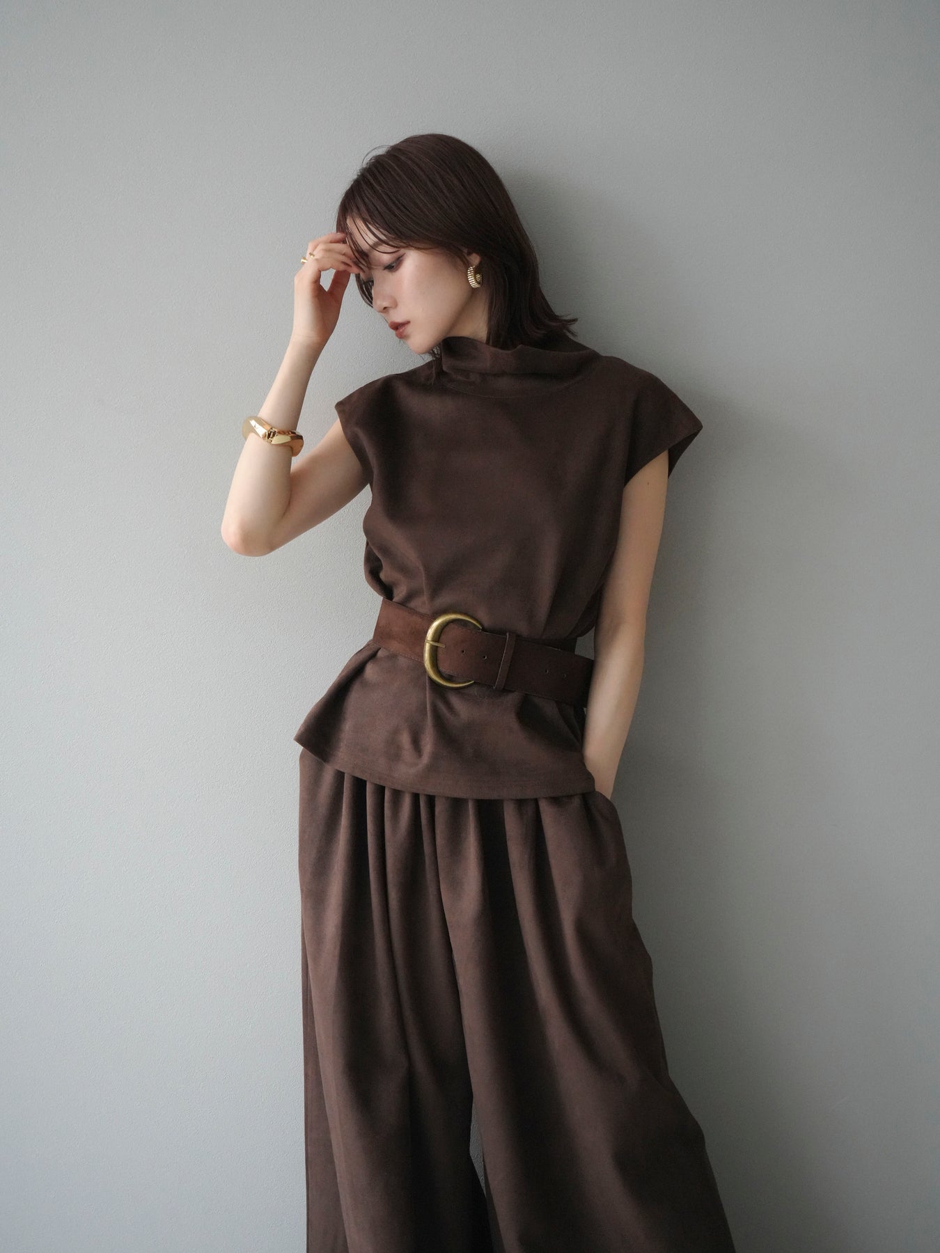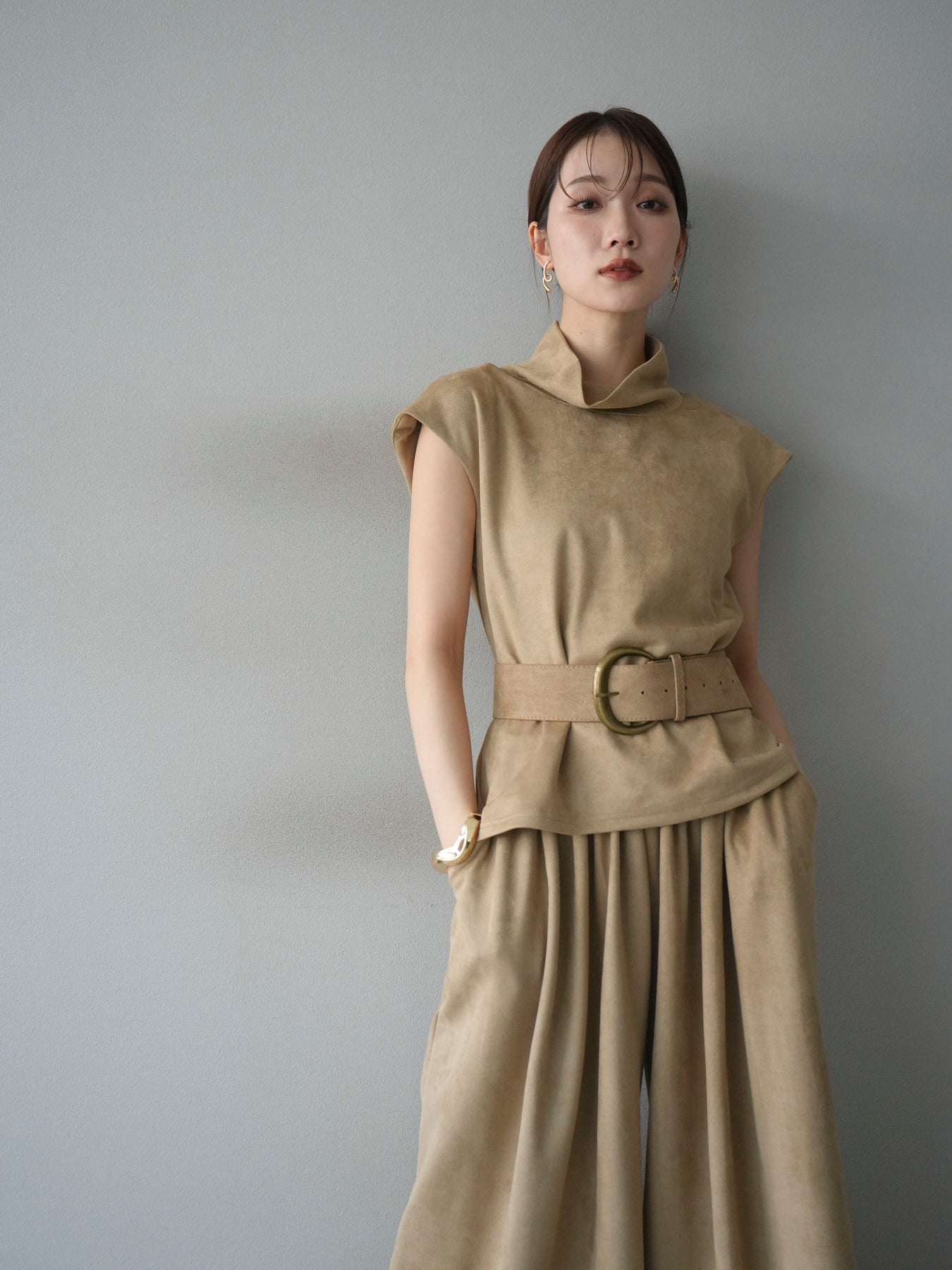 [SET]ベルト付スエードハイネックプルオーバー&ワイドパンツSET UP
