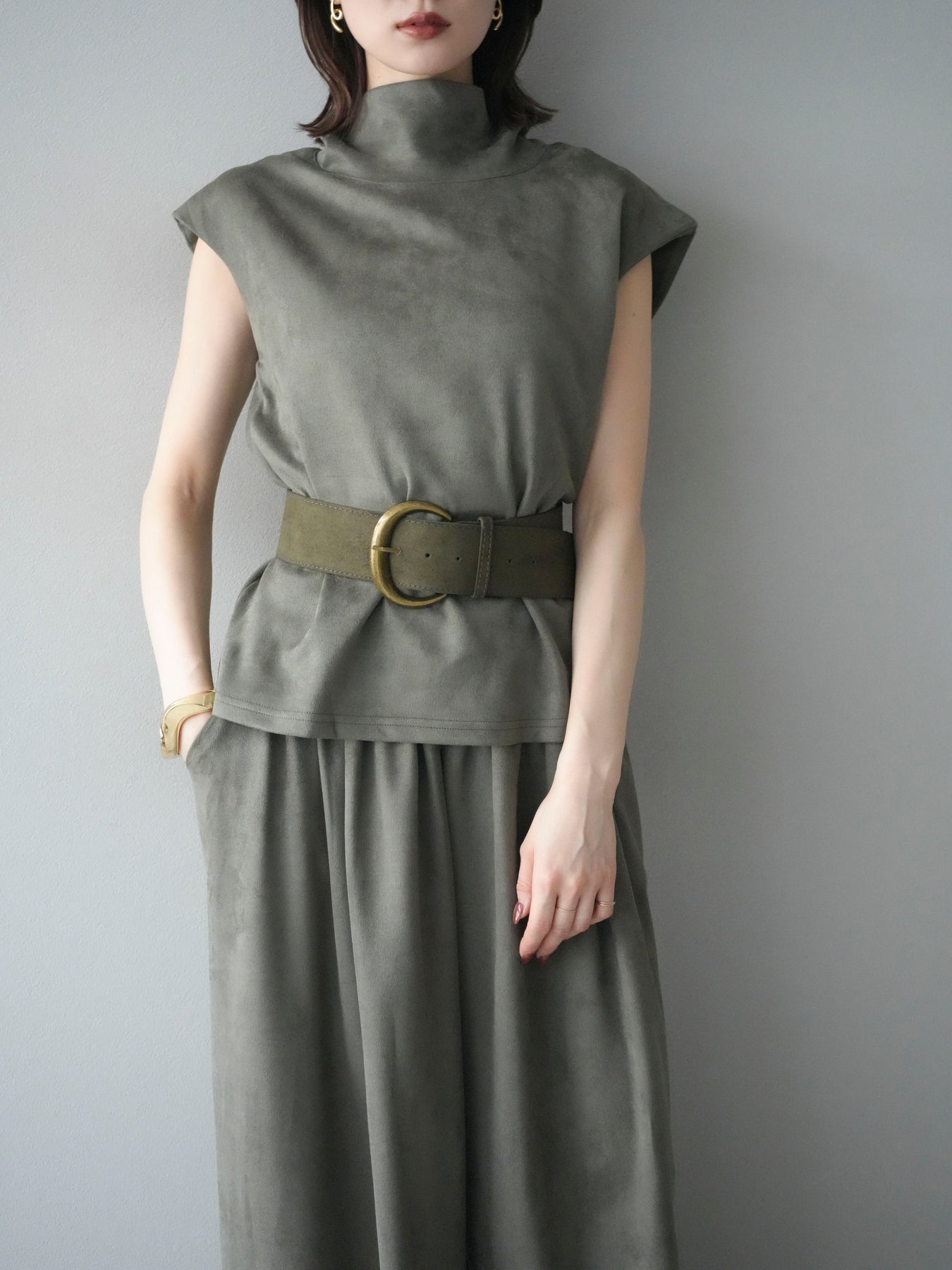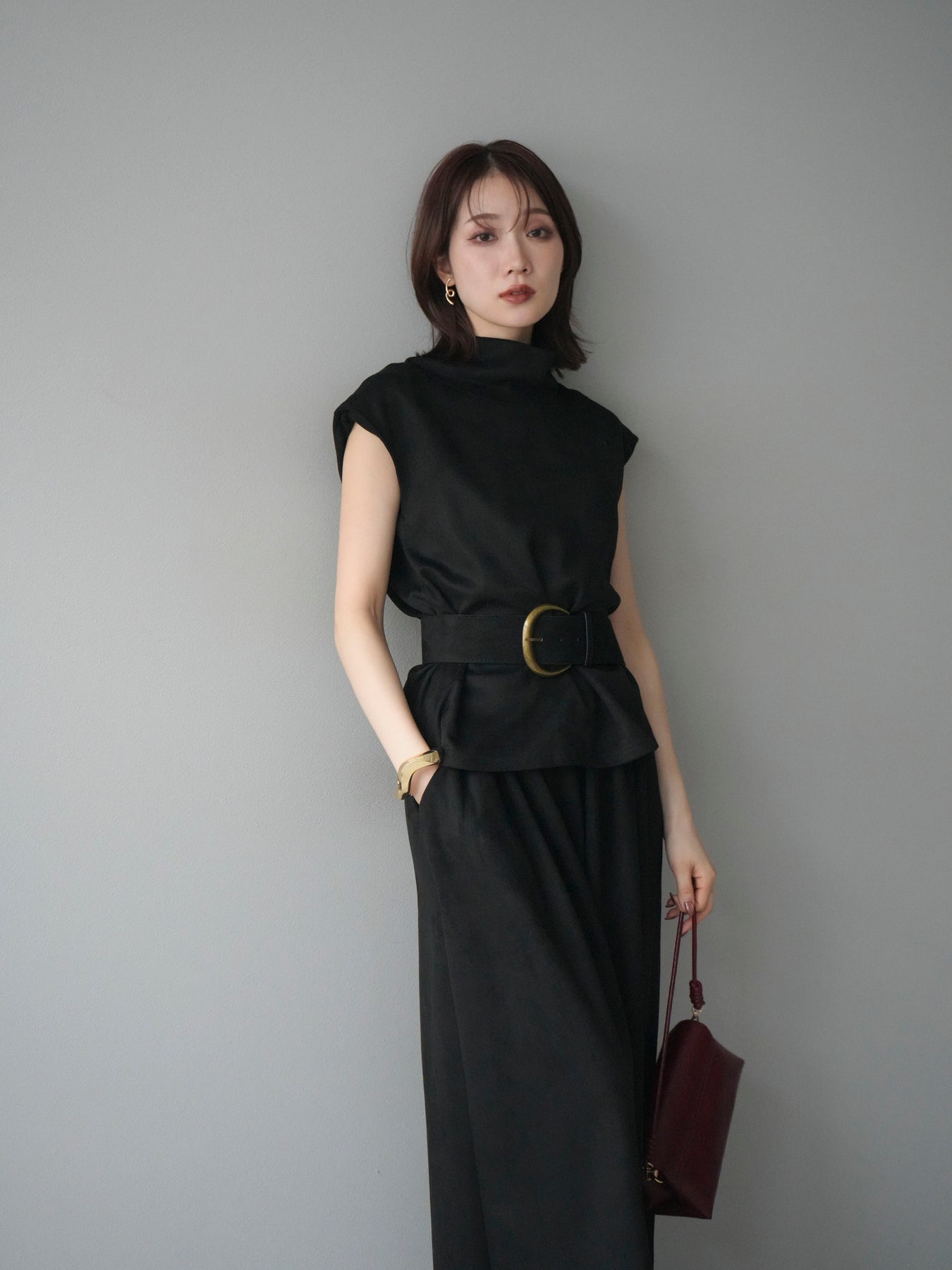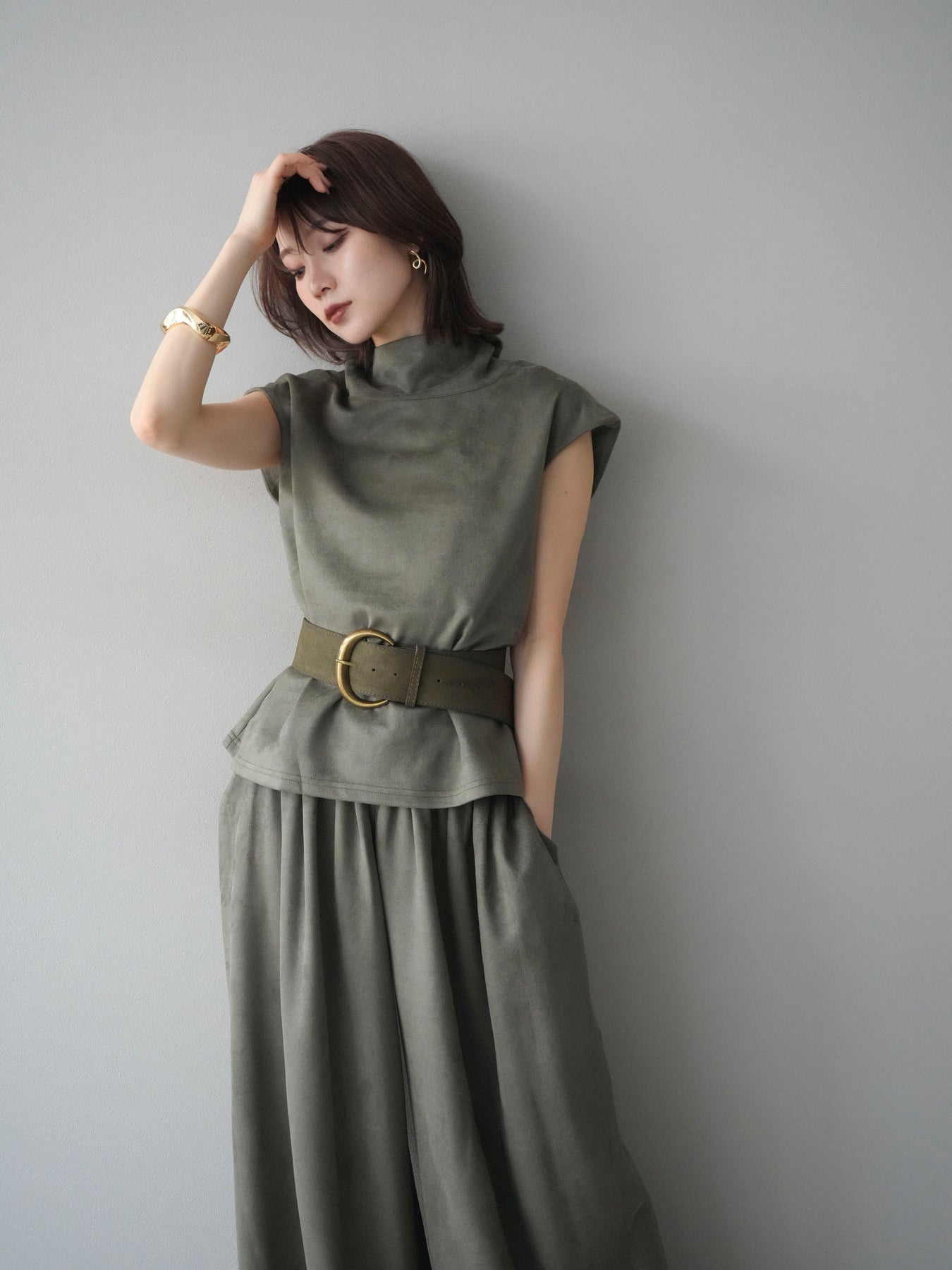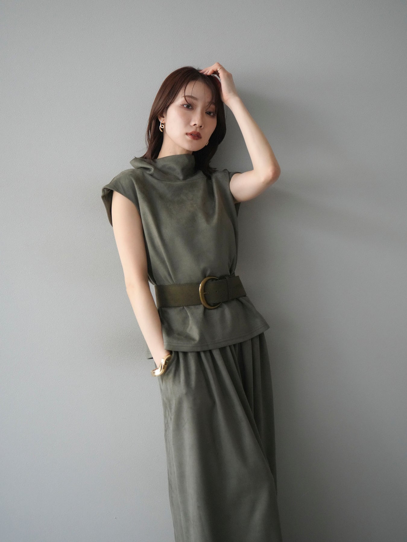 [SET]ベルト付スエードハイネックプルオーバー&ワイドパンツSET UP