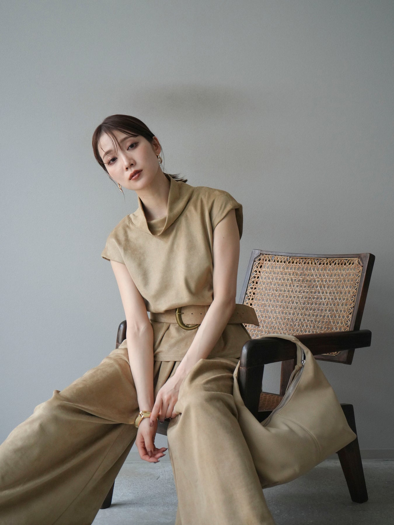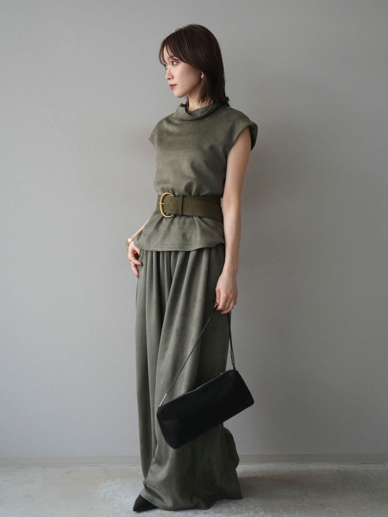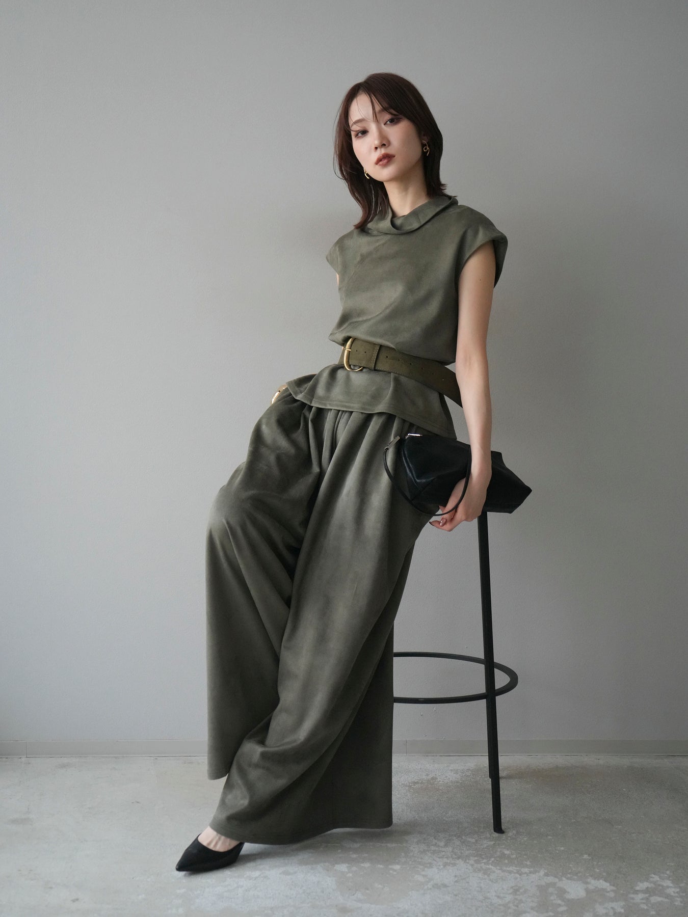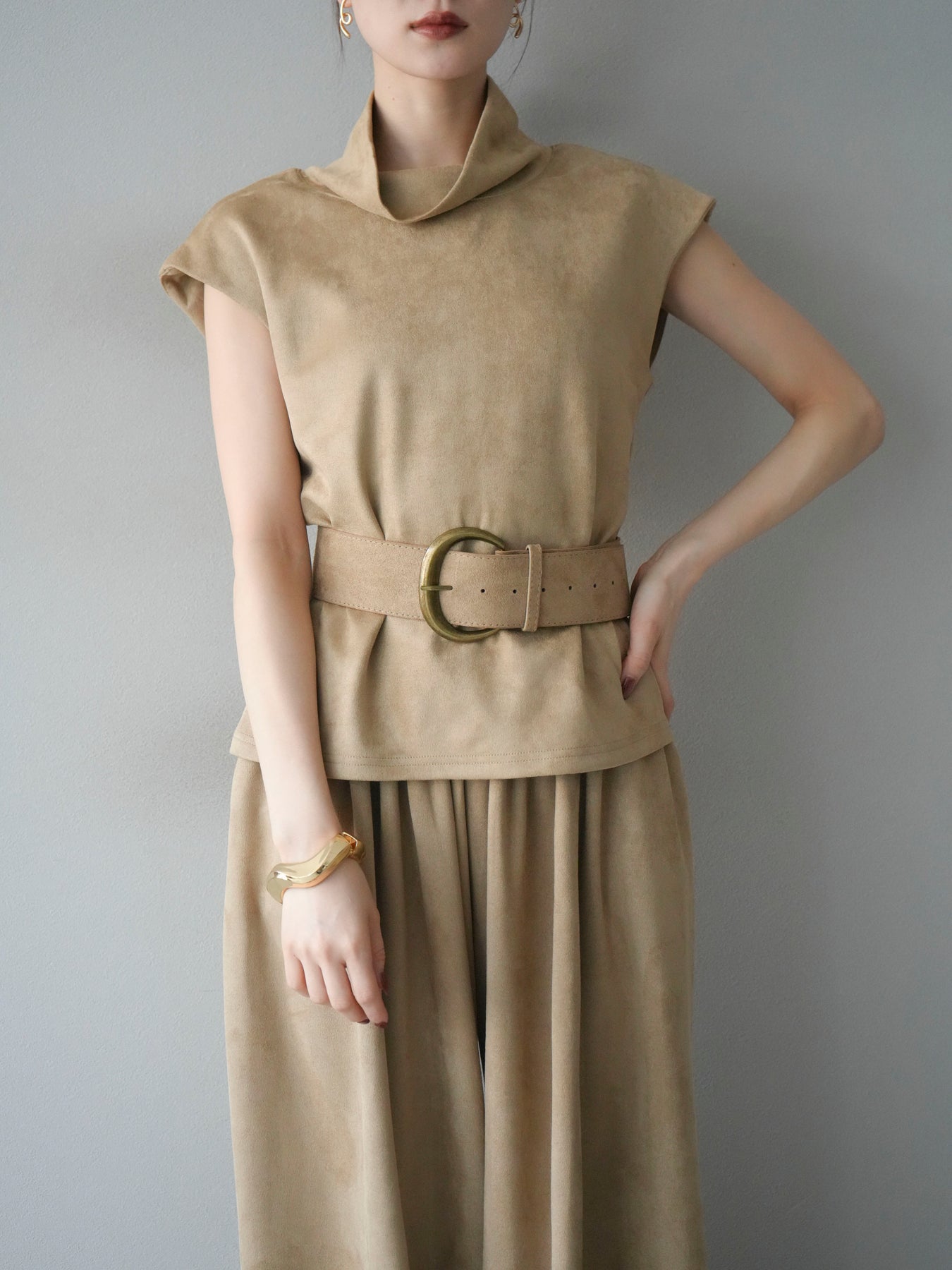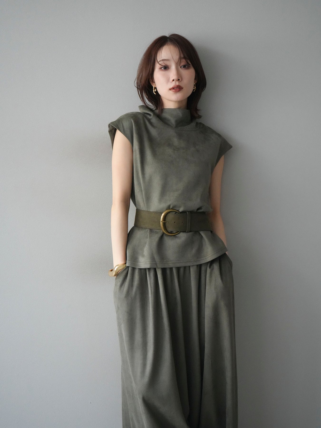 [SET]ベルト付スエードハイネックプルオーバー&ワイドパンツSET UP