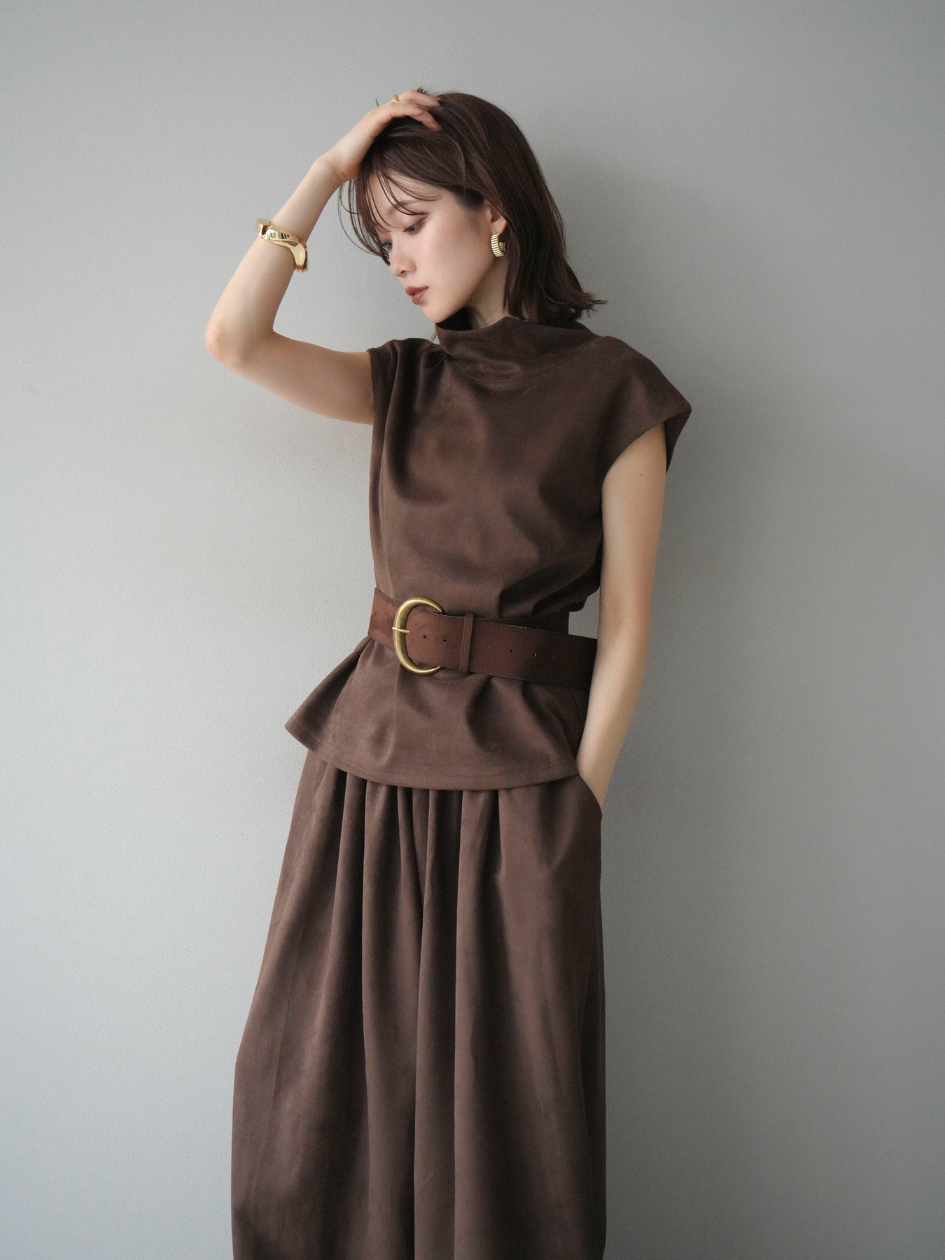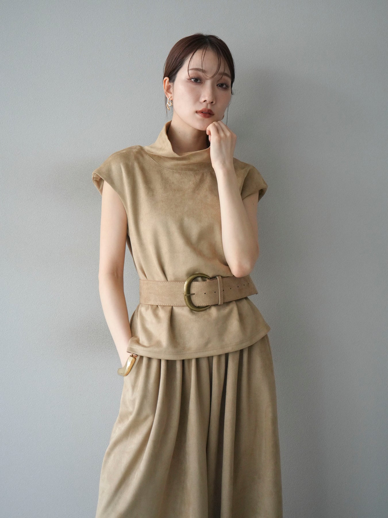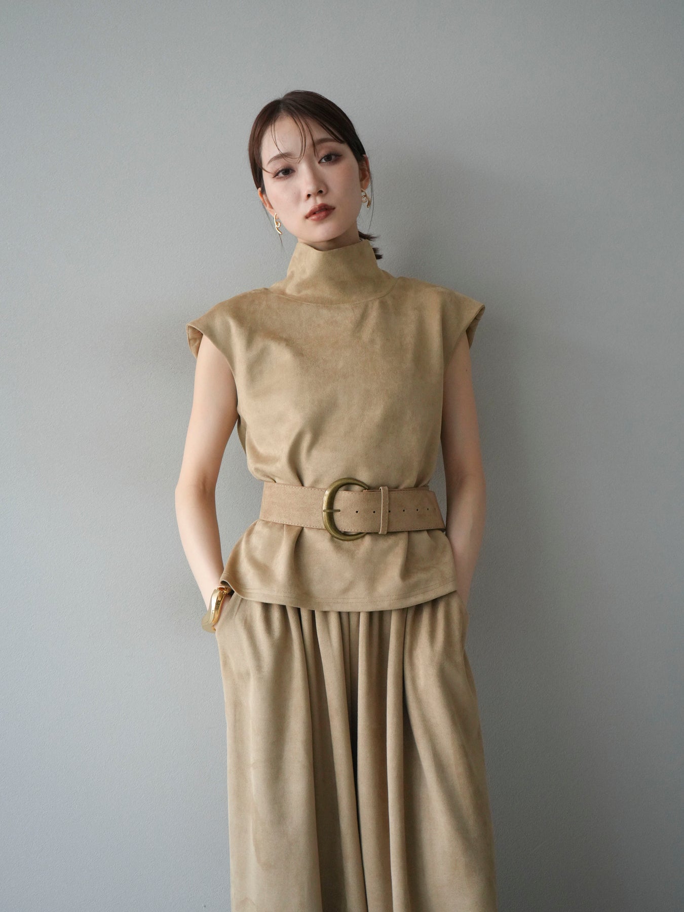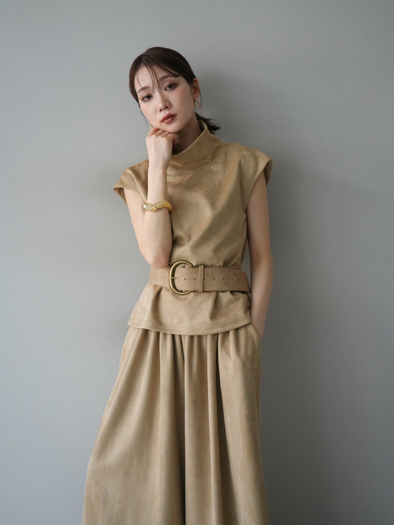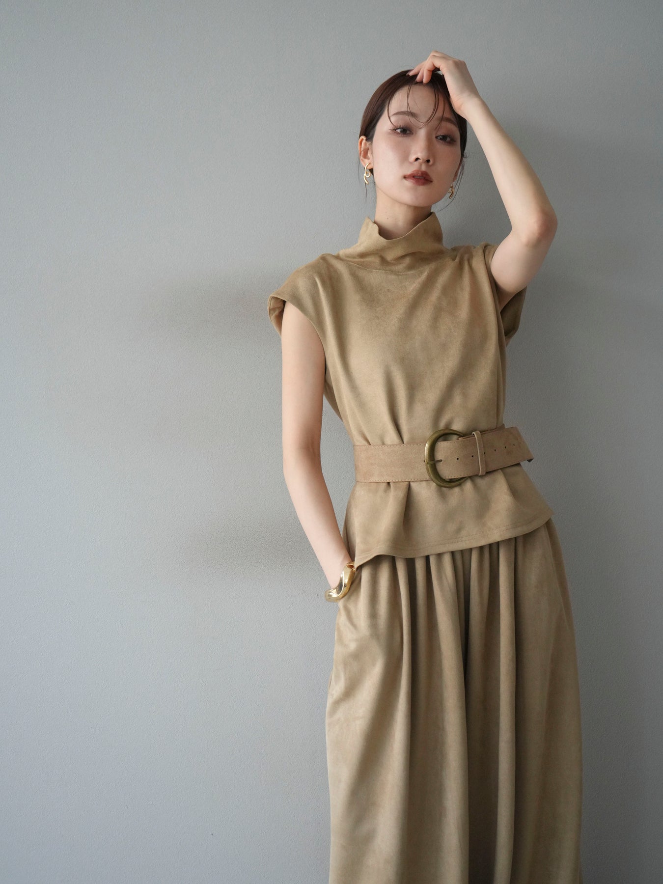 [SET]ベルト付スエードハイネックプルオーバー&ワイドパンツSET UP