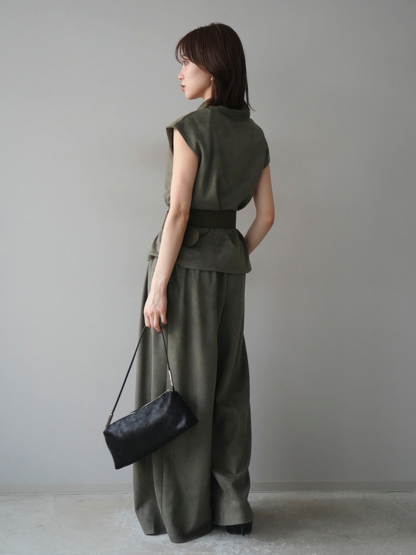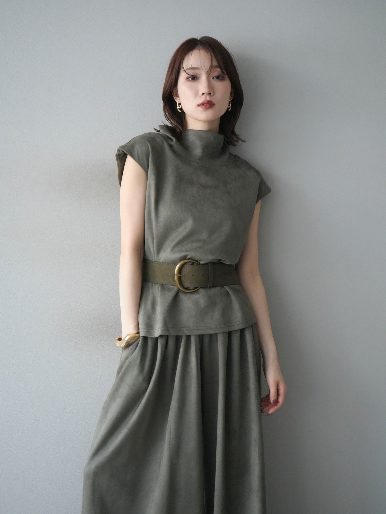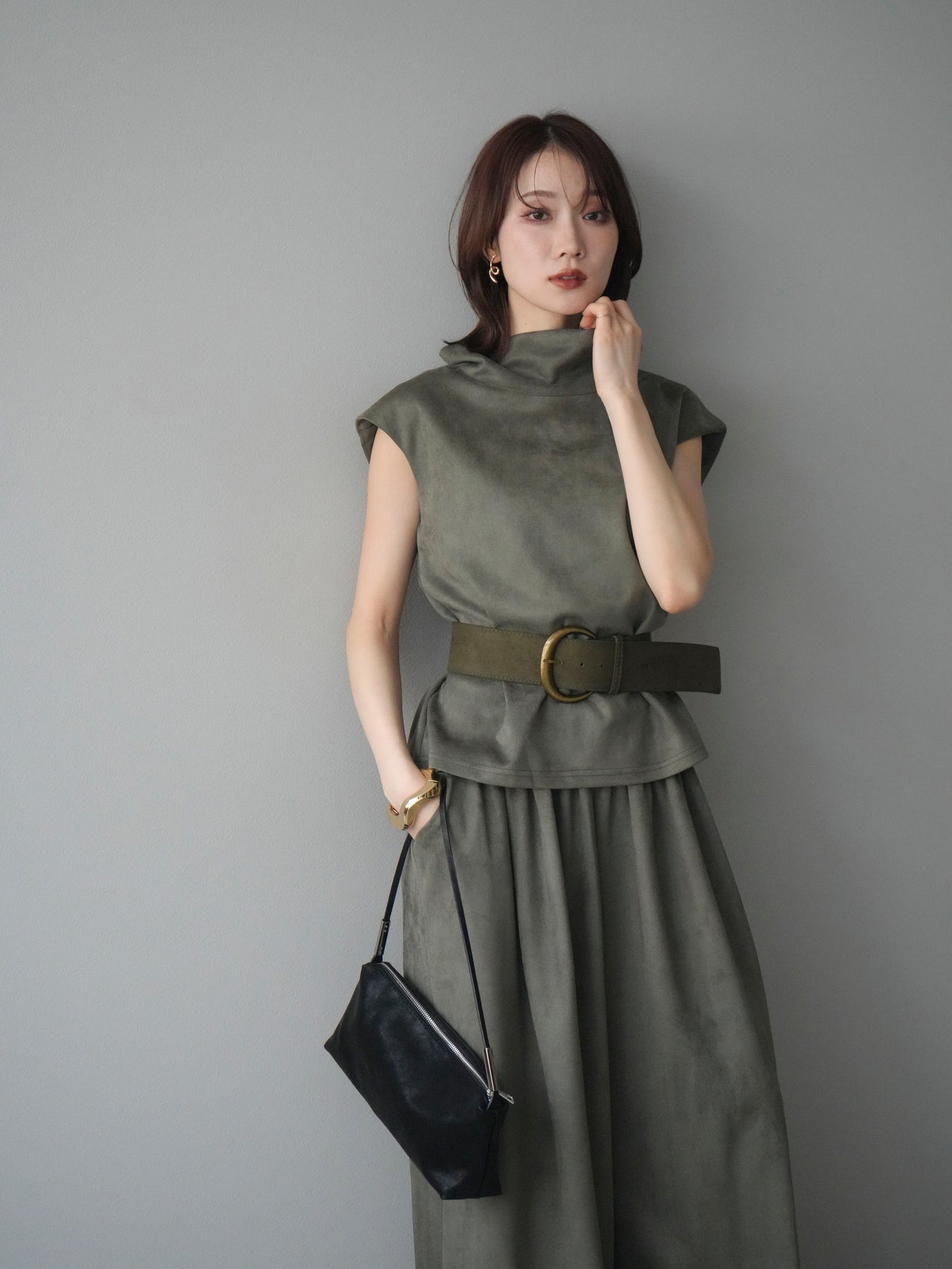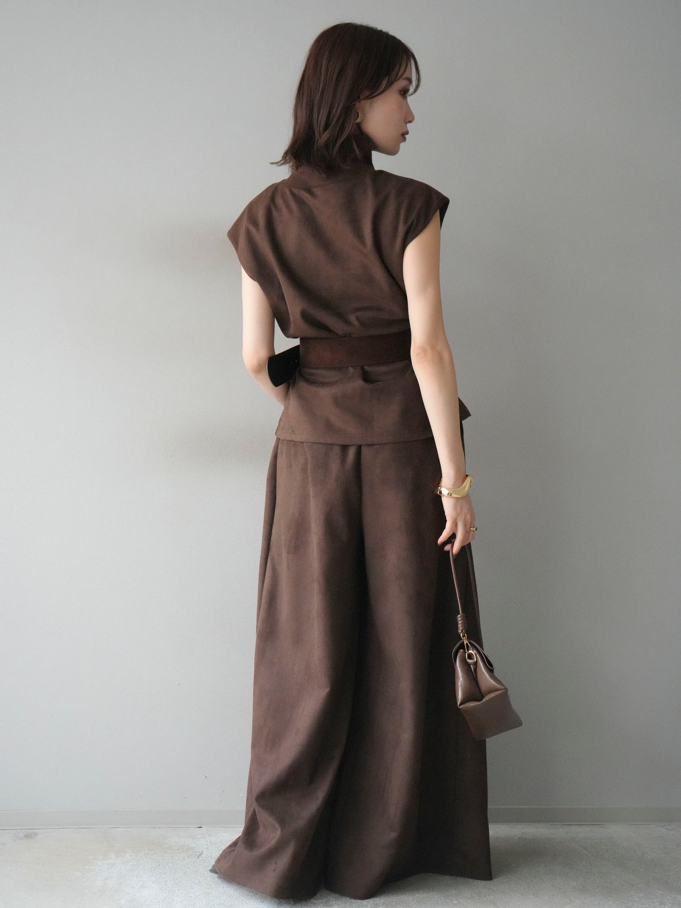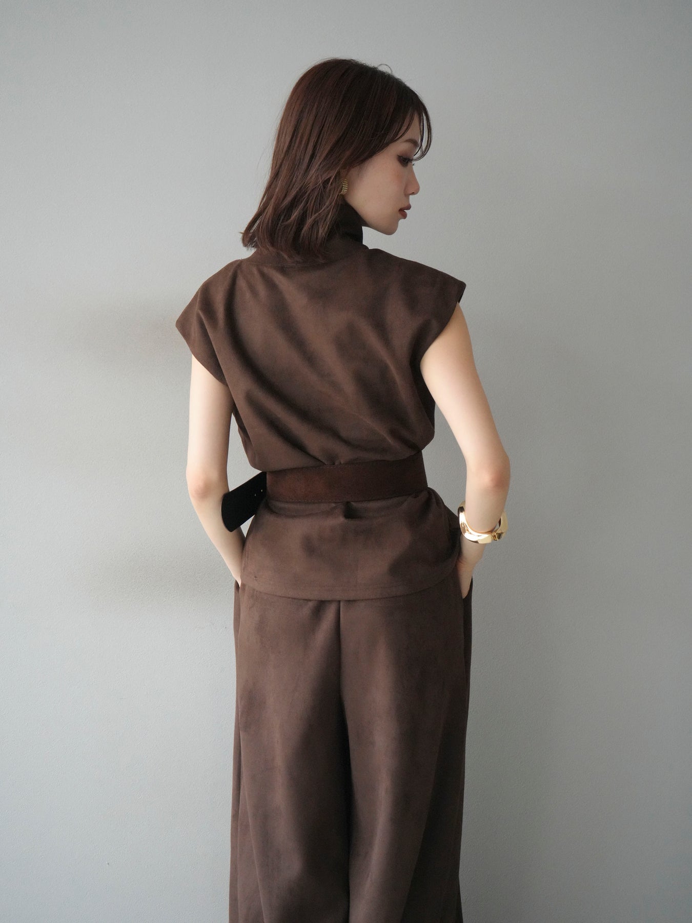 [SET]ベルト付スエードハイネックプルオーバー&ワイドパンツSET UP