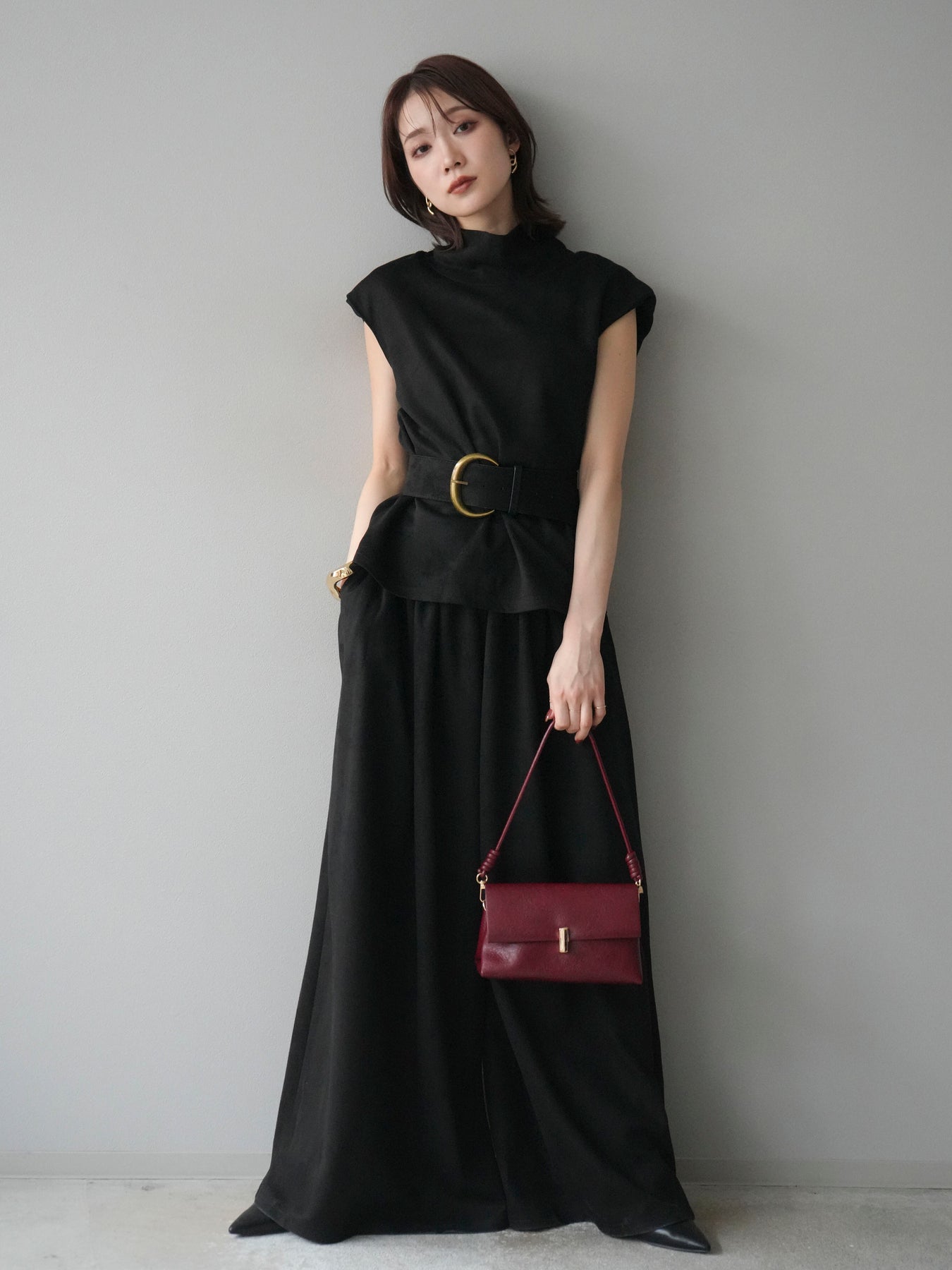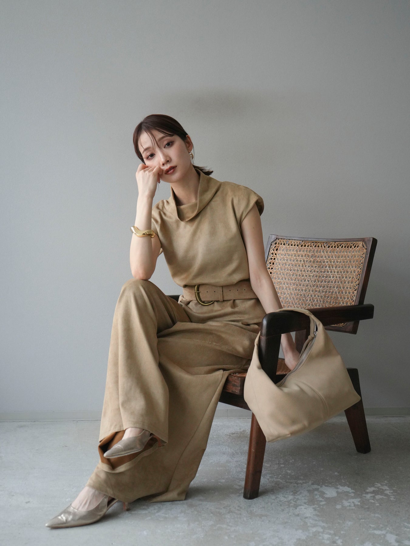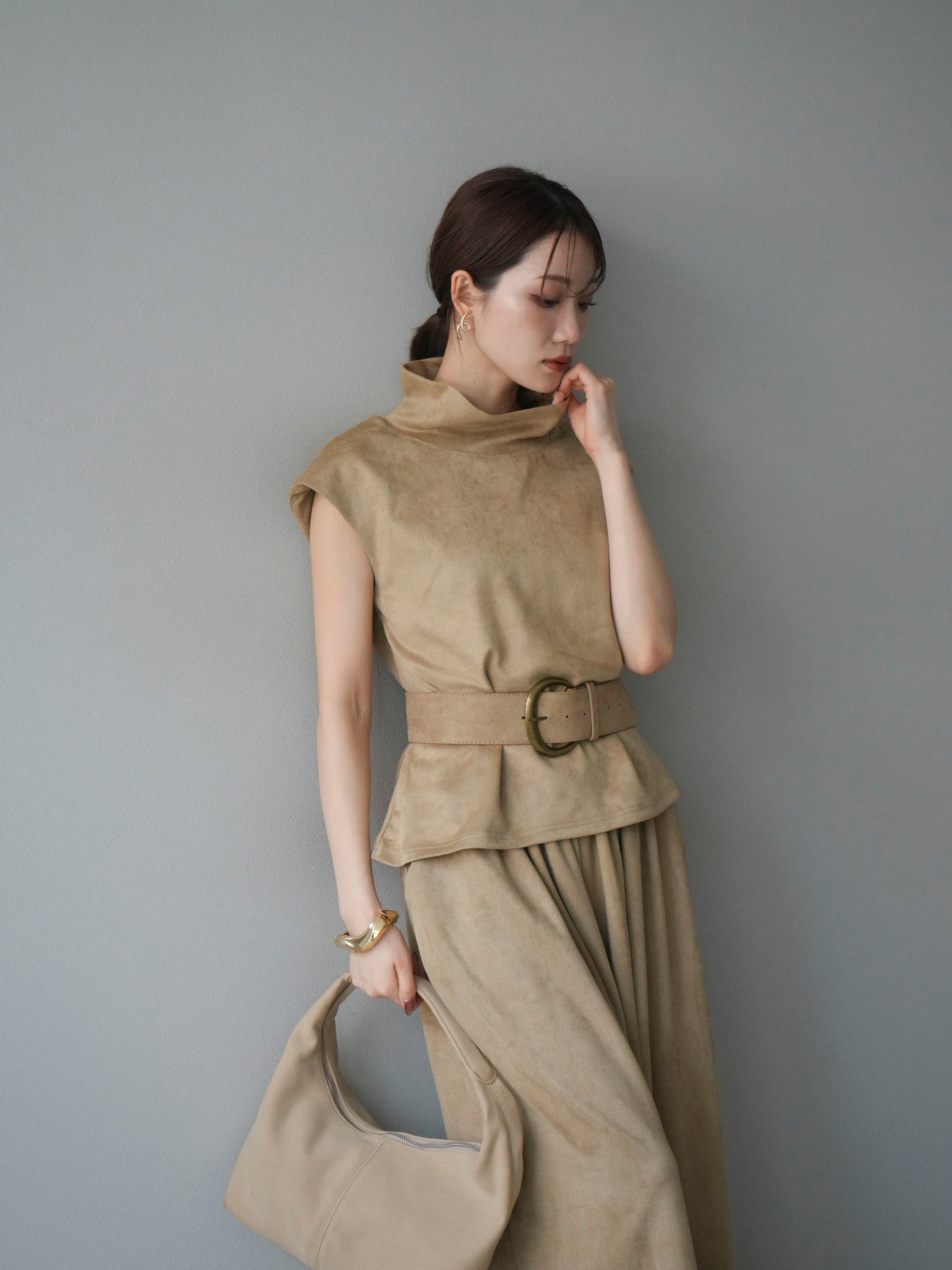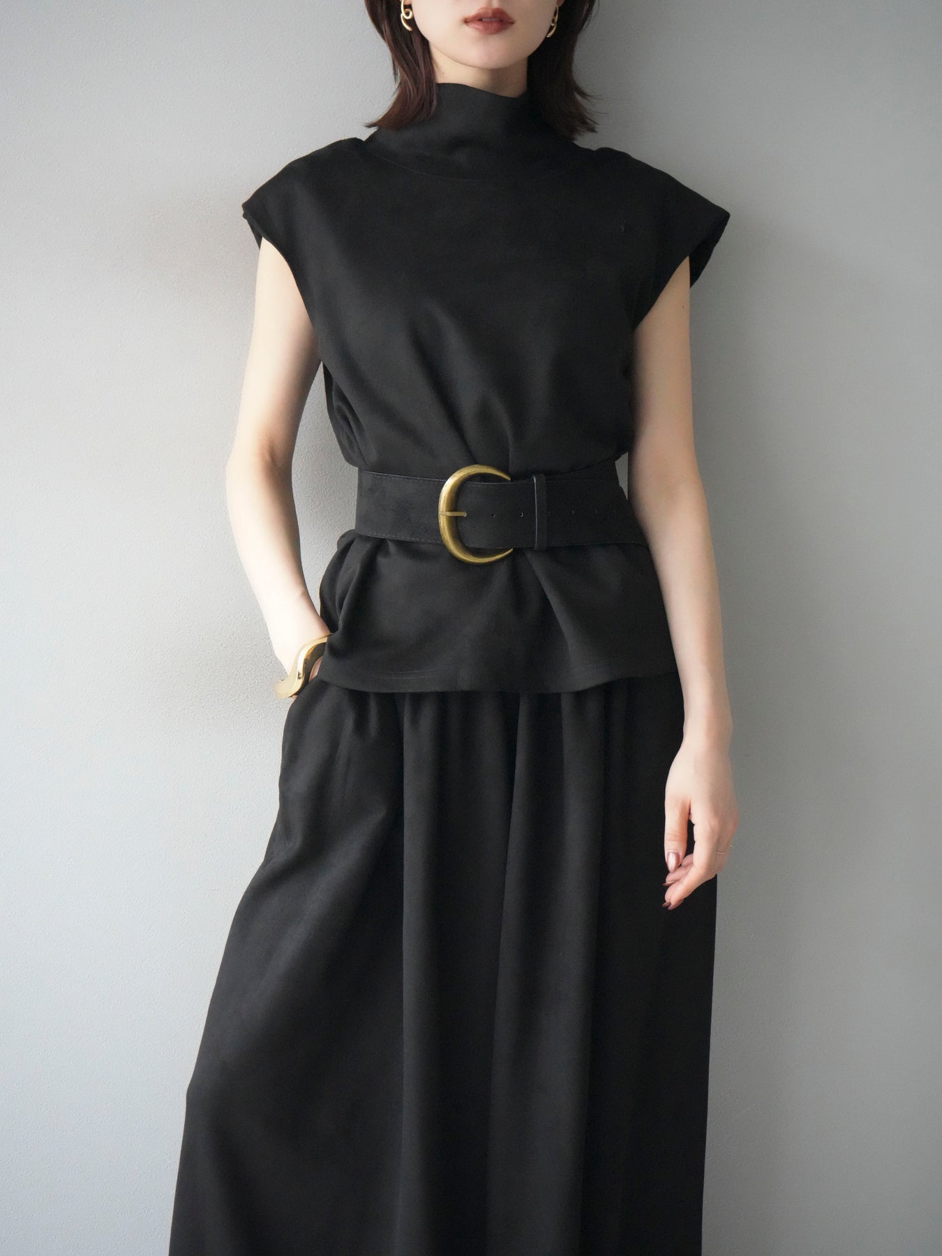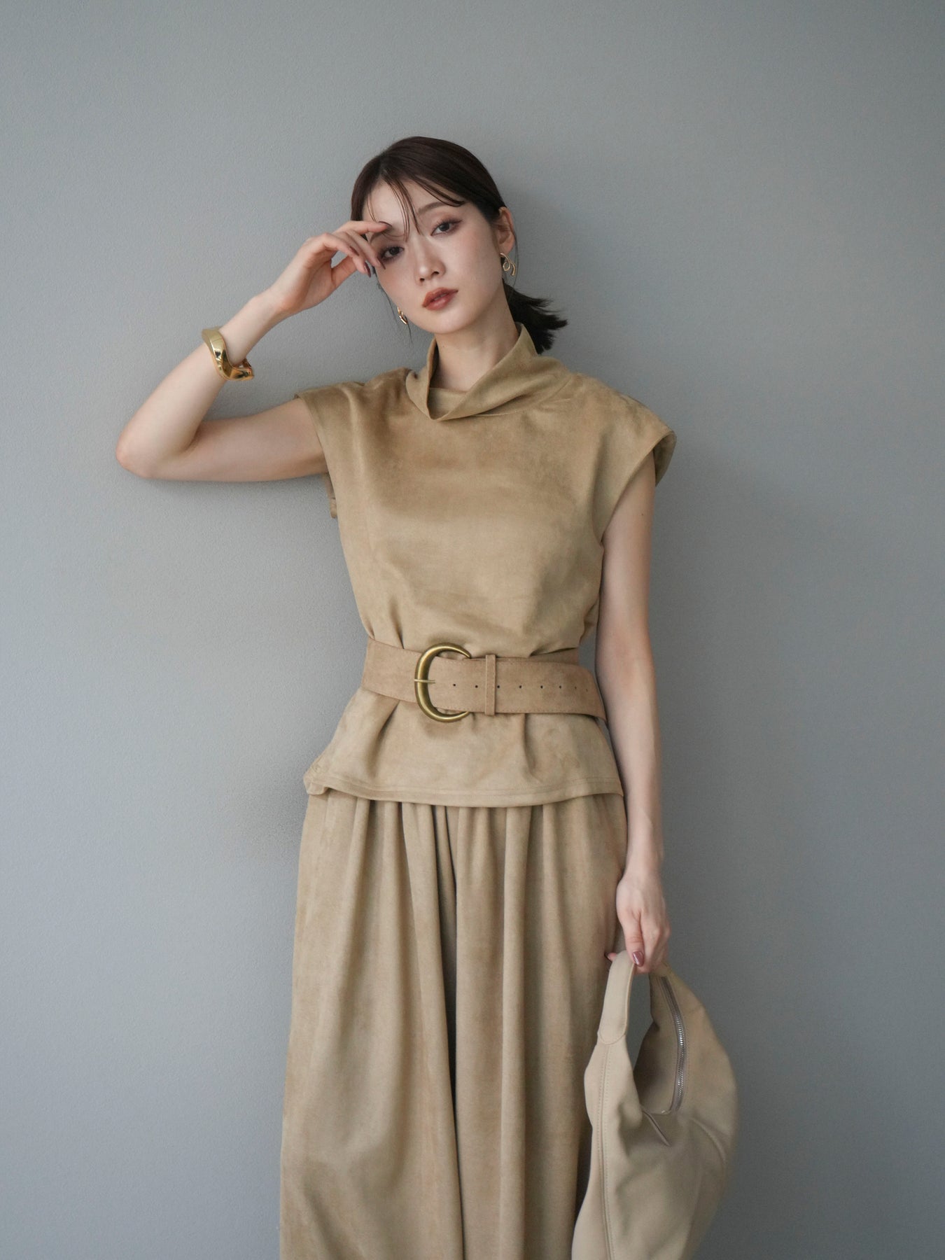 [SET]ベルト付スエードハイネックプルオーバー&ワイドパンツSET UP
