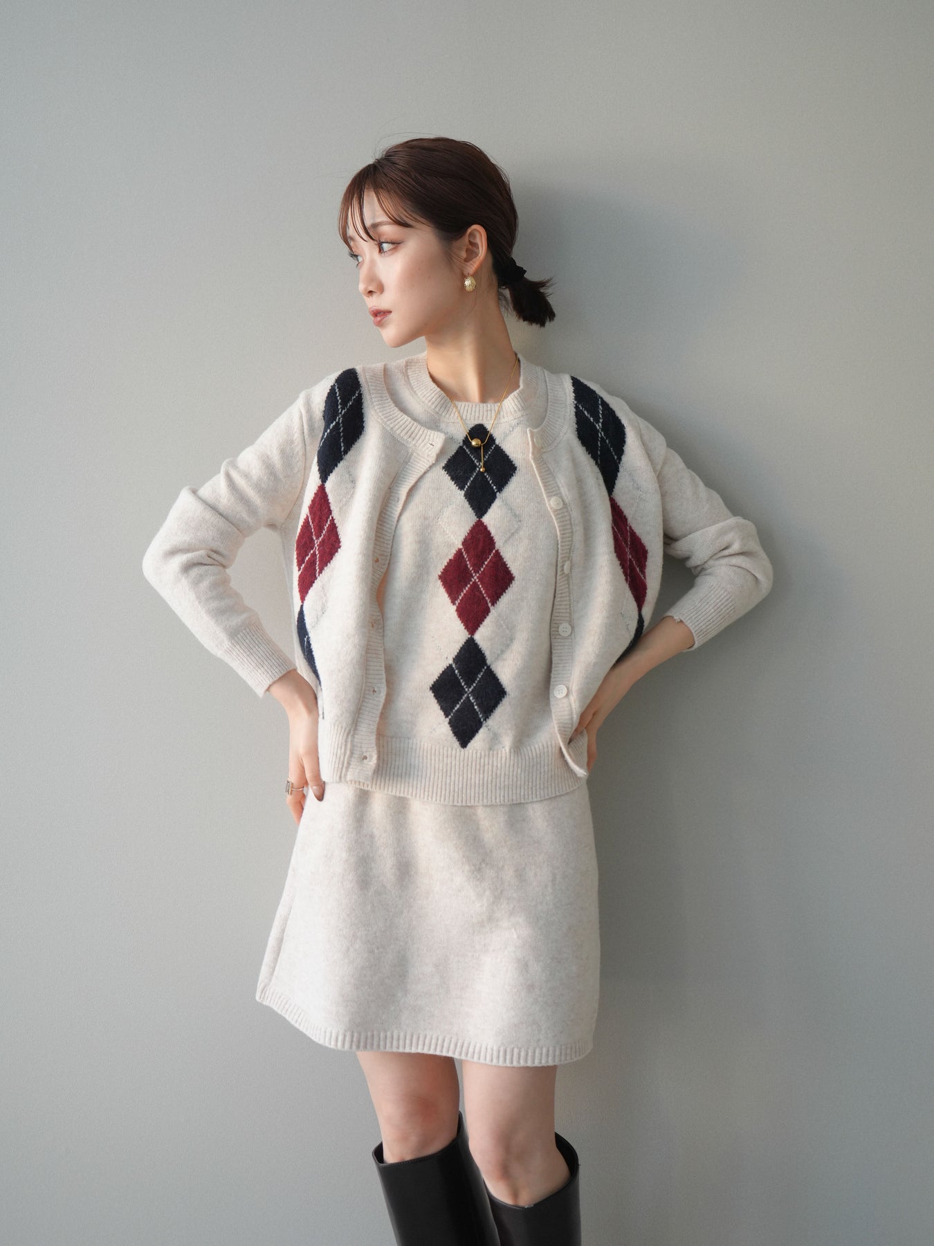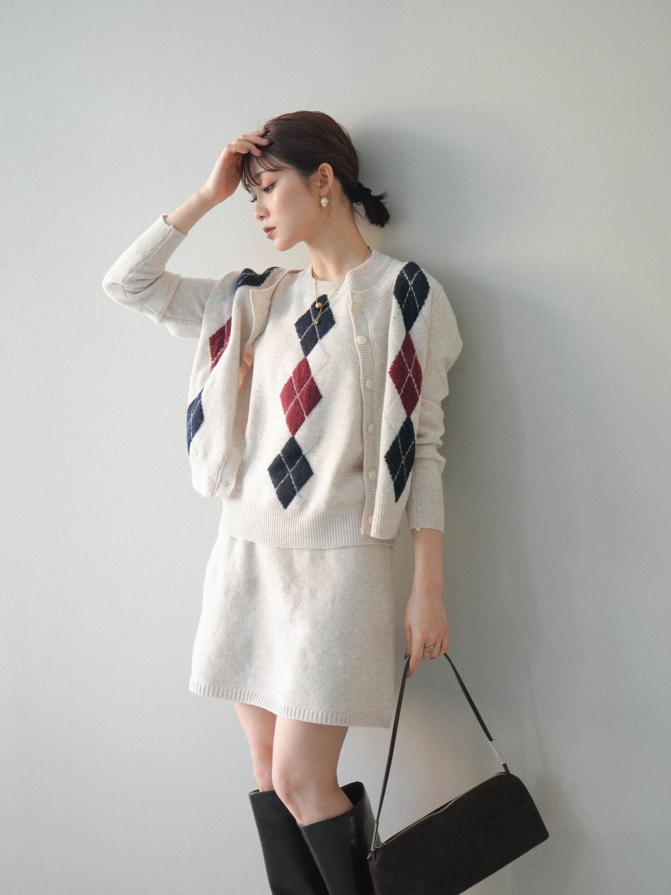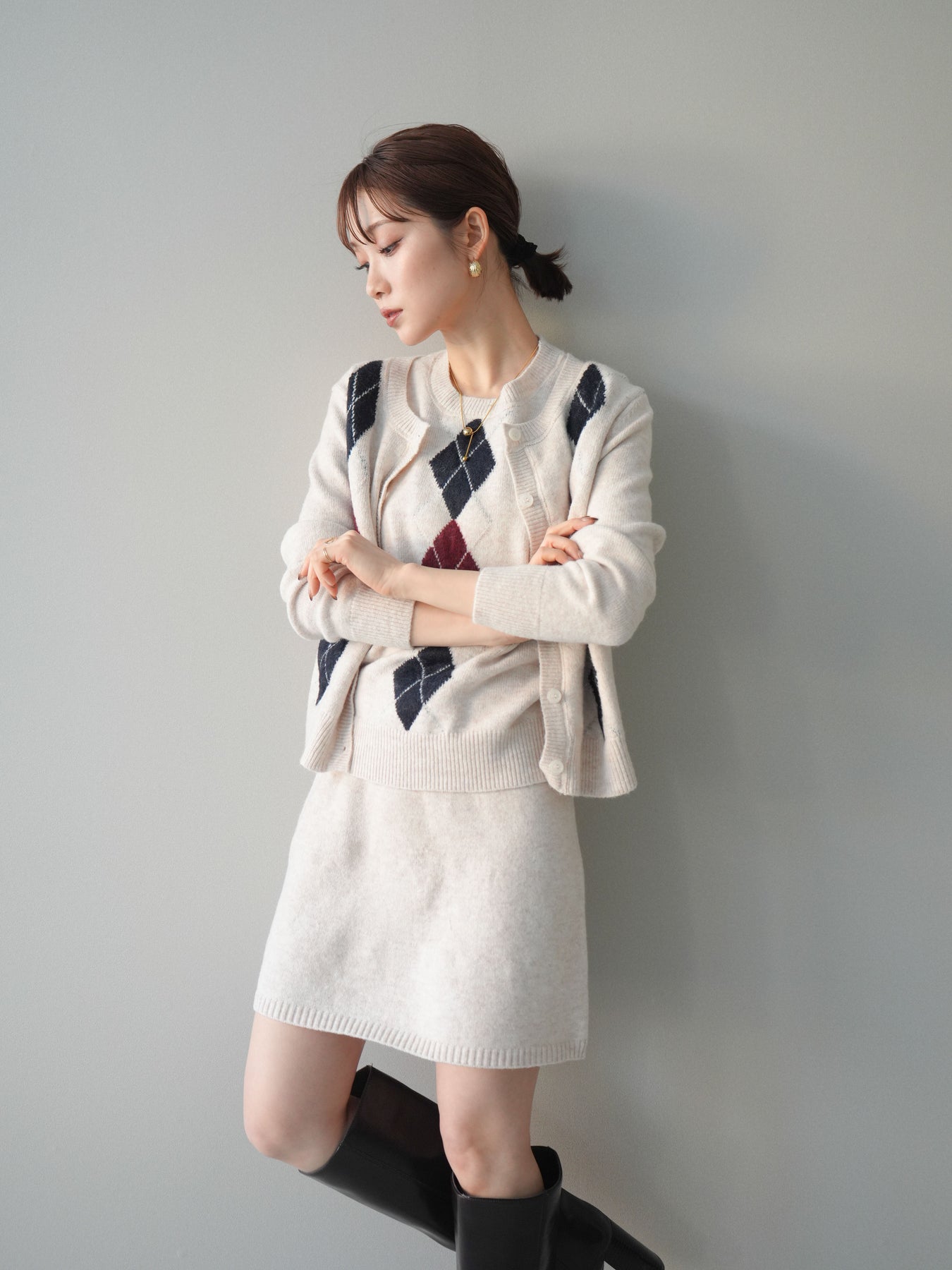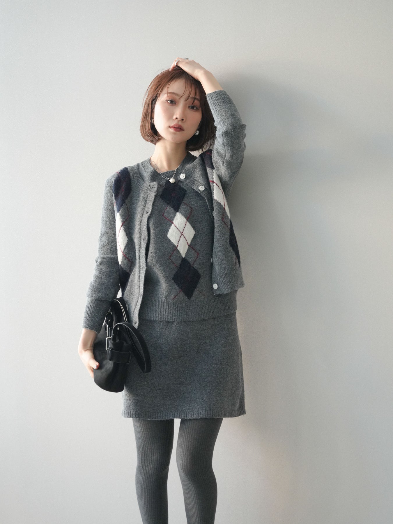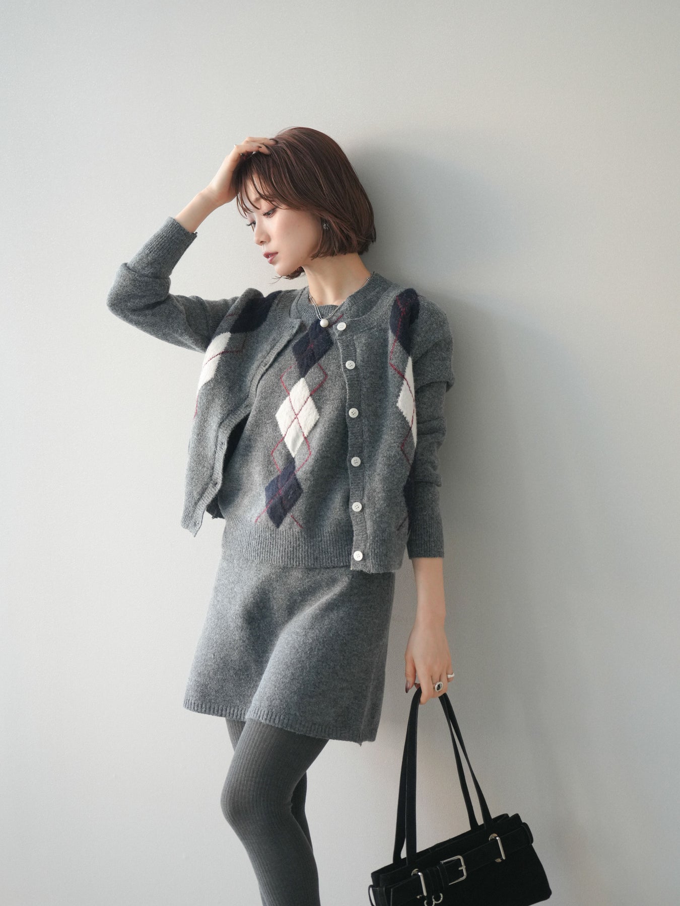アーガイル柄をポイントにあしらったニットベスト・ニットトップス・ニットパンツの3ピースセット。統一感のあるデザインでセットアップとしてはもちろん、それぞれ単品でも着回しやすい万能アイテムです。ベストはレイヤードしやすい程よいゆとりのシルエットで、トップスは着心地の良い柔らかな風合いが魅力。パンツはリラックス感がありながらもすっきり見えするストレートラインで、デイリーに取り入れやすいバランスに仕上げています。コーディネート全体がまとまりやすく、これ一つで季節感のあるスタイルが完成する便利なセットです。