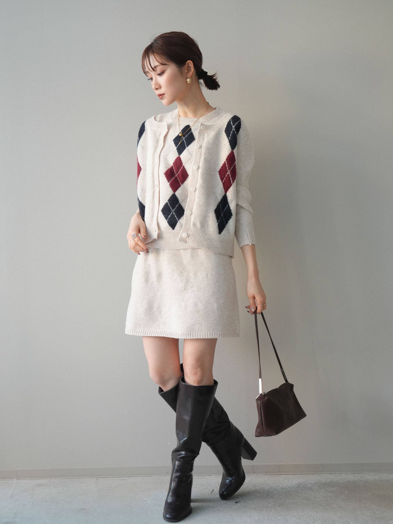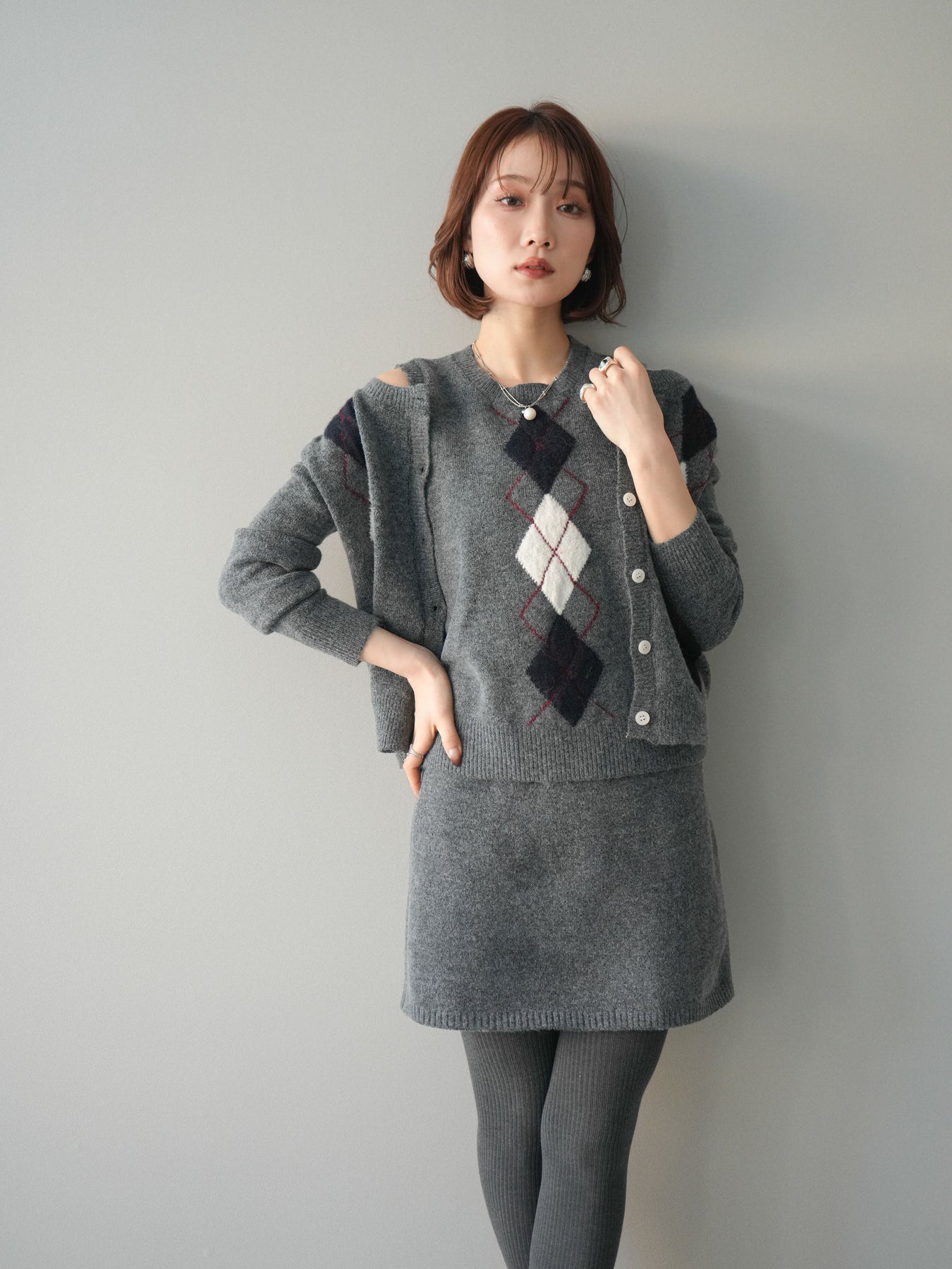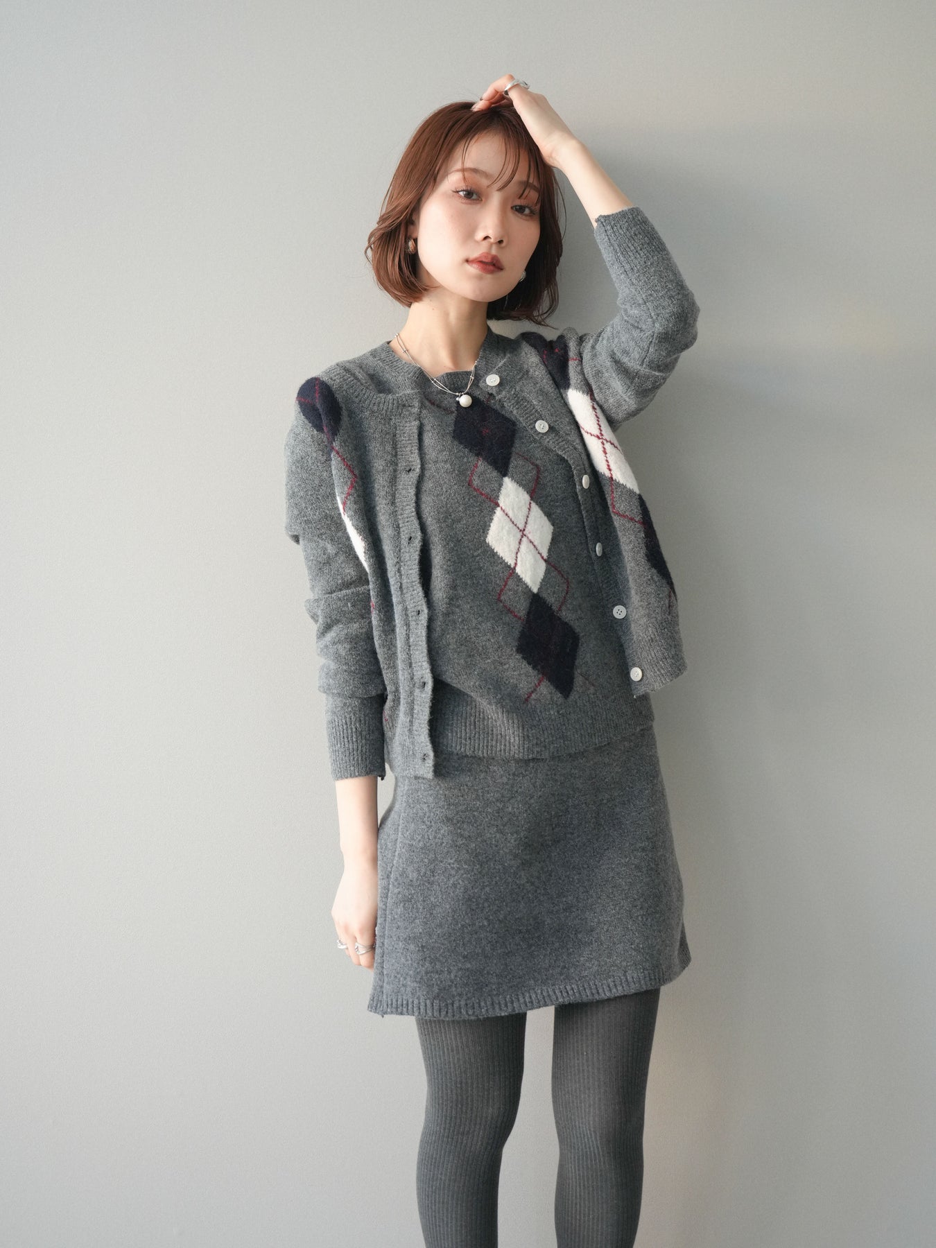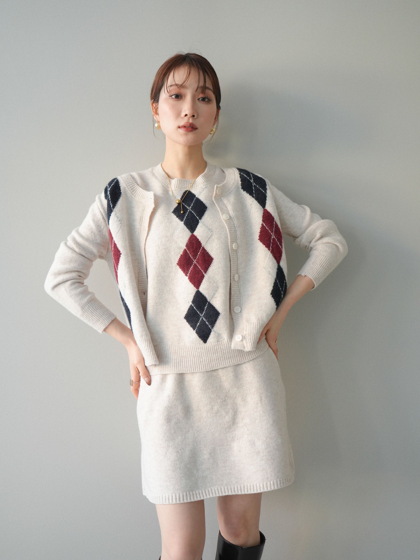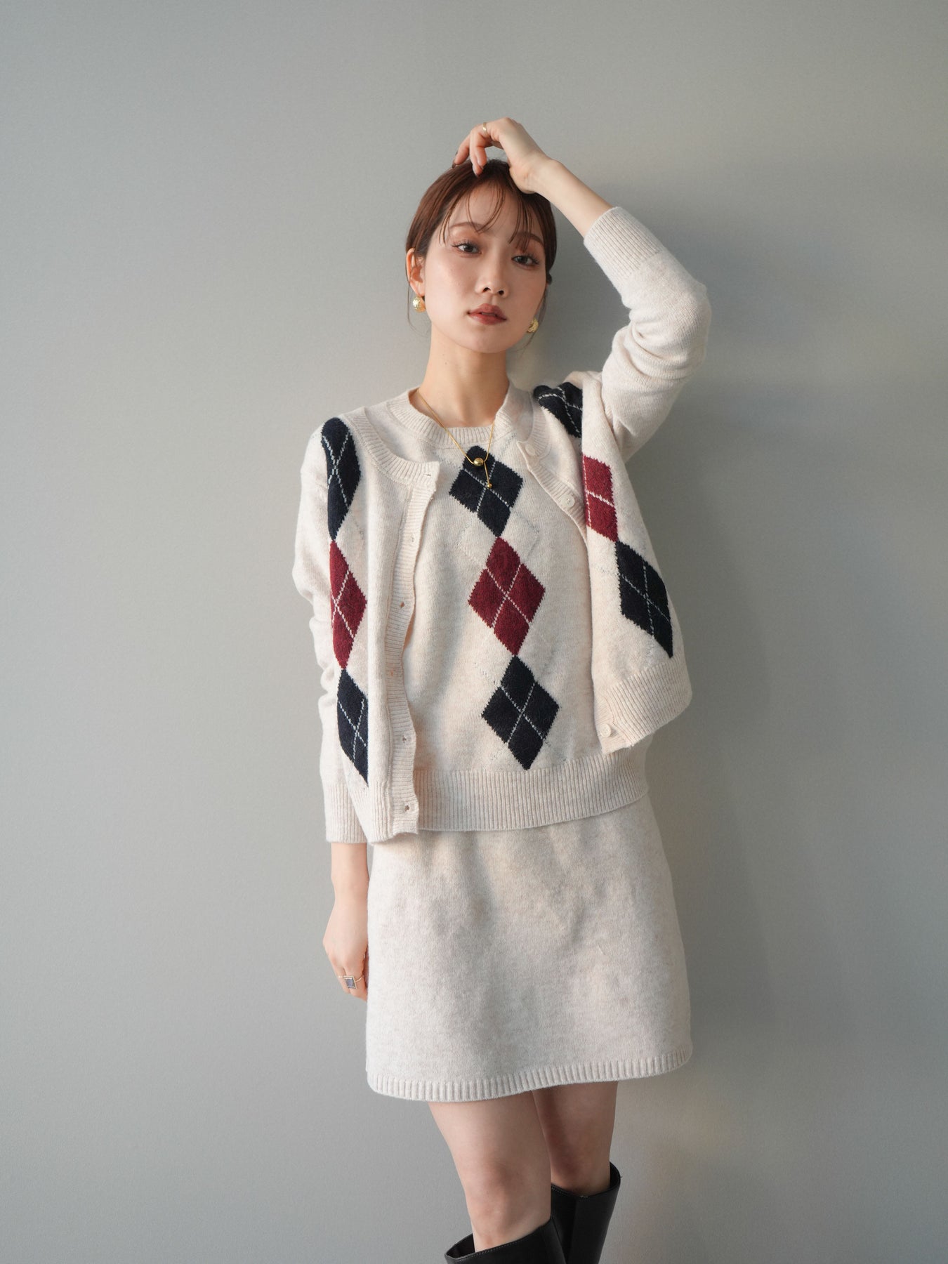 アーガイル柄をポイントにあしらったニットベスト・ニットトップス・ニットパンツの3ピースセット。統一感のあるデザインでセットアップとしてはもちろん、それぞれ単品でも着回しやすい万能アイテムです。ベストはレイヤードしやすい程よいゆとりのシルエットで、トップスは着心地の良い柔らかな風合いが魅力。パンツはリラックス感がありながらもすっきり見えするストレートラインで、デイリーに取り入れやすいバランスに仕上げています。コーディネート全体がまとまりやすく、これ一つで季節感のあるスタイルが完成する便利なセットです。
