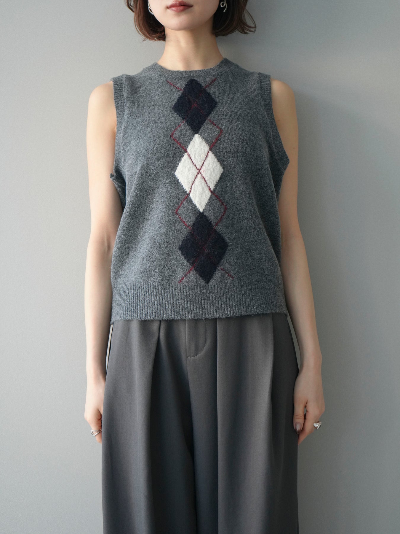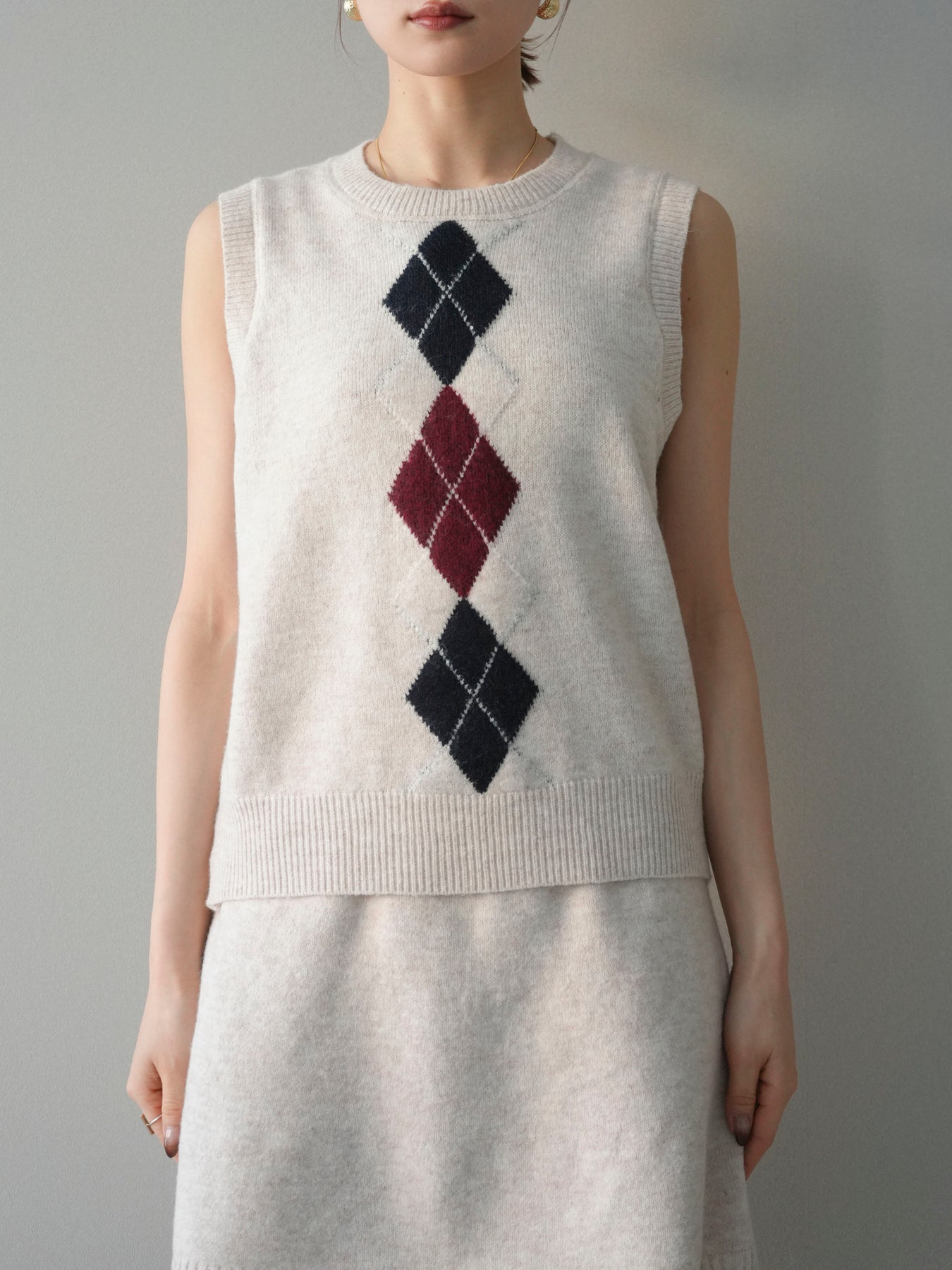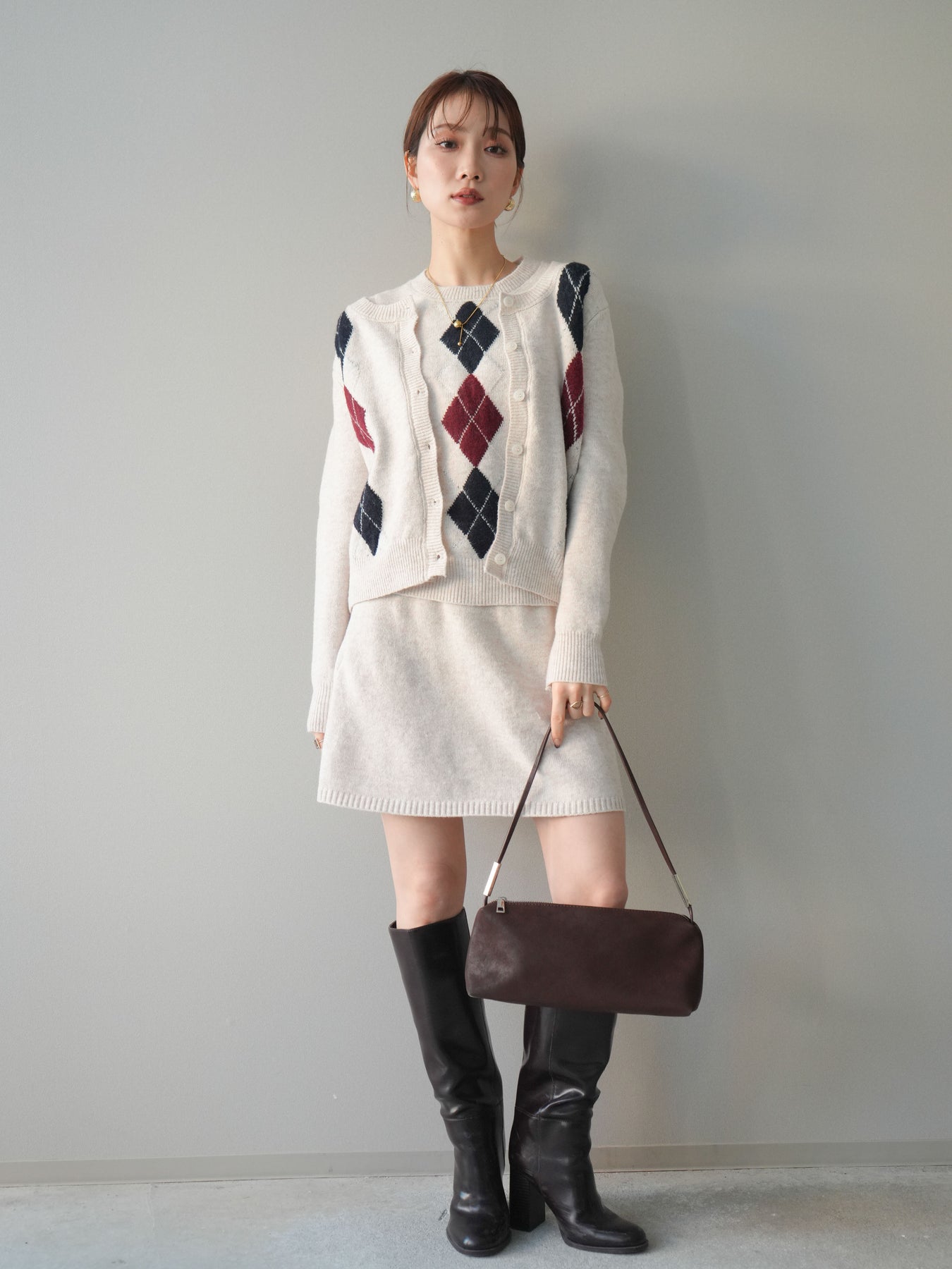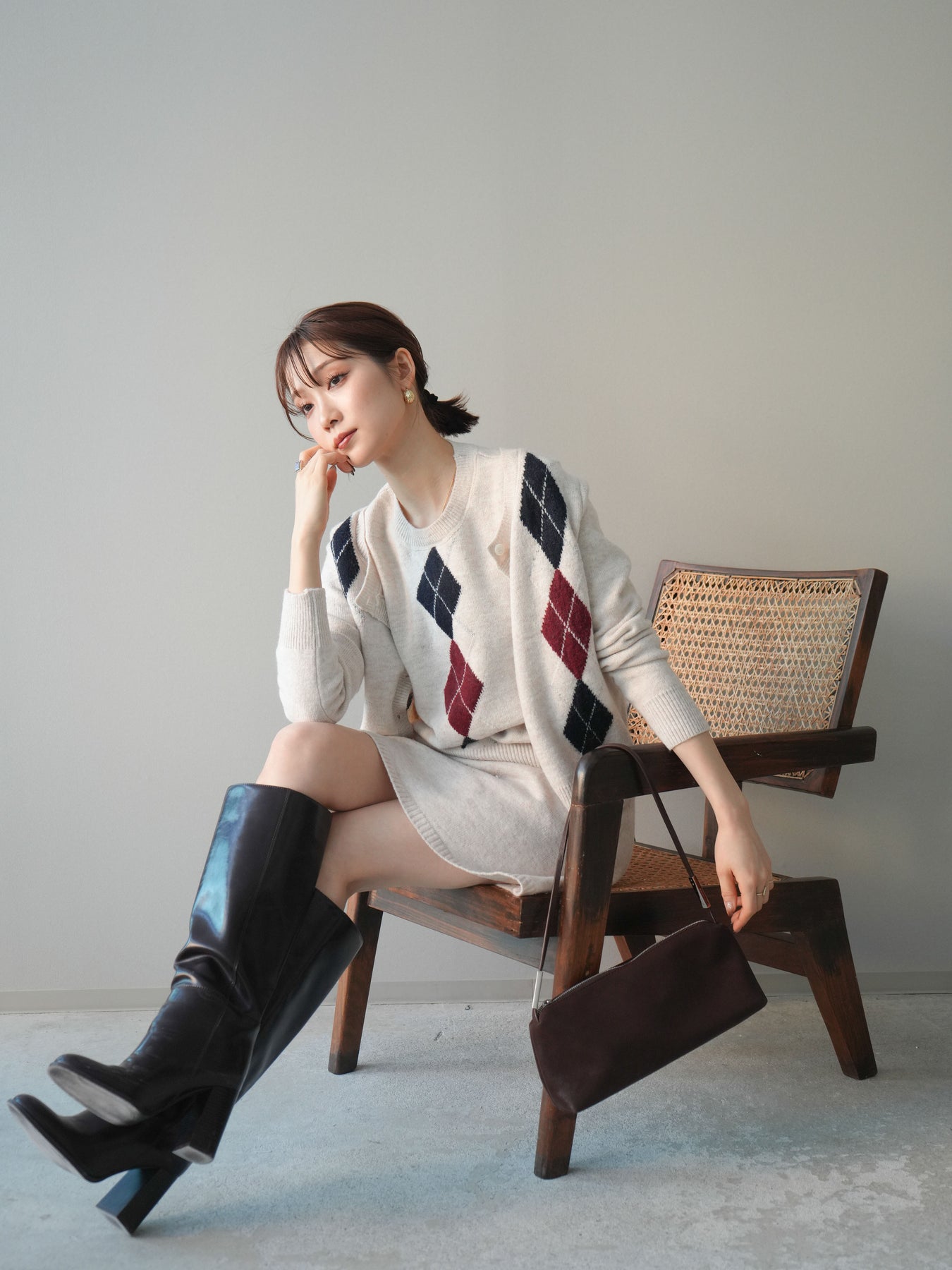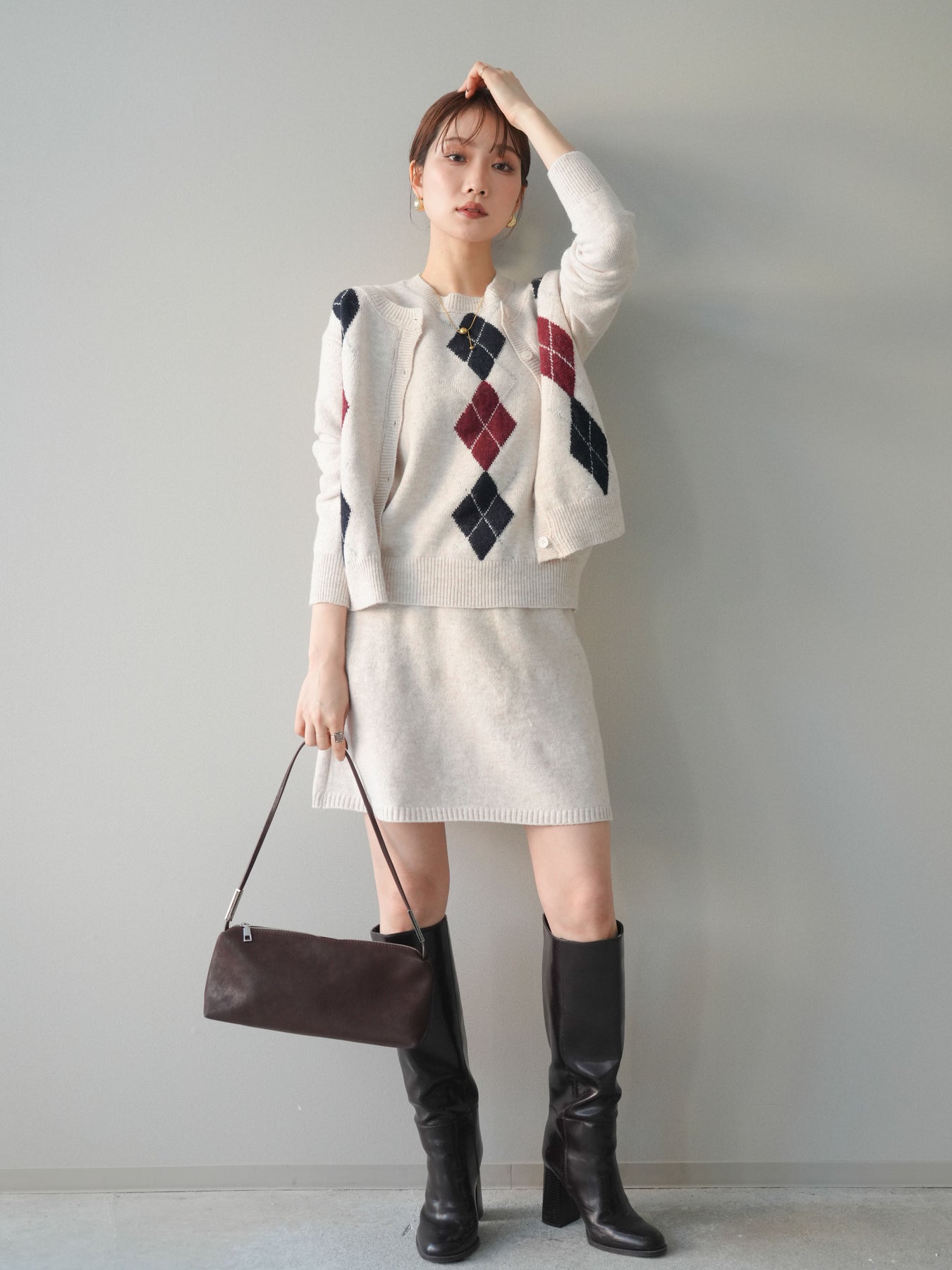 アーガイル柄をポイントにあしらったニットベスト・ニットトップス・ニットパンツの3ピースセット。統一感のあるデザインでセットアップとしてはもちろん、それぞれ単品でも着回しやすい万能アイテムです。ベストはレイヤードしやすい程よいゆとりのシルエットで、トップスは着心地の良い柔らかな風合いが魅力。パンツはリラックス感がありながらもすっきり見えするストレートラインで、デイリーに取り入れやすいバランスに仕上げています。コーディネート全体がまとまりやすく、これ一つで季節感のあるスタイルが完成する便利なセットです。