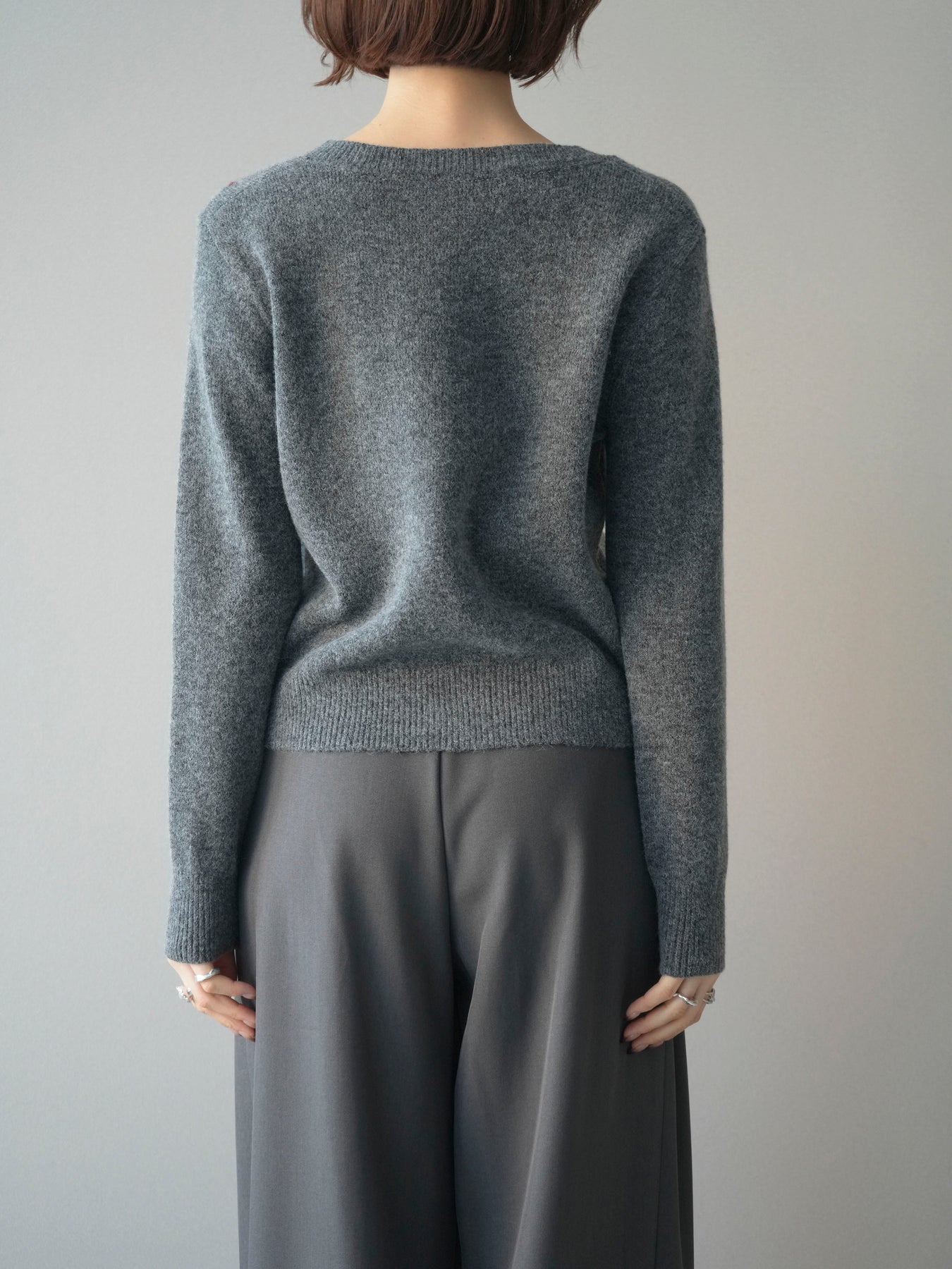 ・お手入れ方法:水温30℃以下手洗い優しく押し洗いでのお洗濯をお薦めします。素材の特性上、洗濯の際に毛抜け・色落ち・縮みが生じる恐れがありますので単独で・短時間でのお洗濯をお薦めします。裏返してネットに入れ手洗いコースで洗濯、洗濯後は形を整えてから干してください。※タンブラー乾燥は控えてください。濡れたままの状態で擦れると、色落ち色移りすることがあります。つけ置き洗いや雨や汗で濡れたまま放置は避け、速やかに処理してください。着用中の摩擦や汗、水濡れ、濃淡差があるものとの重ね着にご注意ください。また、素材の特性上伸びやすい為ハンガーの使用はお控えいただき畳んで保管ください。