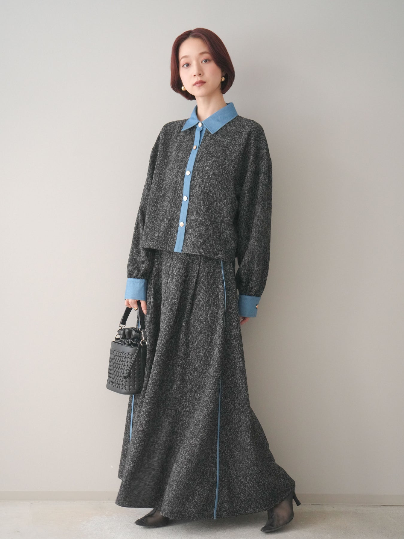 [予約]異素材サマーツイードタックフレアスカートに関連する商品を探す↓