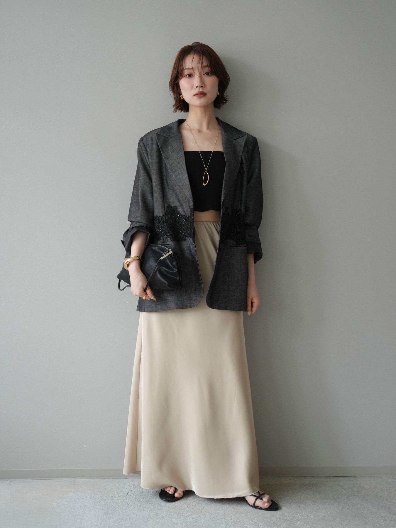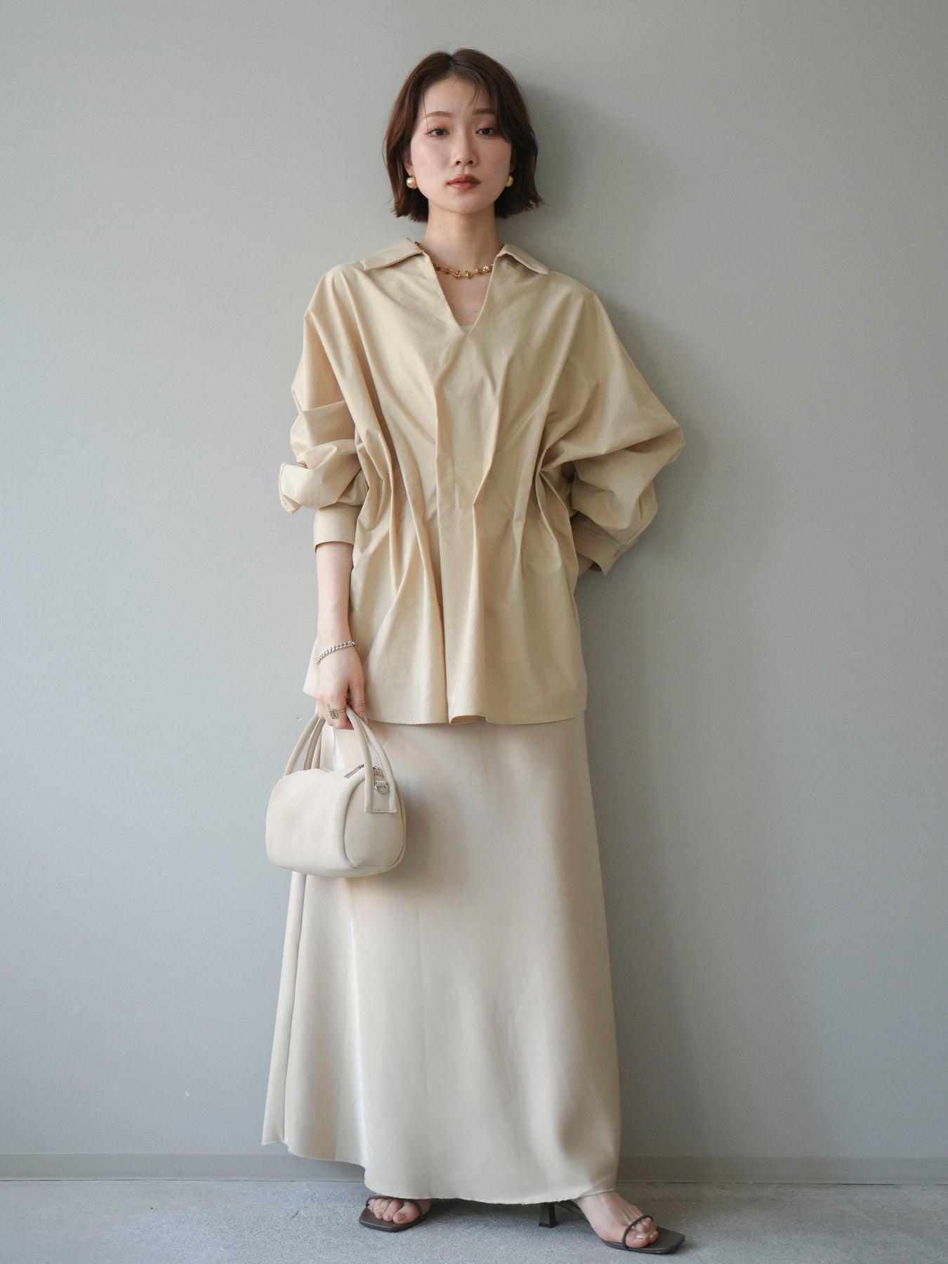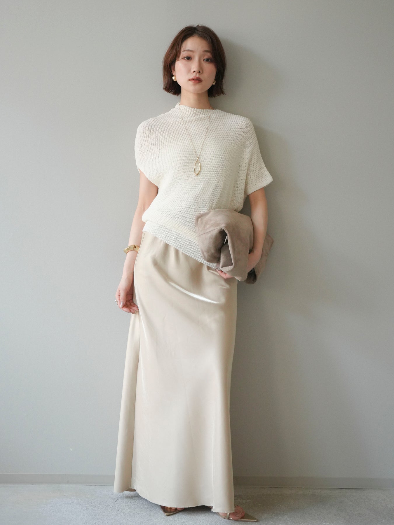 [予約]ドレープサテンスカート /yellow