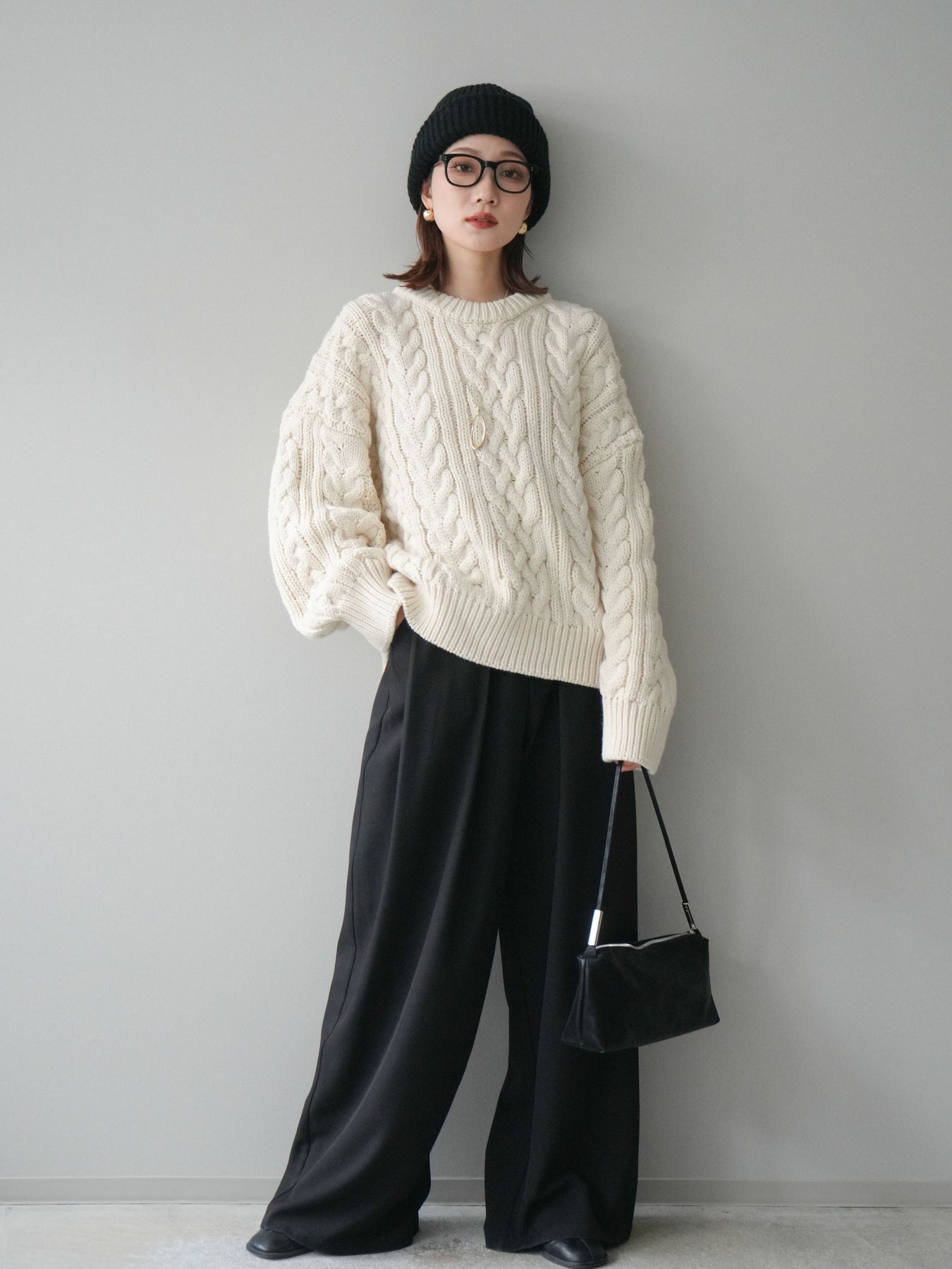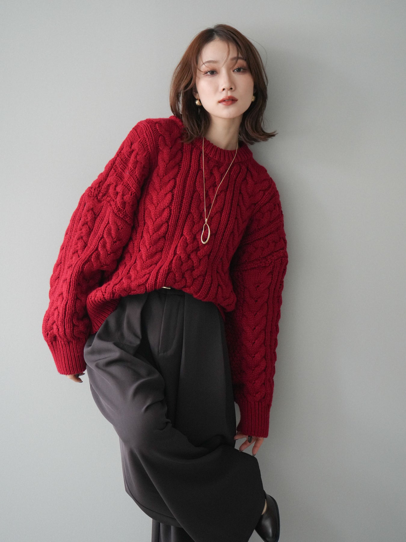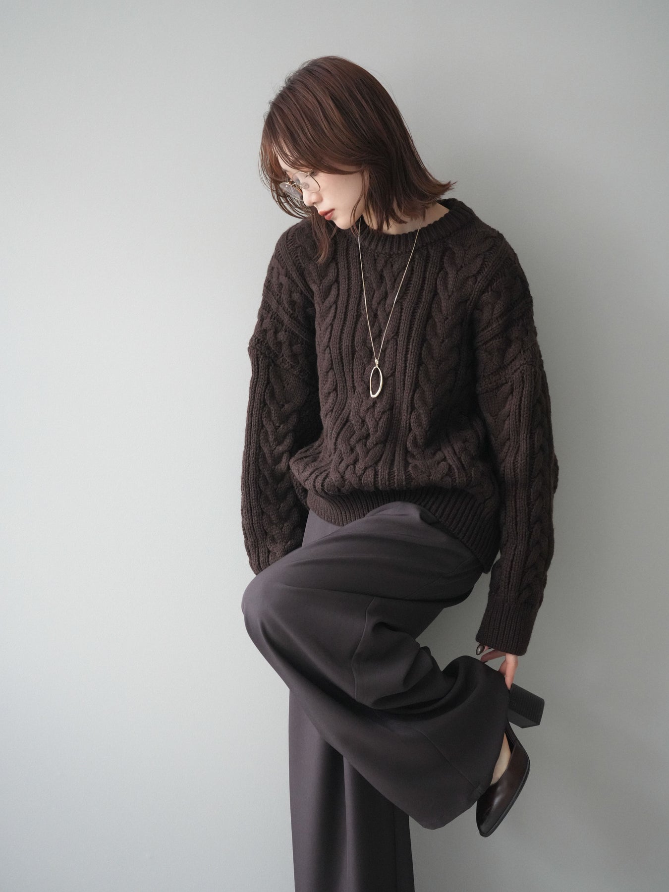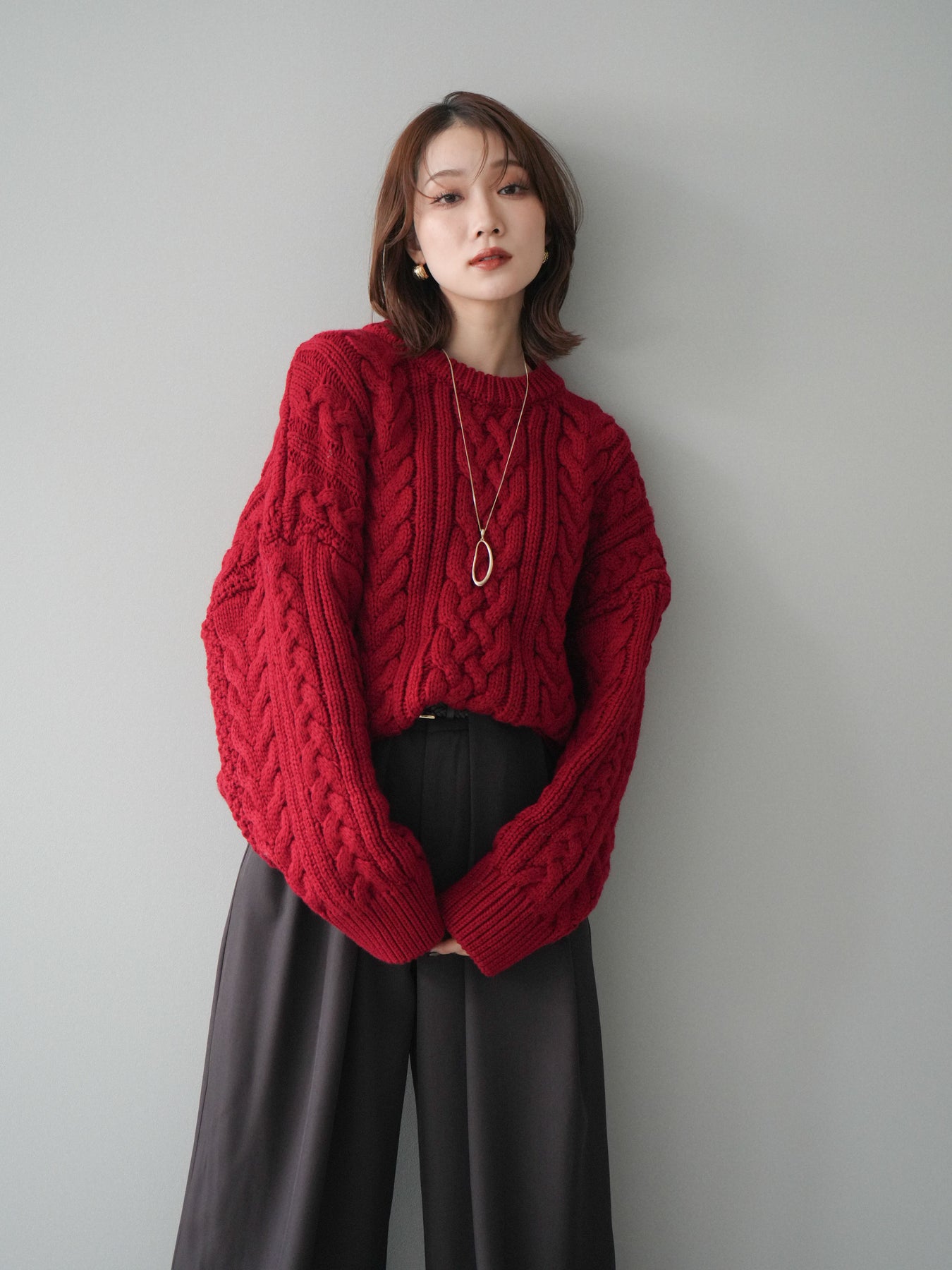 ざっくりとした編地が目を惹くケーブルニットプルオーバー。 立体感のある編み柄とゆったりとしたシルエットが、抜け感のあるリラックスムードを演出します。 程よいボリューム感でありながらも着丈をコンパクトに仕上げており、ボトムとのバランスが取りやすいデザイン。 デニムやワイドパンツ、スカートなど、どんなアイテムとも相性抜群で、スタイリングを華やかに引き立てます。 シーズンライクな温もりを感じる、主役級のニットトップスです。