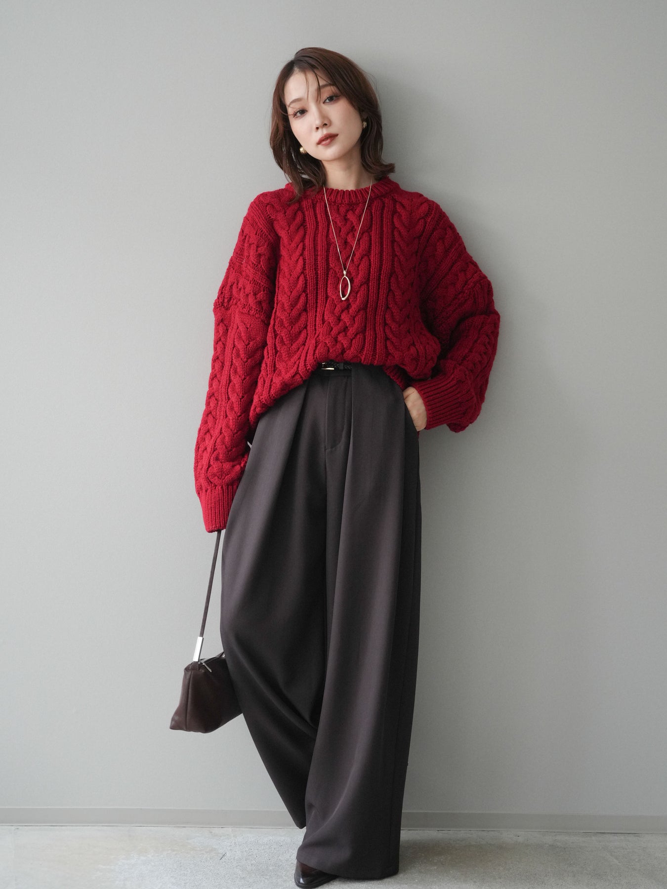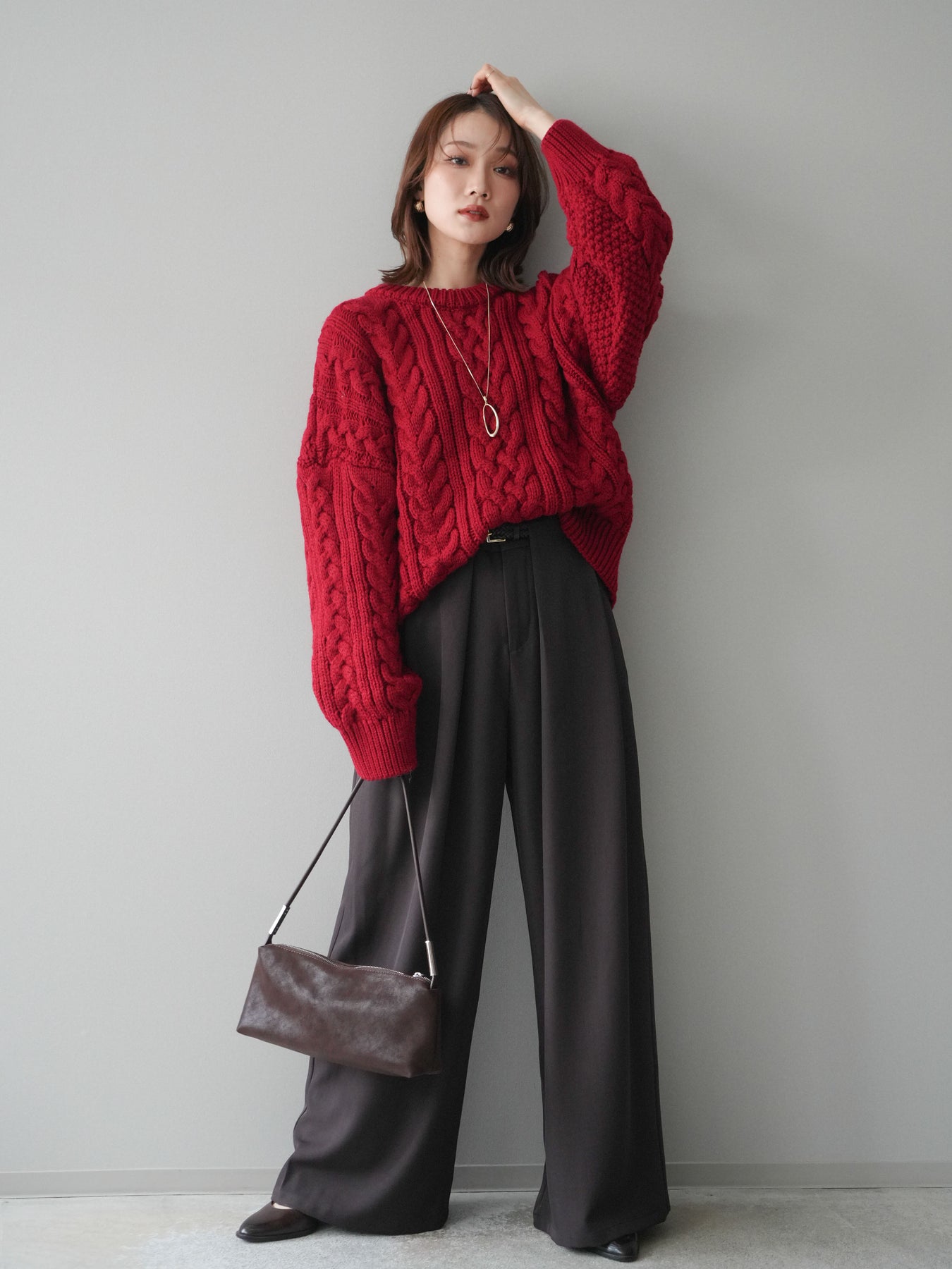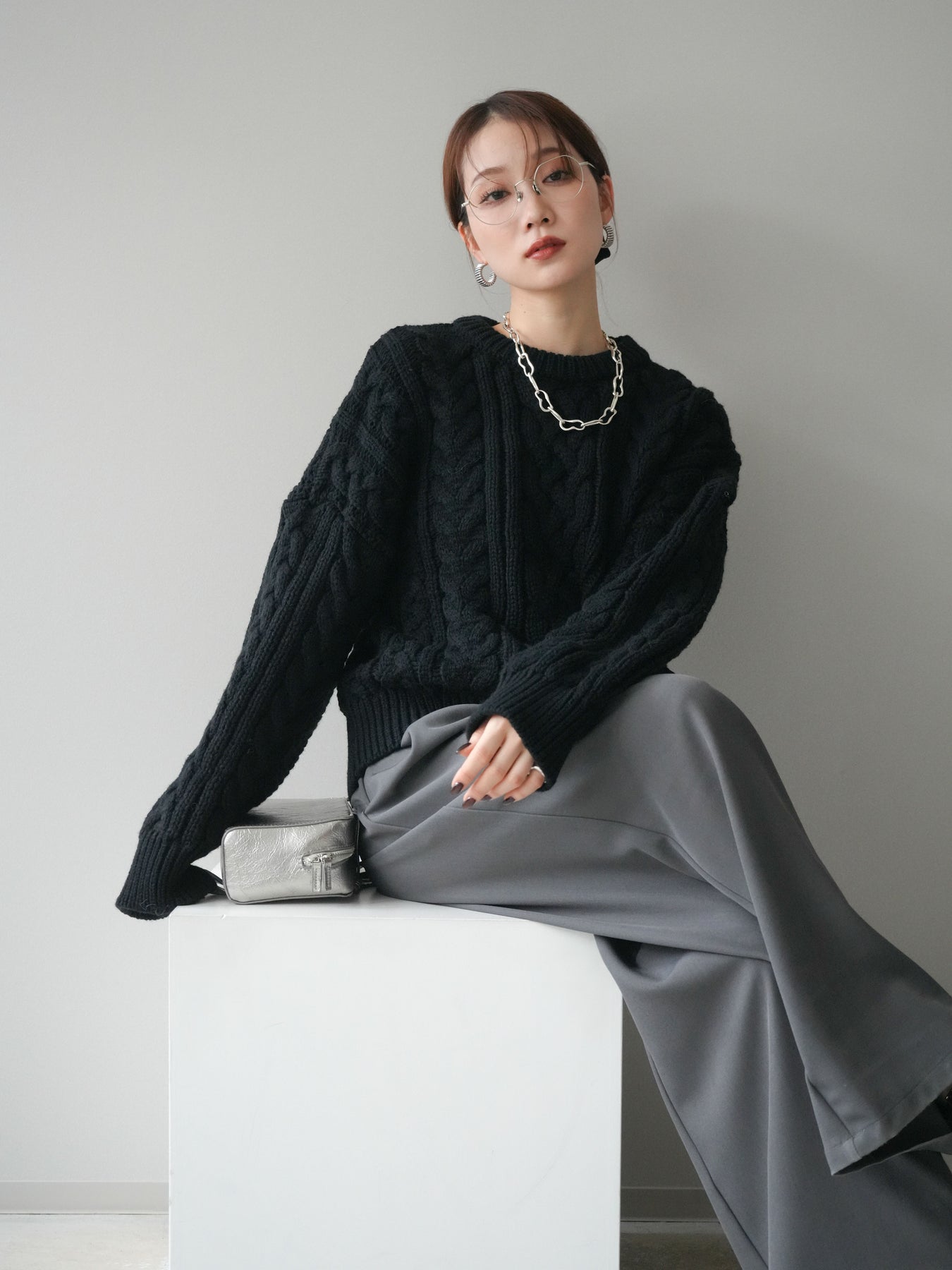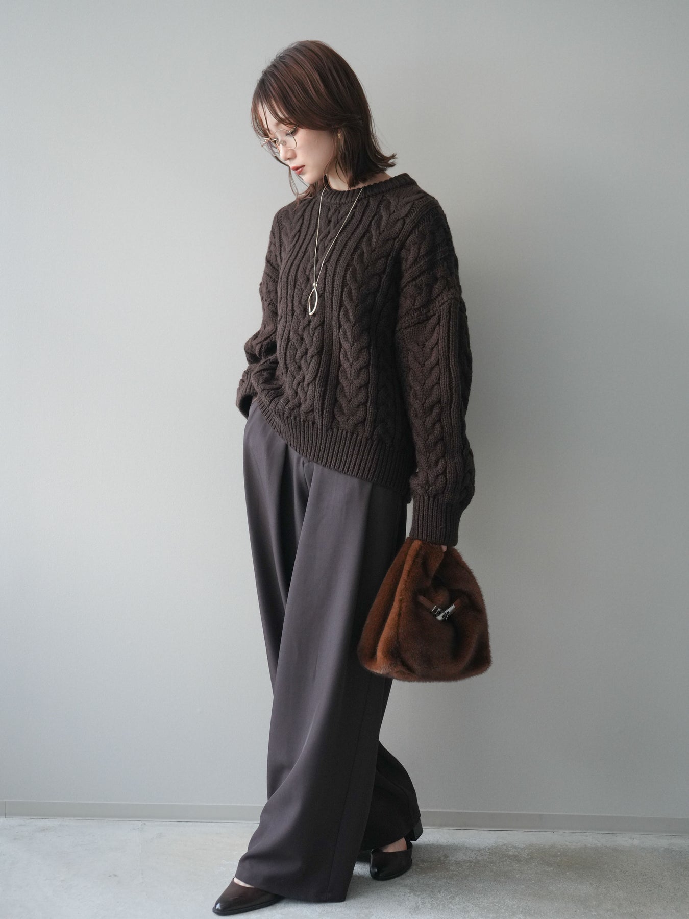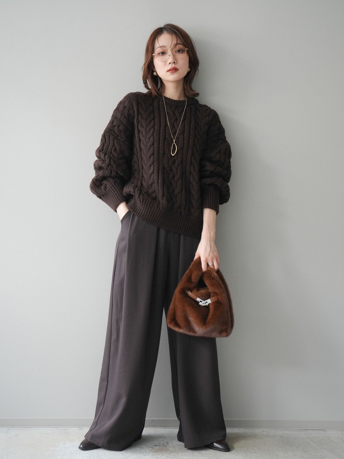ざっくりとした編地が目を惹くケーブルニットプルオーバー。 立体感のある編み柄とゆったりとしたシルエットが、抜け感のあるリラックスムードを演出します。 程よいボリューム感でありながらも着丈をコンパクトに仕上げており、ボトムとのバランスが取りやすいデザイン。 デニムやワイドパンツ、スカートなど、どんなアイテムとも相性抜群で、スタイリングを華やかに引き立てます。 シーズンライクな温もりを感じる、主役級のニットトップスです。