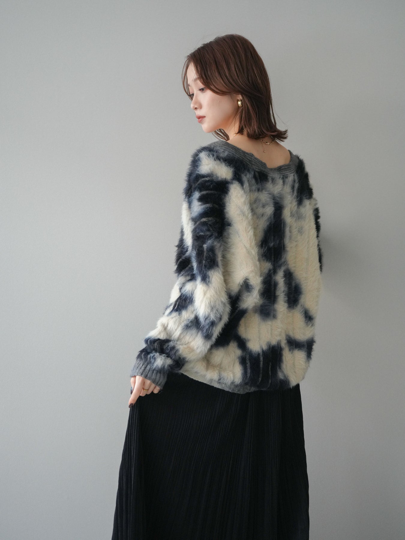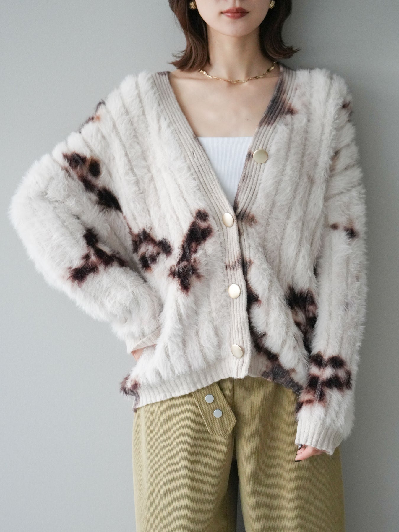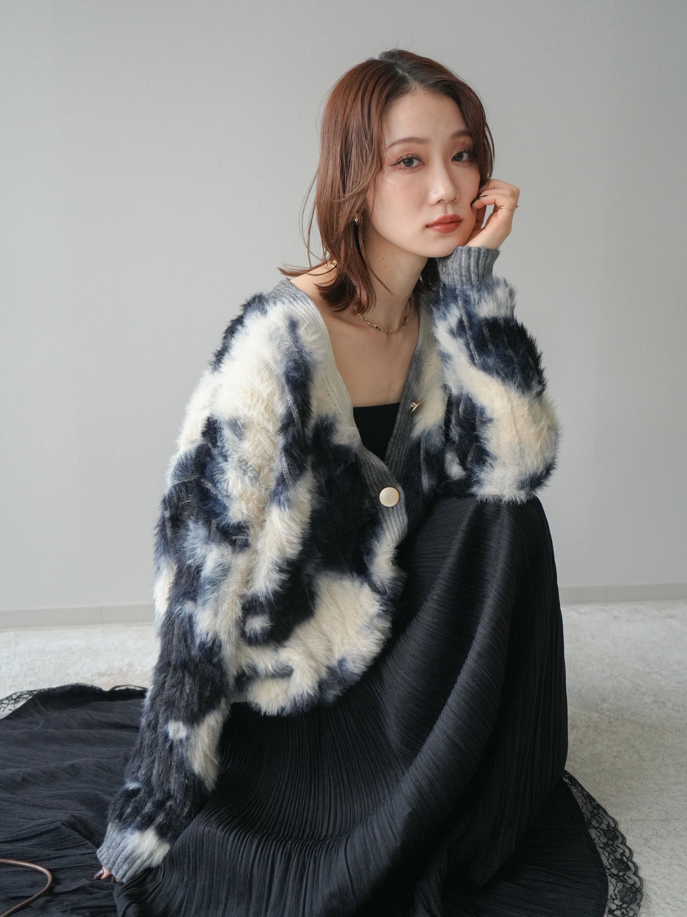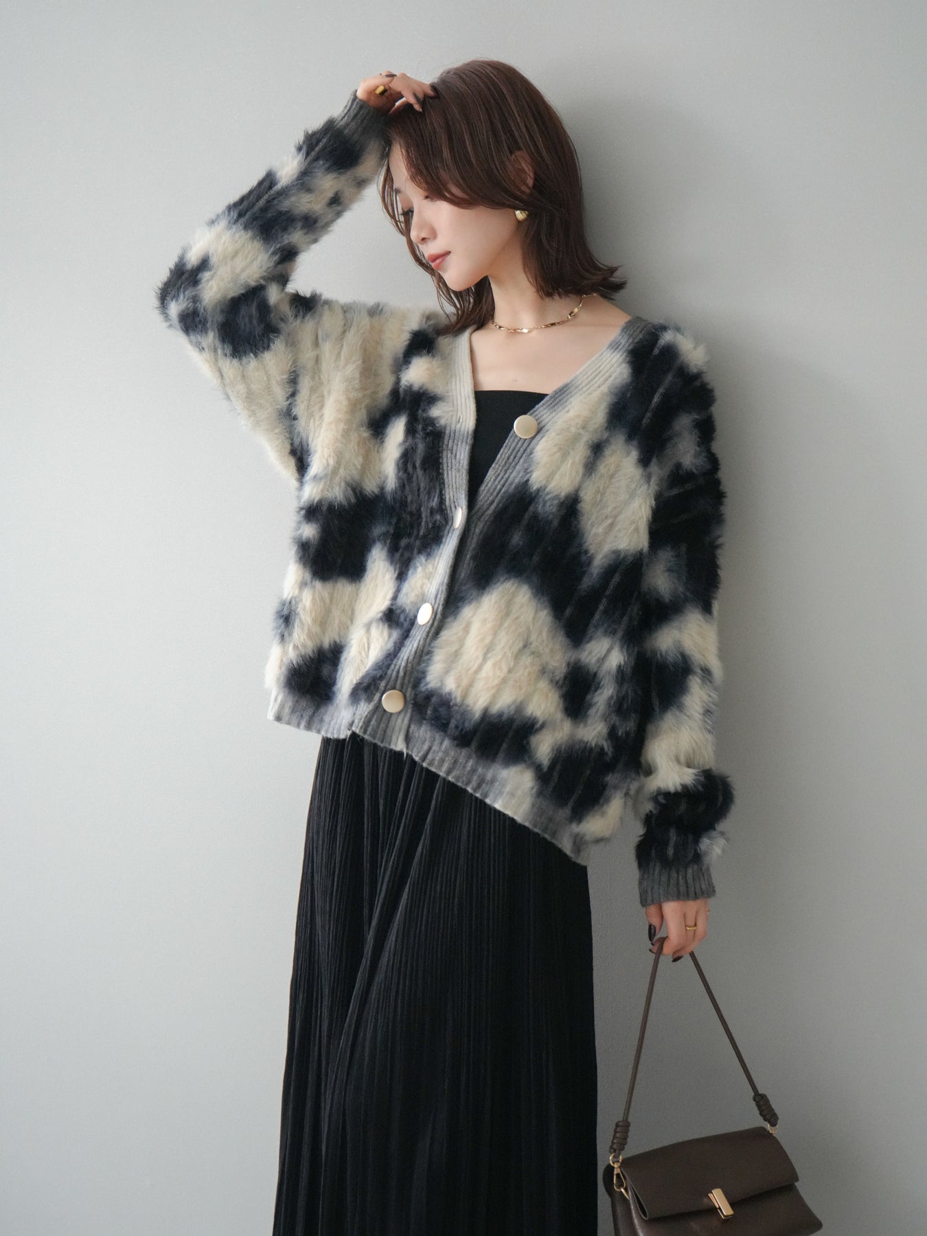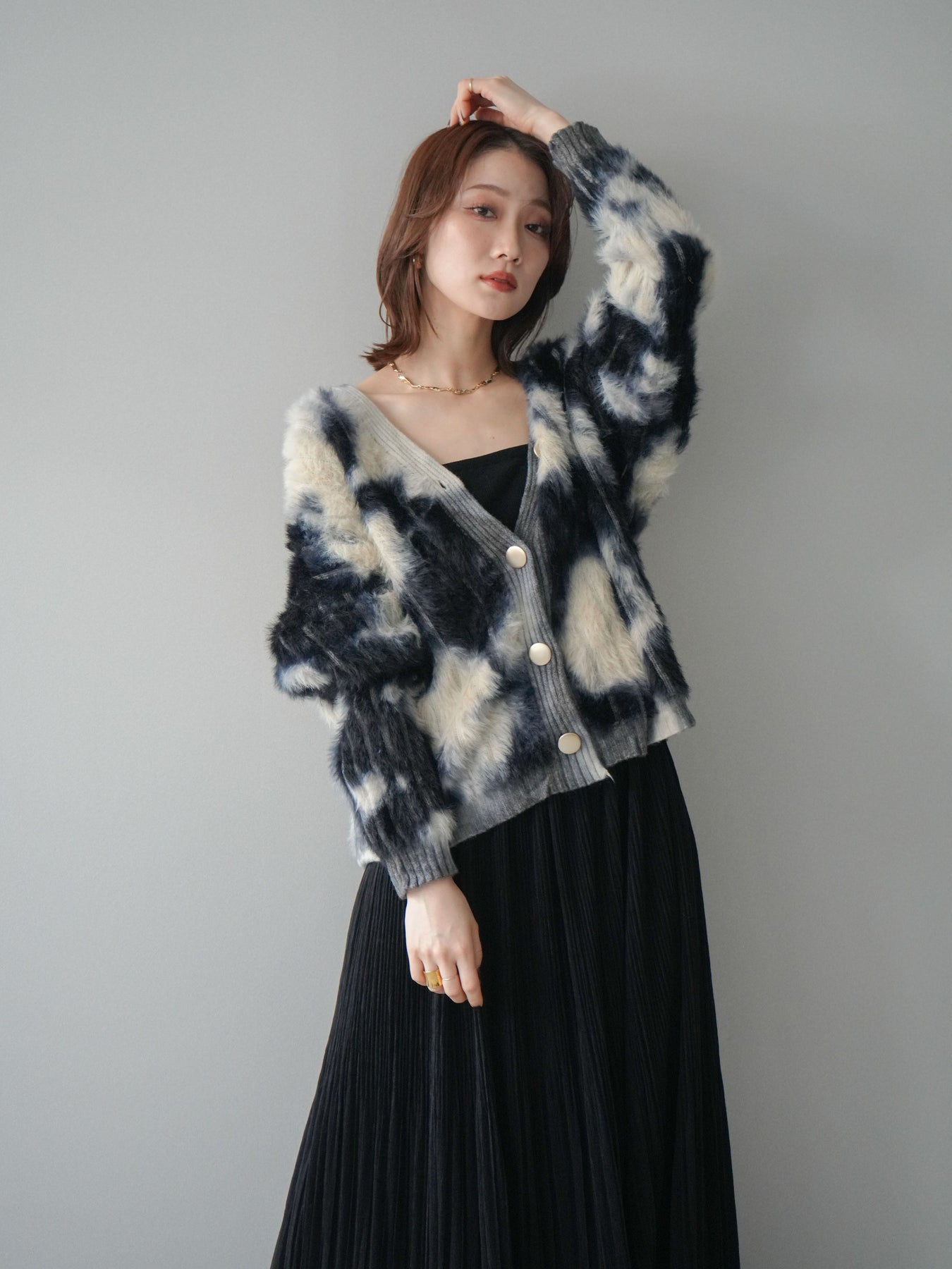 ◆ [予約]ニュアンス柄シャギーニットカーディガン