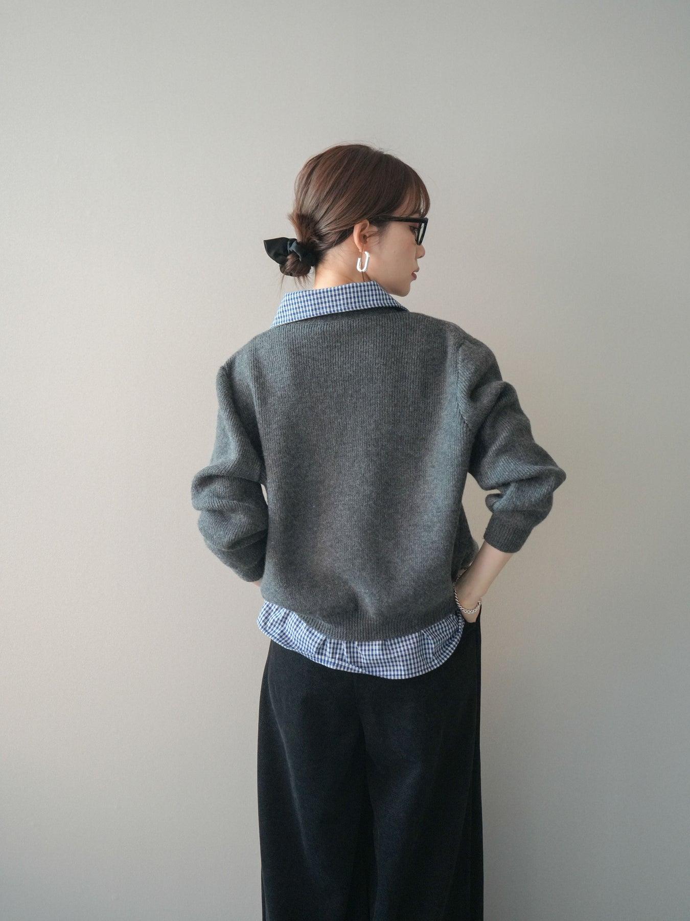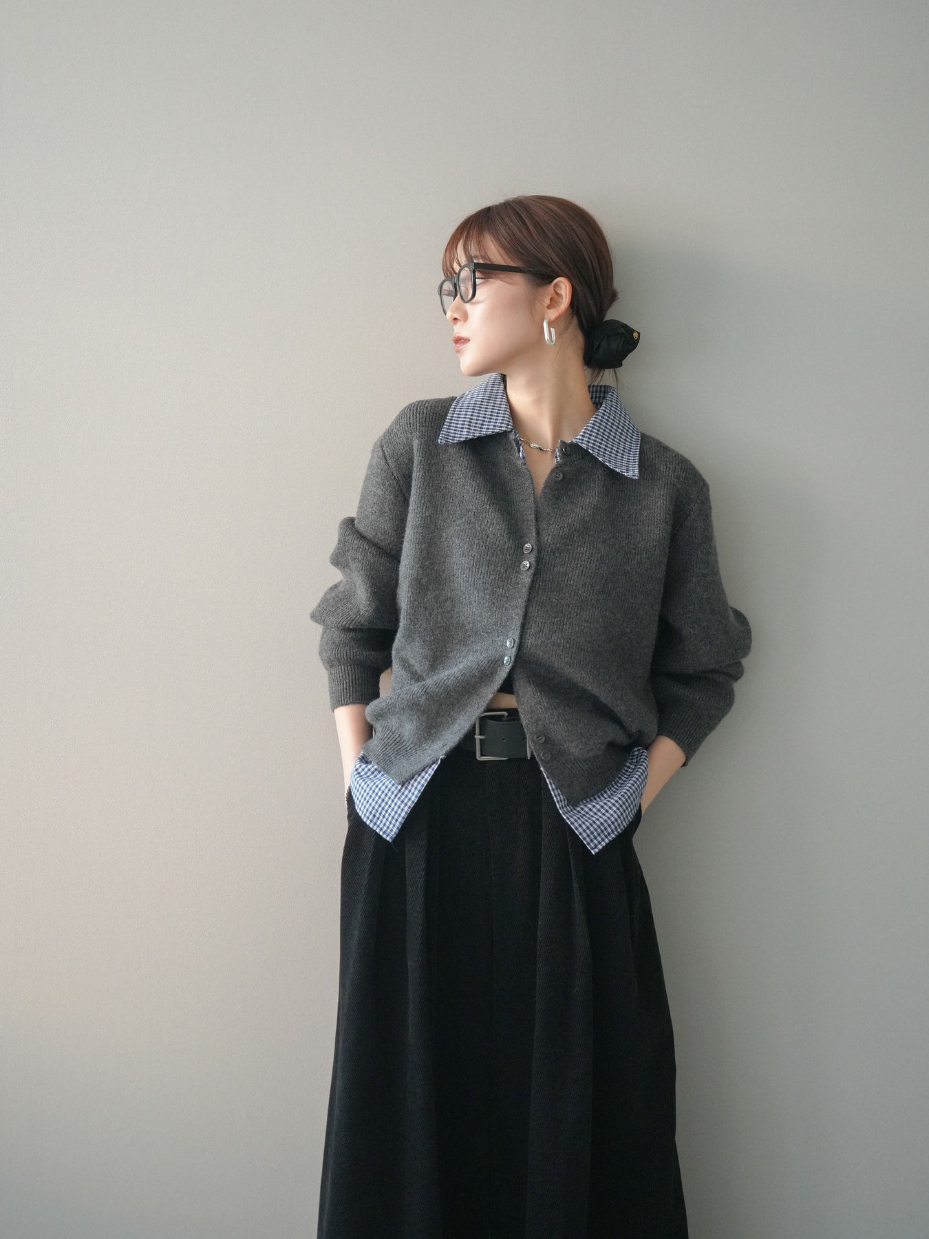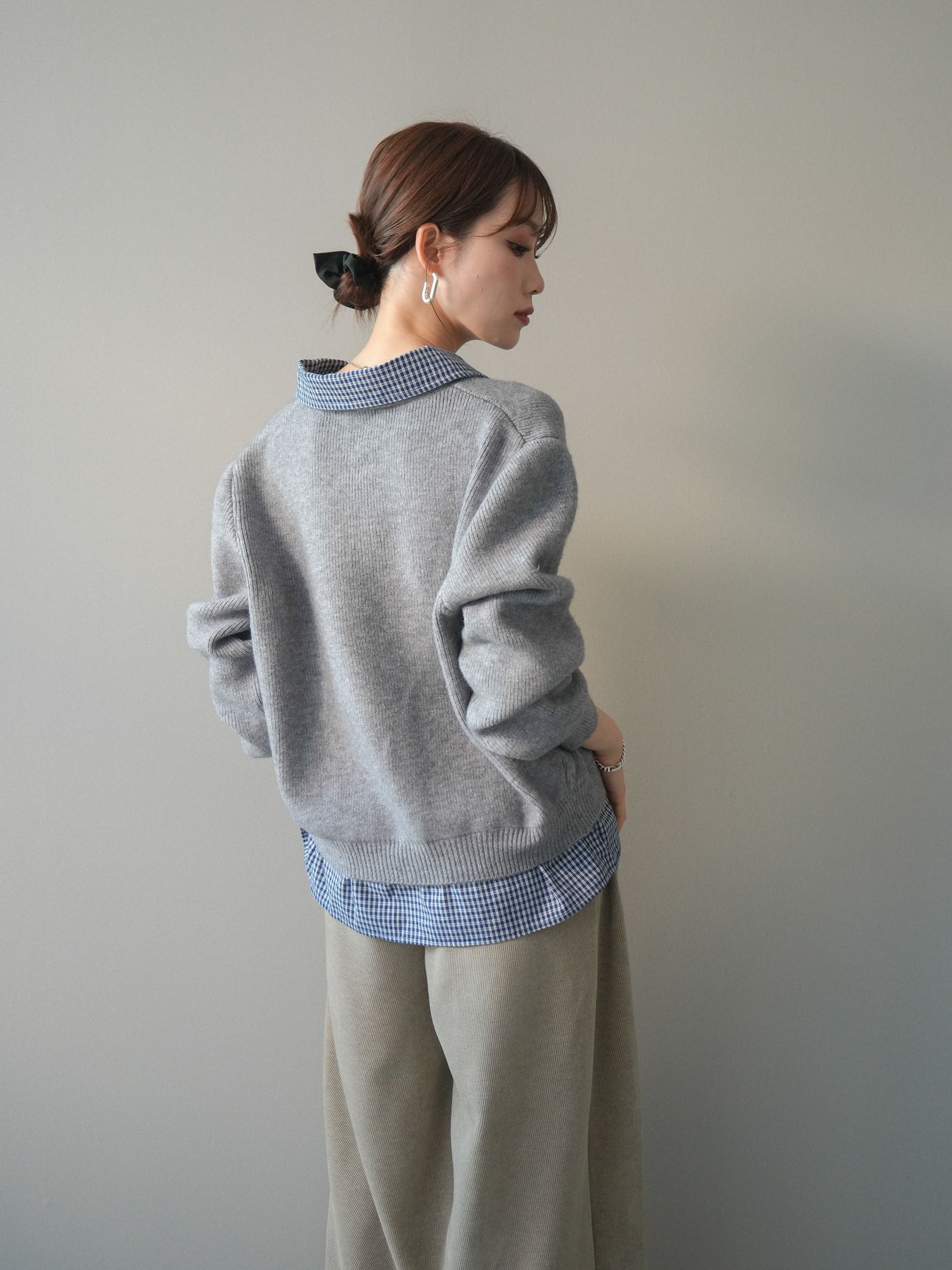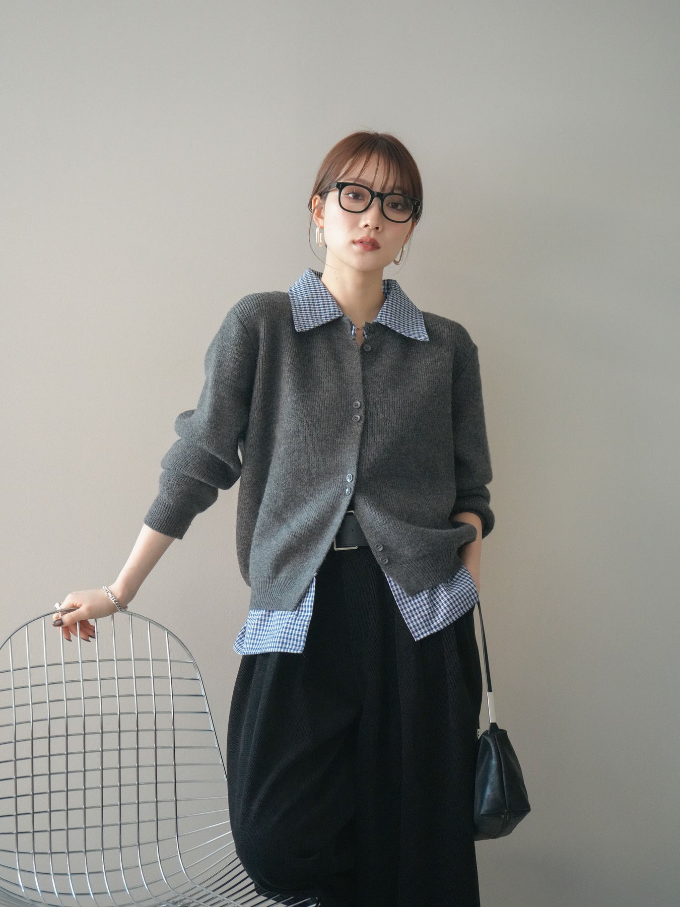 ◆ [予約]チェックシャツ襟ニットカーディガン