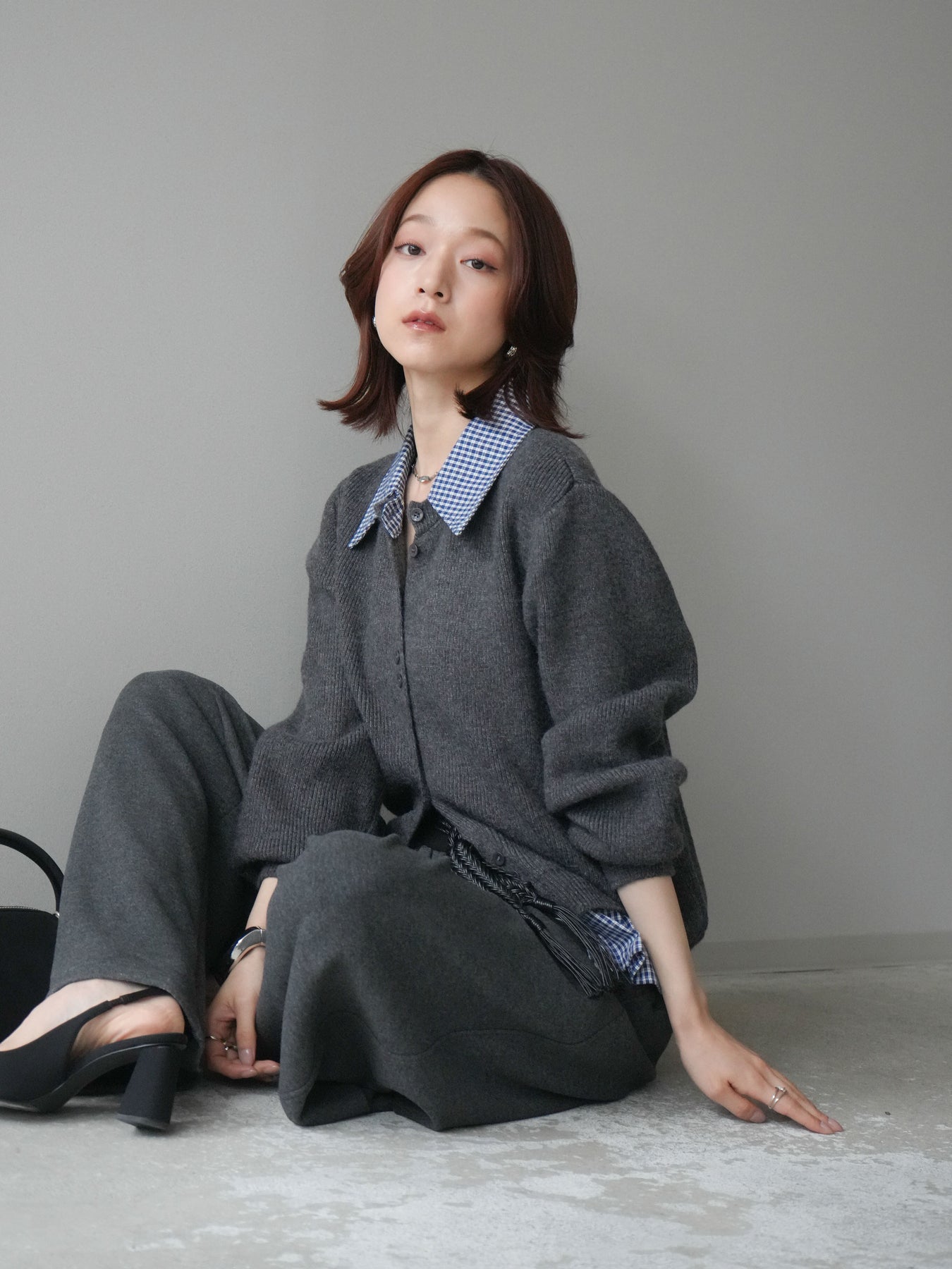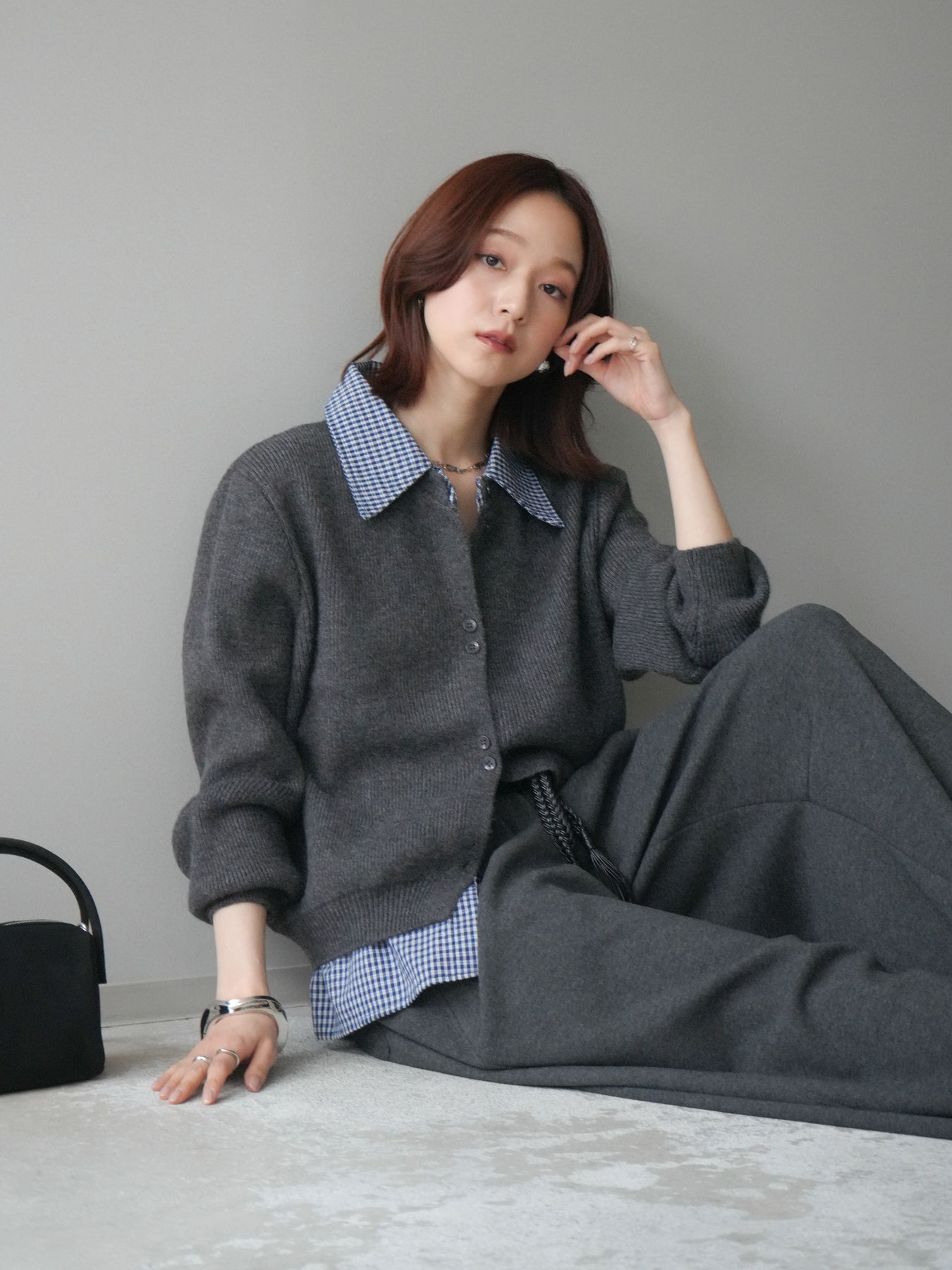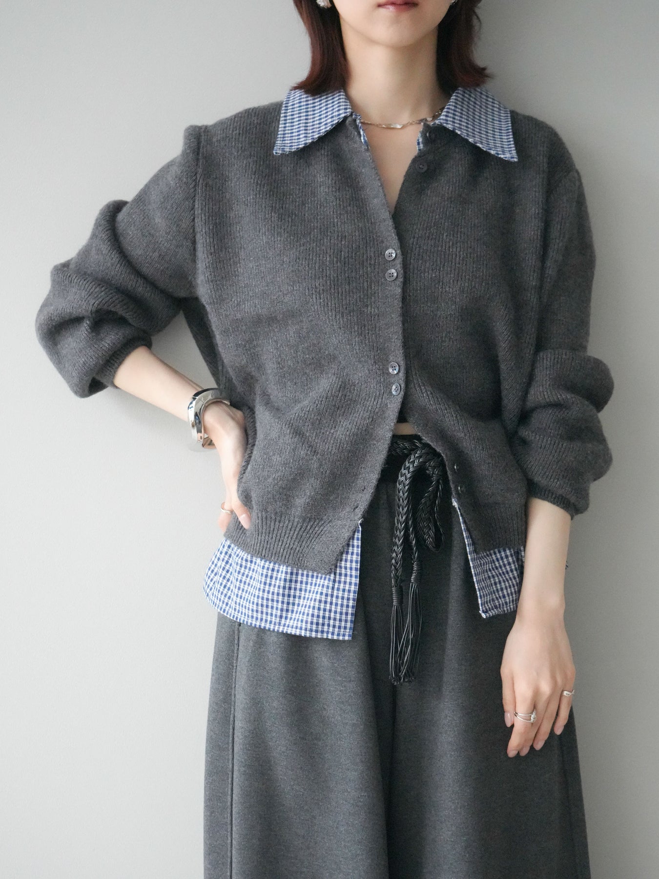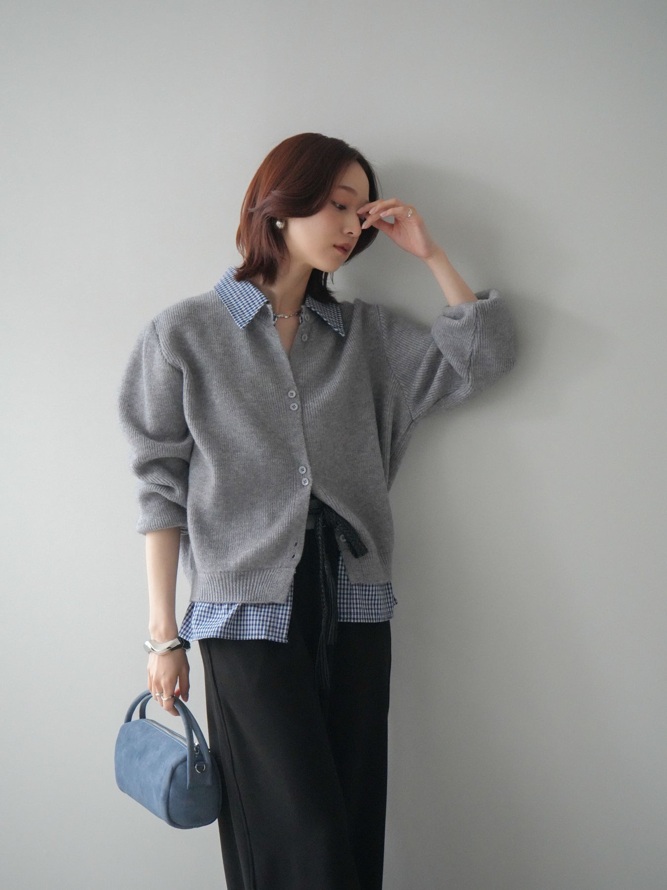 ◆ [予約]チェックシャツ襟ニットカーディガン