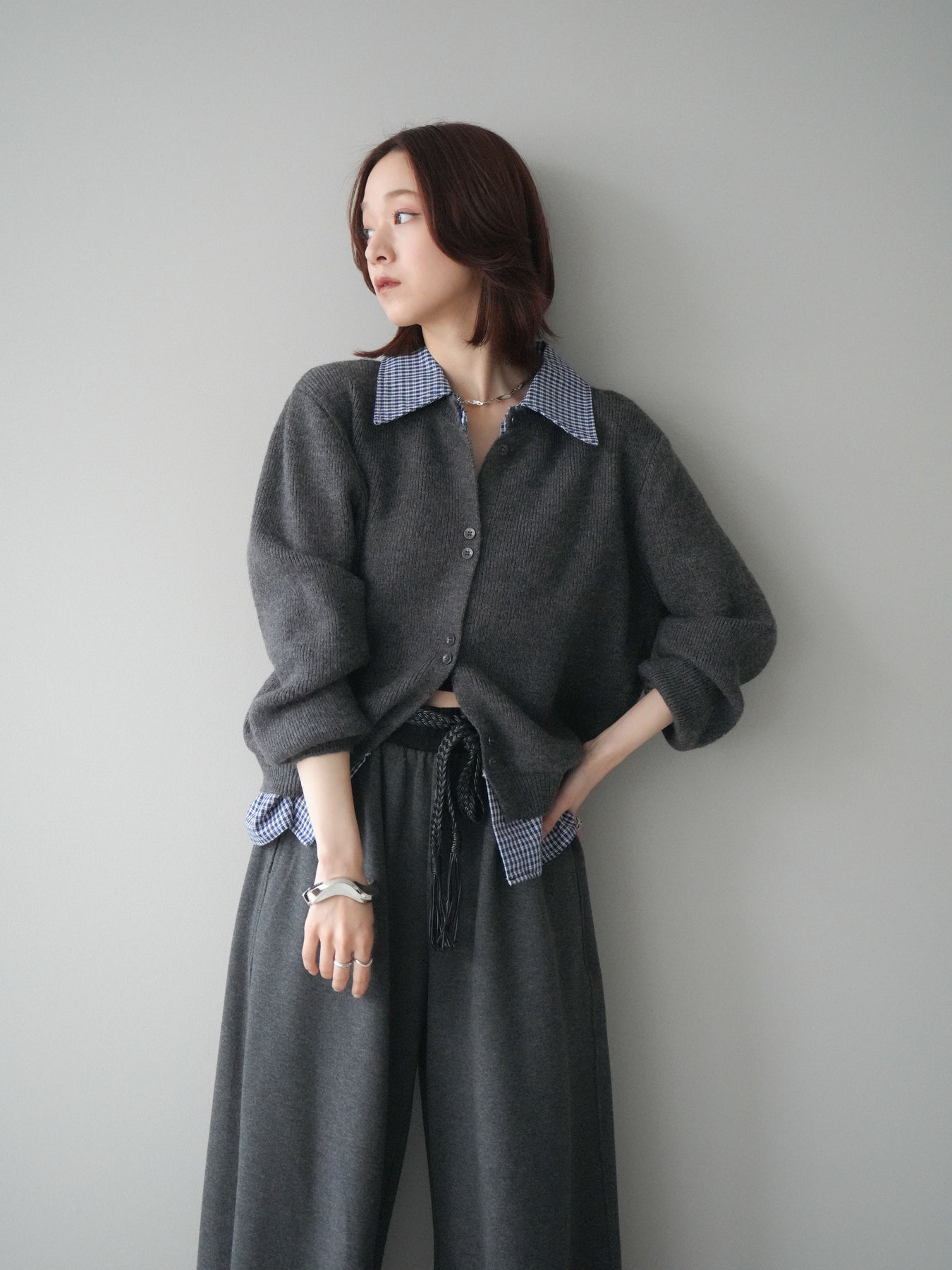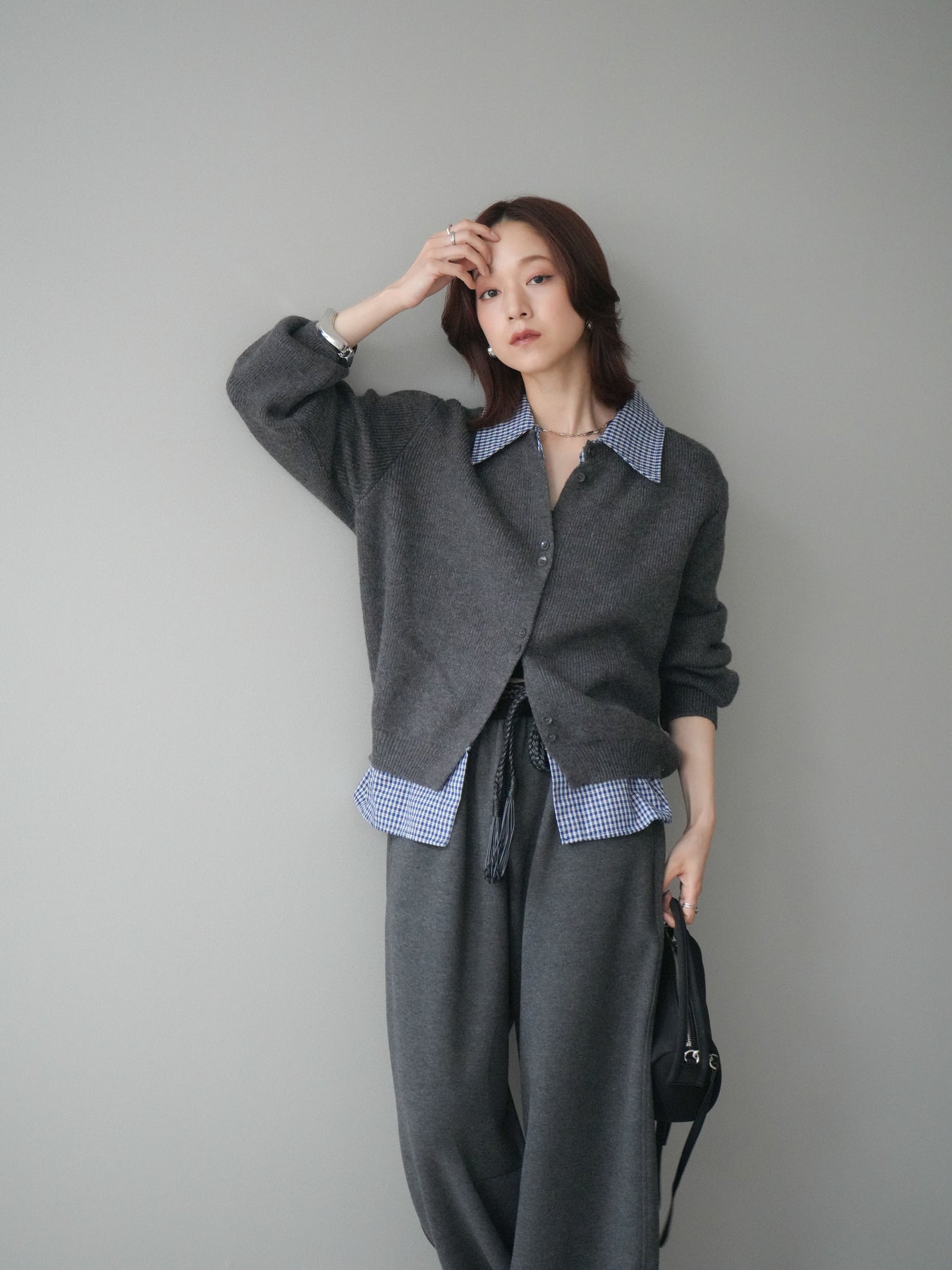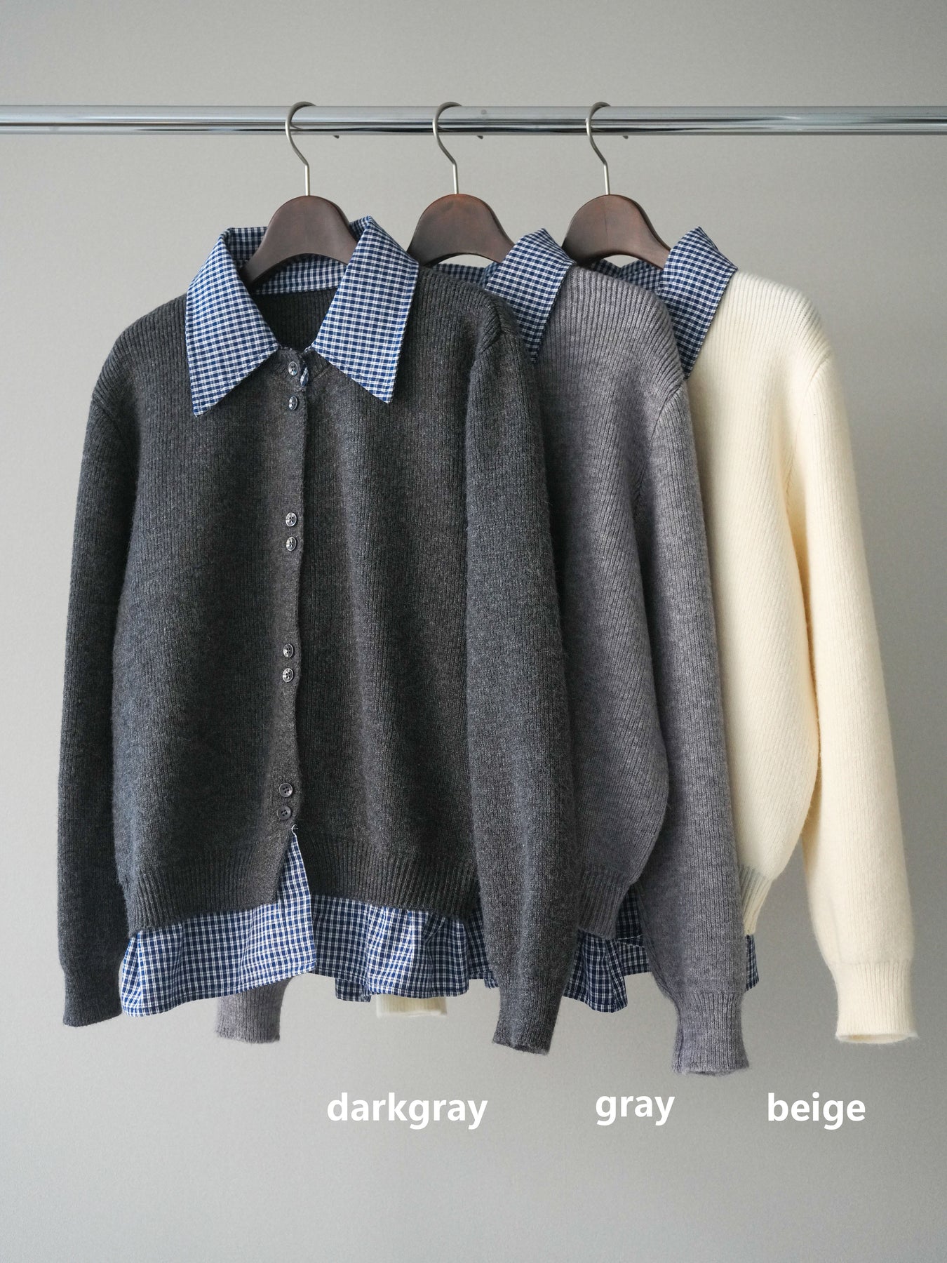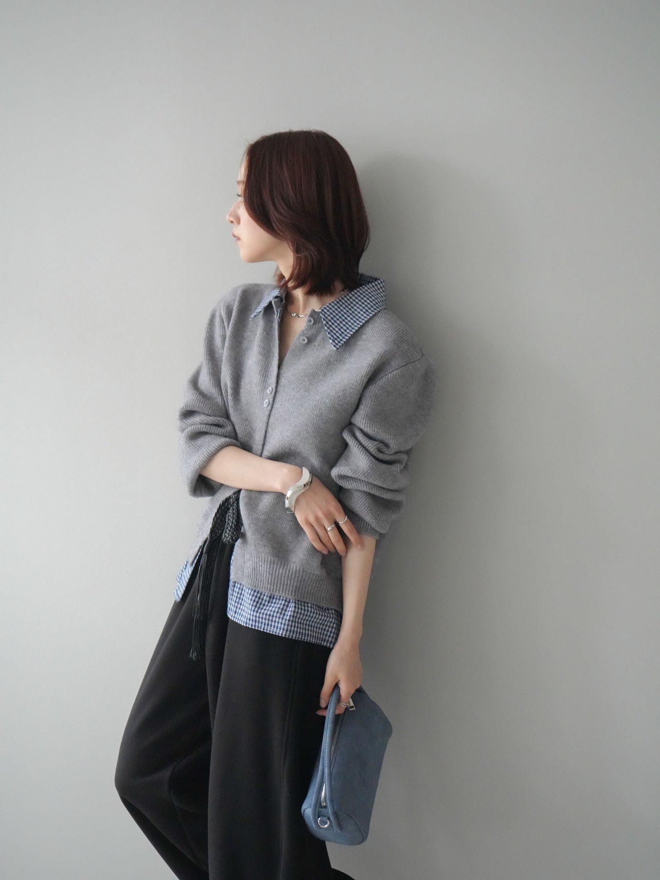 ◆ [予約]チェックシャツ襟ニットカーディガン