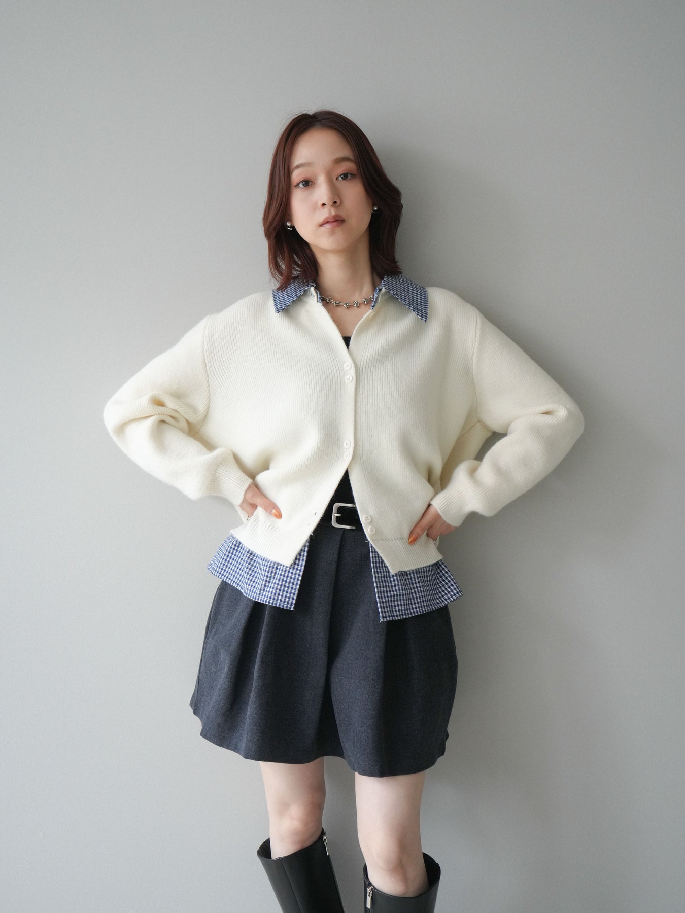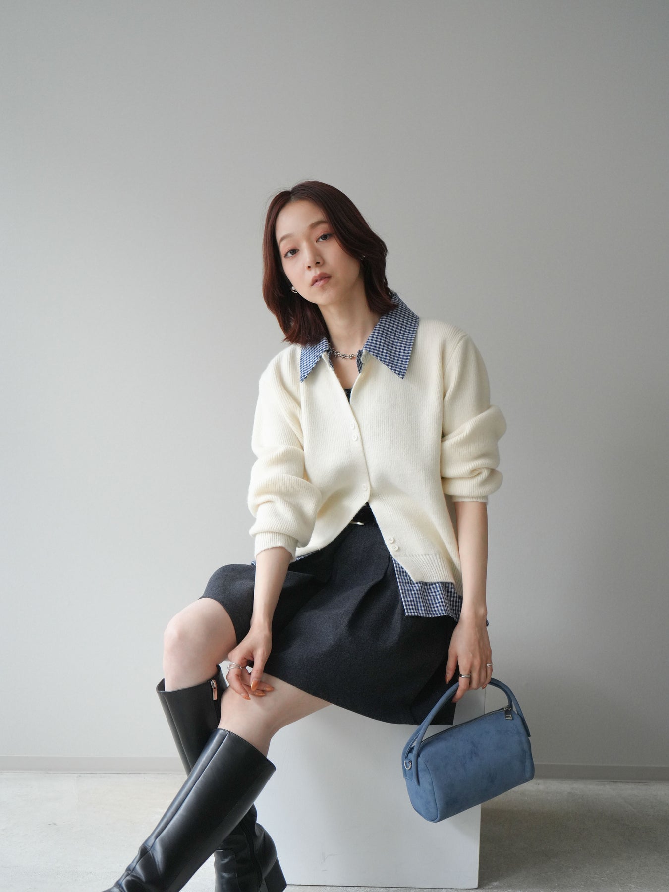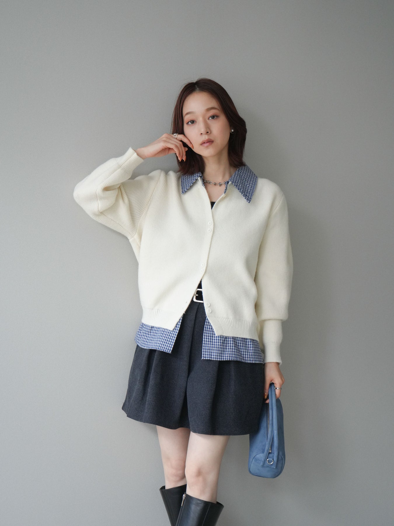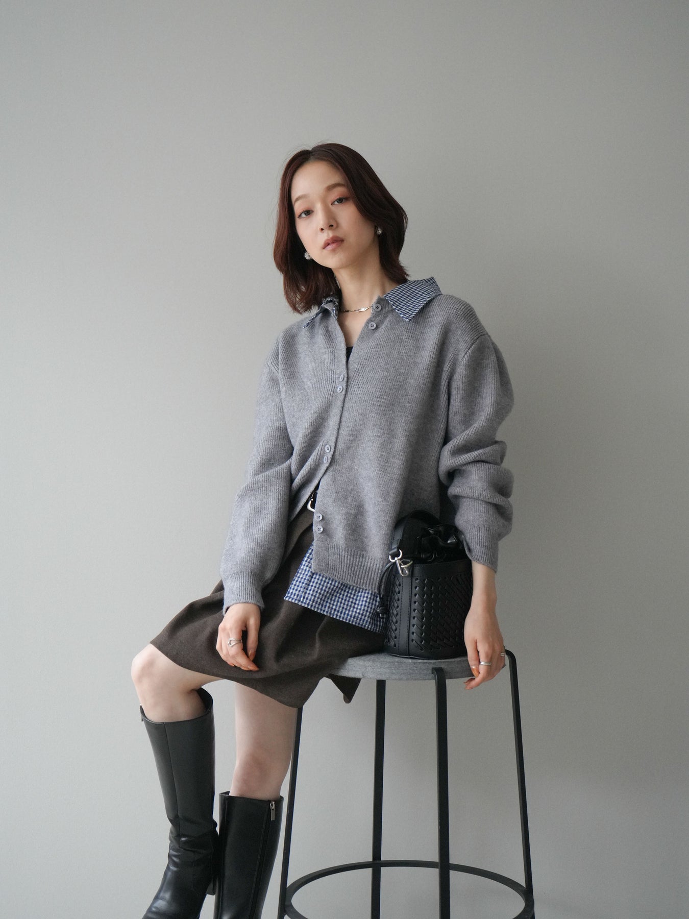 ◆ [予約]チェックシャツ襟ニットカーディガン