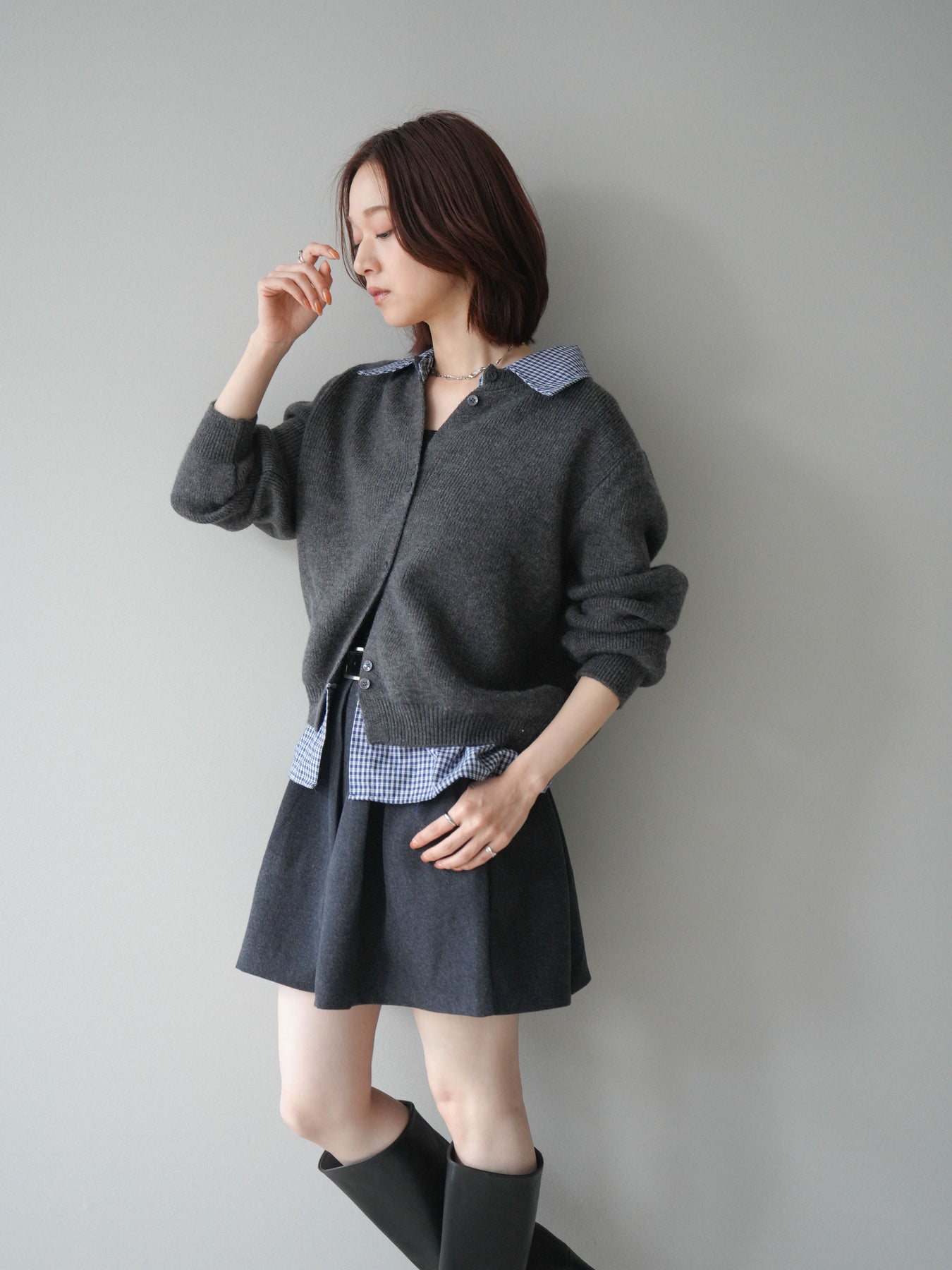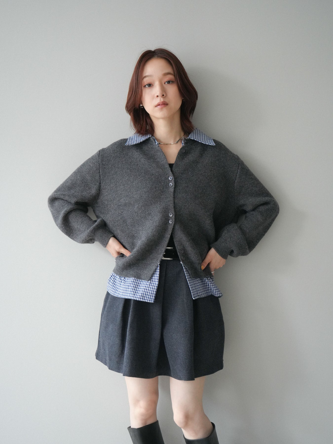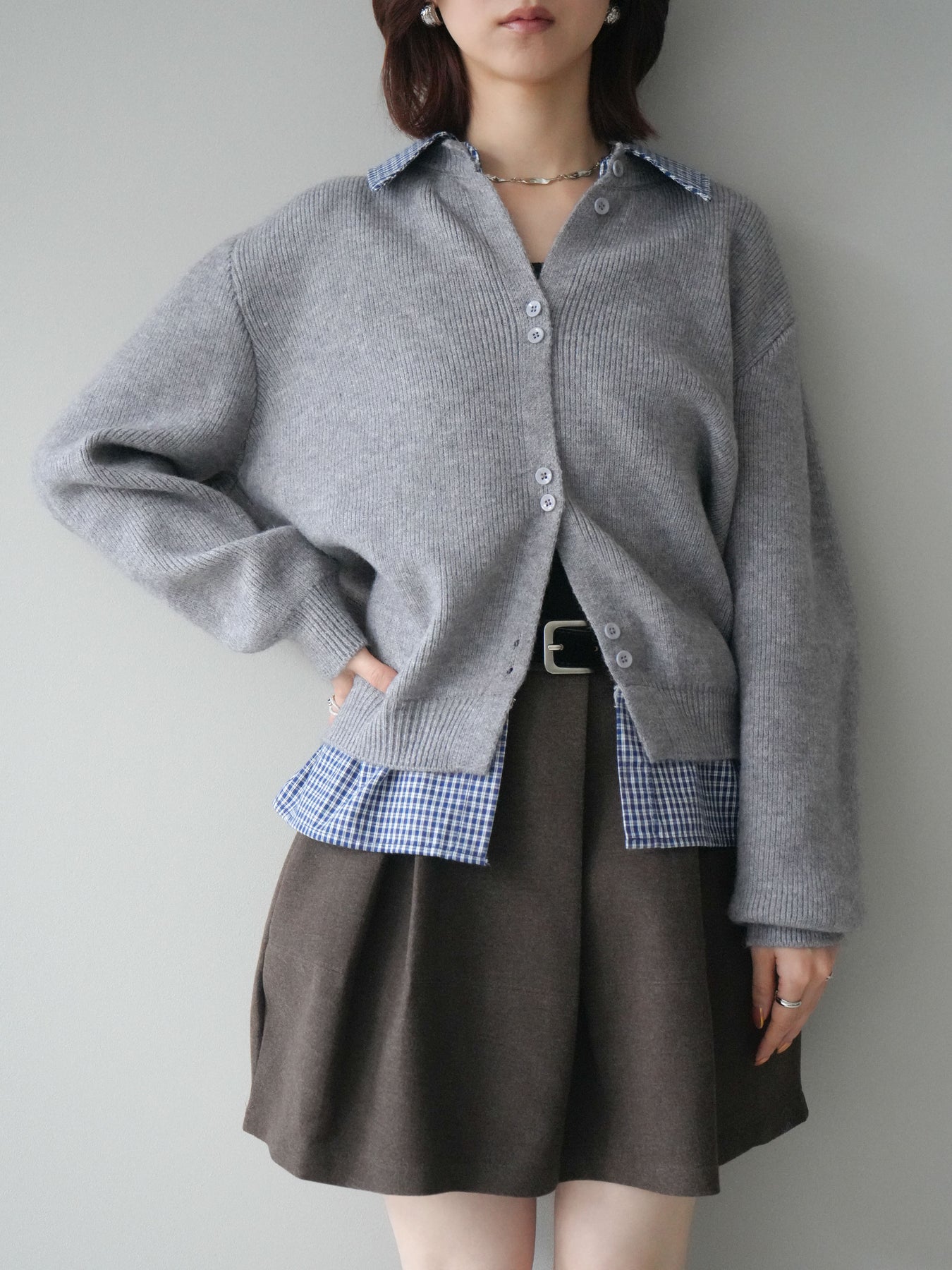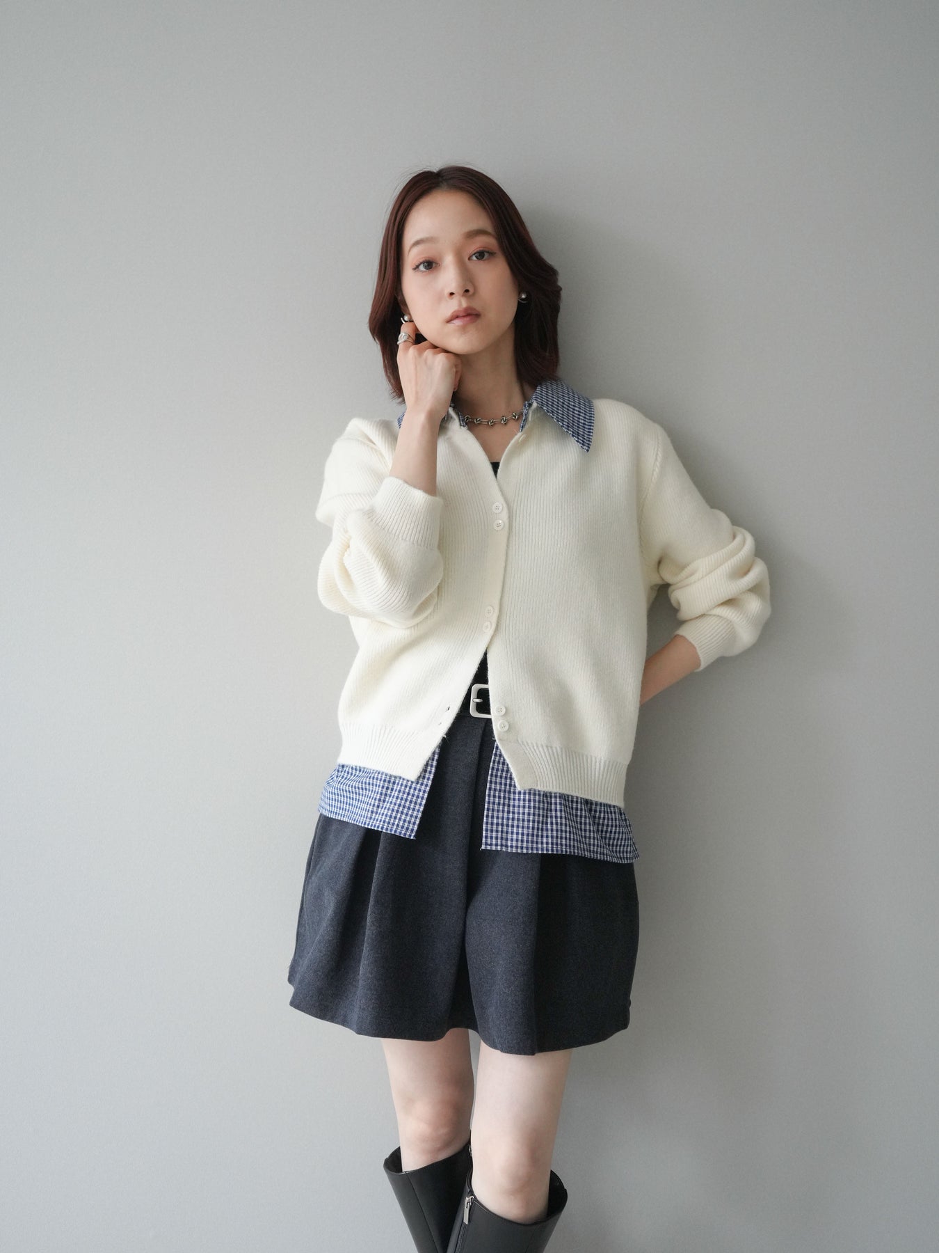 ◆ [予約]チェックシャツ襟ニットカーディガン