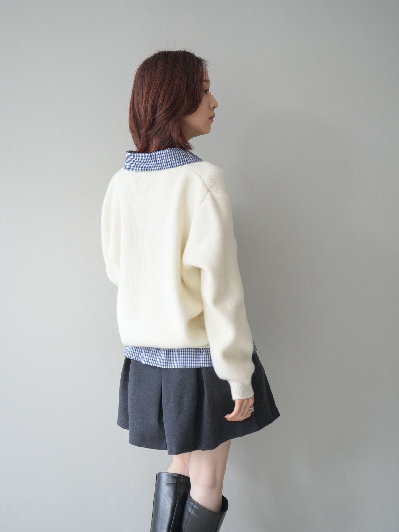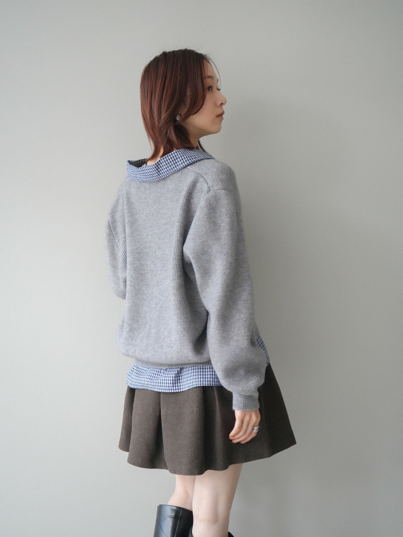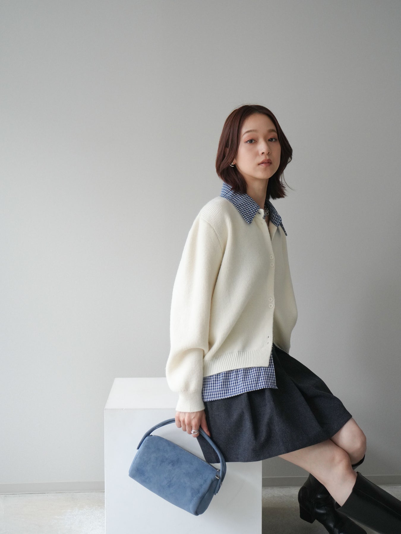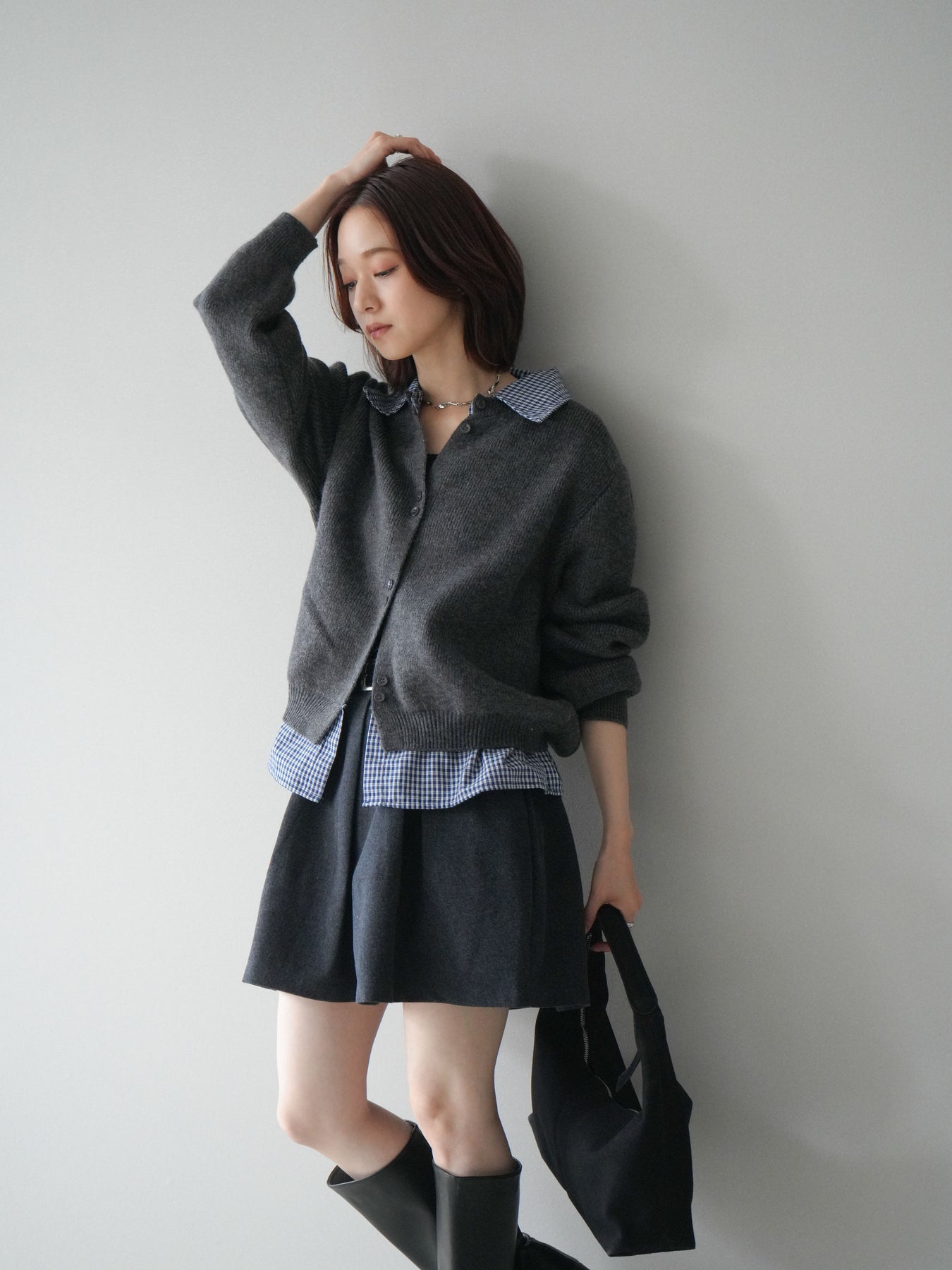 ◆ [予約]チェックシャツ襟ニットカーディガン