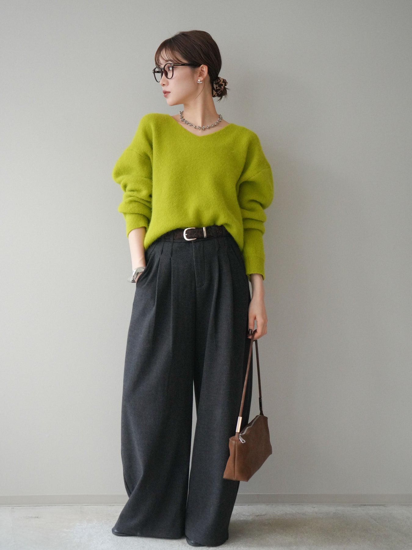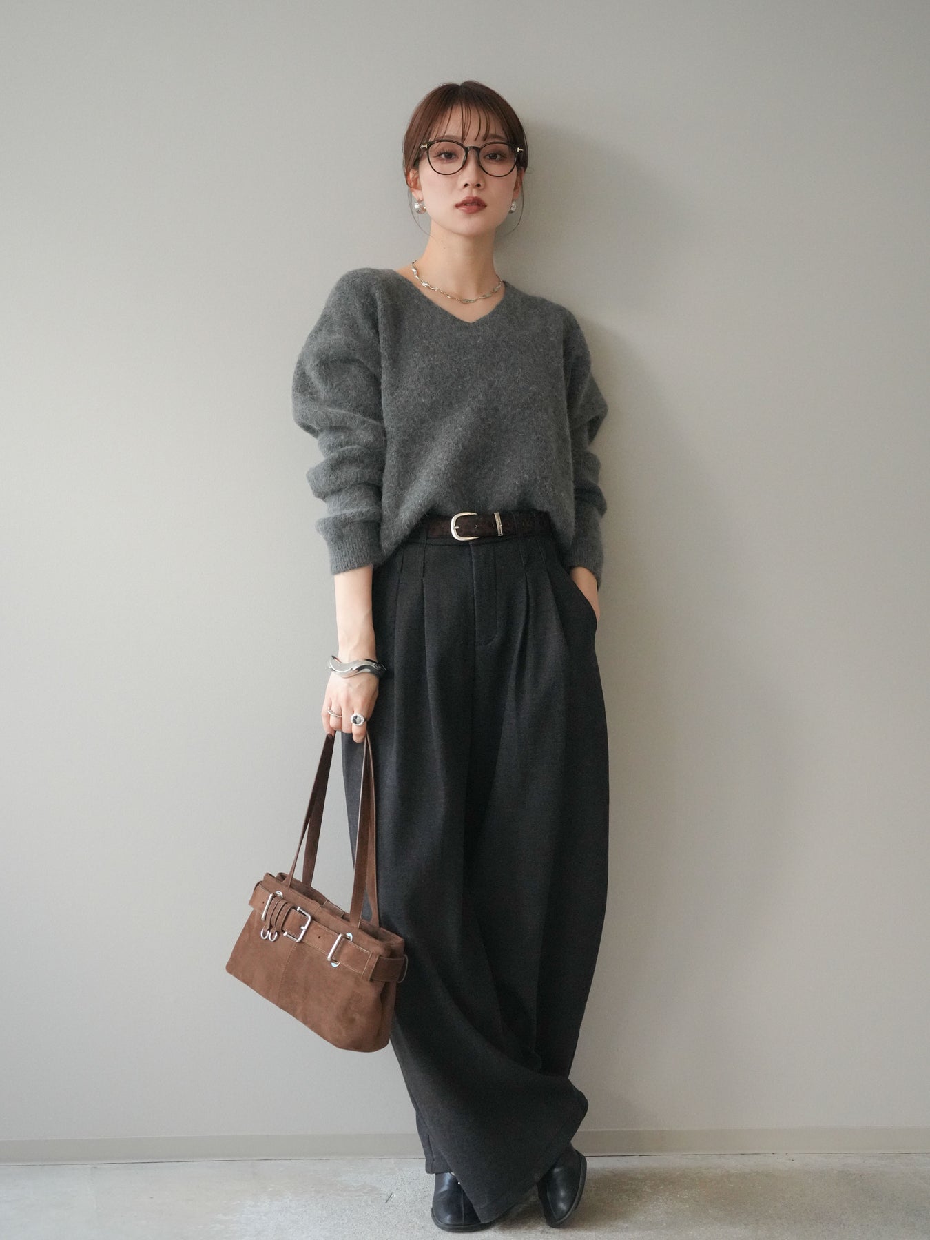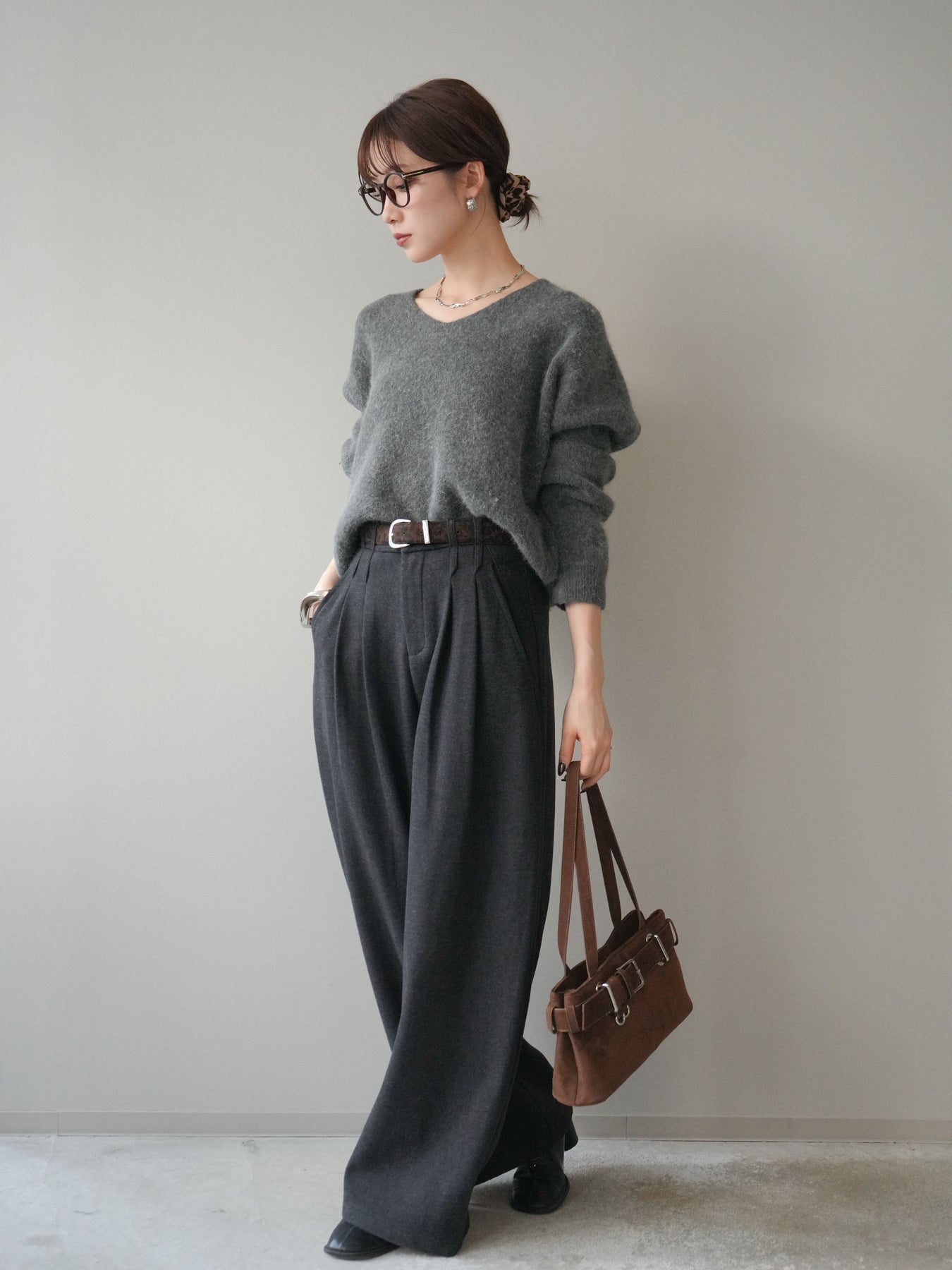 ウールのような柔らかな風合いで仕立てたワイドパンツに、アニマル柄のベルトをセットした印象的な一本。ゆったりとしたワイドシルエットが縦のラインをきれいに強調し、足元まで流れるような落ち感が大人らしい雰囲気を演出します。セットのベルトがスタイリングのアクセントとなり、シンプルなトップスを合わせるだけでこなれたバランスに。オンオフ問わず着回しやすく、季節感を取り入れたコーデを楽しめる万能ボトムです。