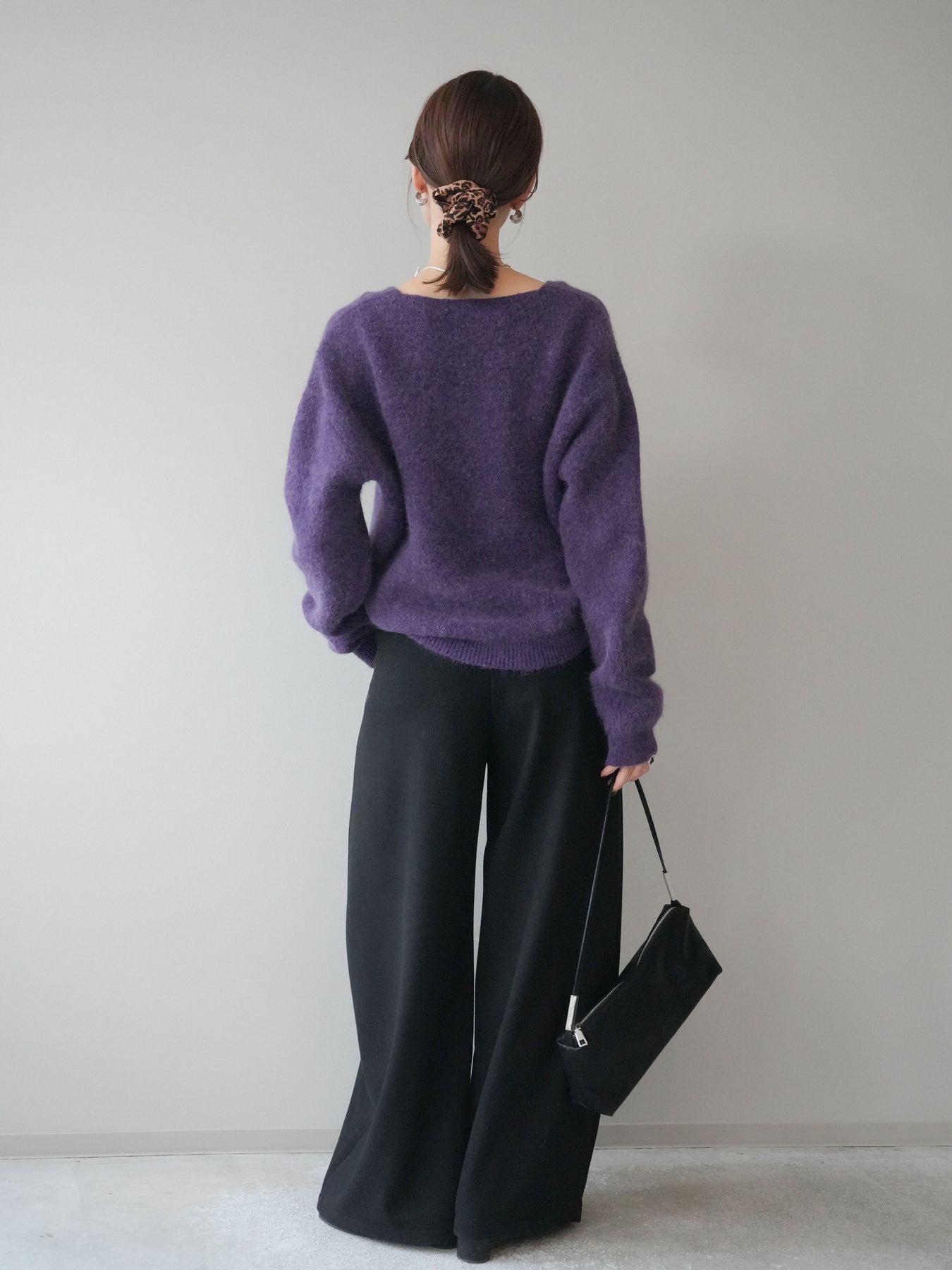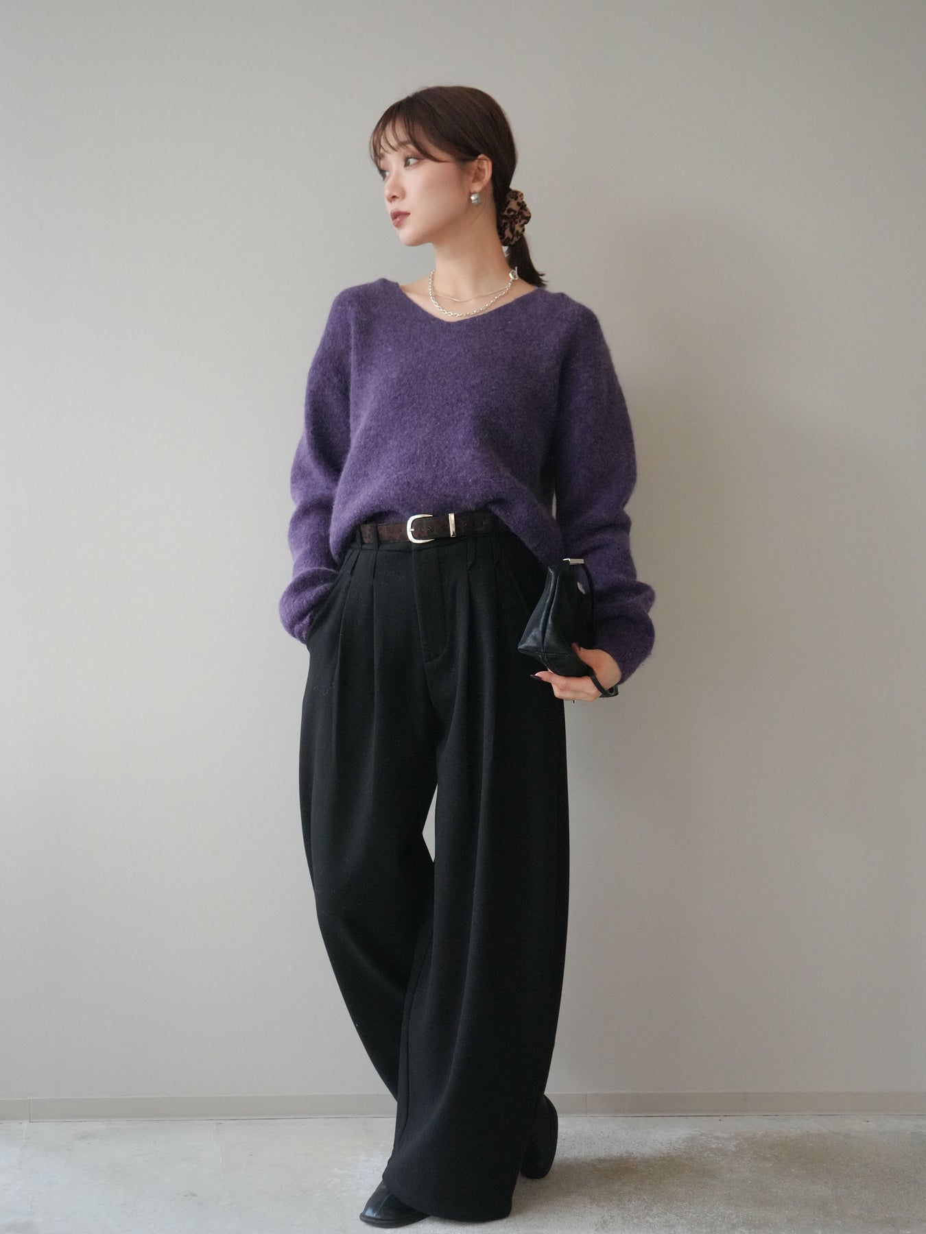 ◆ [予約]シュシュ付きアンゴラタッチVネックニットプルオーバー