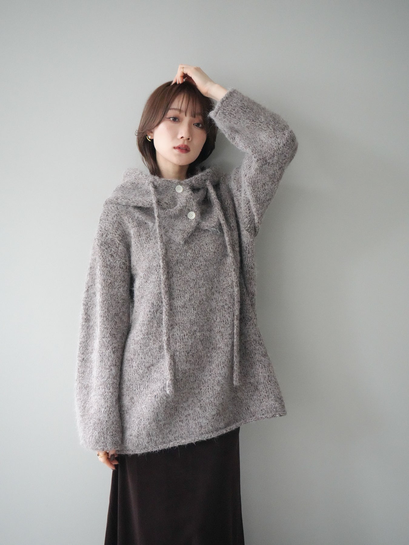 ふわっとしたシャギー感が魅力のニットプルオーバーに、バラクラバをセットした秋冬らしいアイテム。単体でもセットでも使えるバラクラバは、首元までしっかり覆えるので防寒性が高く、コーディネートのアクセントとしても活躍します。プルオーバーは柔らかな肌触りでゆとりのあるシルエットに仕上げ、リラックス感と女性らしさを両立。スカートにもパンツにも合わせやすく、デイリーコーデに季節感をしっかり添えてくれる万能な一枚です。 ※ボトムス、キャミソール(インナー)以外の商品は一律でインナーは付属していません。