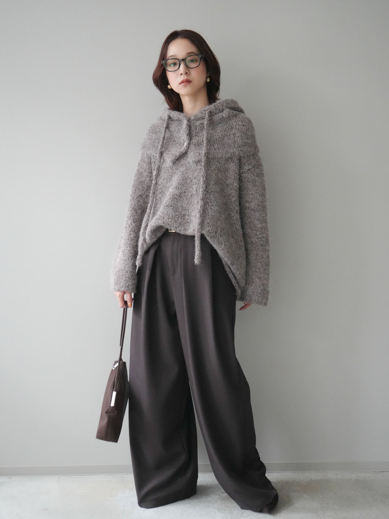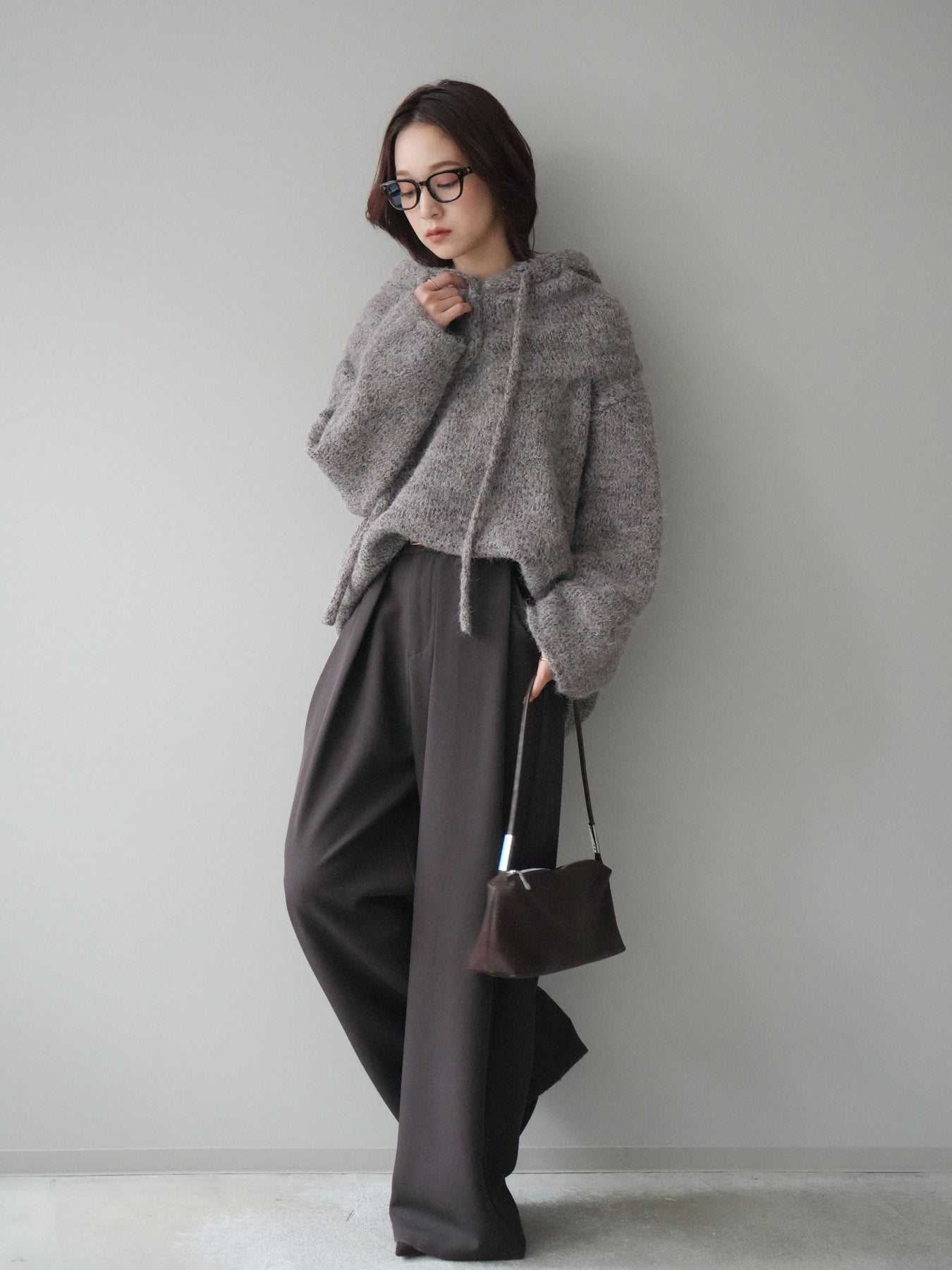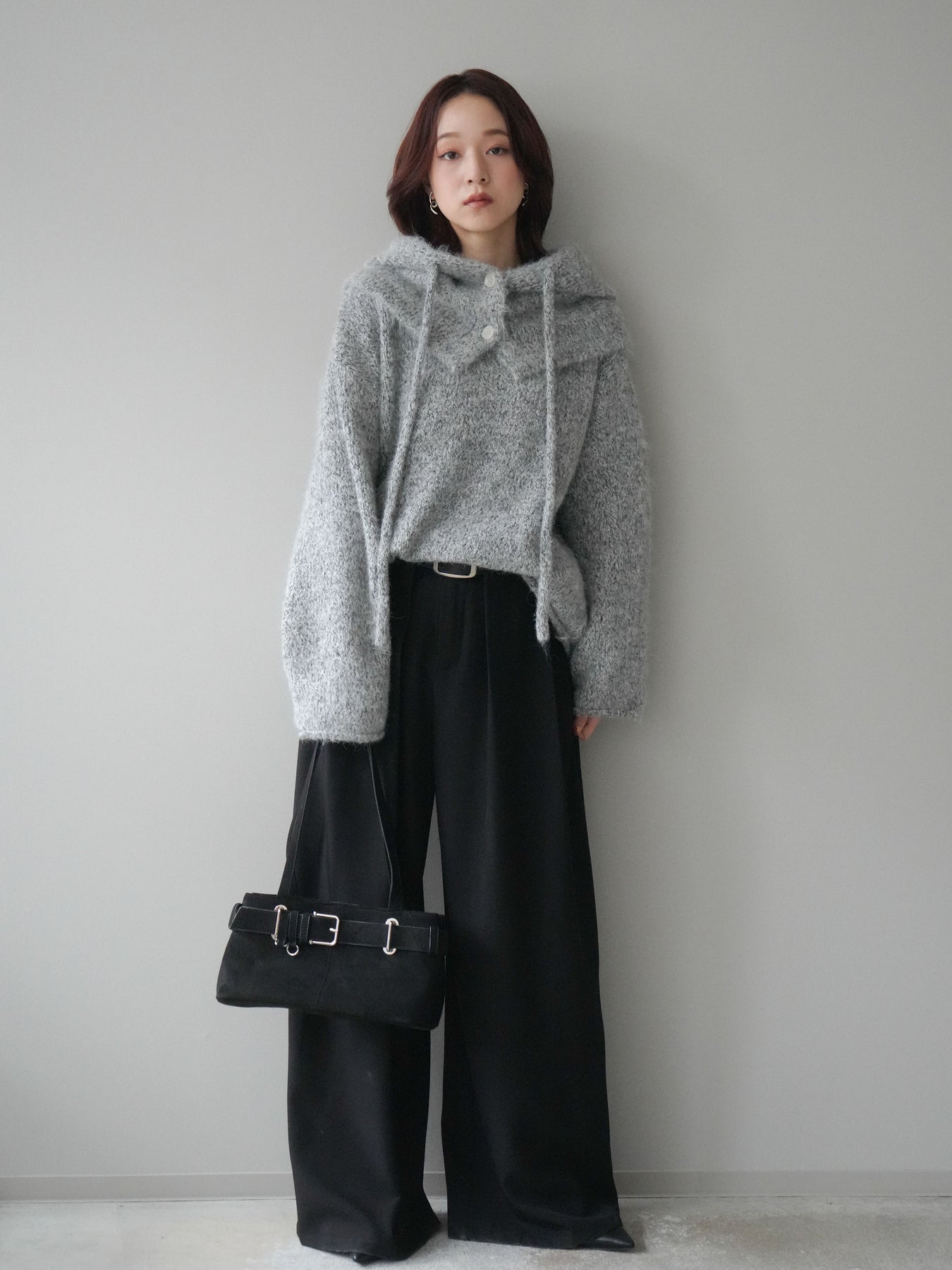 [SET]バラクラバSETニットプルオーバー+ベルトループデザインワイドパンツ(2set)