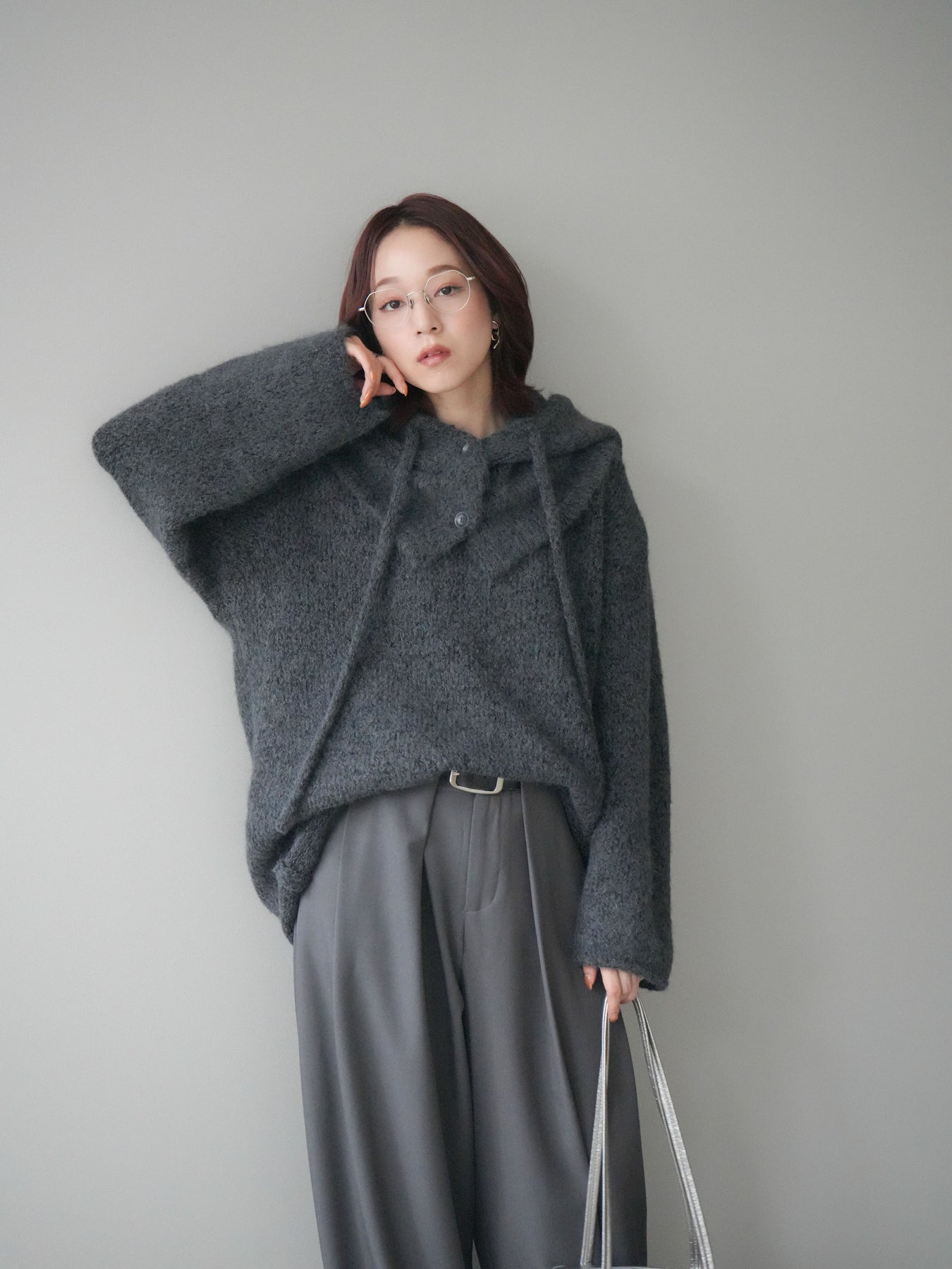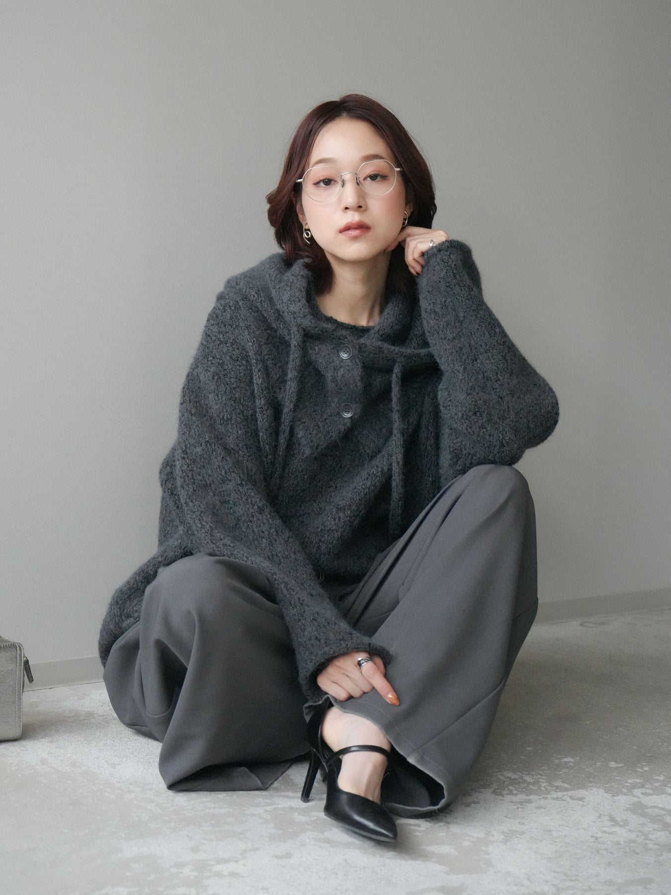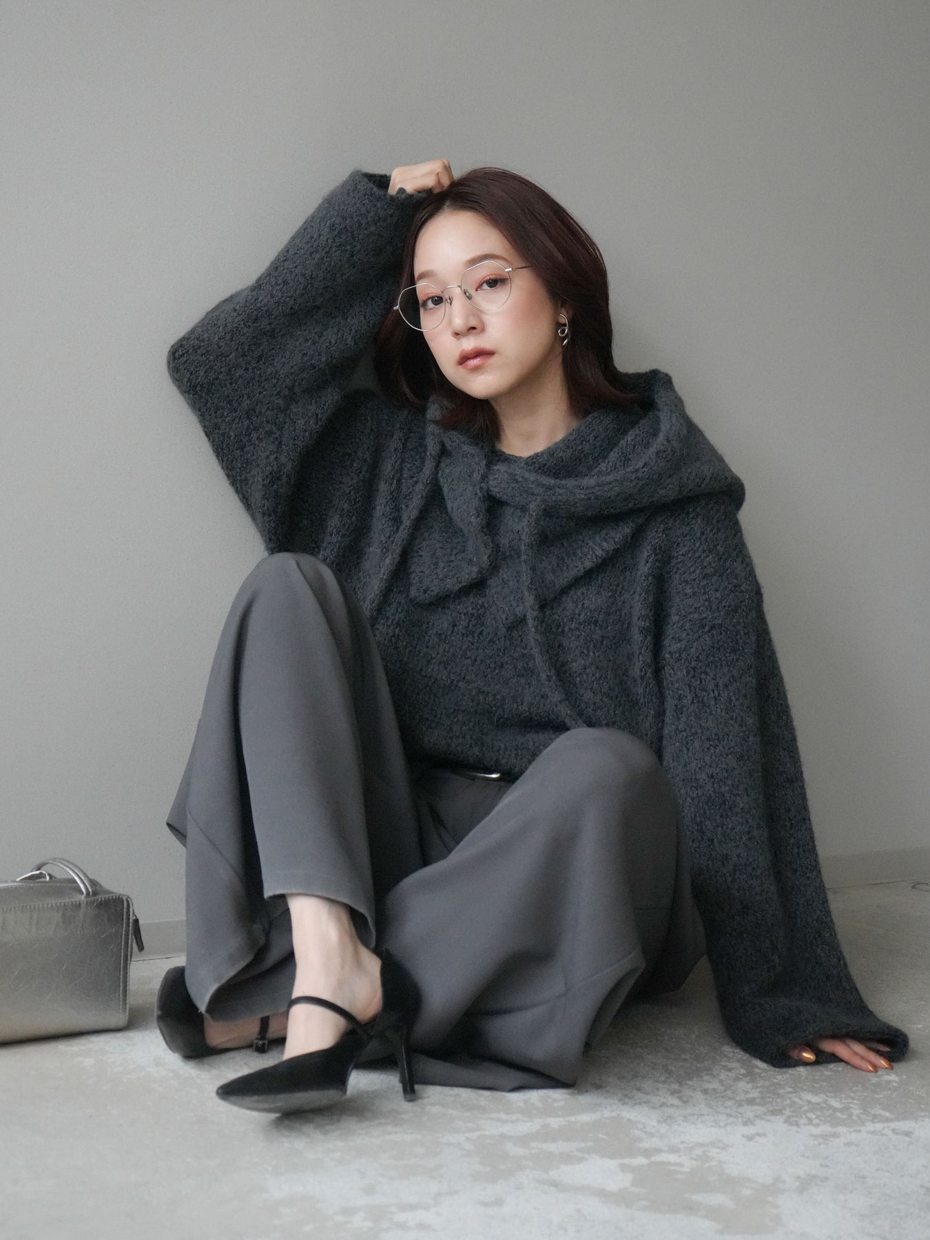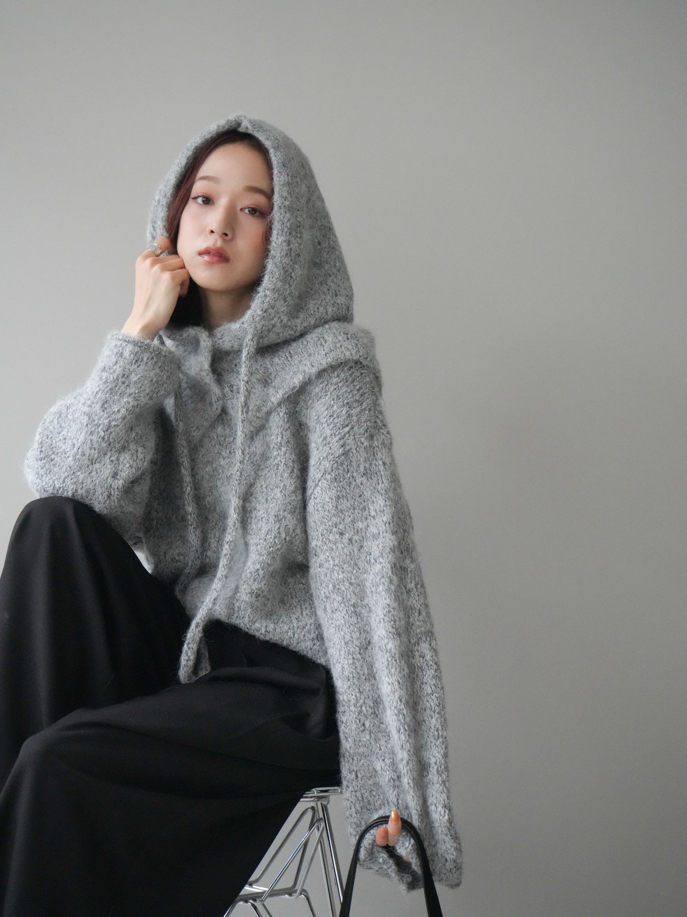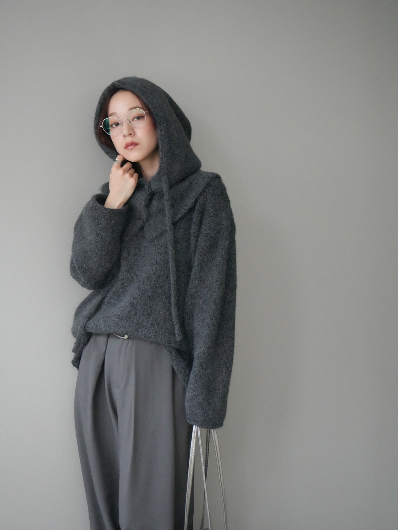 ふわっとしたシャギー感が魅力のニットプルオーバーに、バラクラバをセットした秋冬らしいアイテム。単体でもセットでも使えるバラクラバは、首元までしっかり覆えるので防寒性が高く、コーディネートのアクセントとしても活躍します。プルオーバーは柔らかな肌触りでゆとりのあるシルエットに仕上げ、リラックス感と女性らしさを両立。スカートにもパンツにも合わせやすく、デイリーコーデに季節感をしっかり添えてくれる万能な一枚です。 ※ボトムス、キャミソール(インナー)以外の商品は一律でインナーは付属していません。