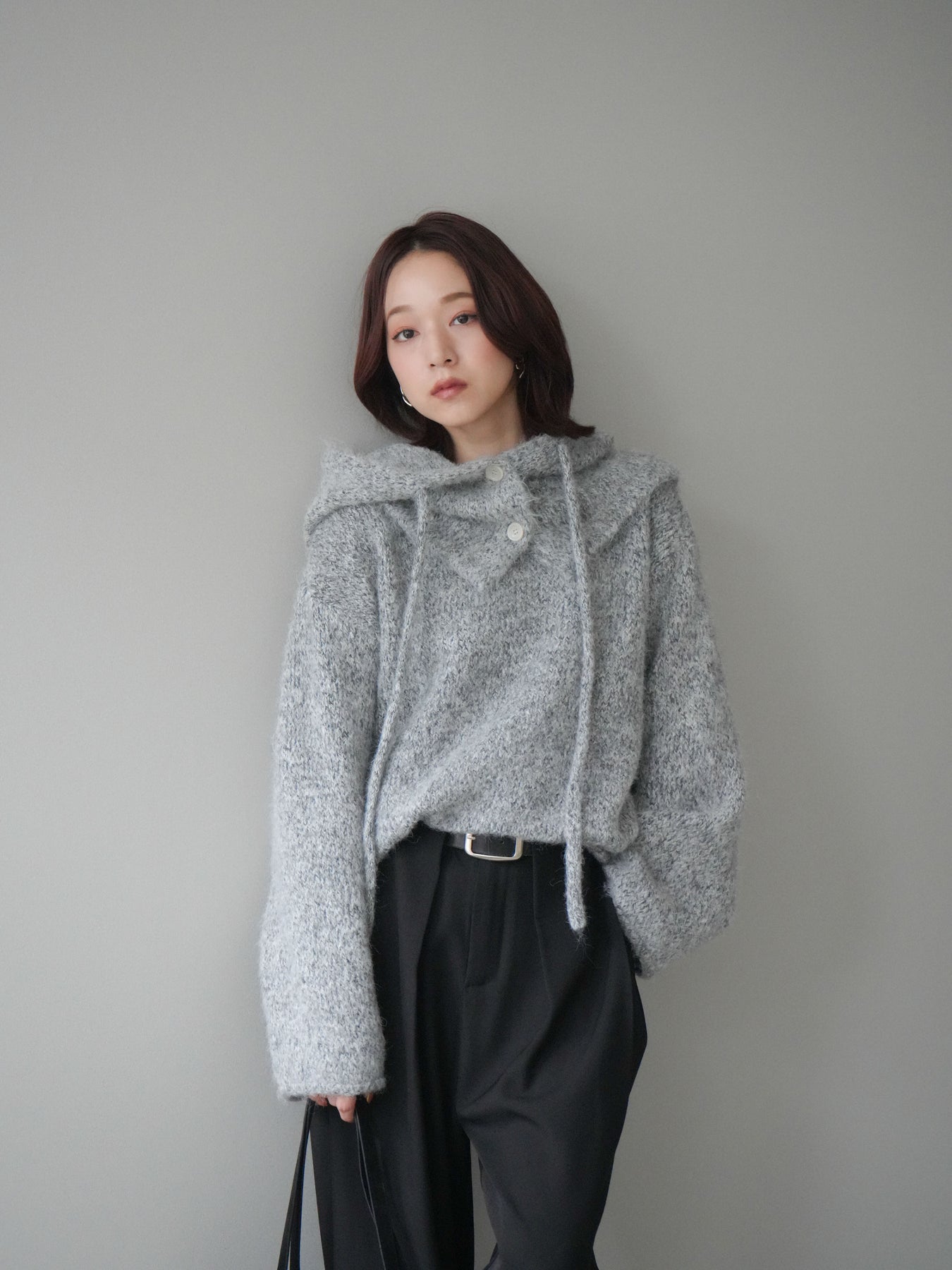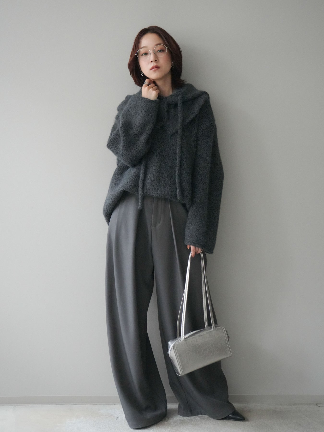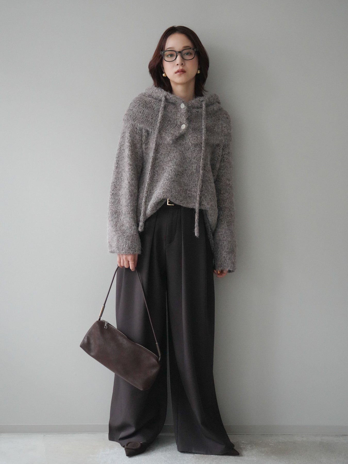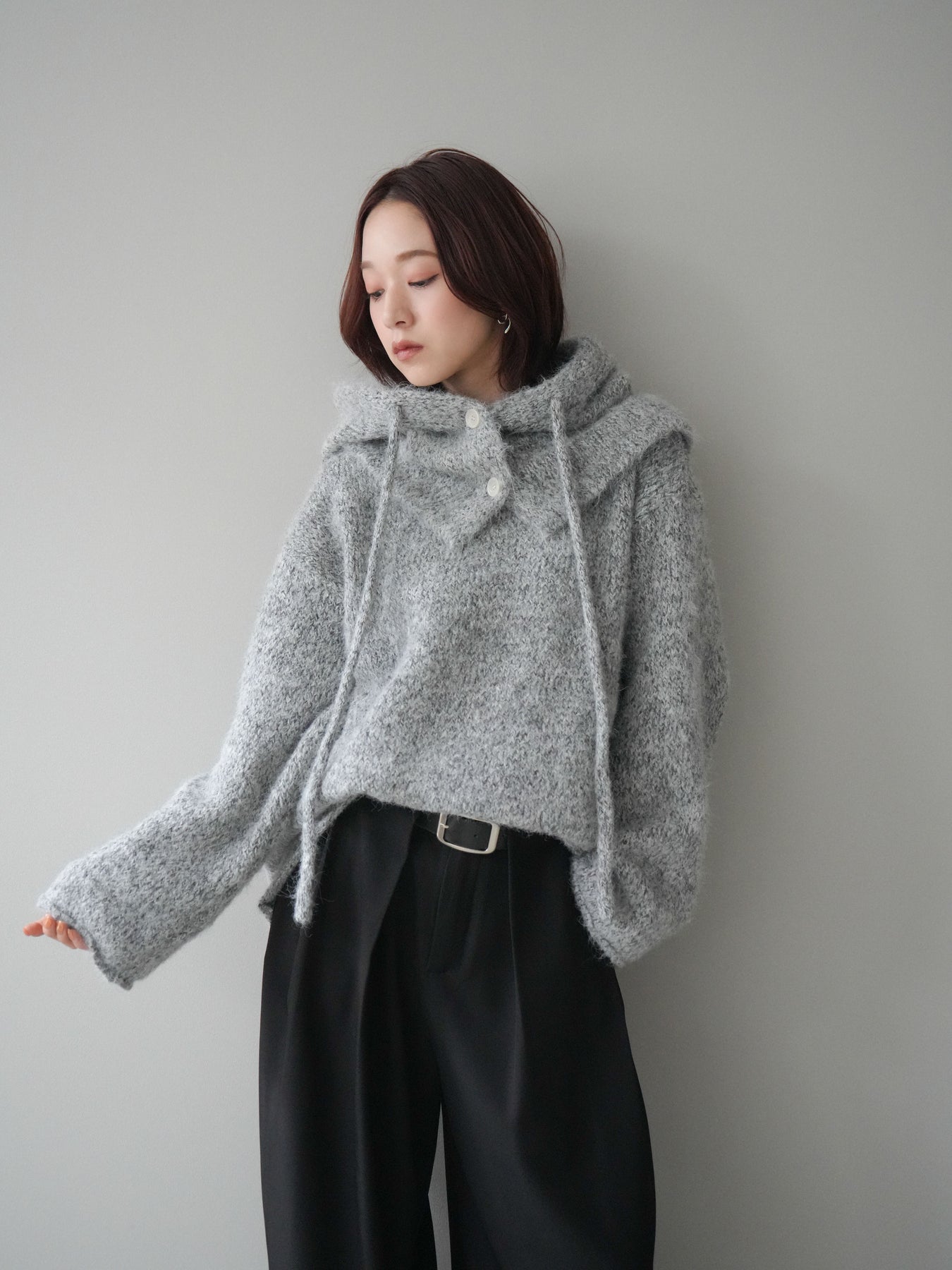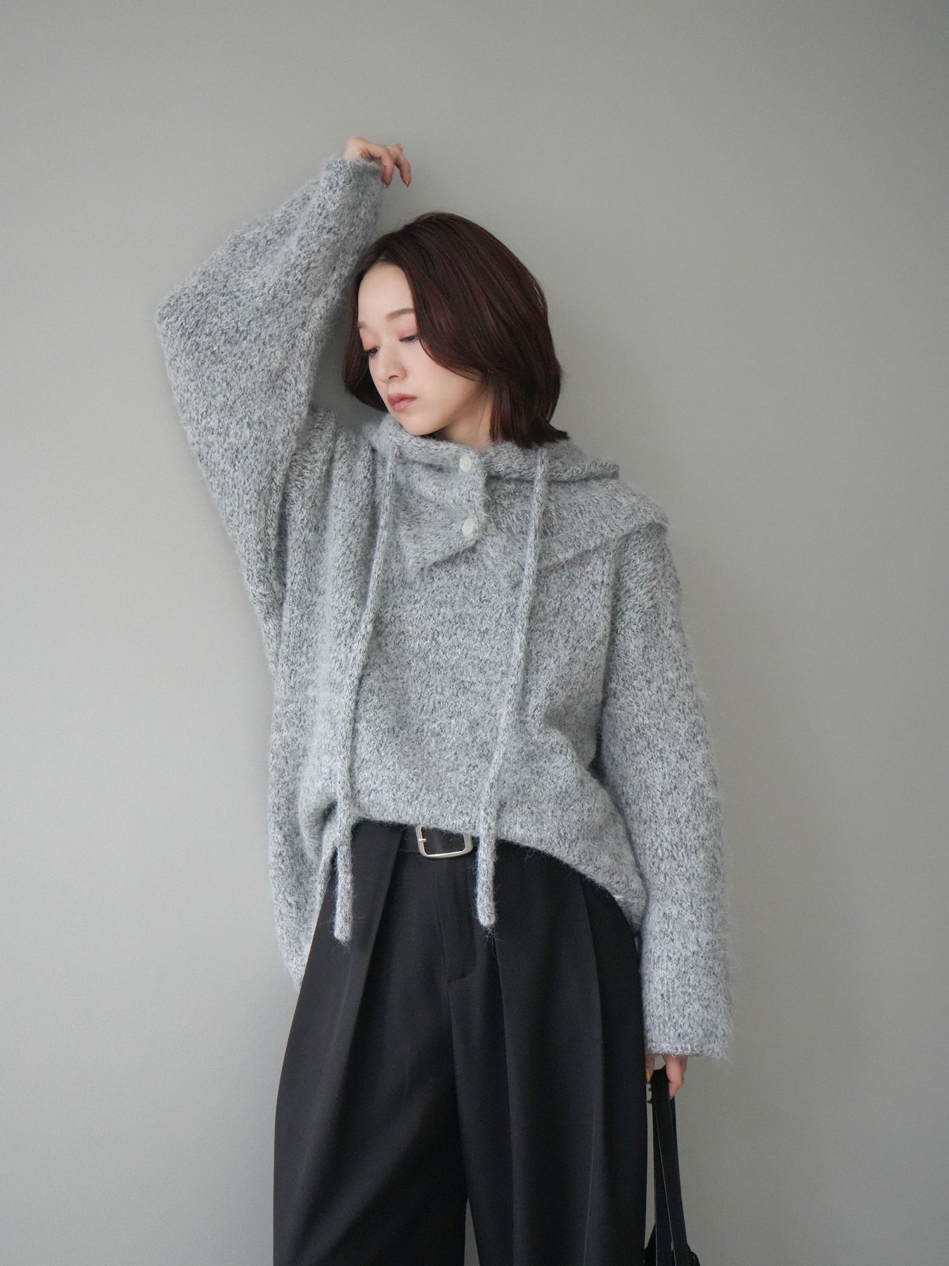 ふわっとしたシャギー感が魅力のニットプルオーバーに、バラクラバをセットした秋冬らしいアイテム。単体でもセットでも使えるバラクラバは、首元までしっかり覆えるので防寒性が高く、コーディネートのアクセントとしても活躍します。プルオーバーは柔らかな肌触りでゆとりのあるシルエットに仕上げ、リラックス感と女性らしさを両立。スカートにもパンツにも合わせやすく、デイリーコーデに季節感をしっかり添えてくれる万能な一枚です。 ※ボトムス、キャミソール(インナー)以外の商品は一律でインナーは付属していません。