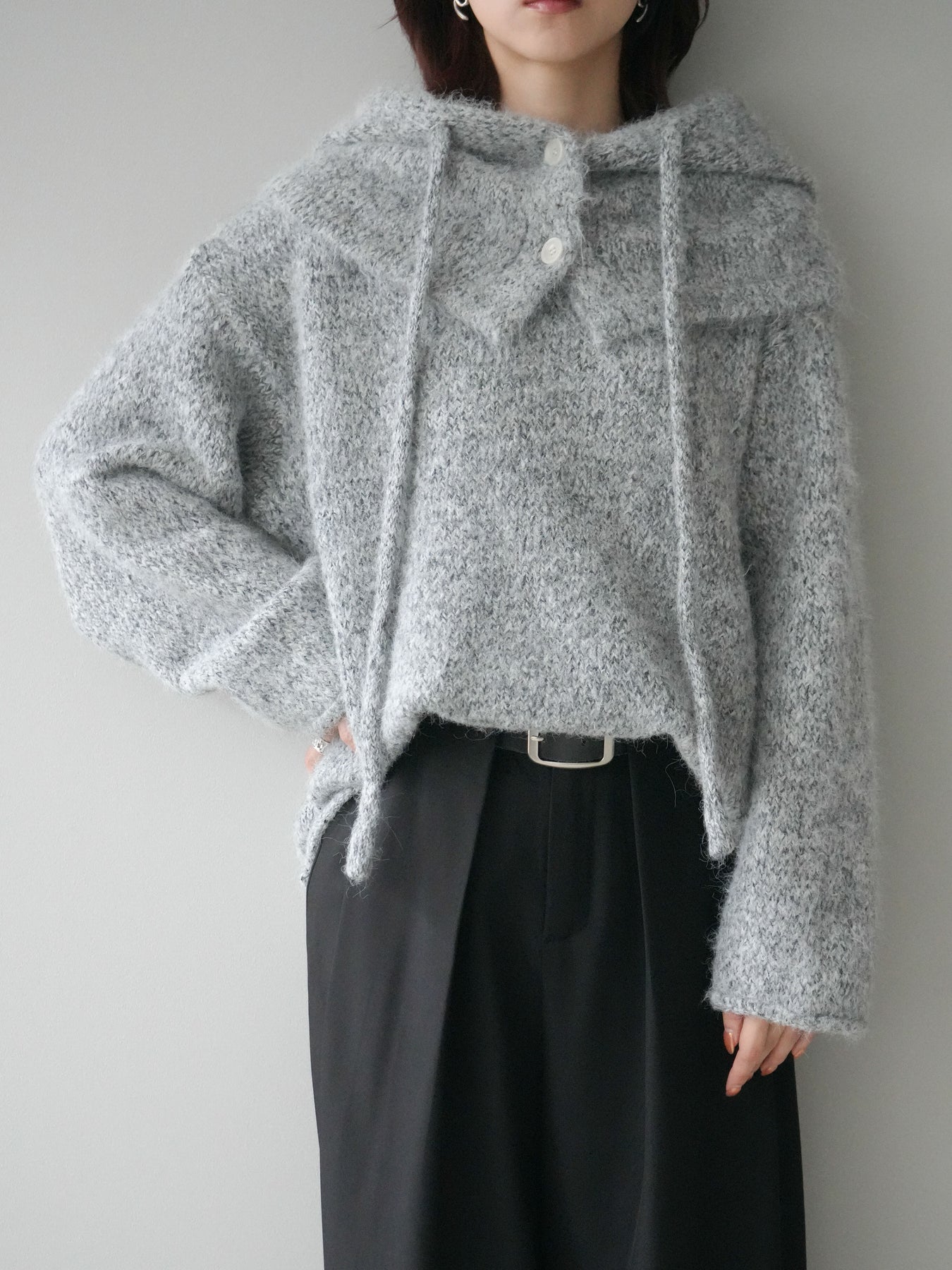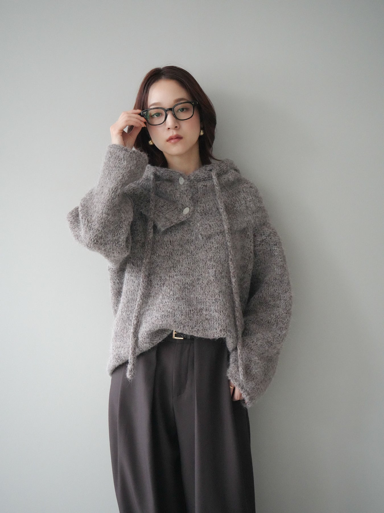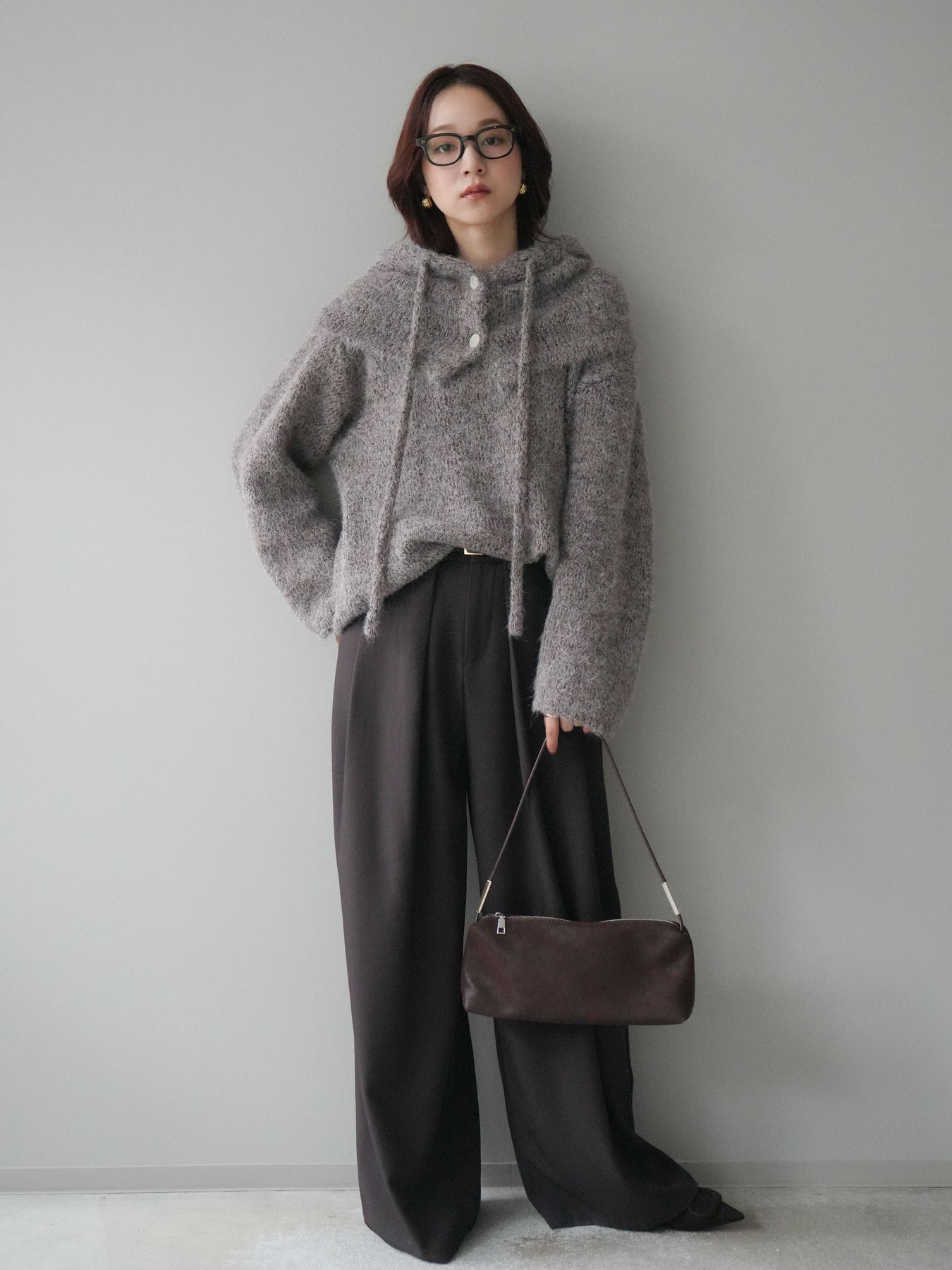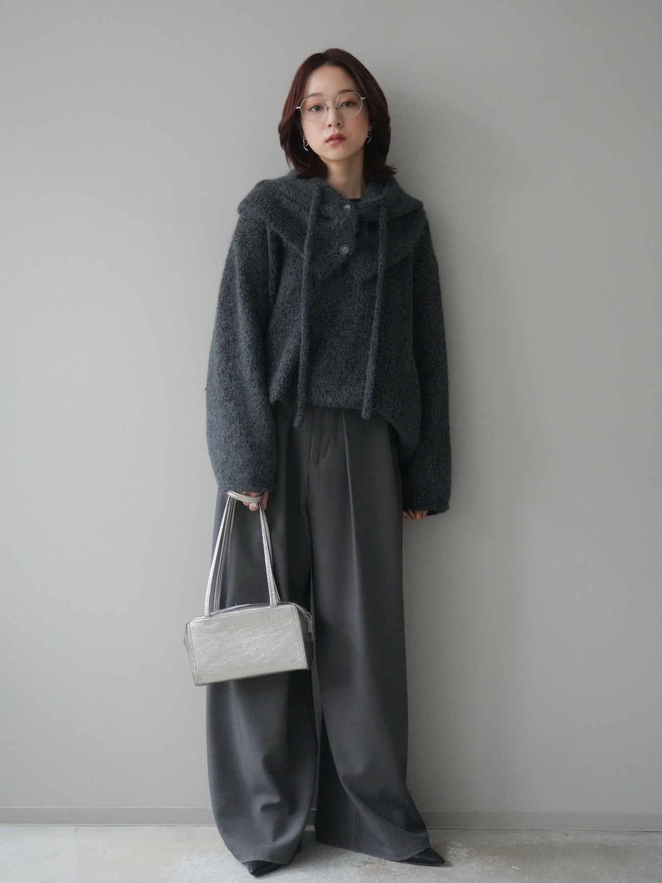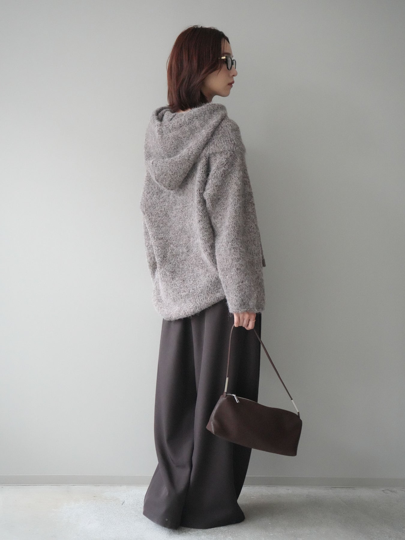ふわっとしたシャギー感が魅力のニットプルオーバーに、バラクラバをセットした秋冬らしいアイテム。単体でもセットでも使えるバラクラバは、首元までしっかり覆えるので防寒性が高く、コーディネートのアクセントとしても活躍します。プルオーバーは柔らかな肌触りでゆとりのあるシルエットに仕上げ、リラックス感と女性らしさを両立。スカートにもパンツにも合わせやすく、デイリーコーデに季節感をしっかり添えてくれる万能な一枚です。 ※ボトムス、キャミソール(インナー)以外の商品は一律でインナーは付属していません。