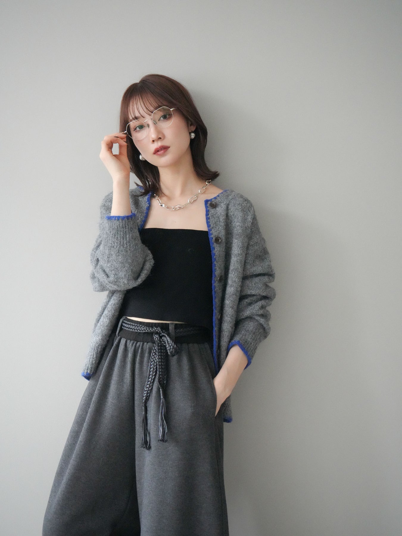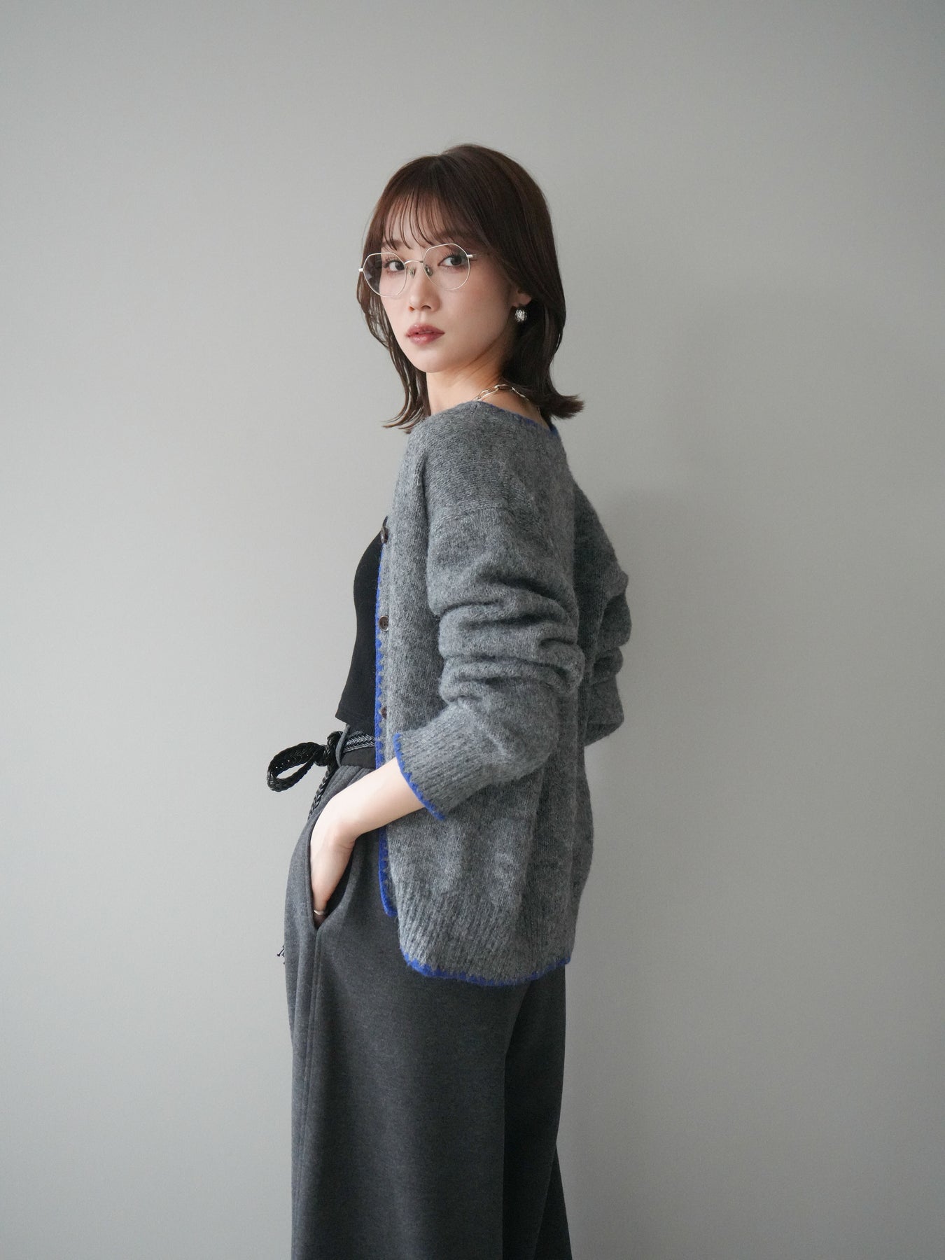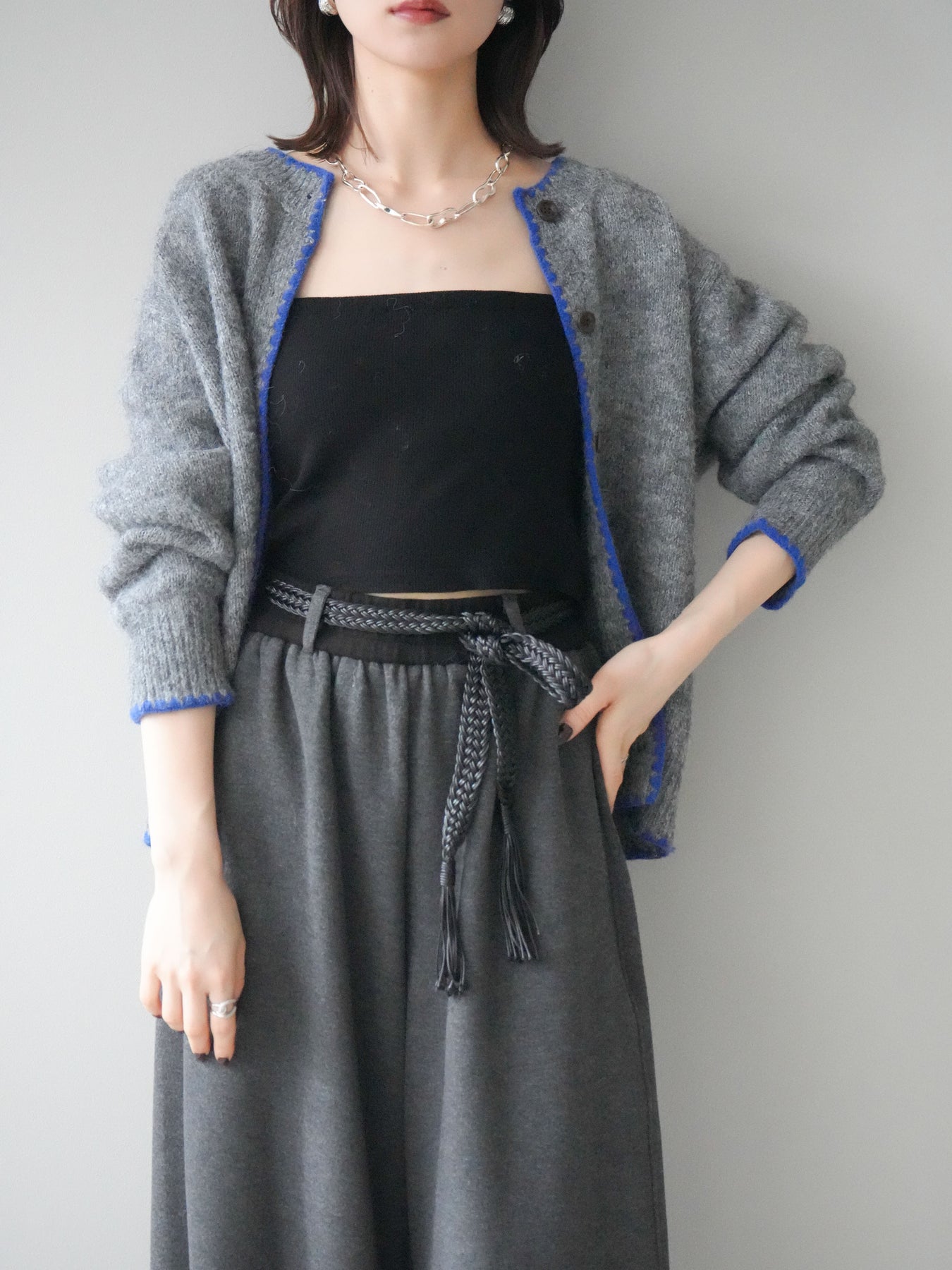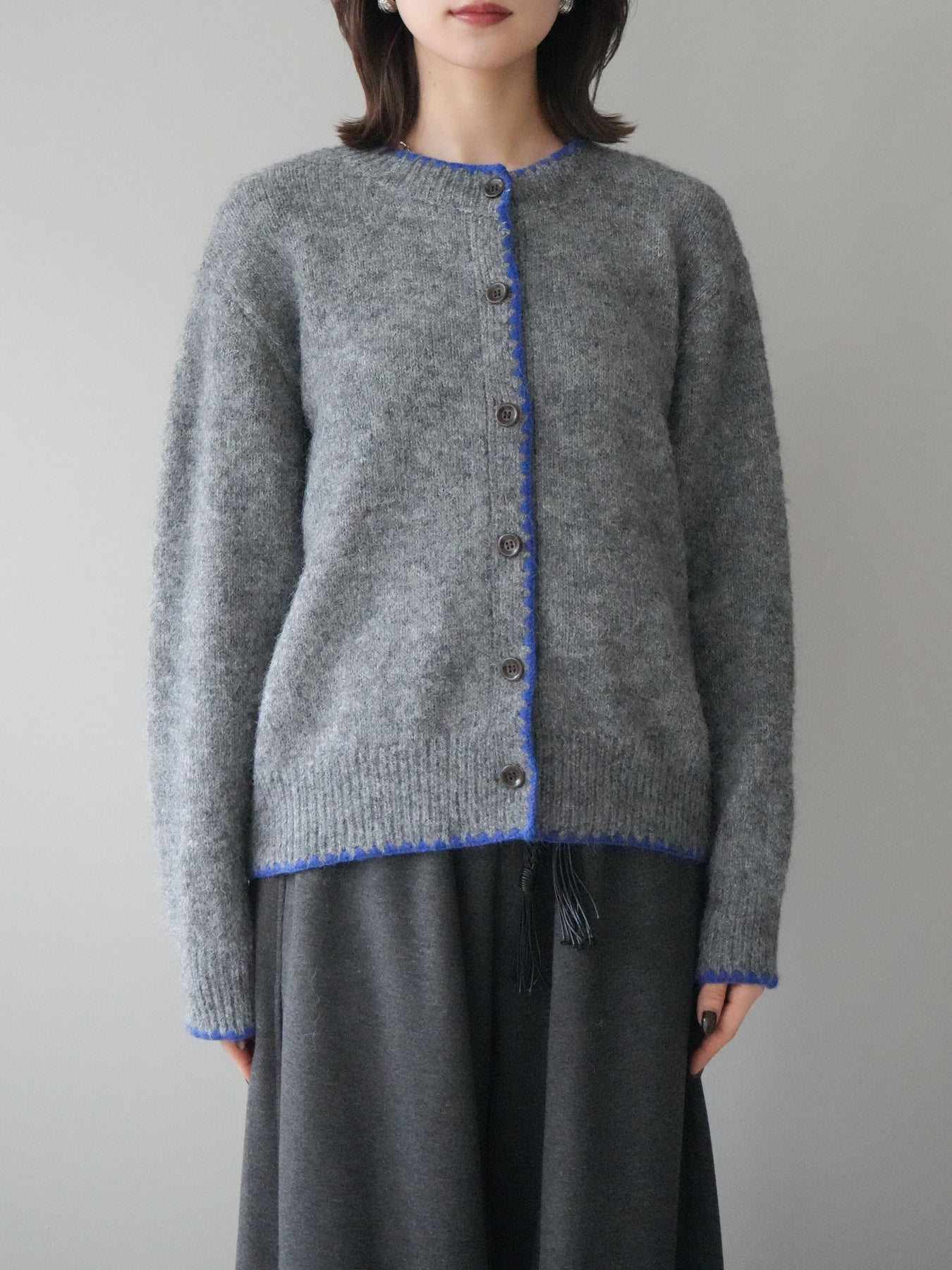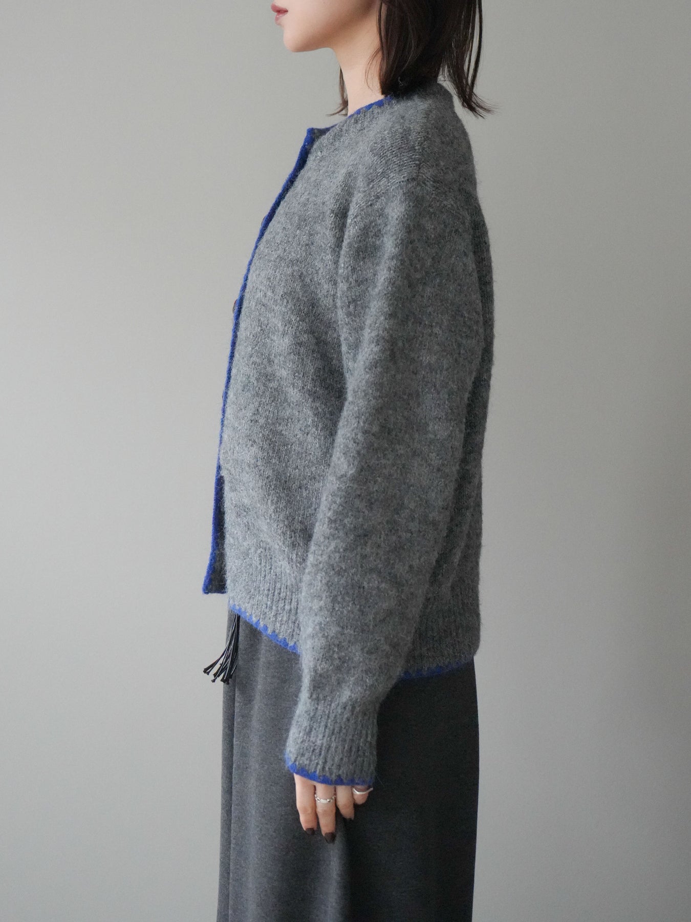 [予約]三角ステッチニットカーディガン/gray