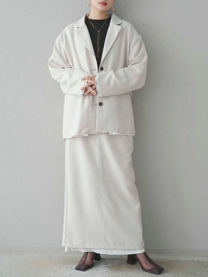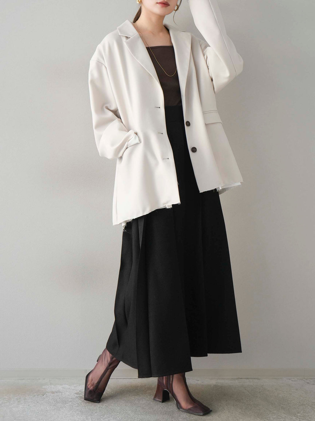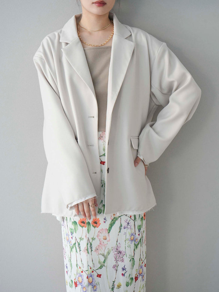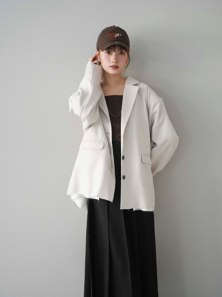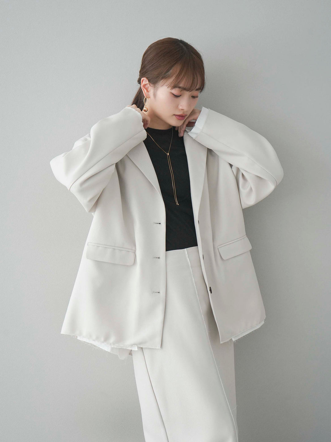 這款剪裁剪裁的夾克,剪裁得體,展現幹練氣質。時尚的oversized廓形,只需穿上即可展現幹練氣質。毛邊下擺營造出休閒舒適的氛圍,可與各種風格完美搭配。簡潔卻不失存在感,適合從日常穿著到辦公室休閒服等各種場合。 ※除下裝、吊帶背心(內衣)以外的商品均為標準品,不含內衣。