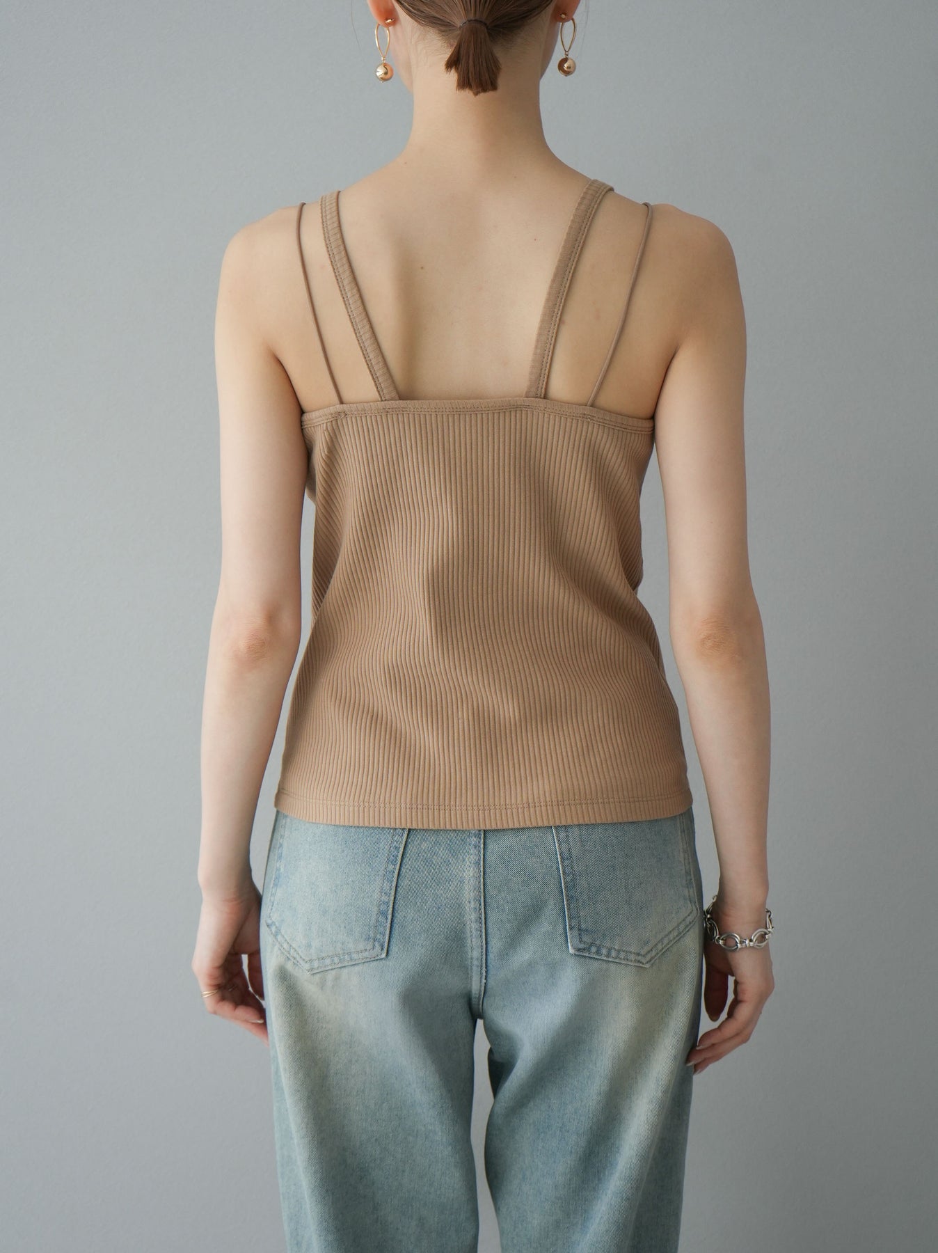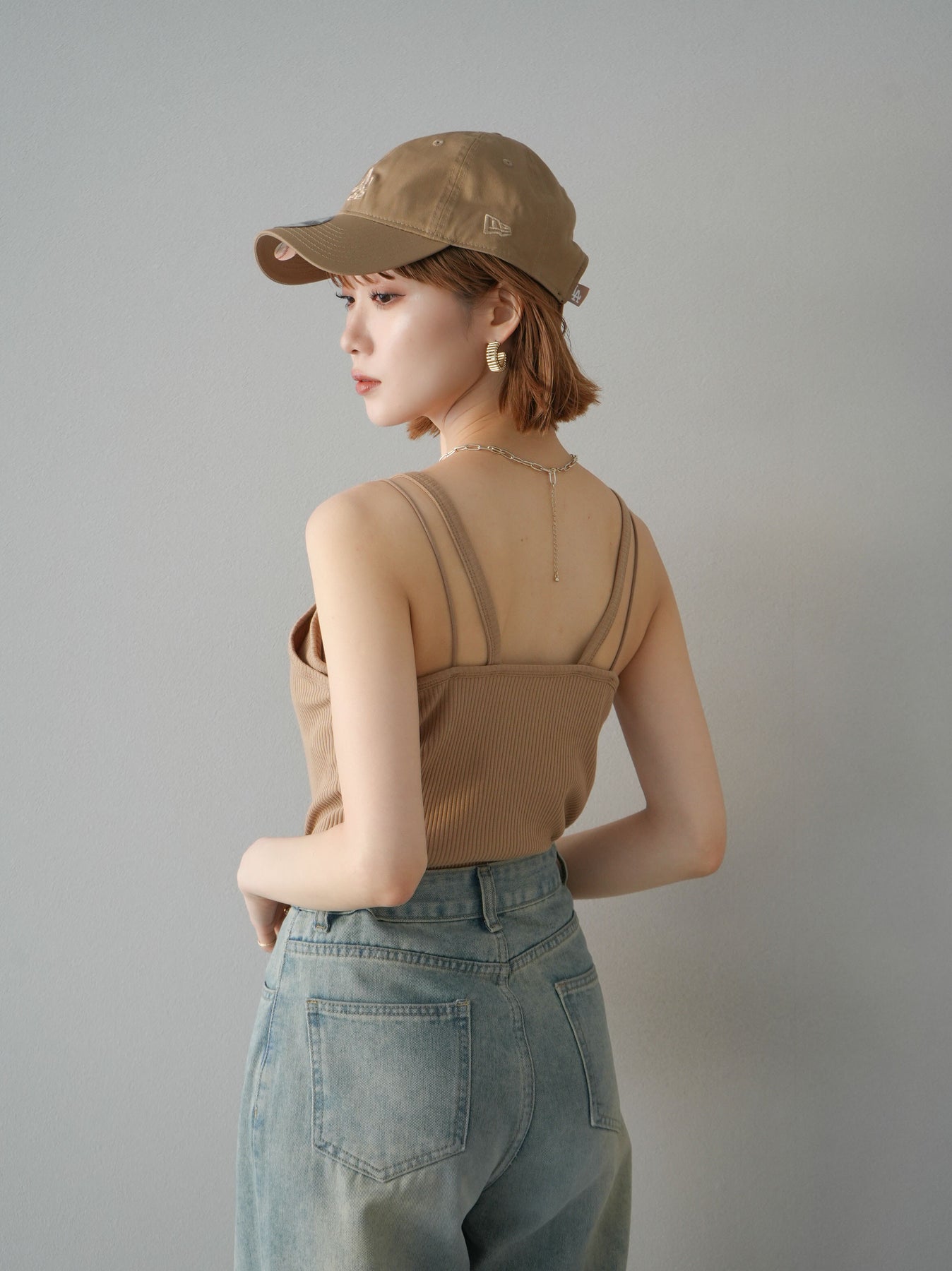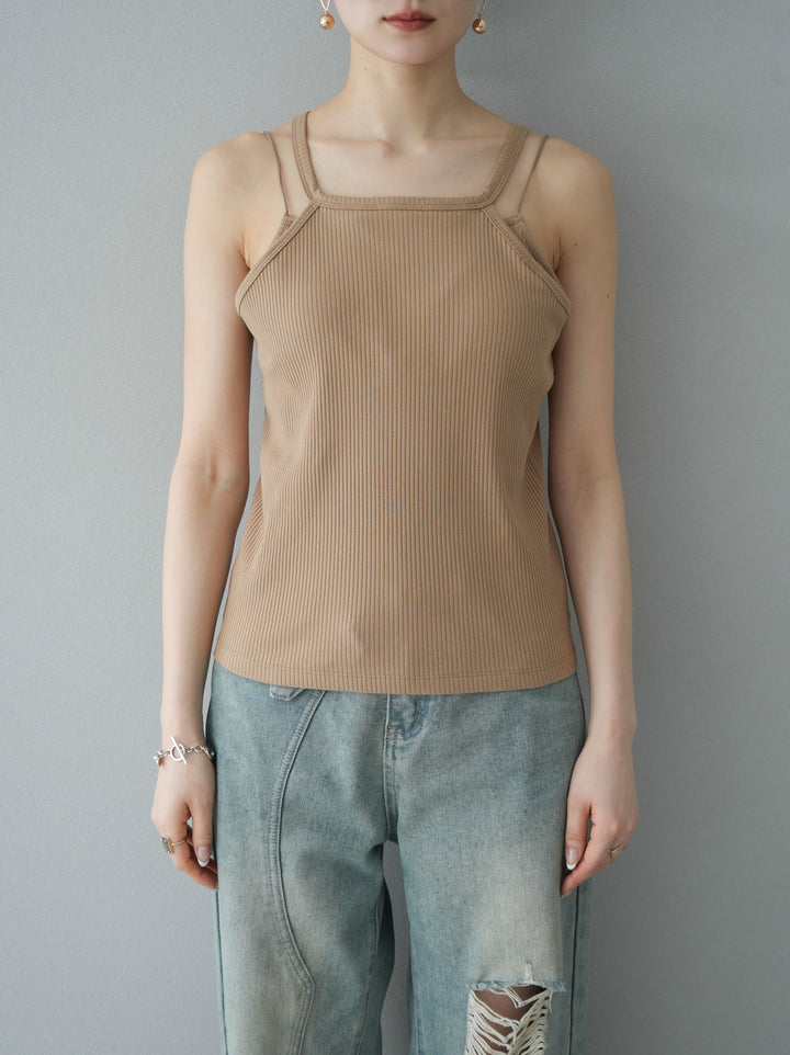 [預訂] 分層設計剪裁羅紋胸罩吊帶背心/米色