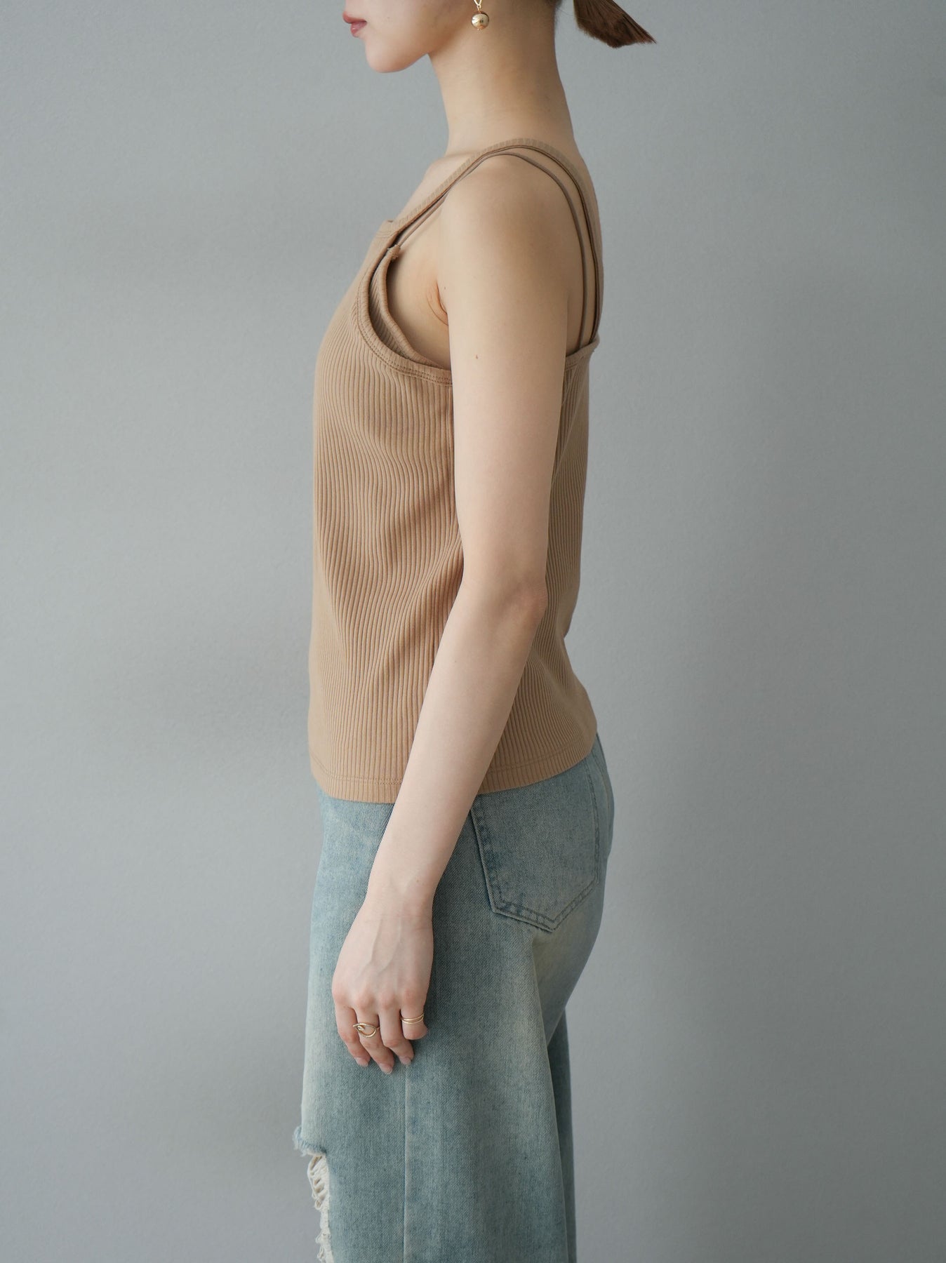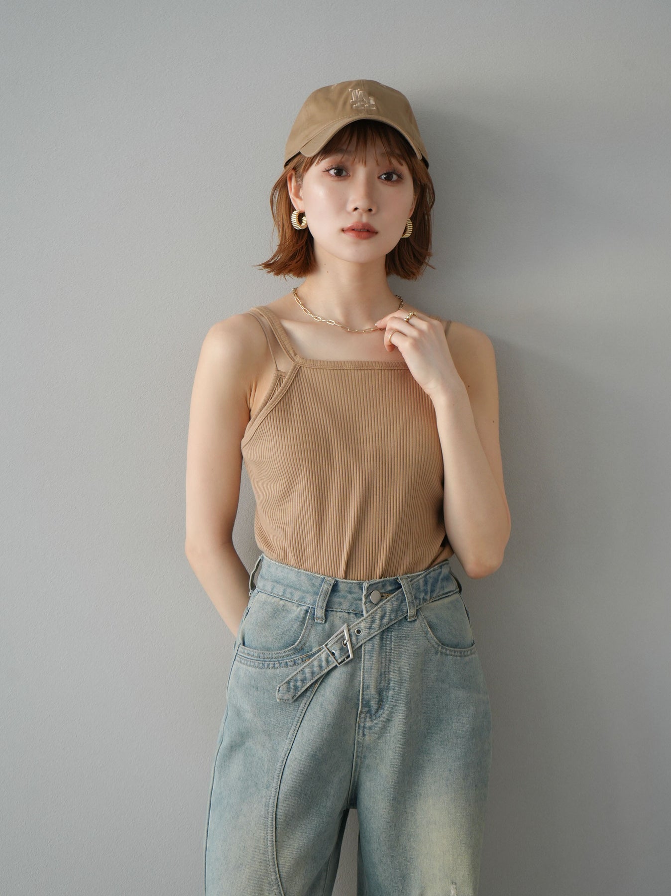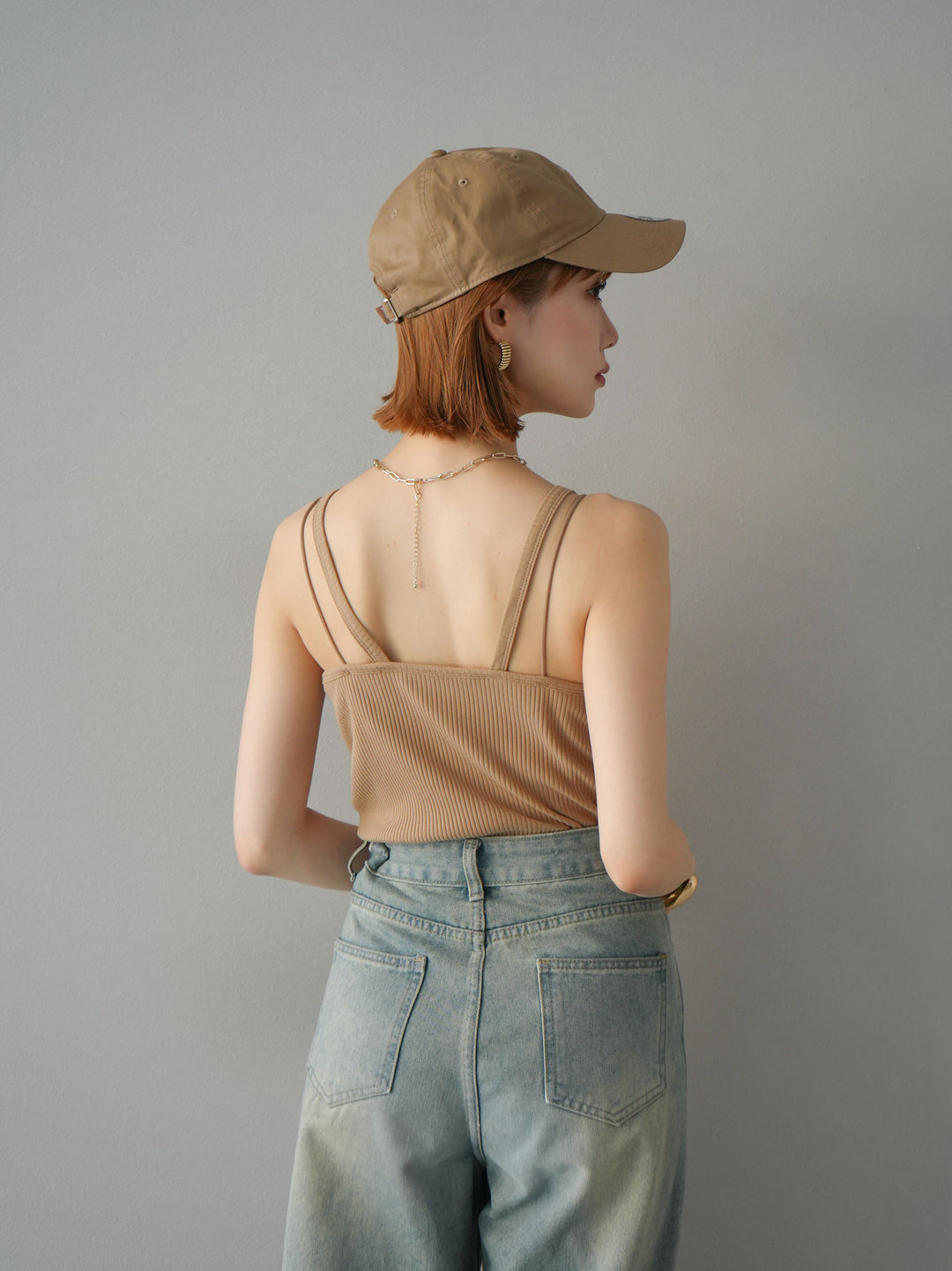 [預訂] 分層設計剪裁羅紋胸罩吊帶背心/米色