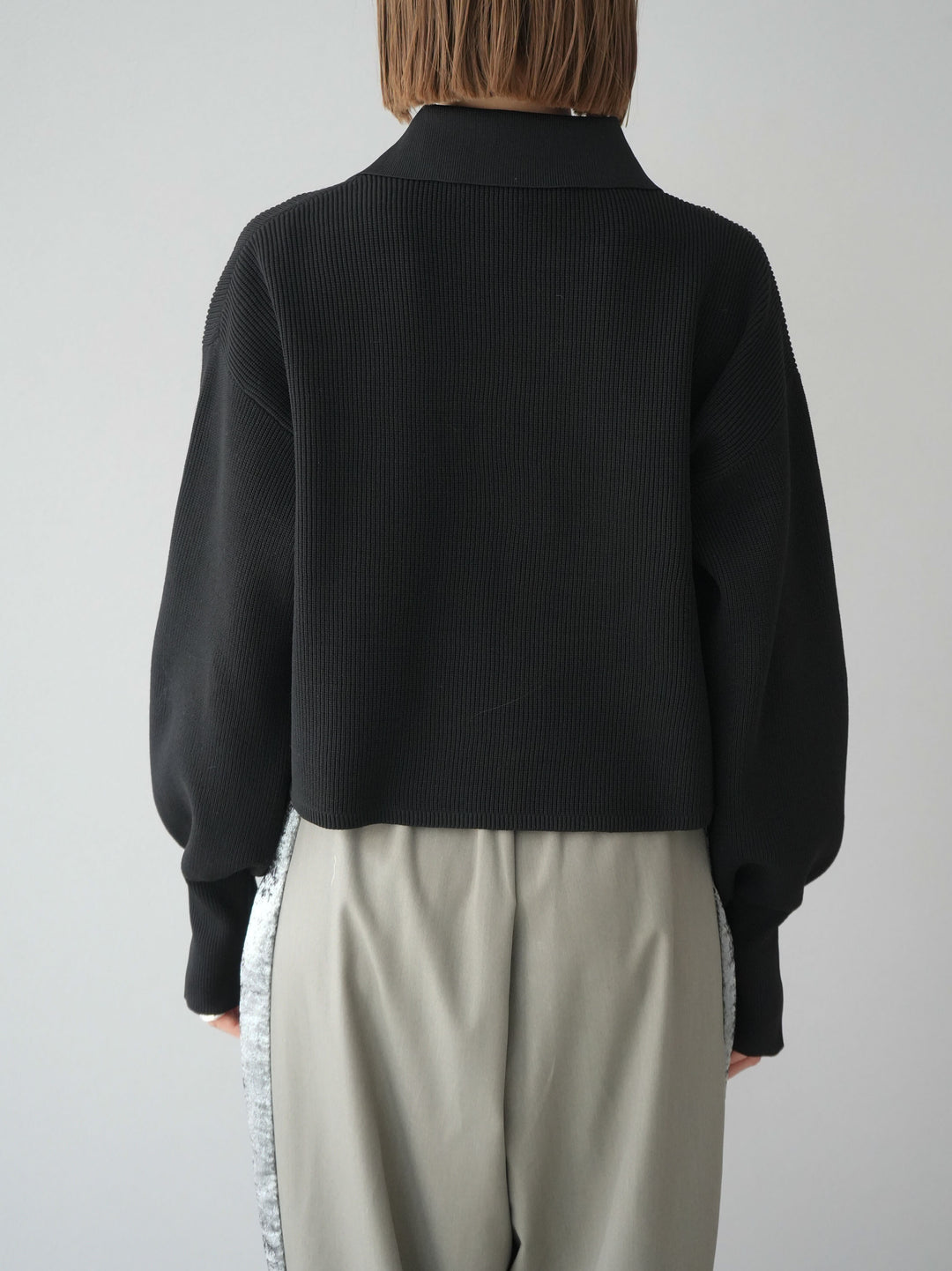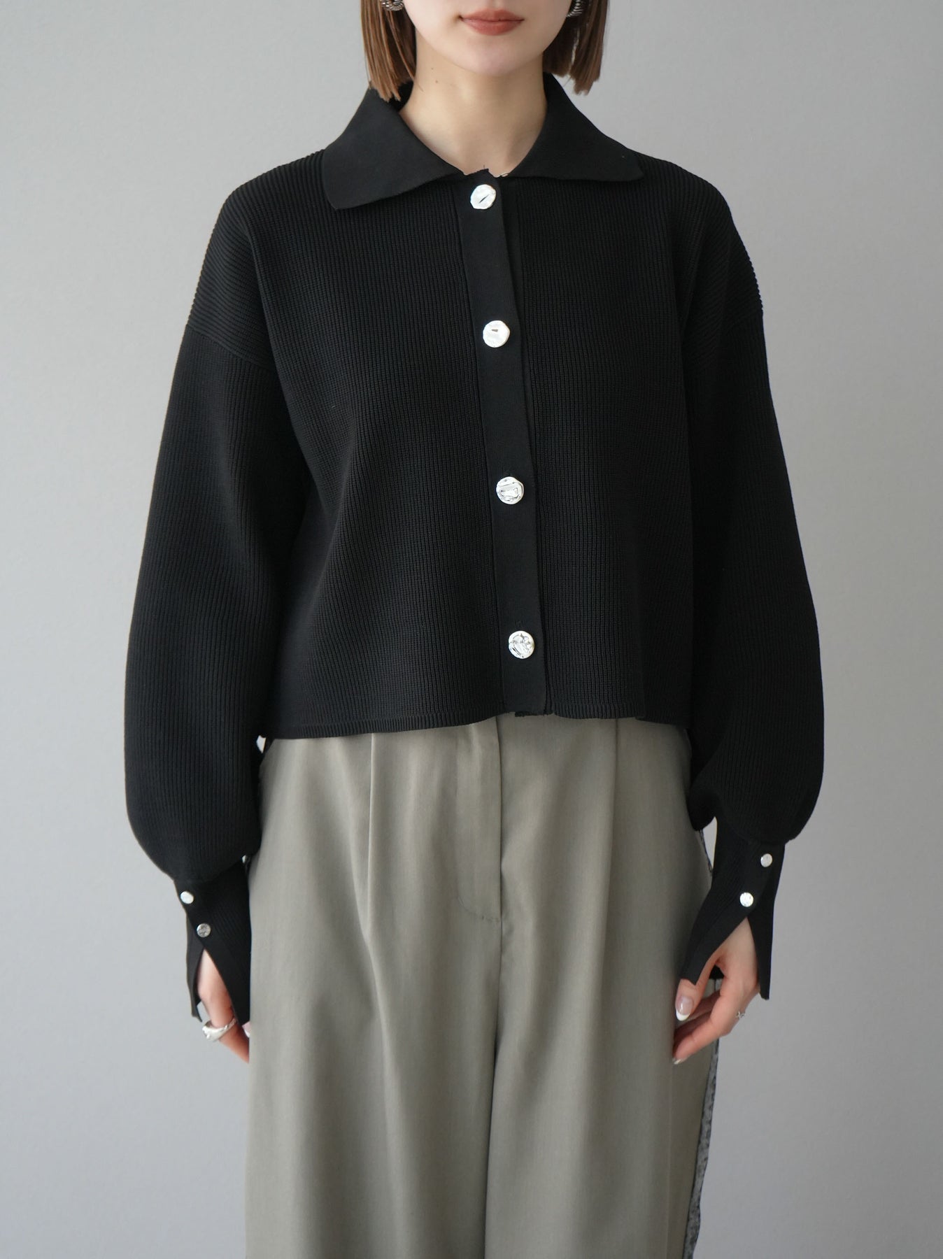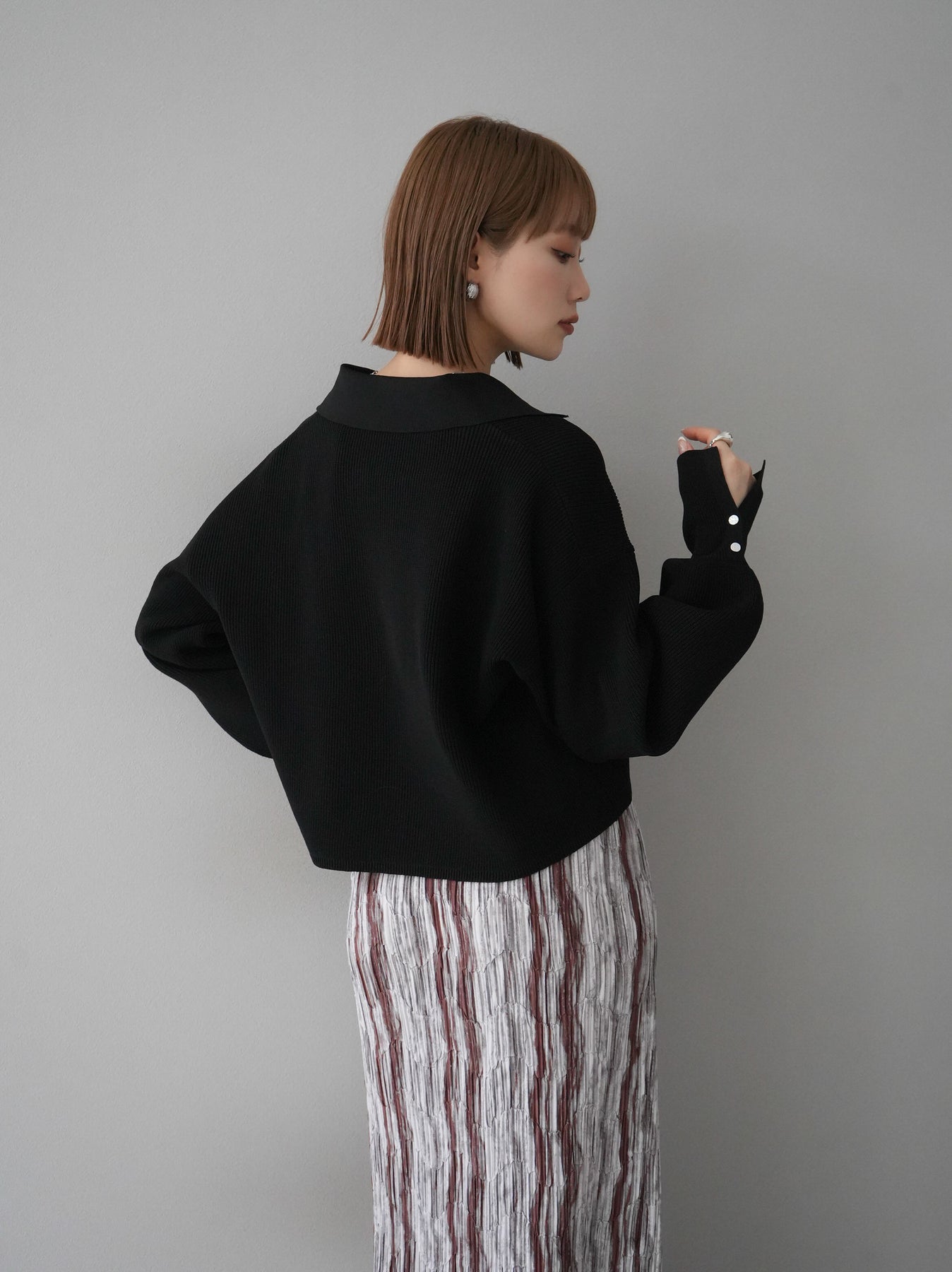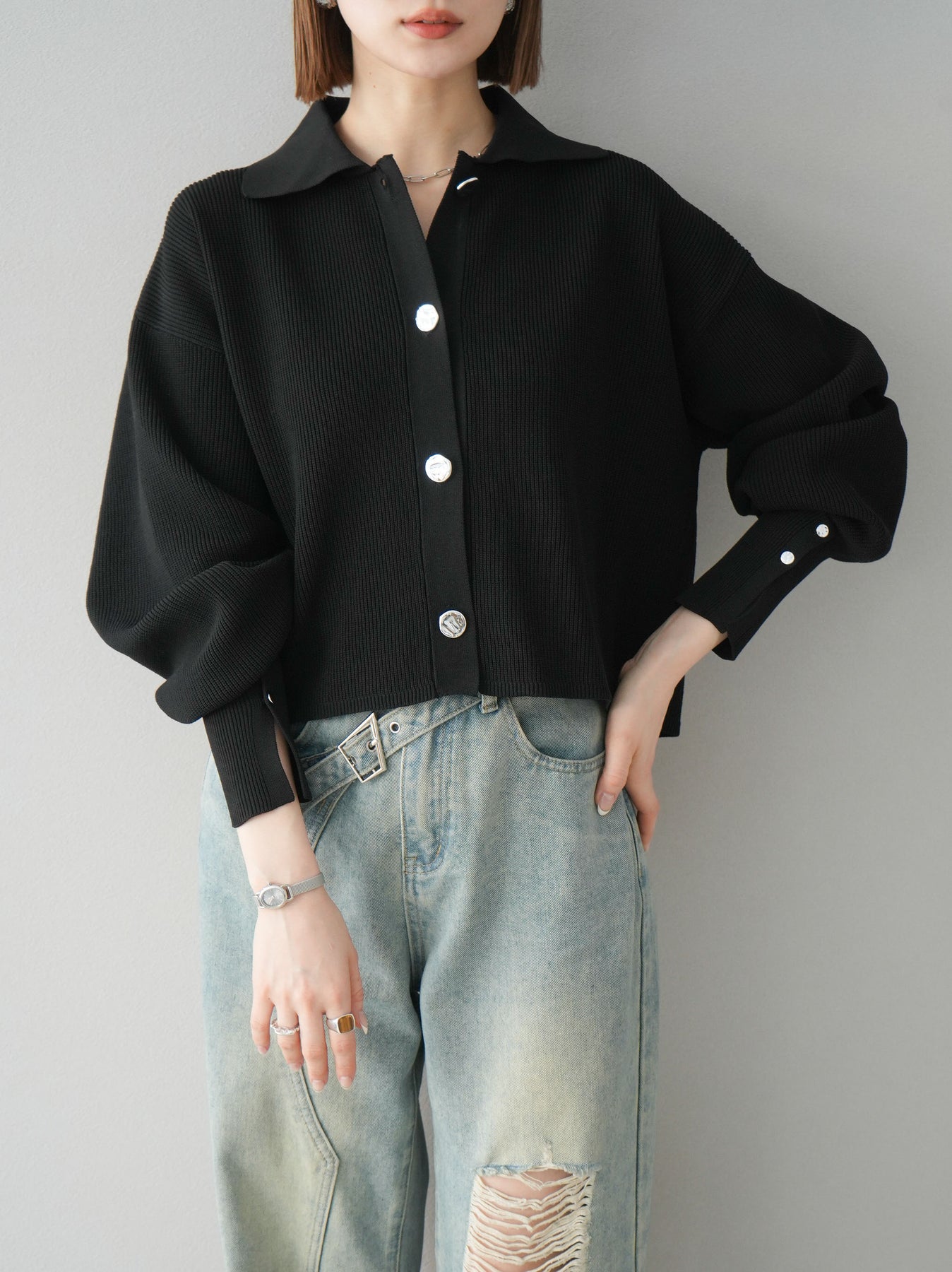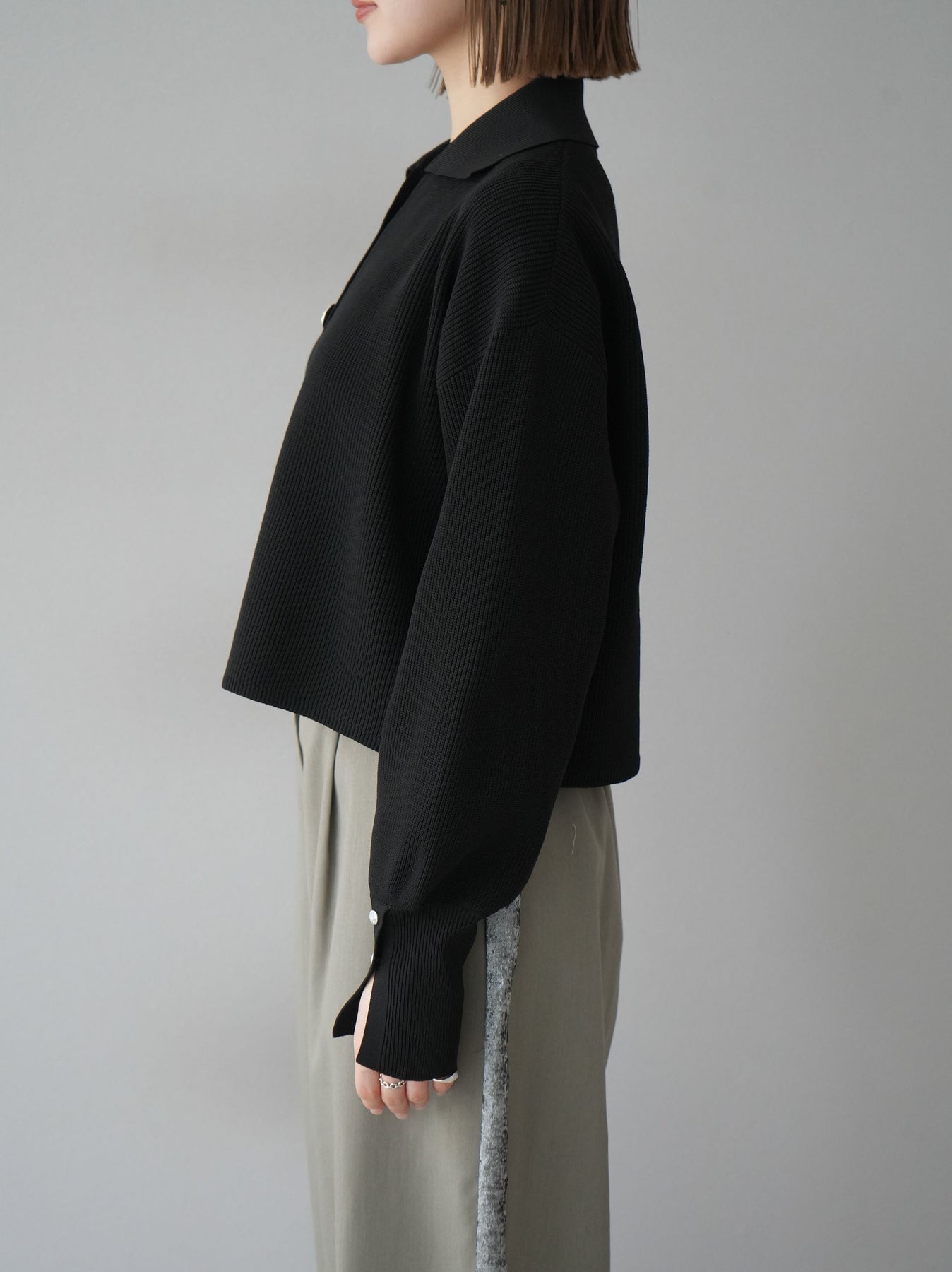 [預訂] 寬袖 Polo 針織開襟衫/黑色