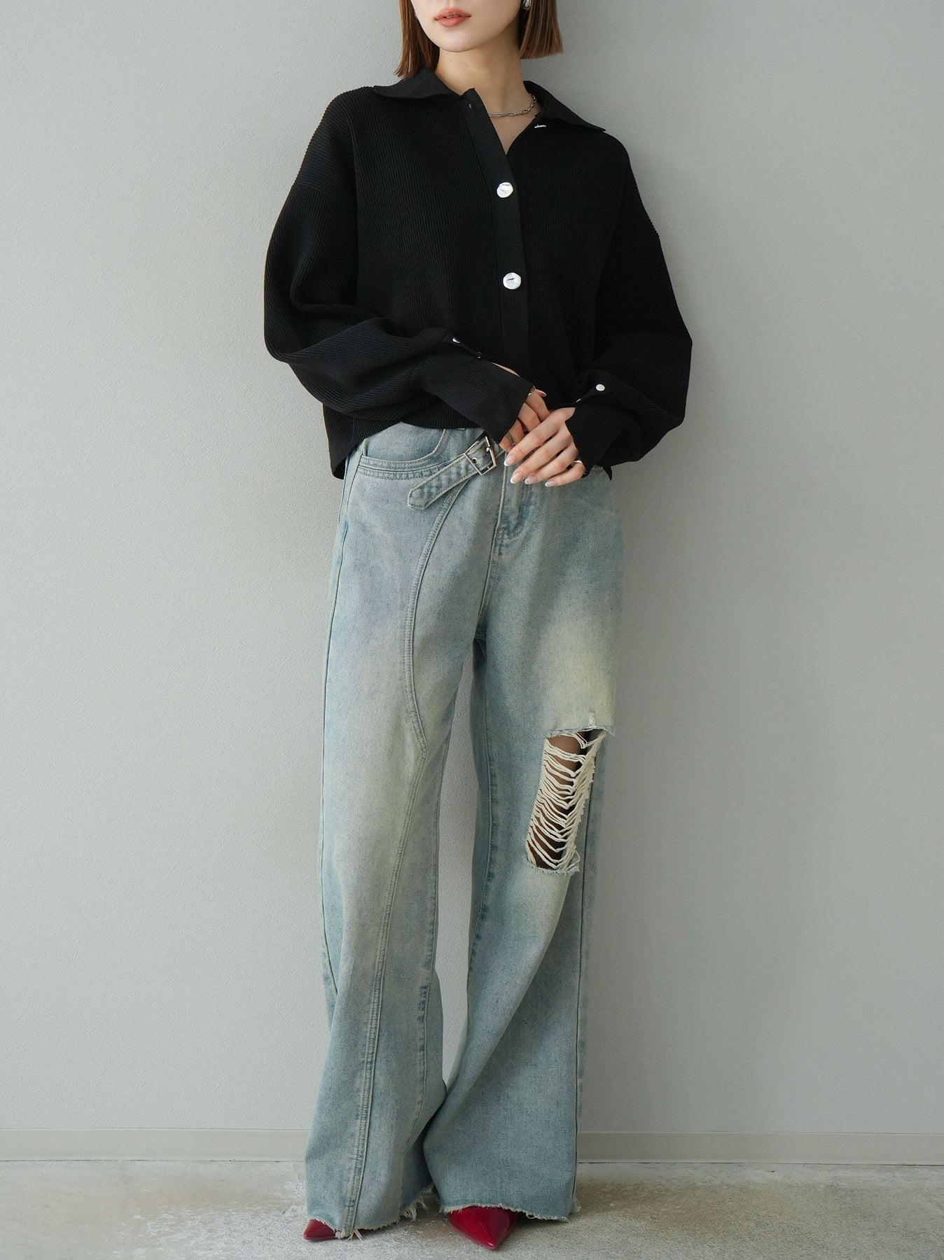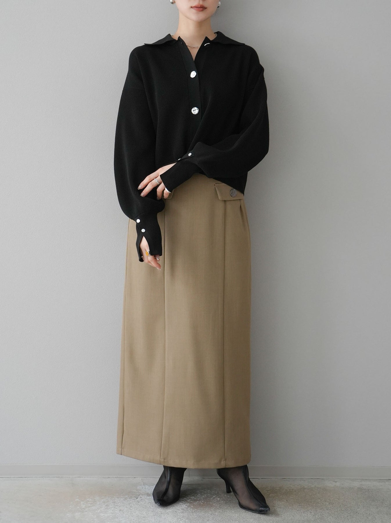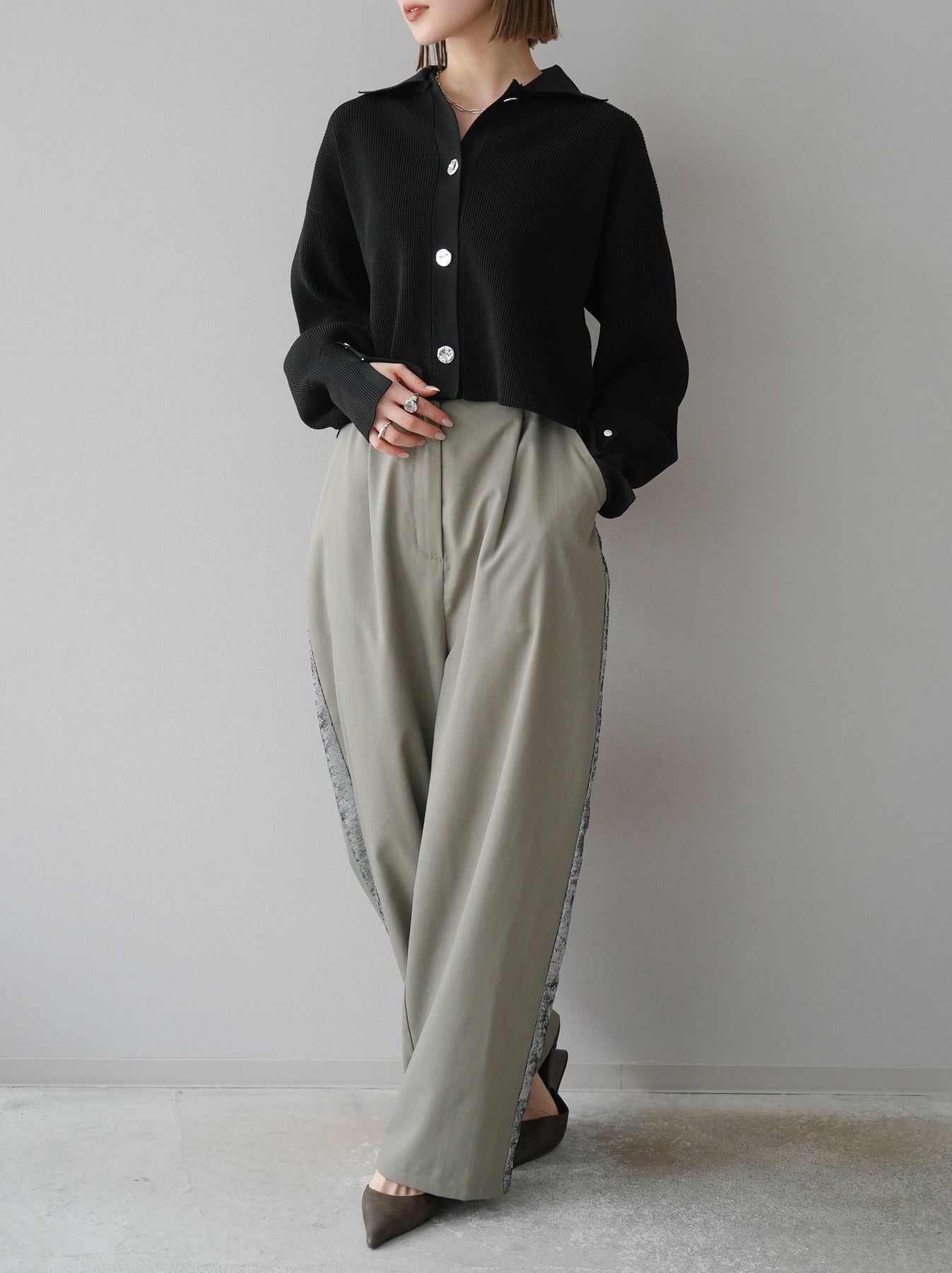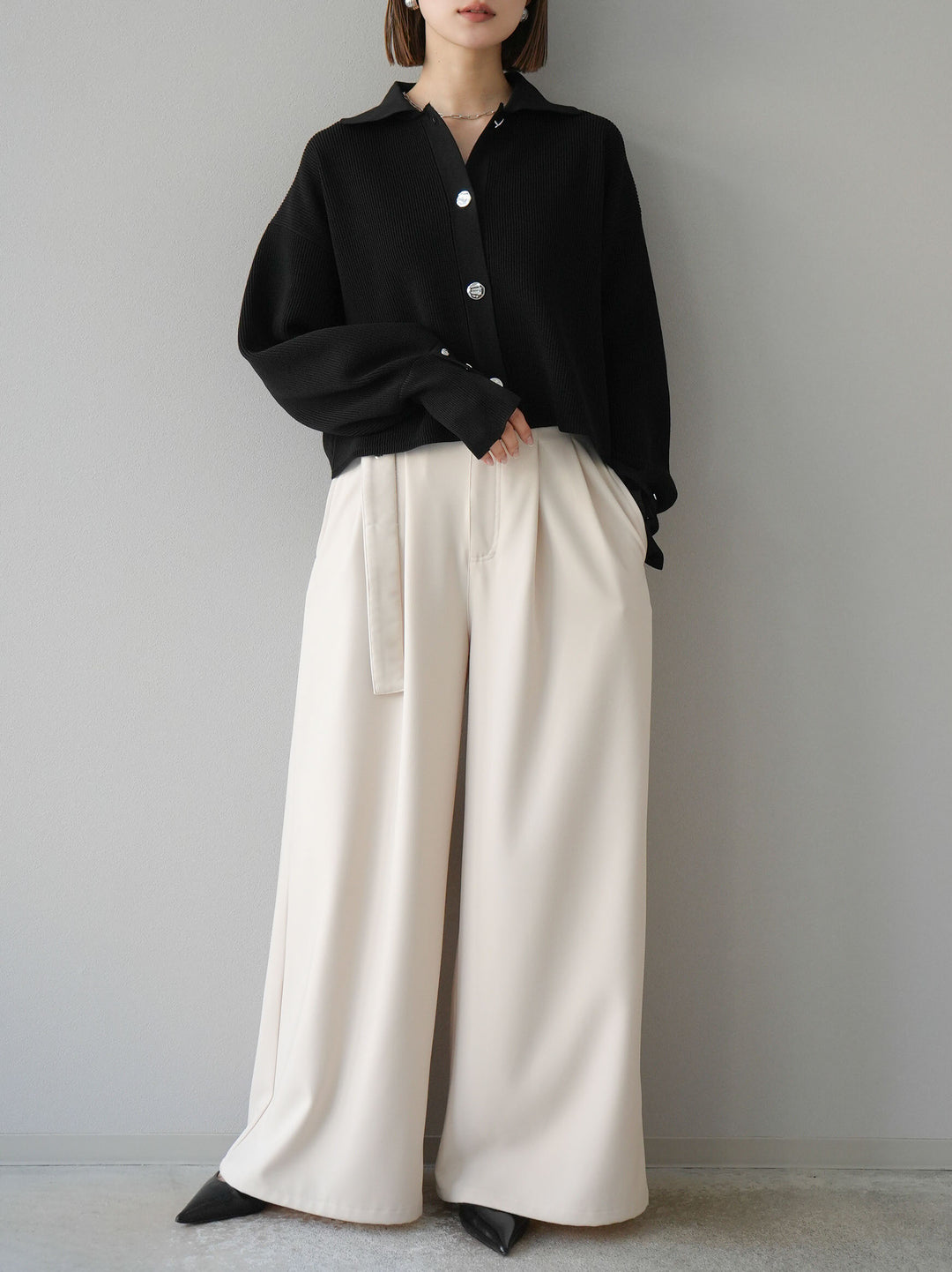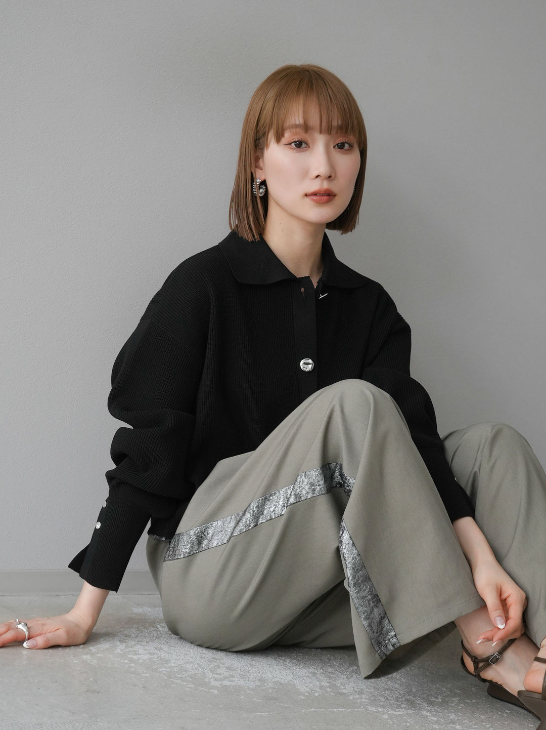 [預訂] 寬袖 Polo 針織開襟衫/黑色