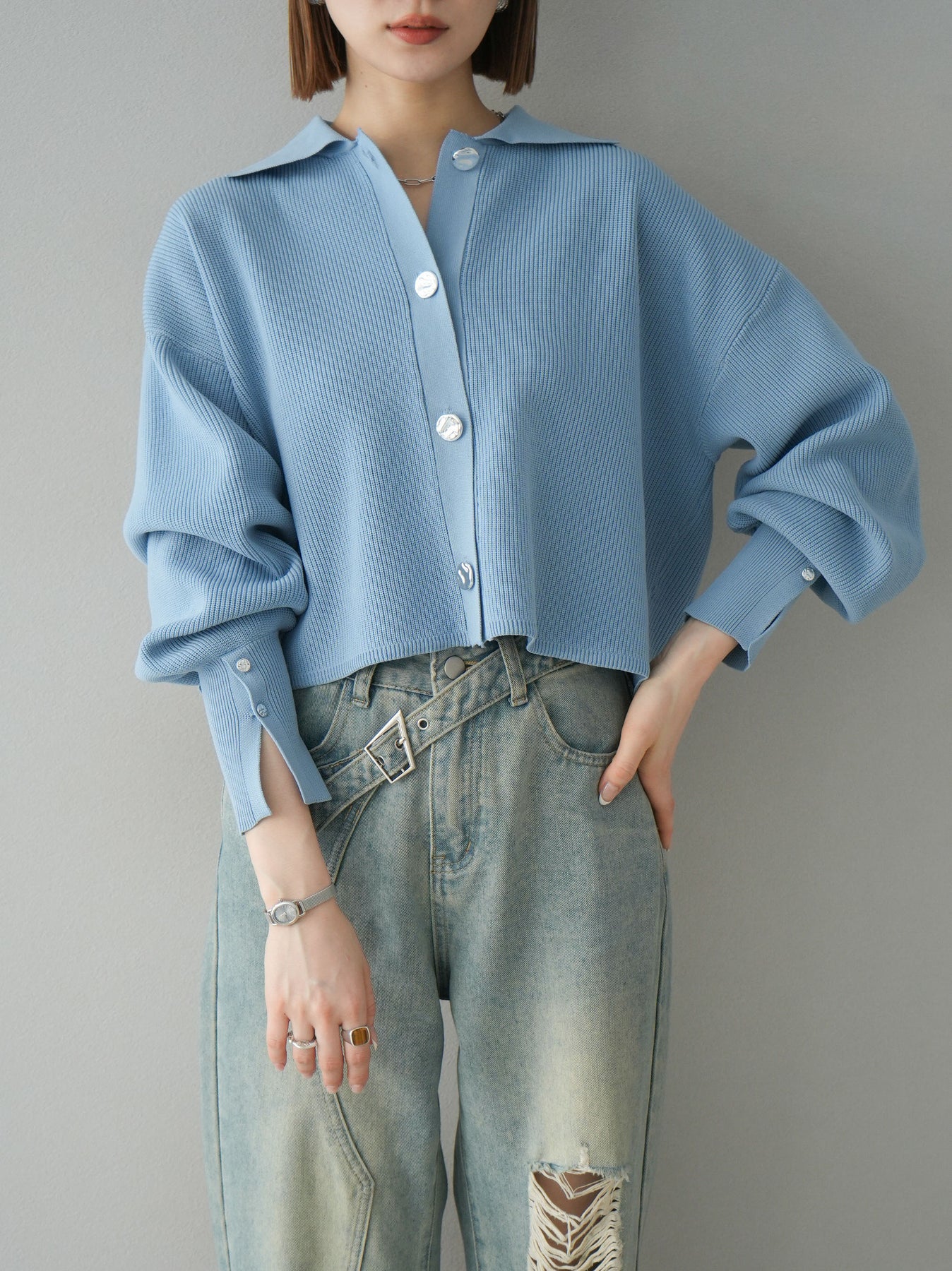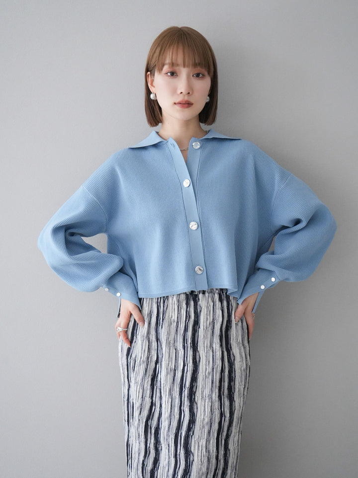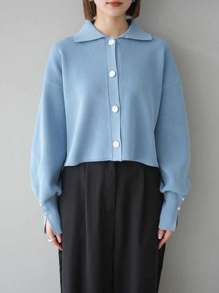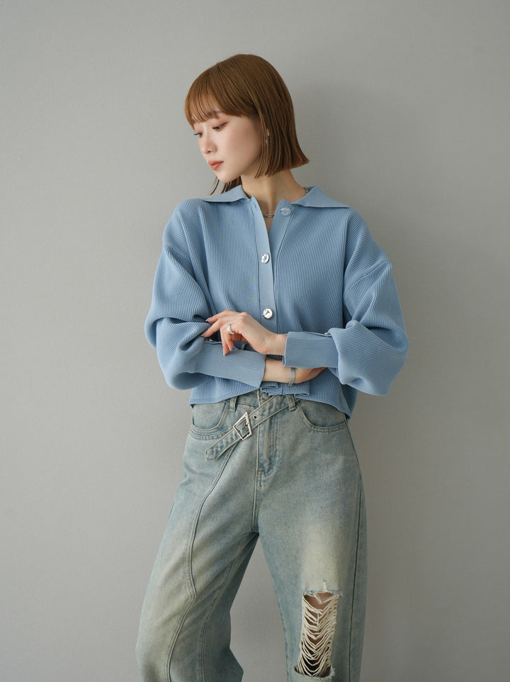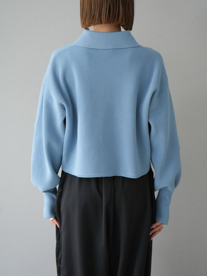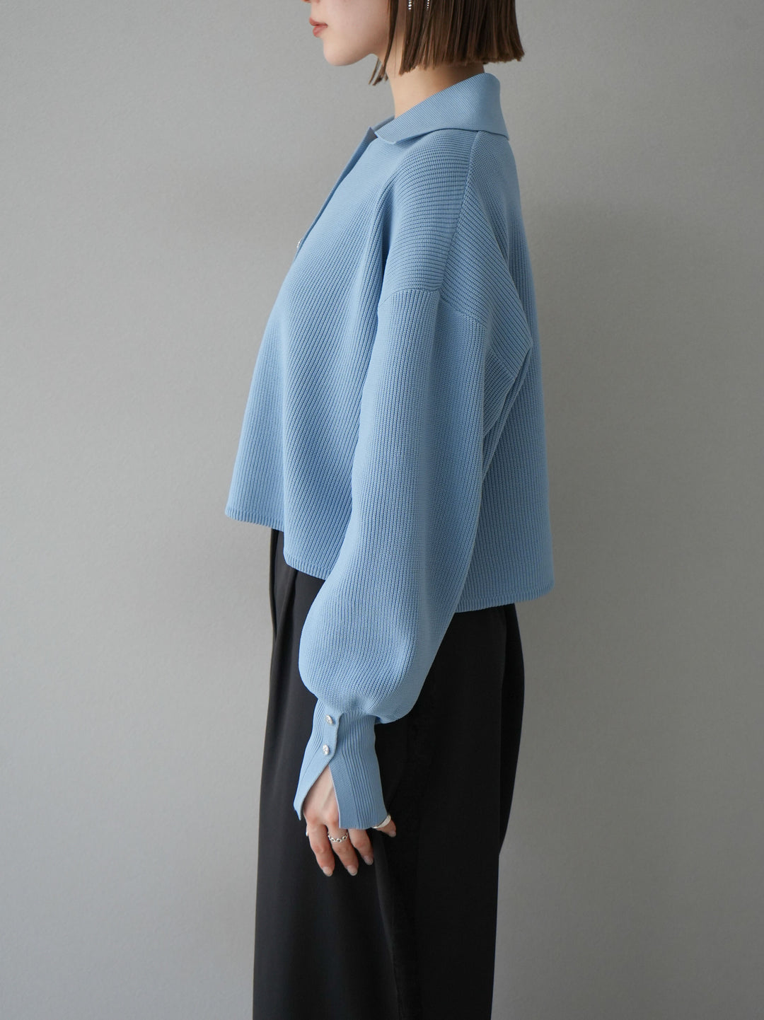 [預訂] 寬袖 Polo 針織開襟衫/藍色