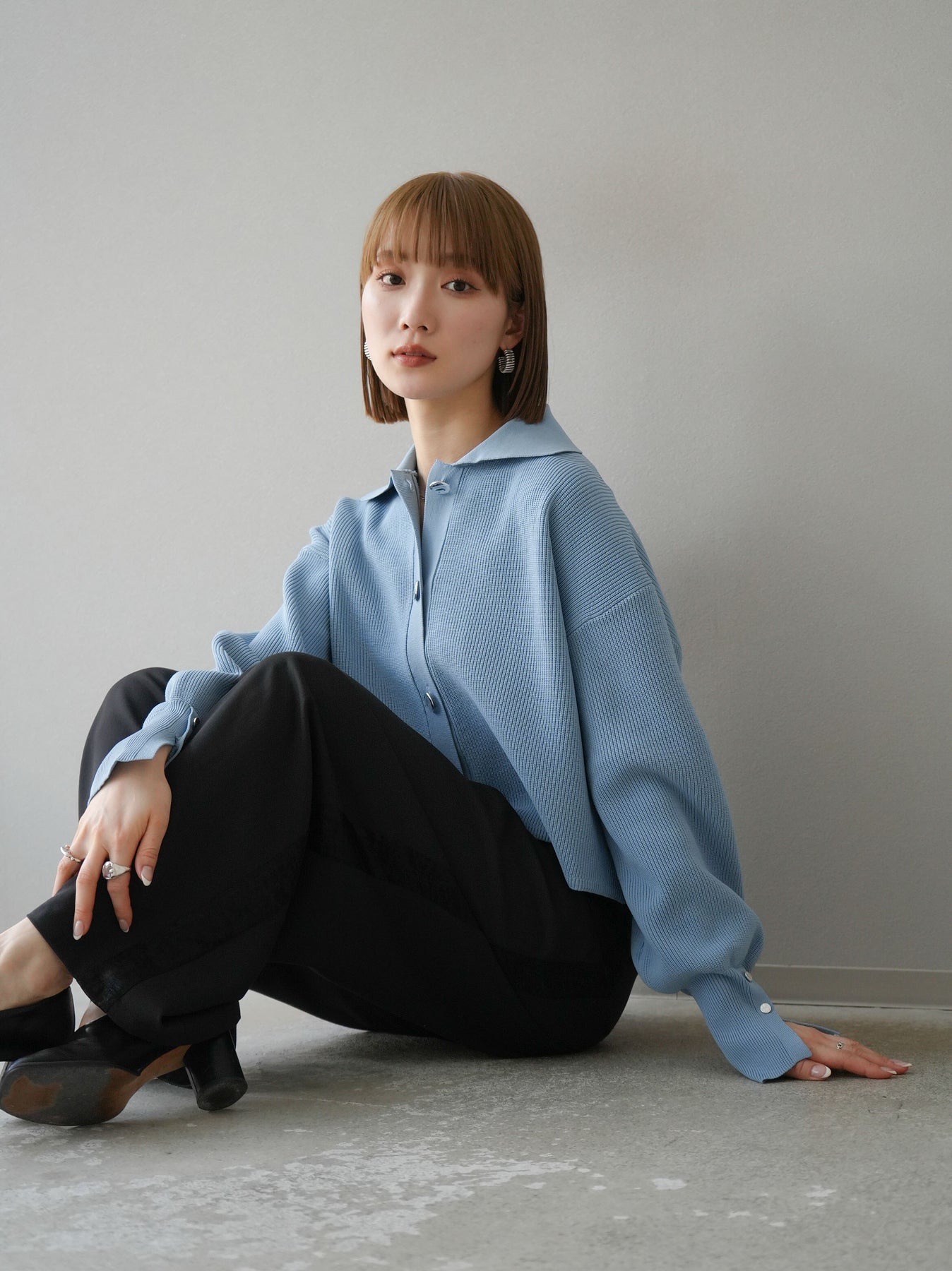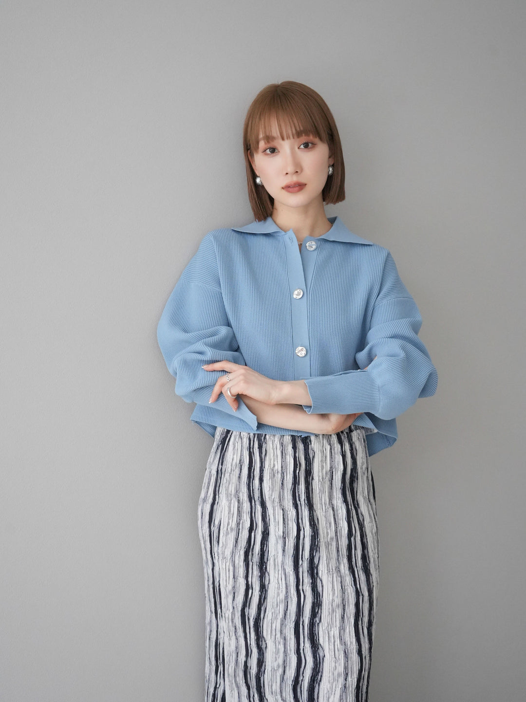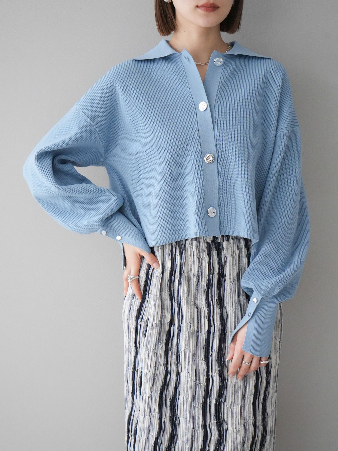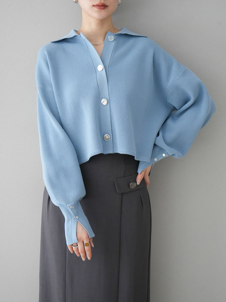 [預訂] 寬袖 Polo 針織開襟衫/藍色