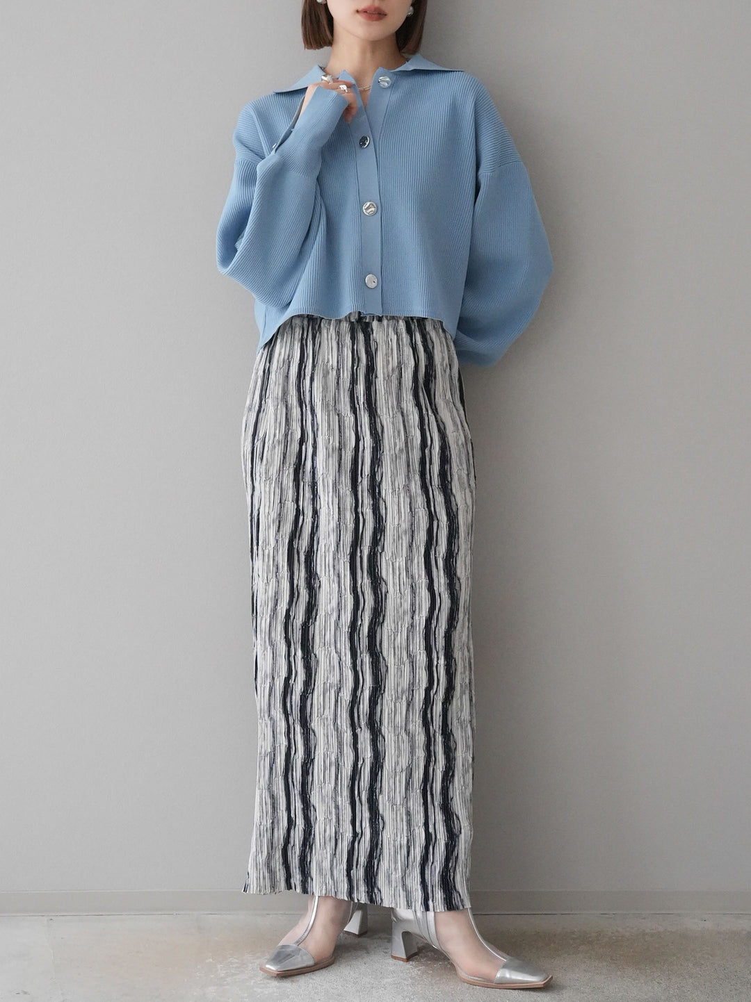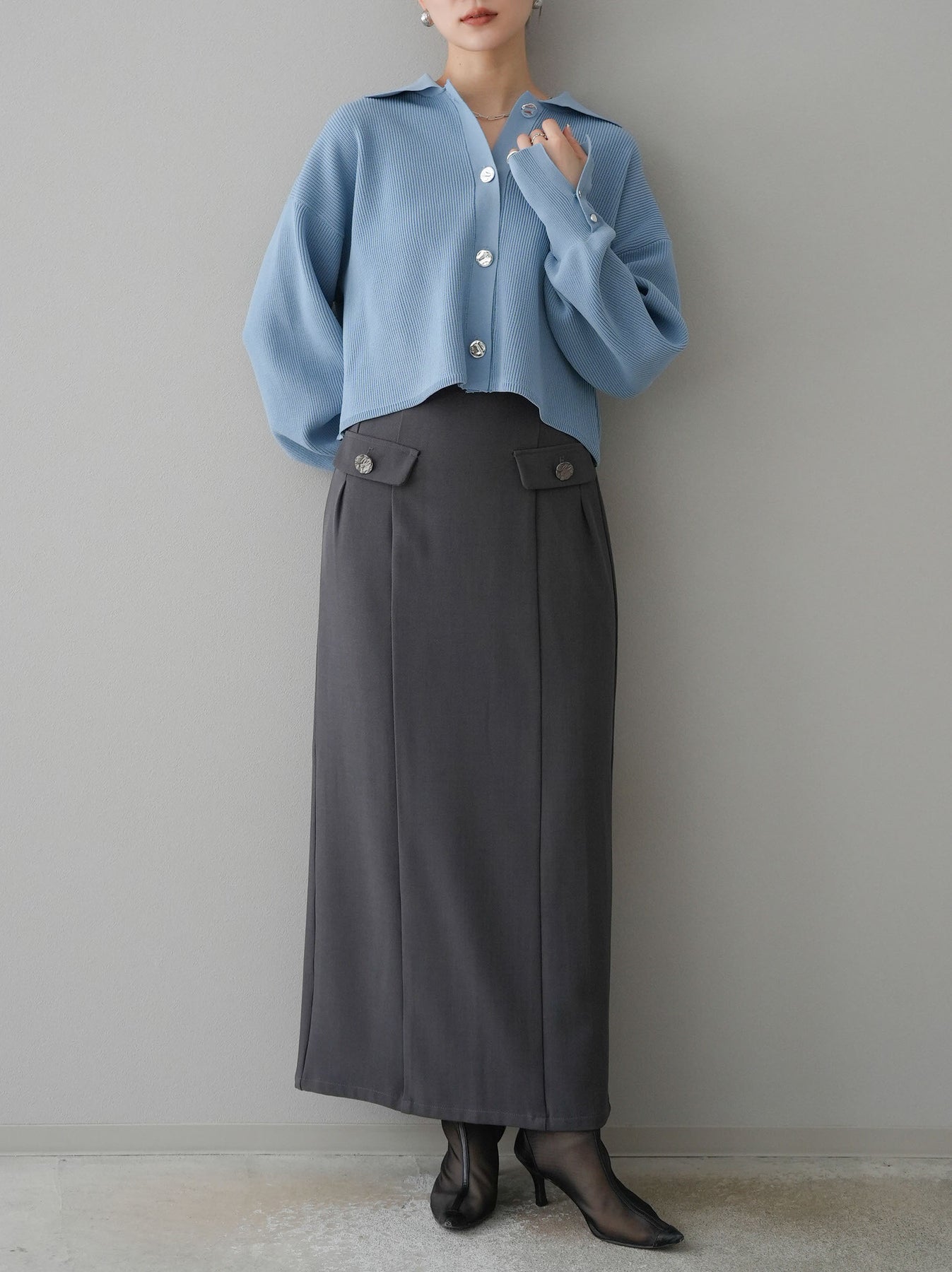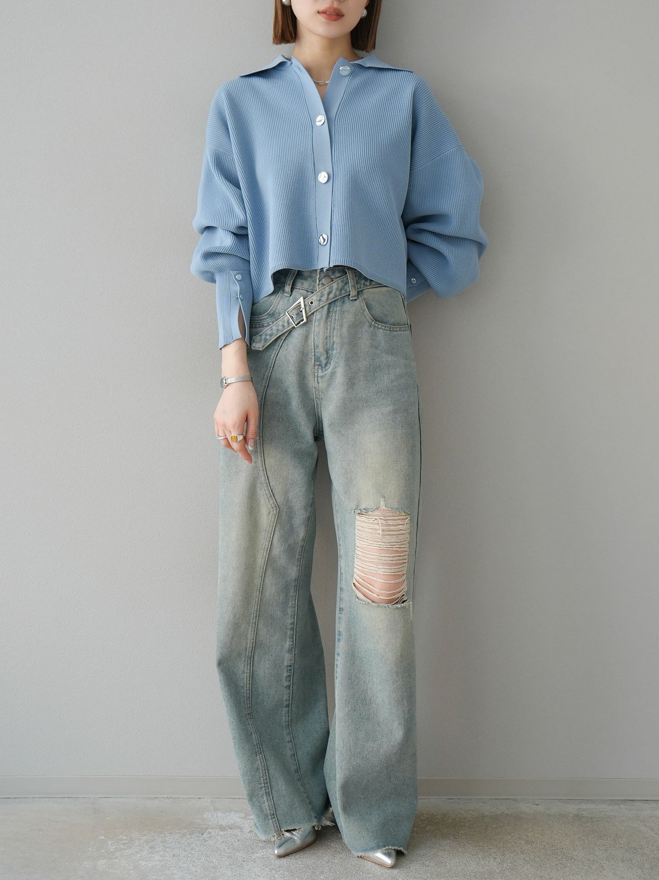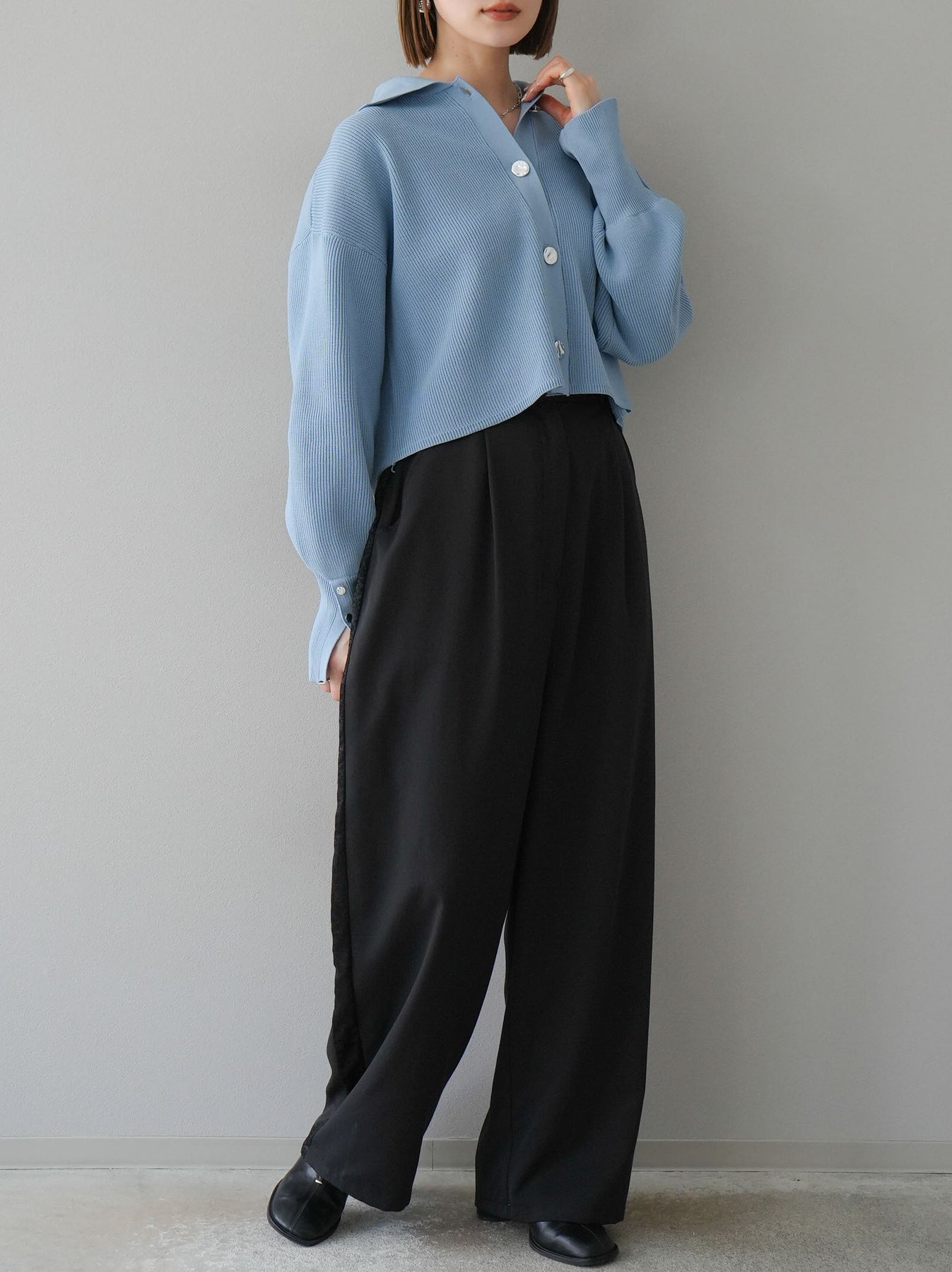 [預訂] 寬袖 Polo 針織開襟衫/藍色
