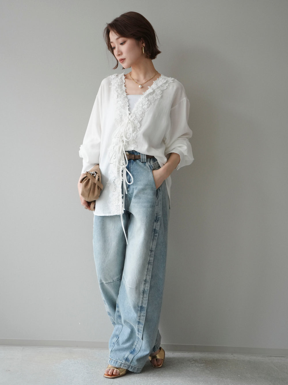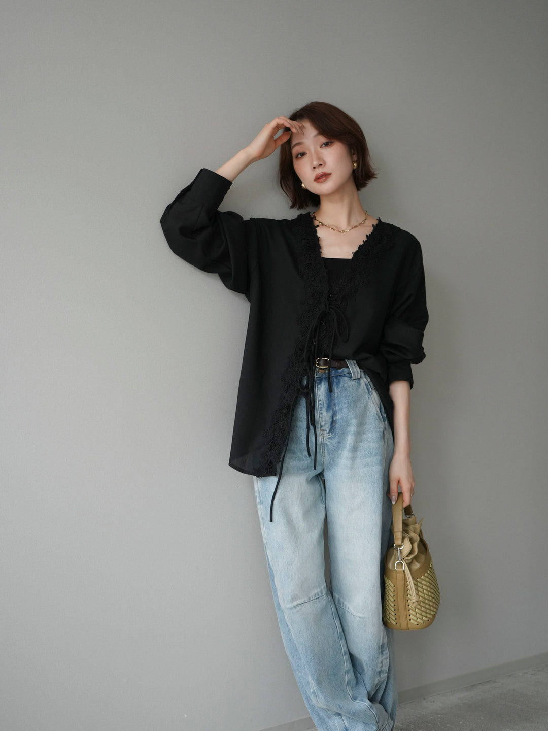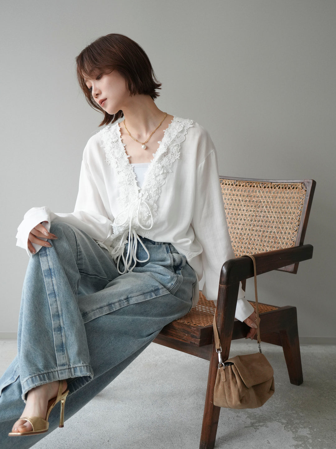 【預購】牛仔領紐扣針織開襟衫 / 駝色