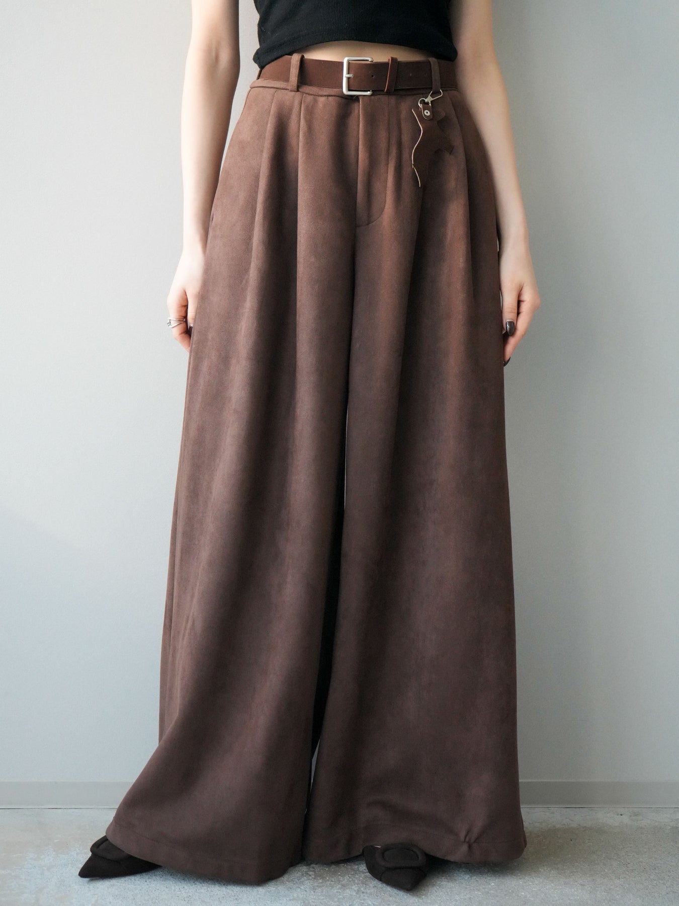 [予約]モチーフベルト付スエードタックワイドパンツに関連する商品を探す↓