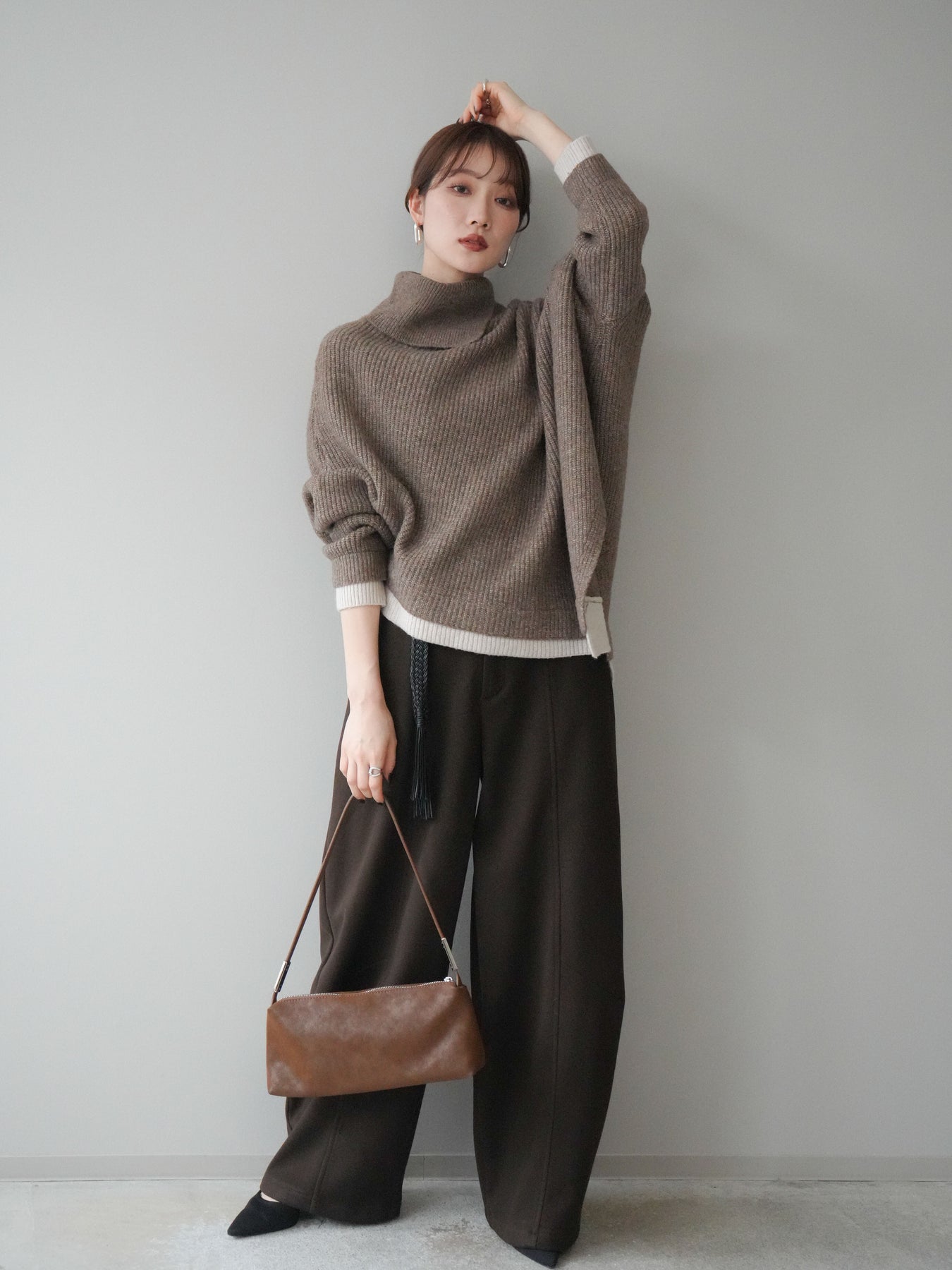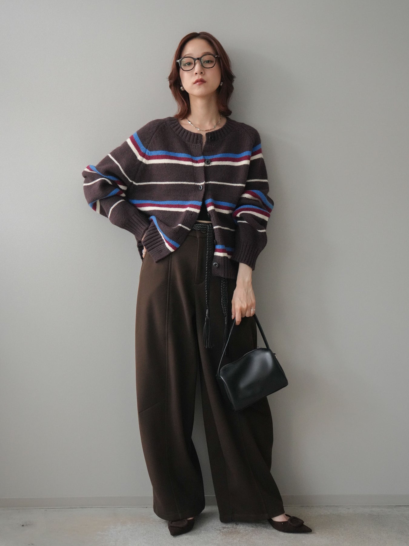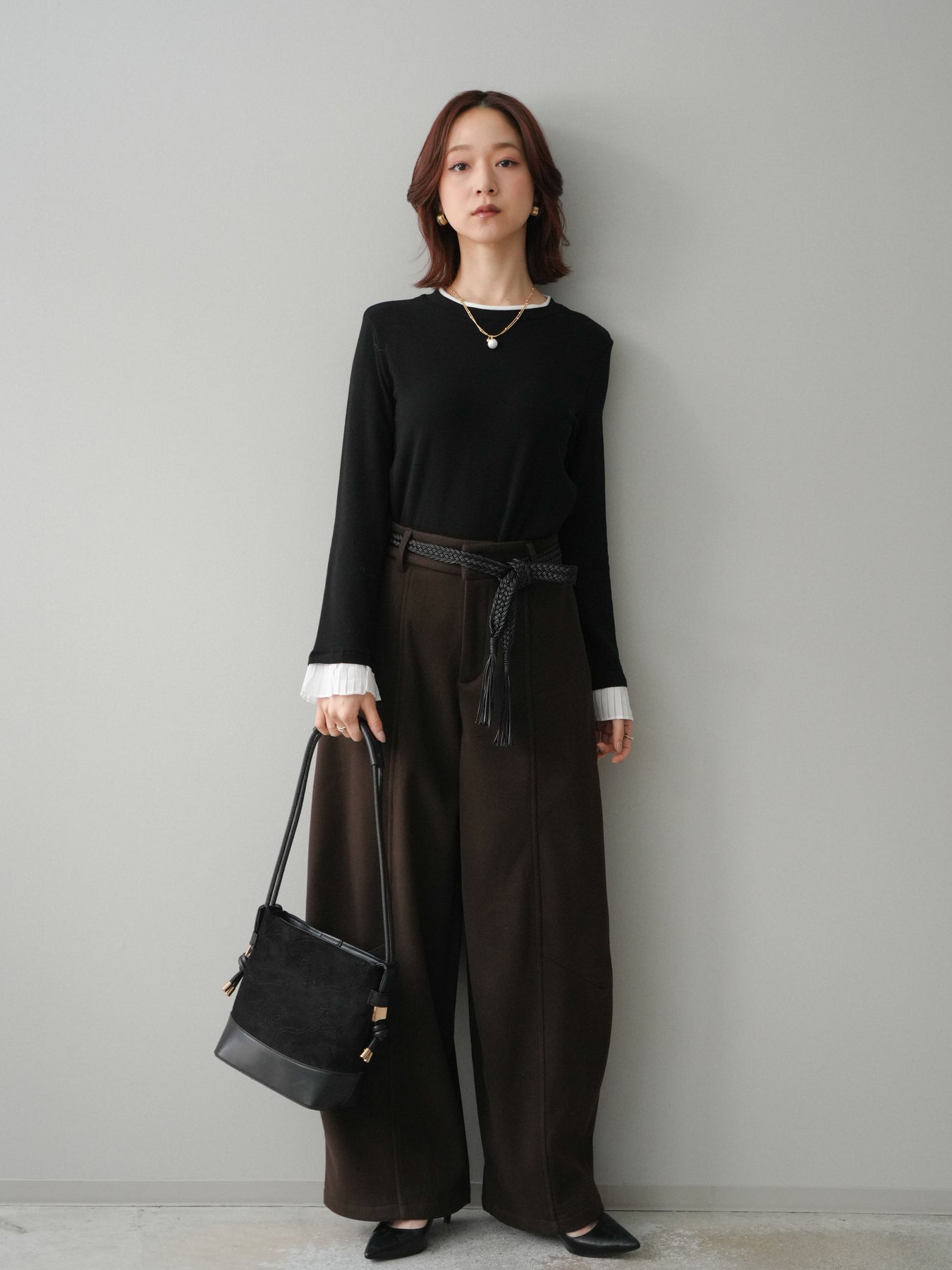 [予約]ベルト付裏起毛センターシームカーブパンツ/brown